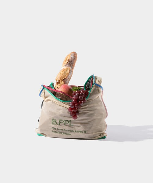 • This mesh bag is made by connecting two lunchbox poly bags.