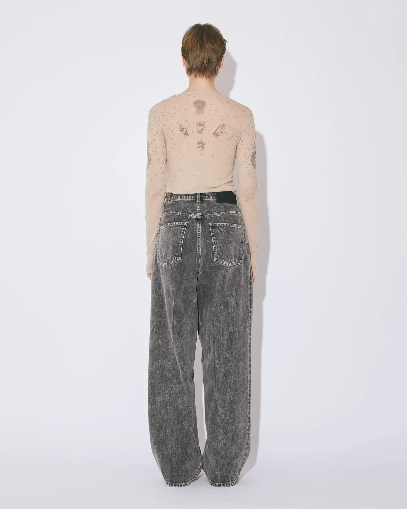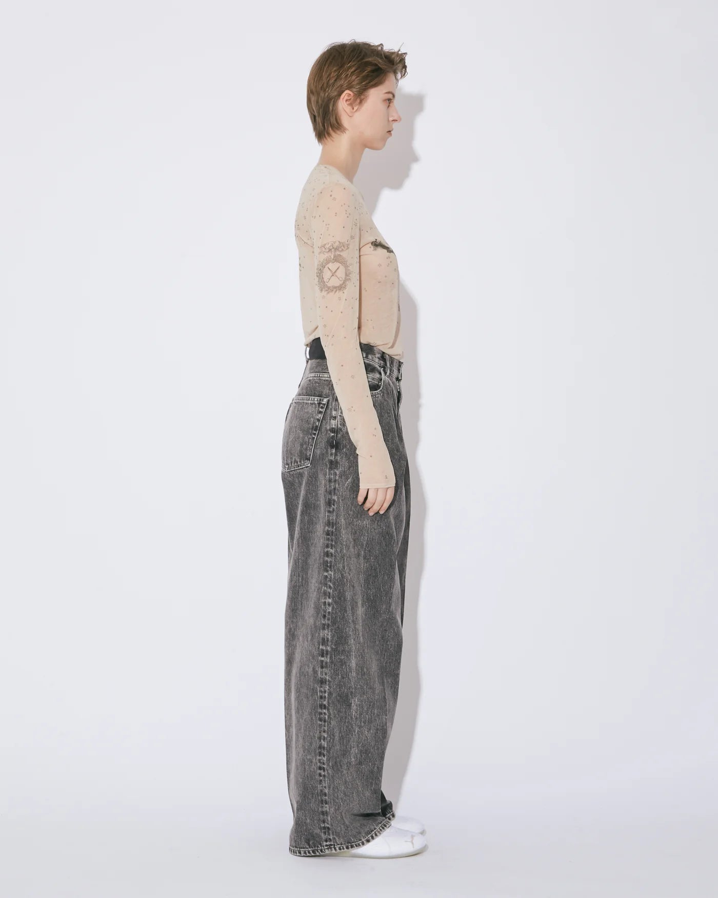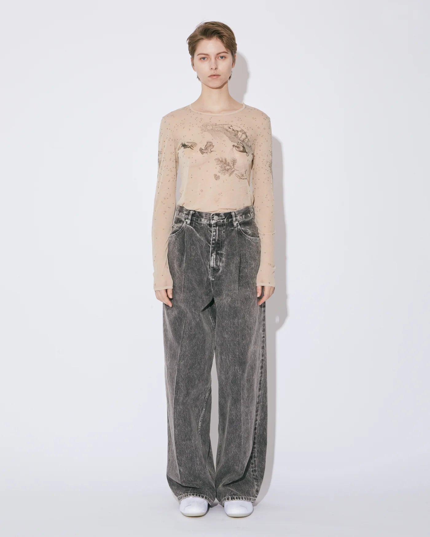 BEAUTIFUL PEOPLE- sheer R.P.S print jersey crew neck top nude beige