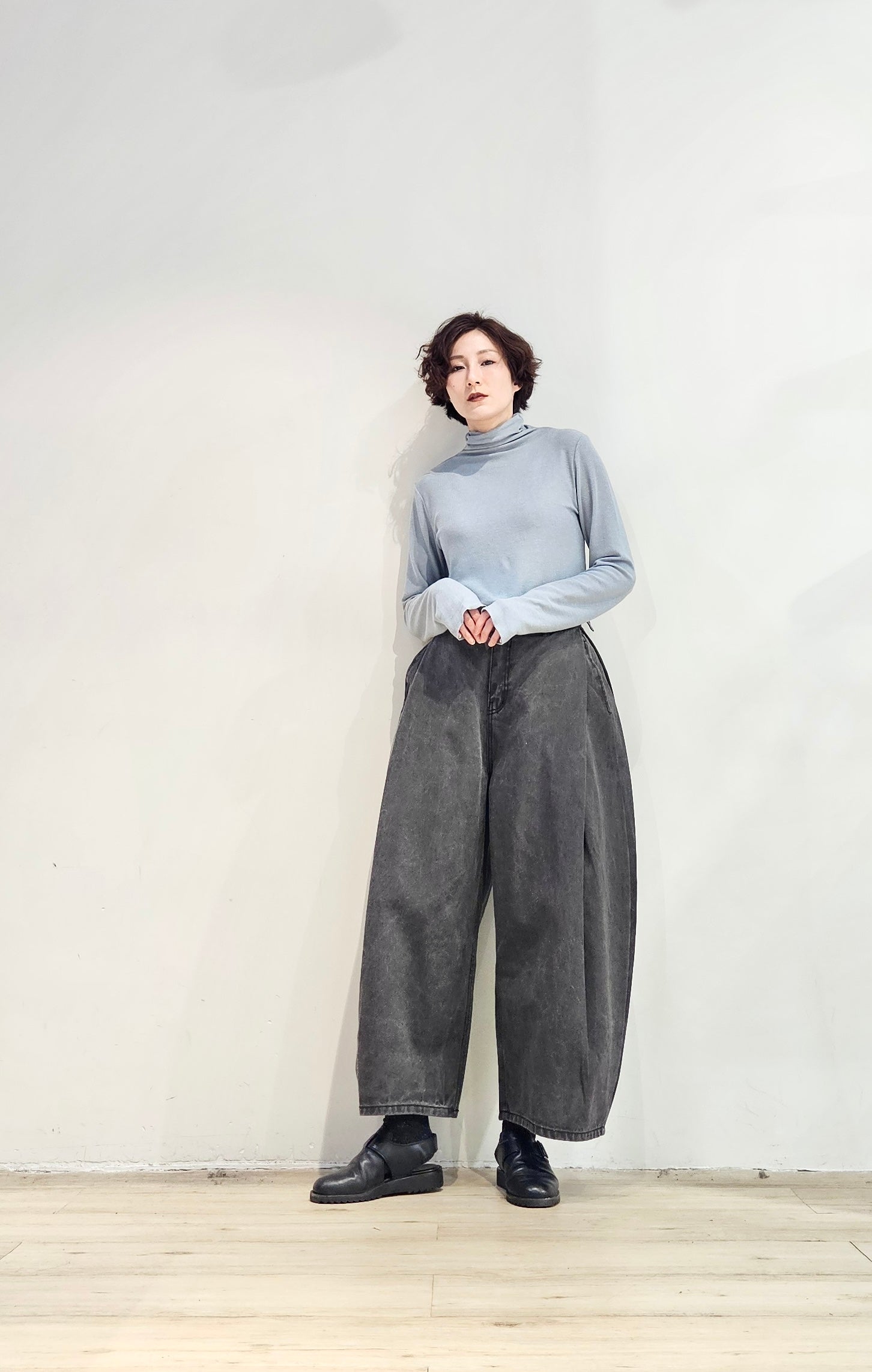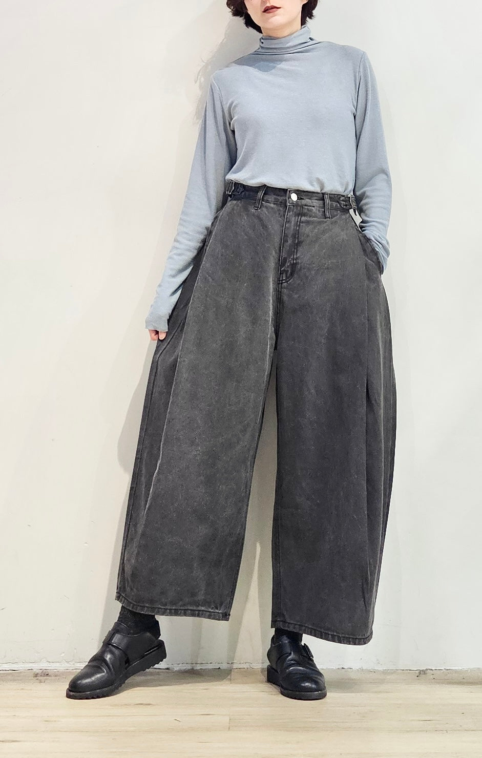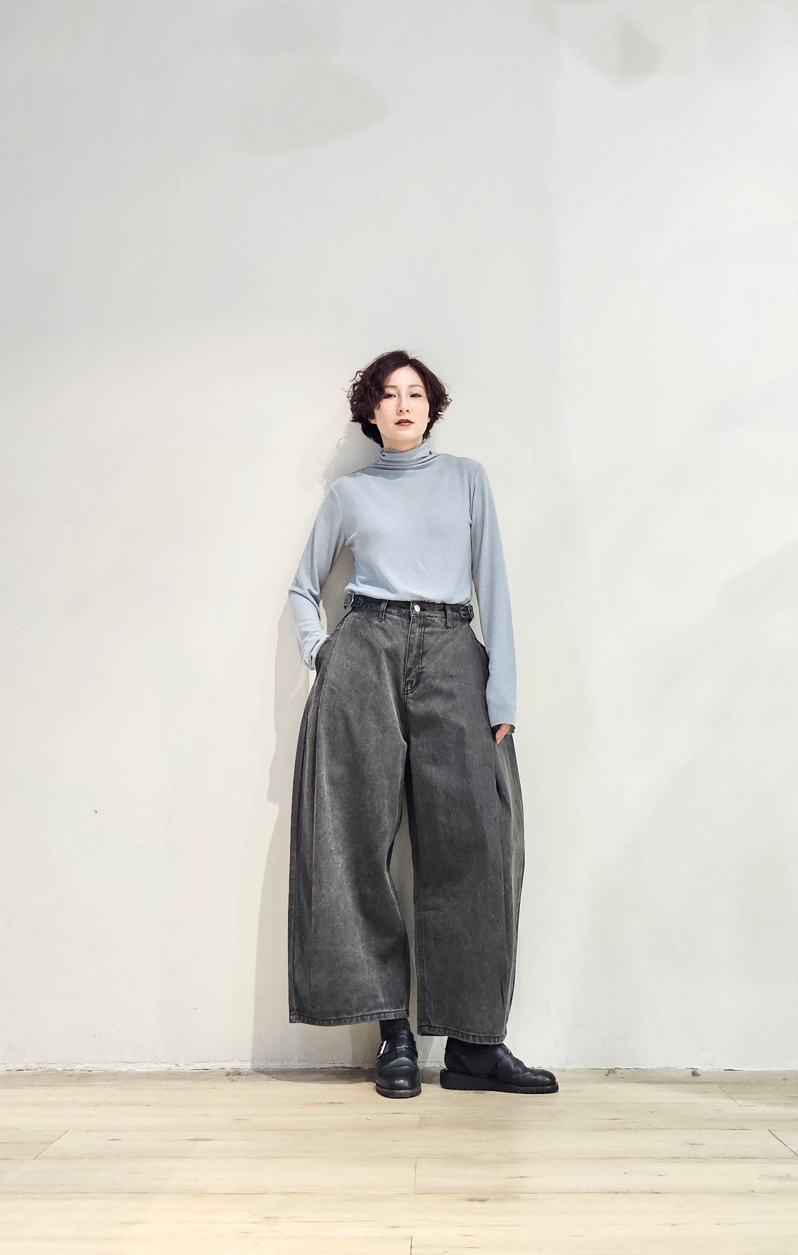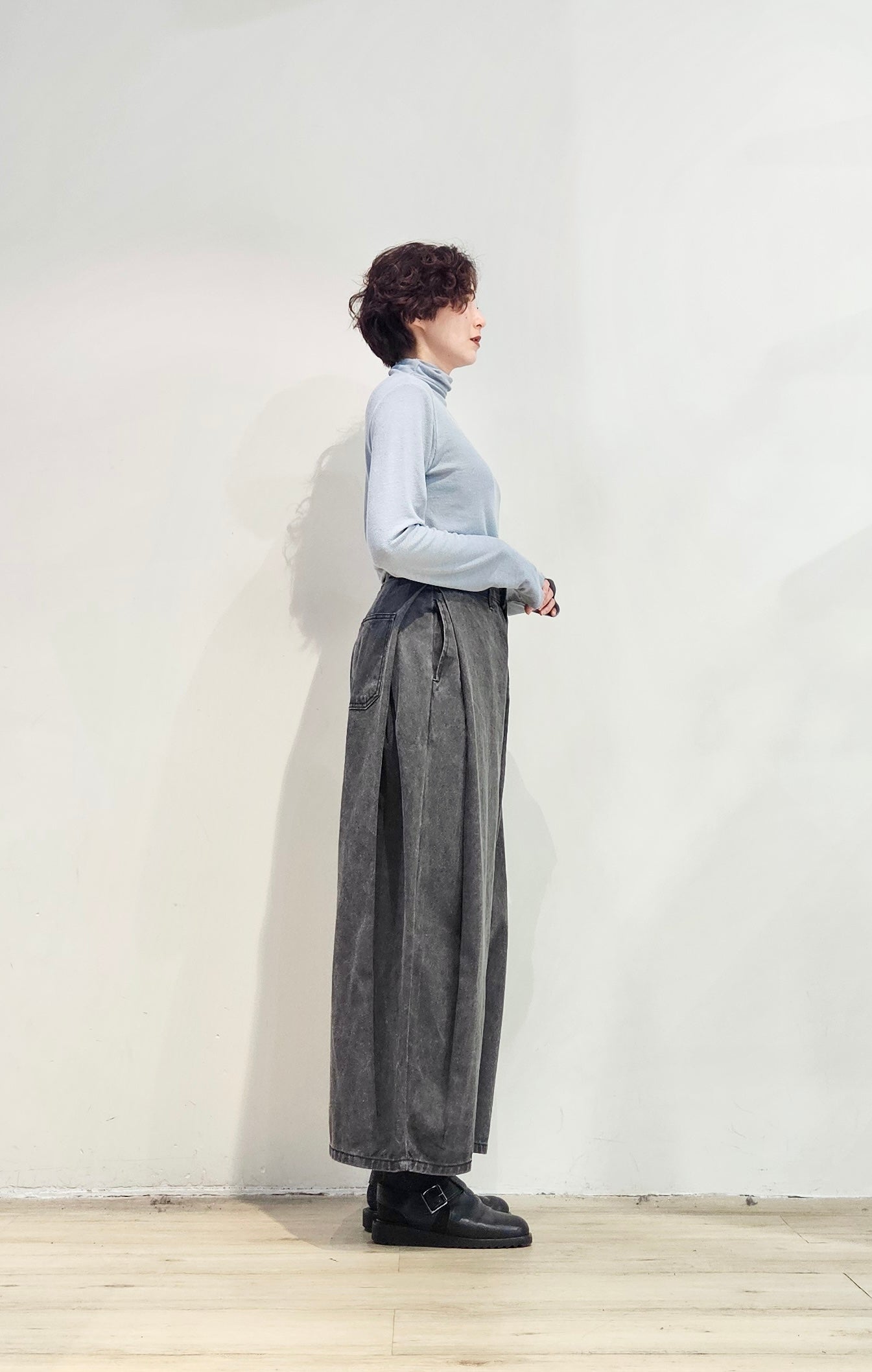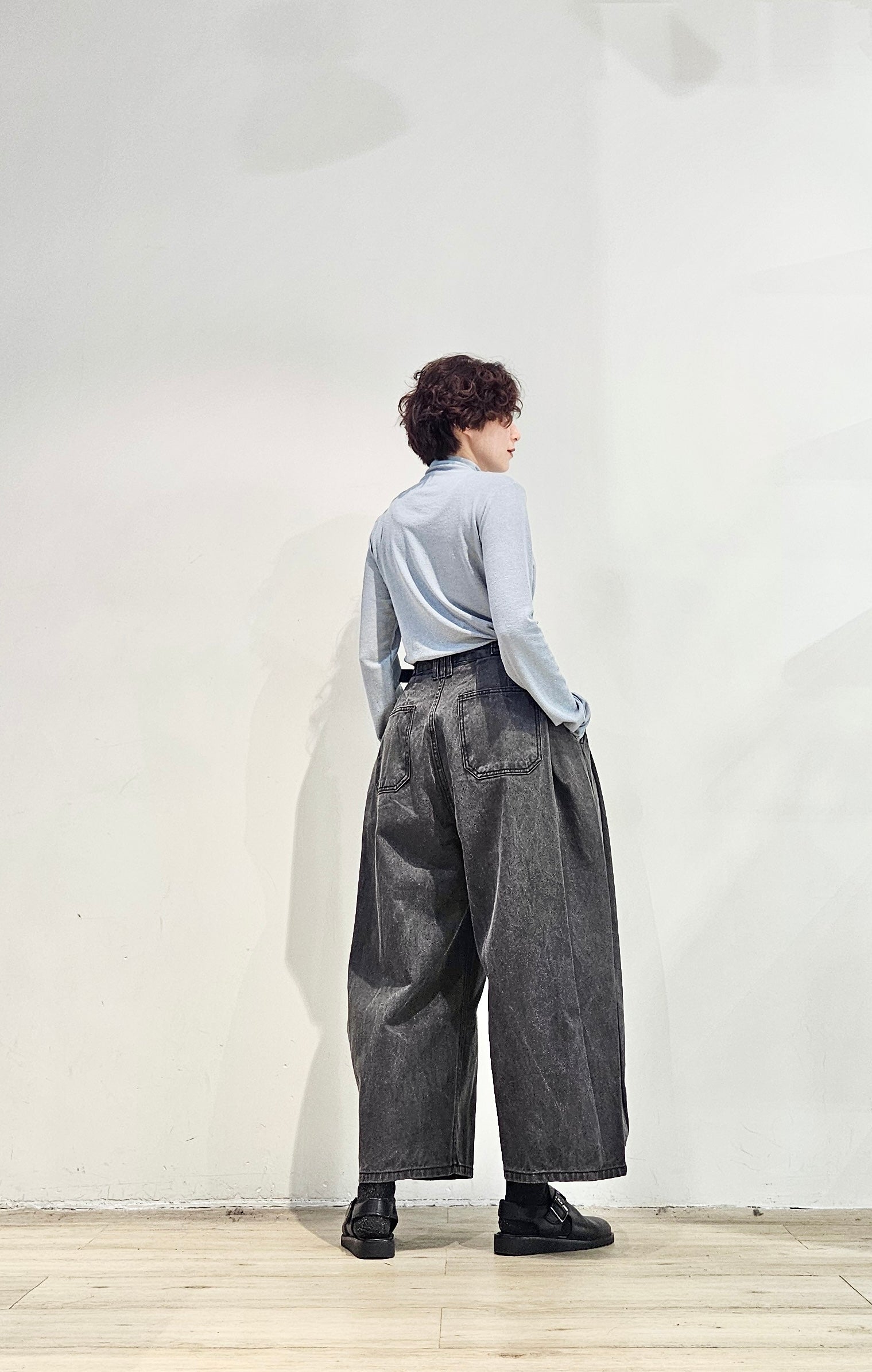 Side pleated washed denim peg pants - 2 colours (Pre-order)