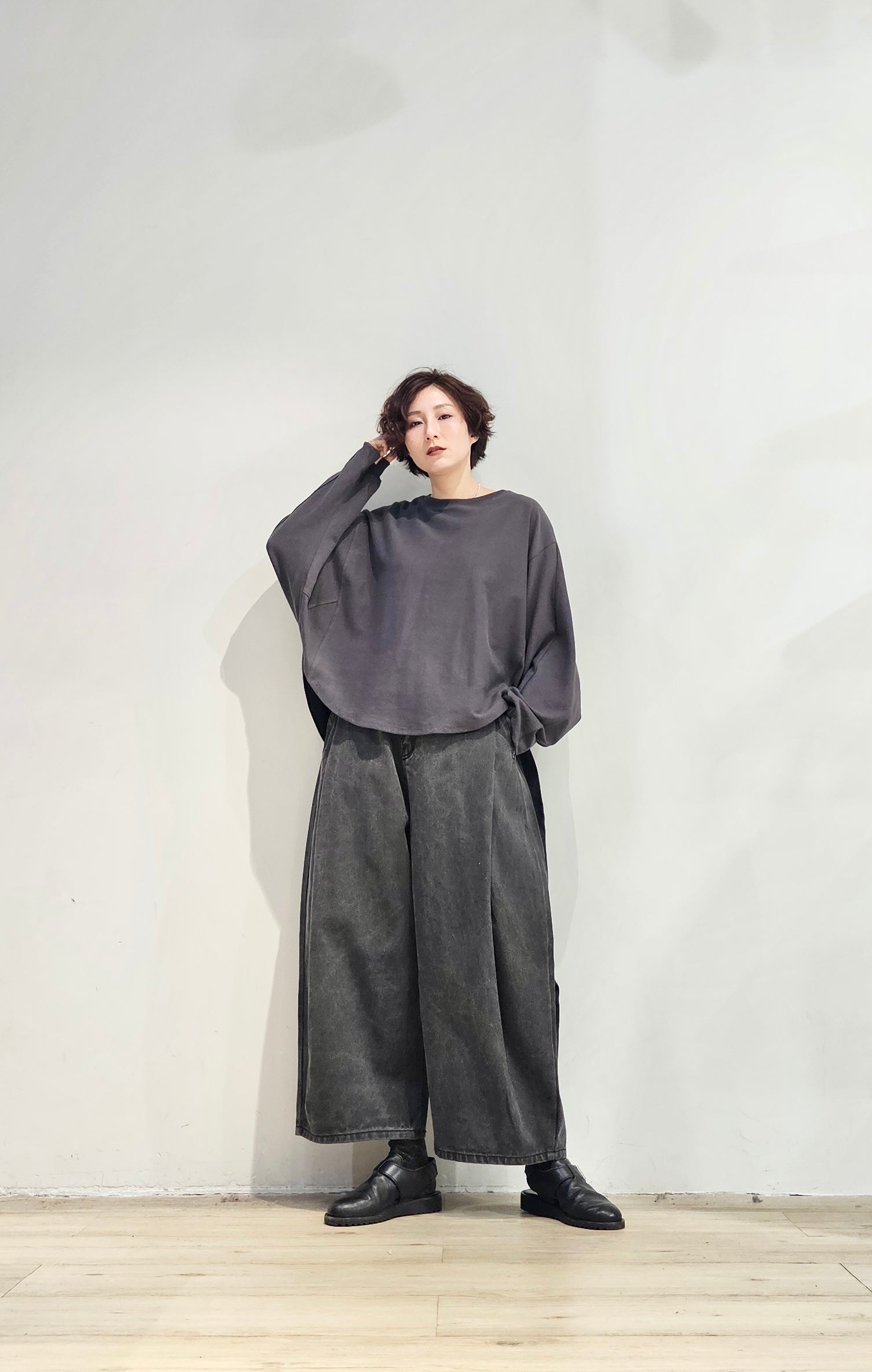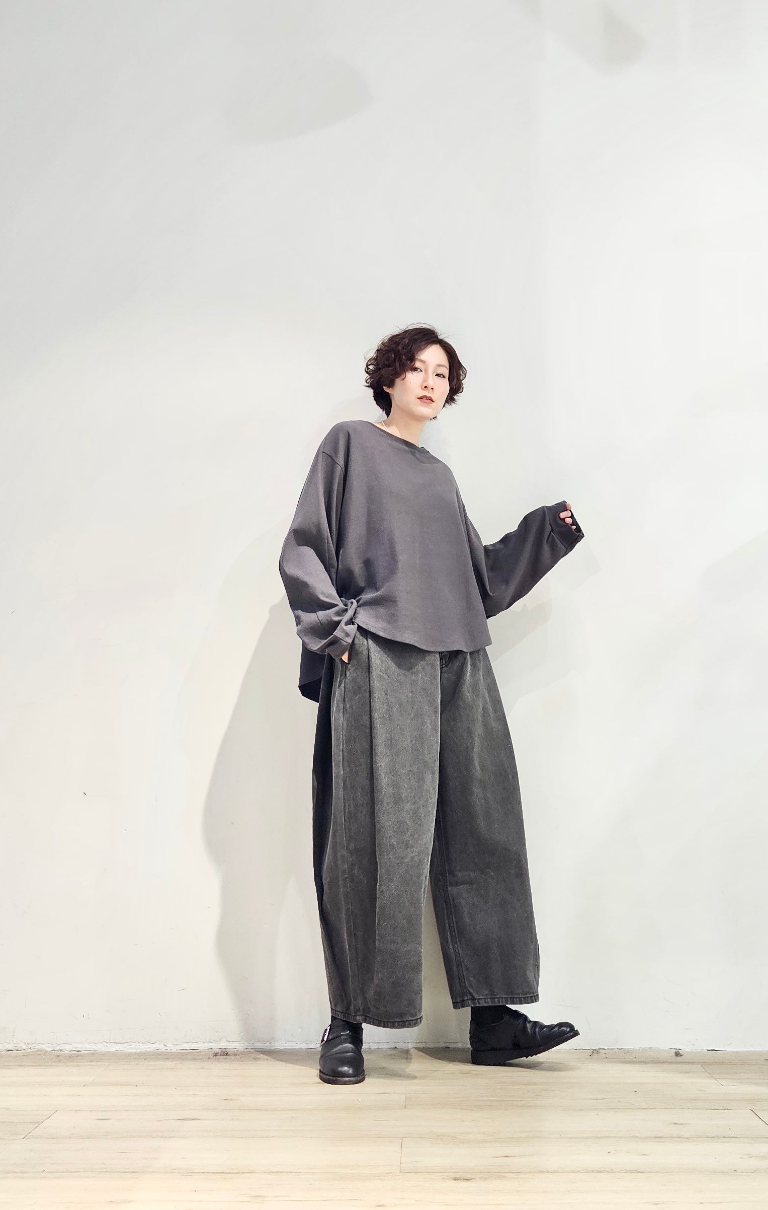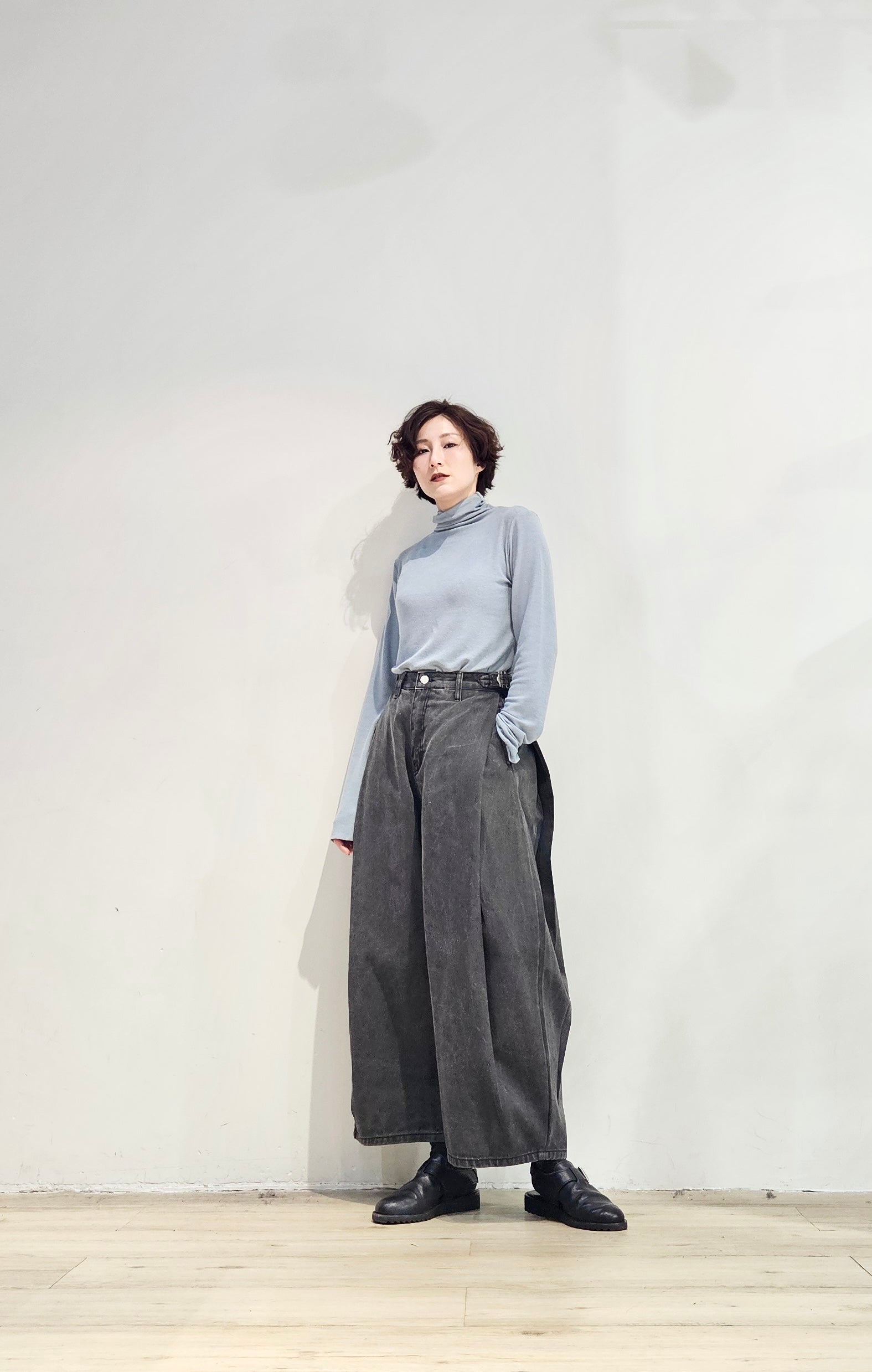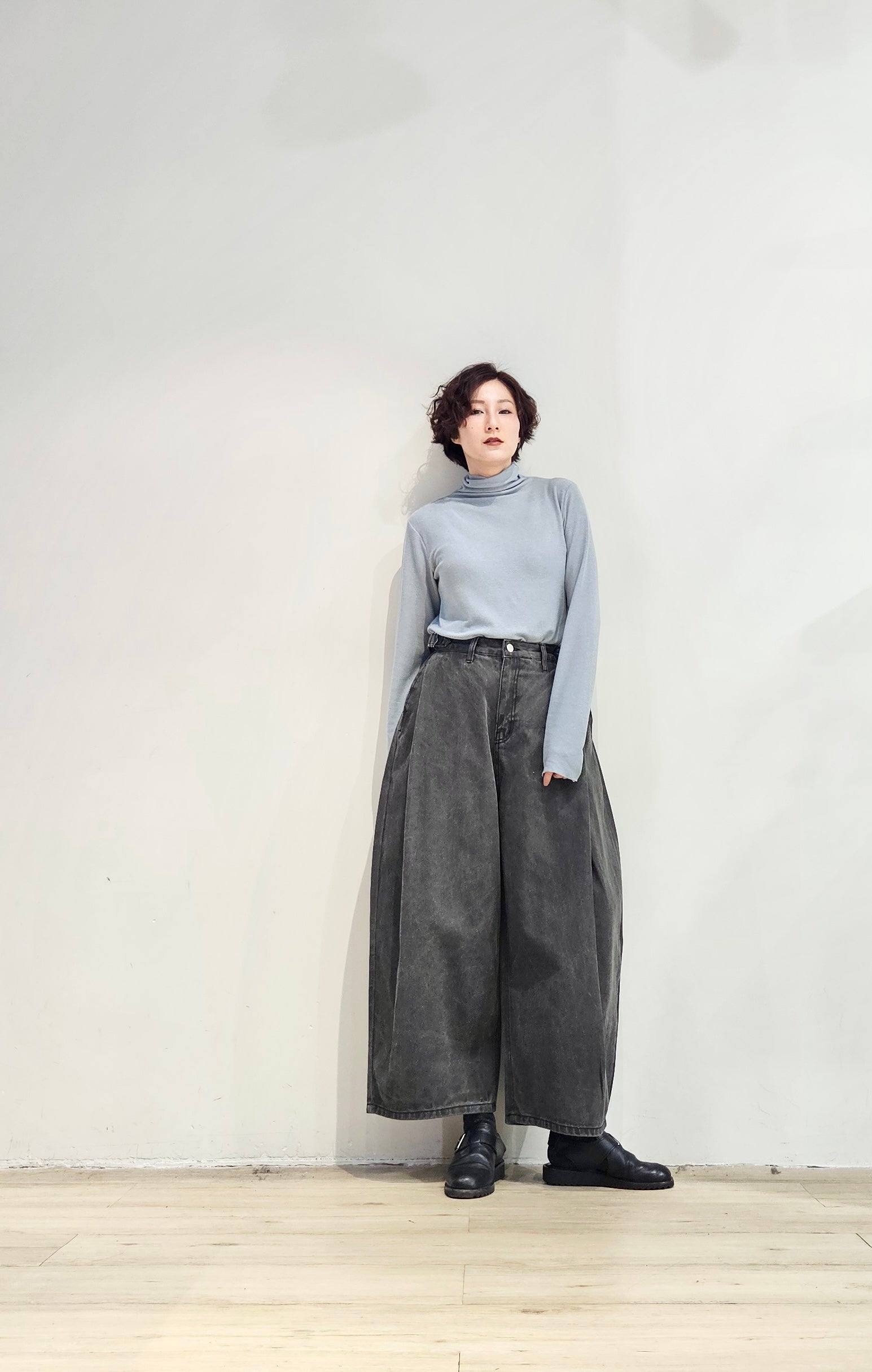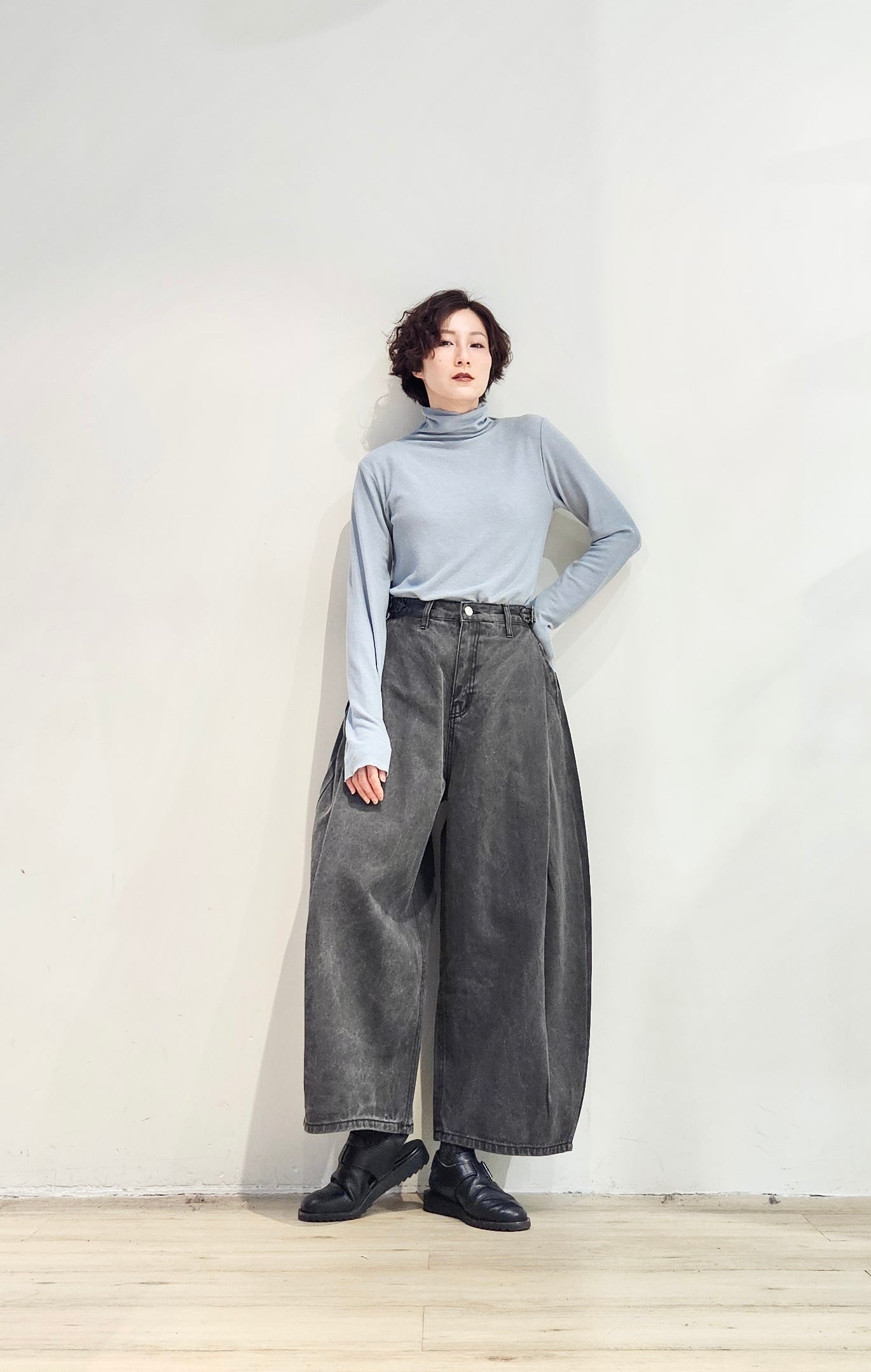 Side pleated washed denim peg pants - 2 colours (Pre-order)