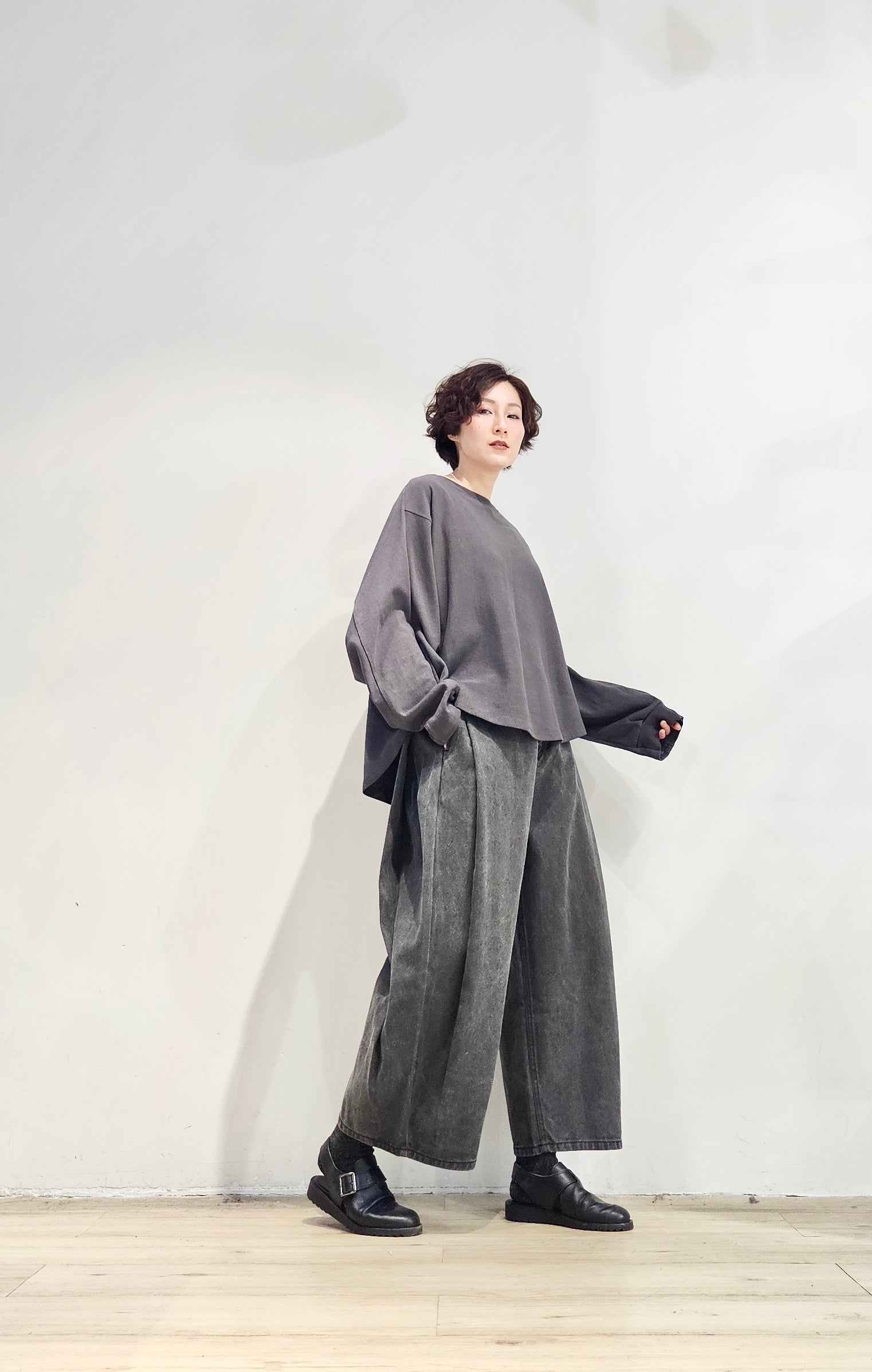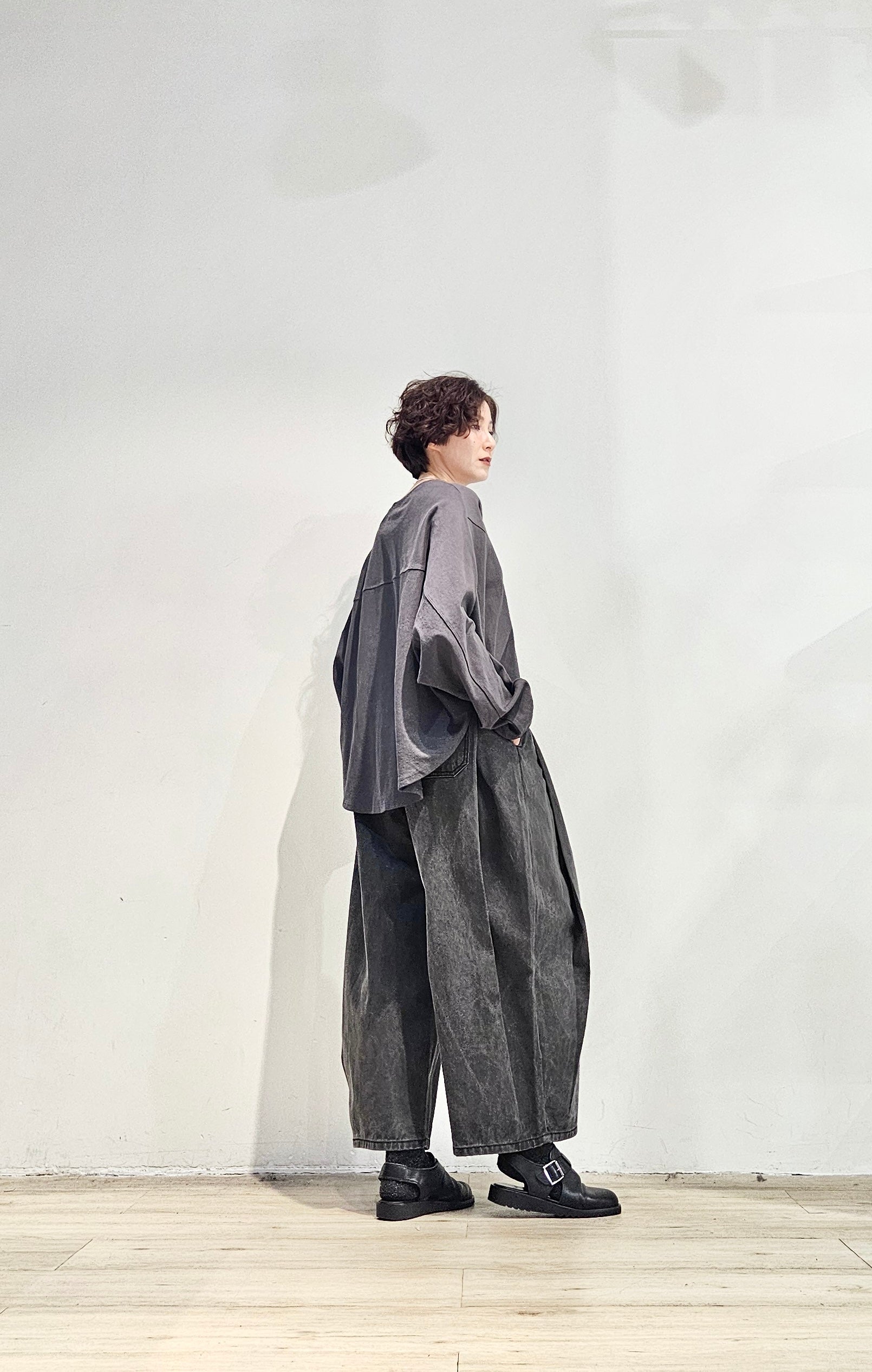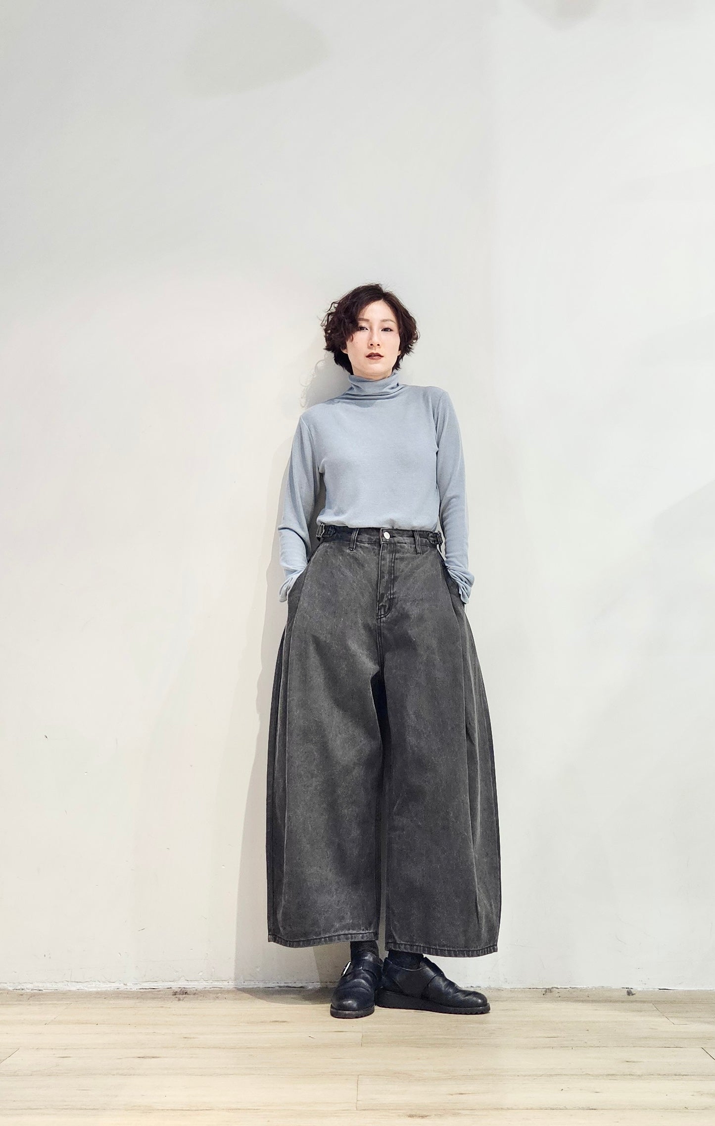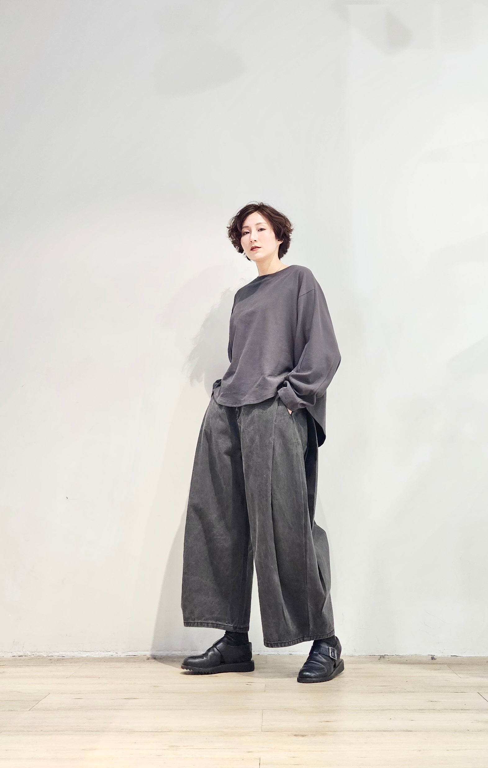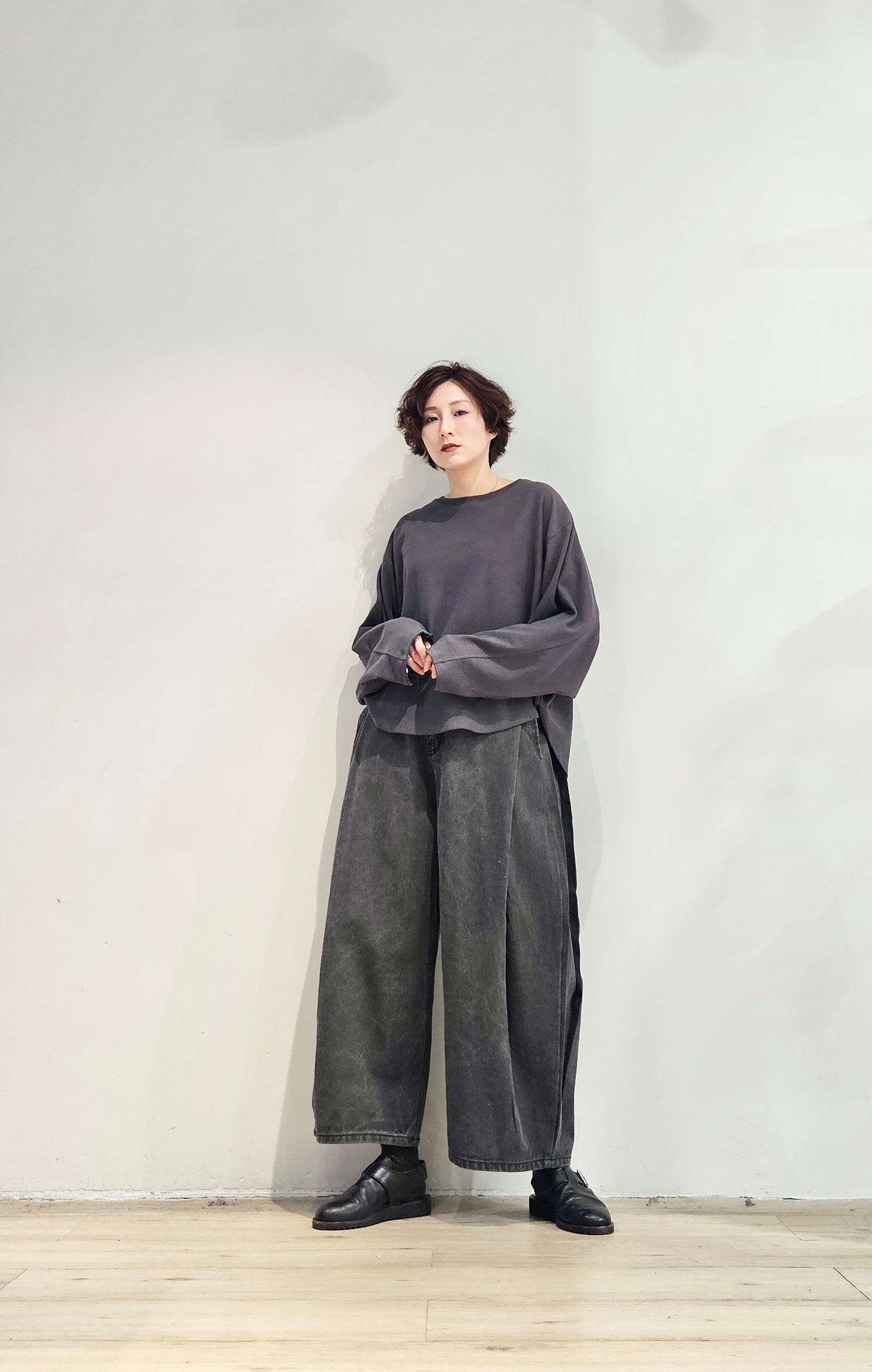 Side pleated washed denim peg pants - 2 colours (Pre-order)