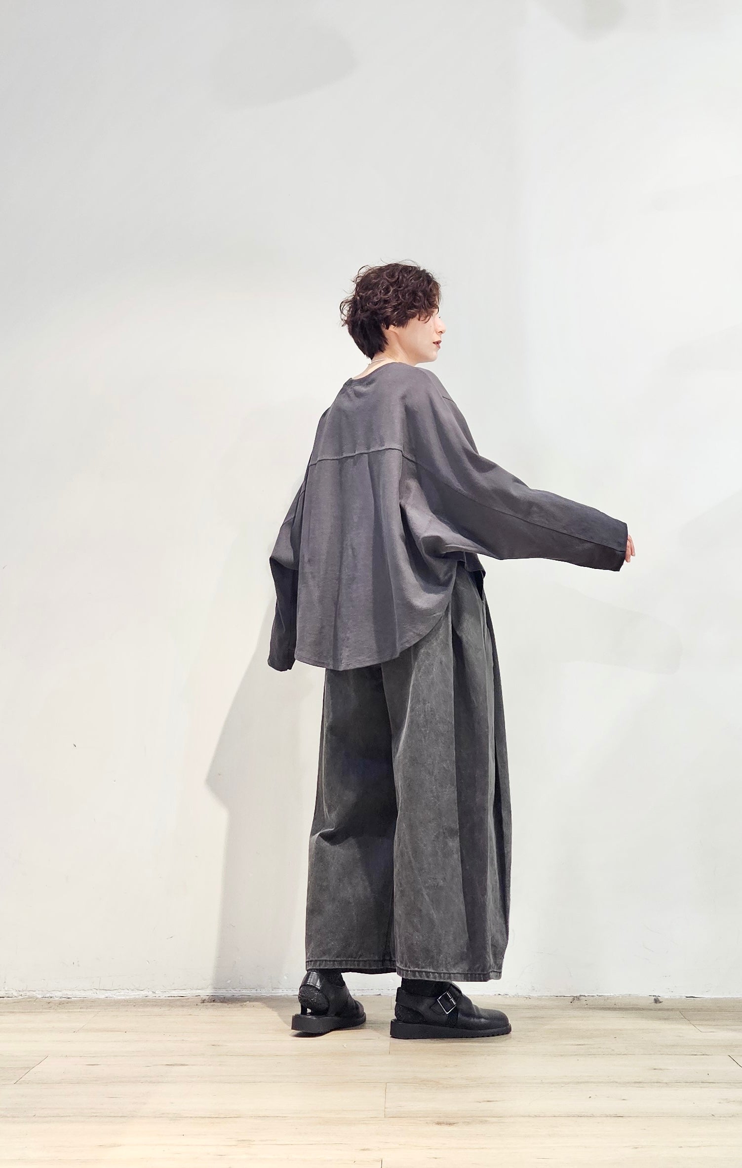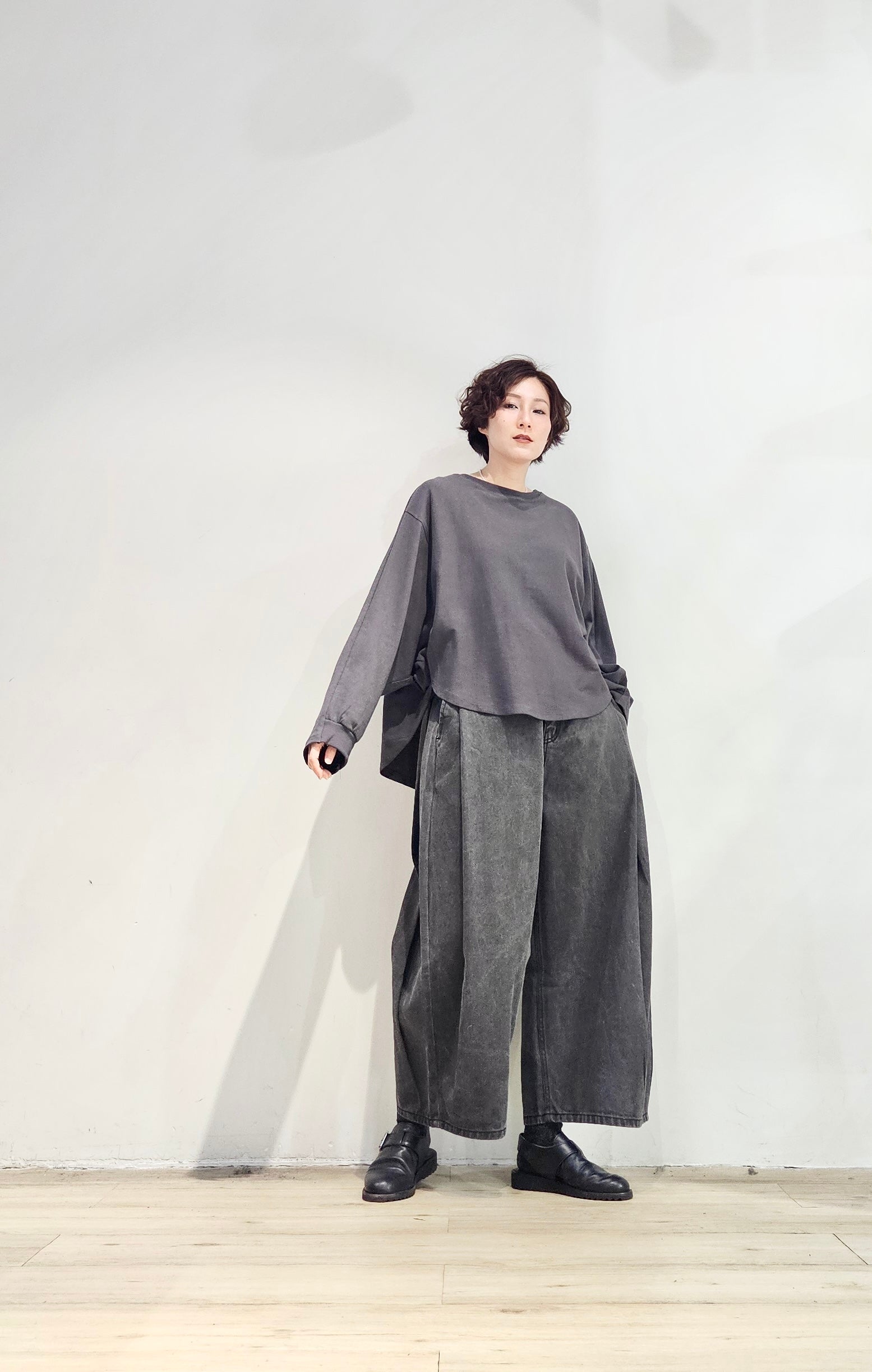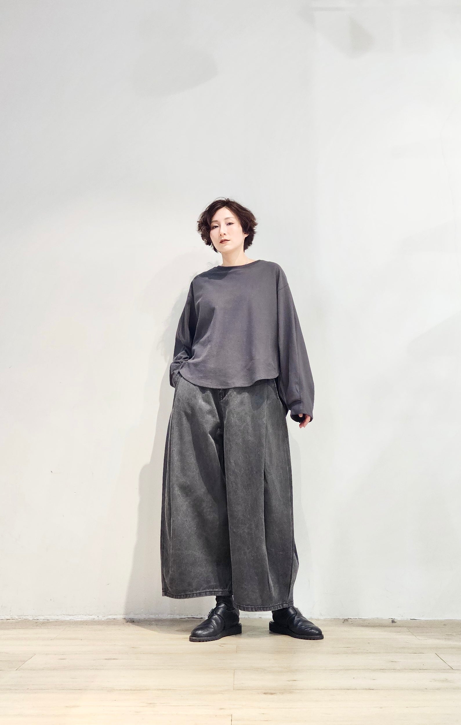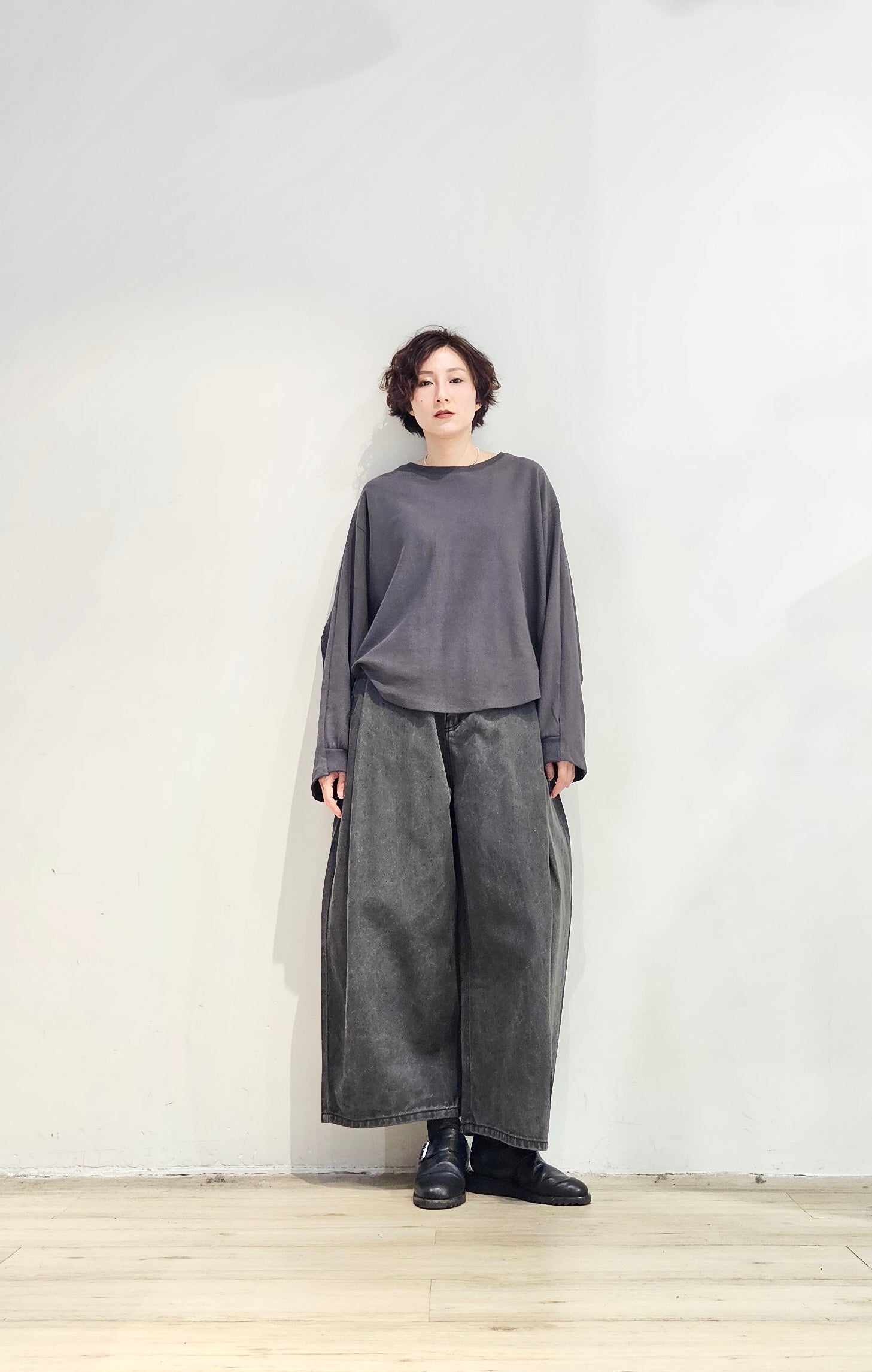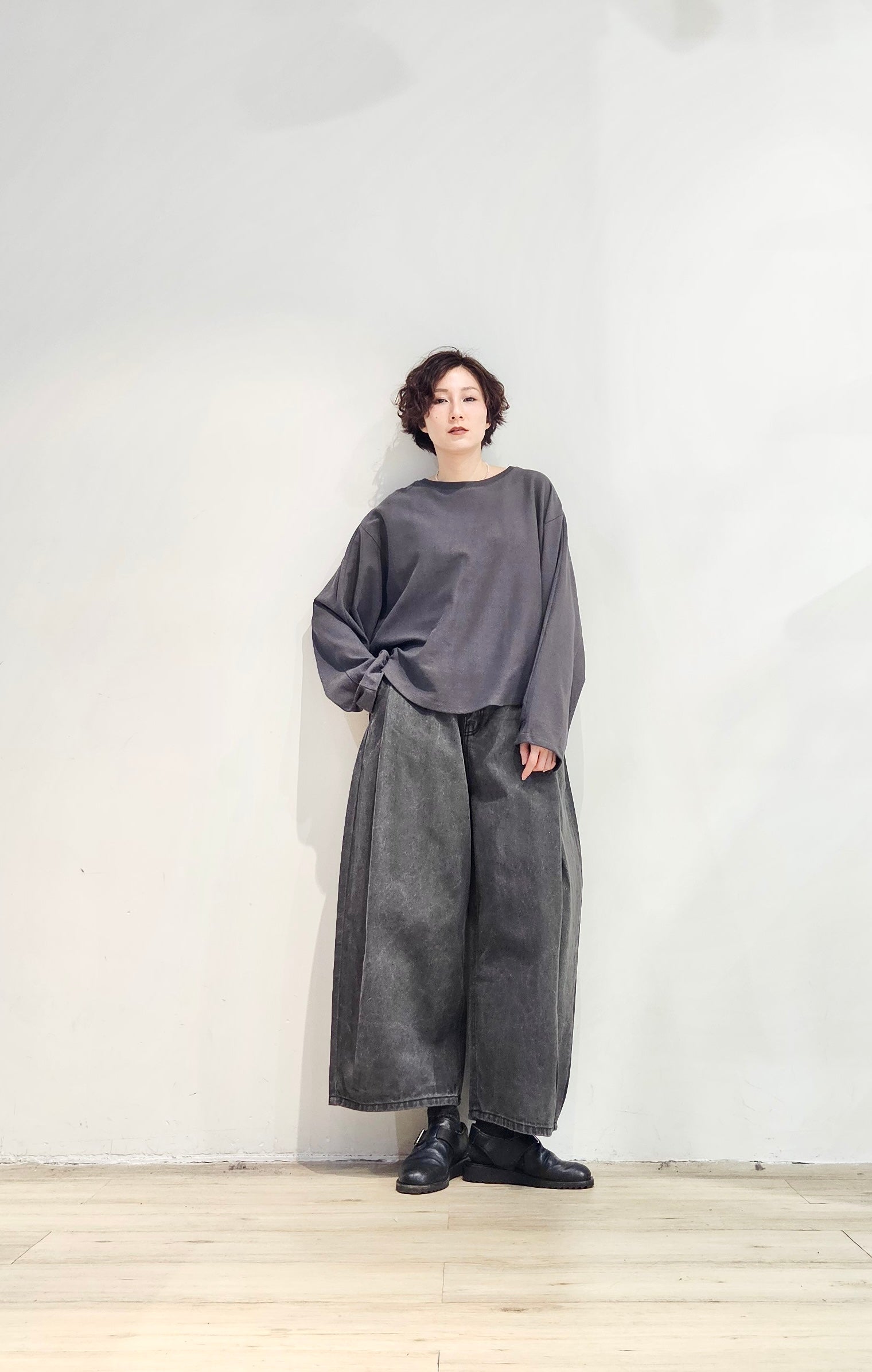 Side pleated washed denim peg pants - 2 colours (Pre-order)