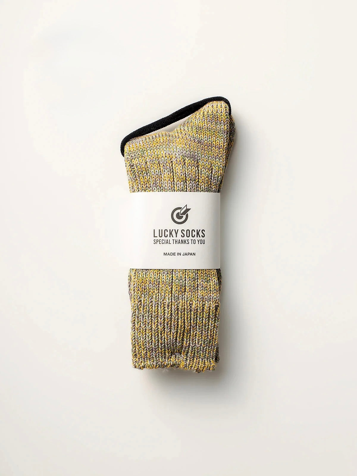 LUCKY SOCKS - Multi colour rib socks Olive-Yellow