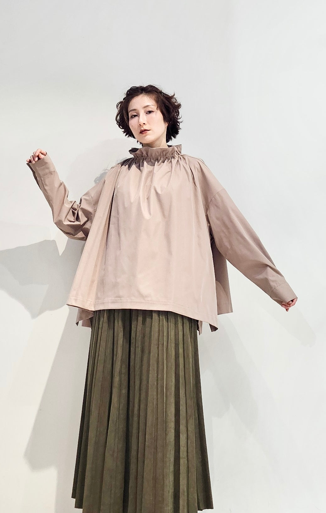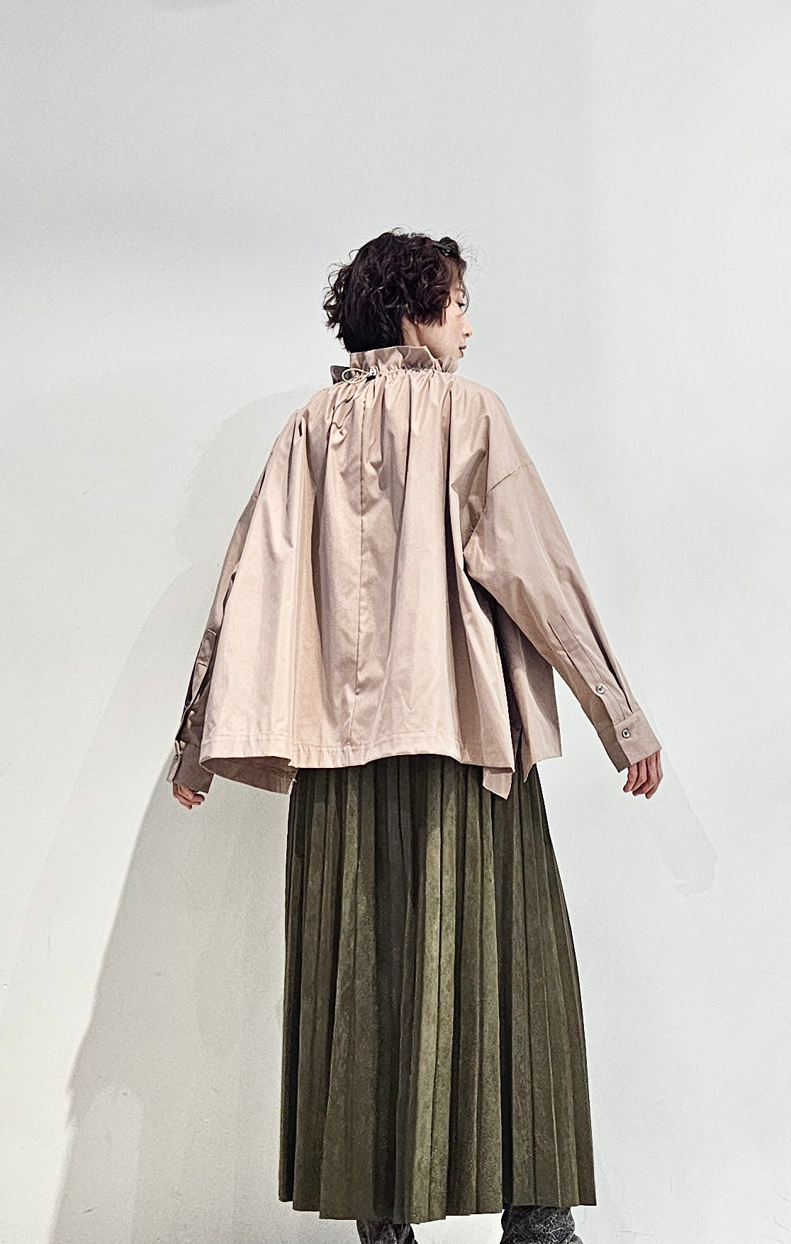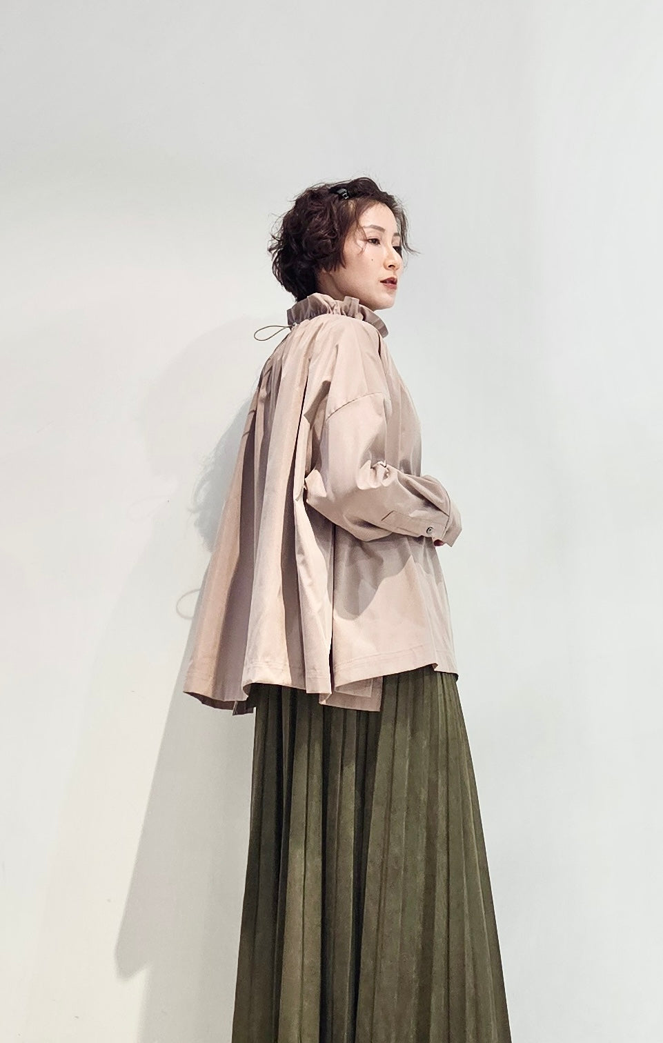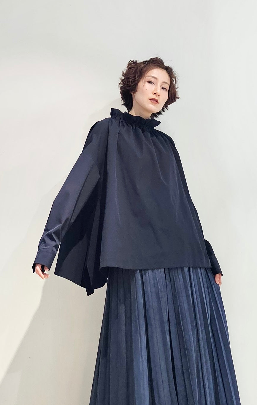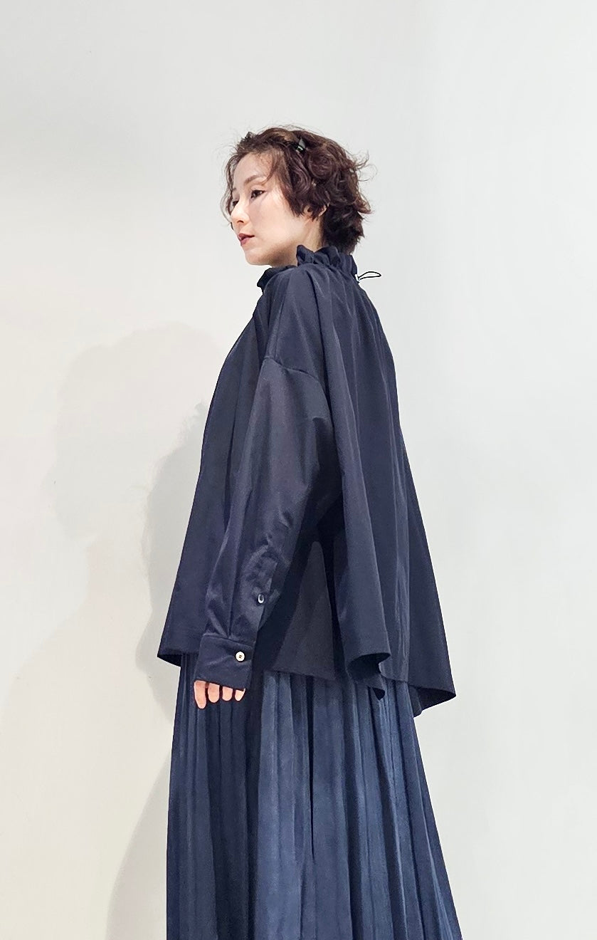 Stand collar drawstrings blouse - 2 colours (pre-order)