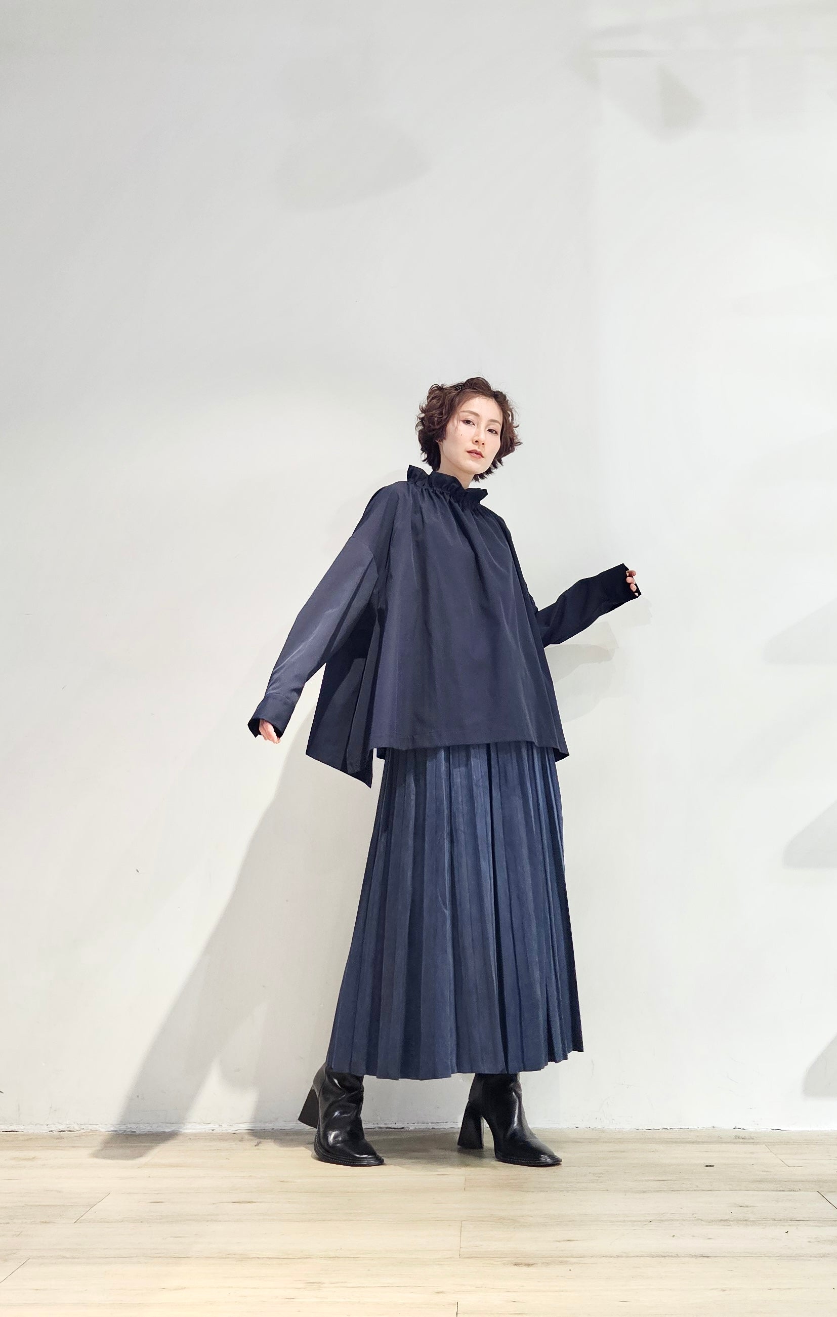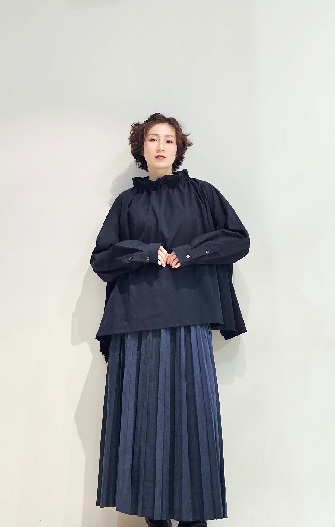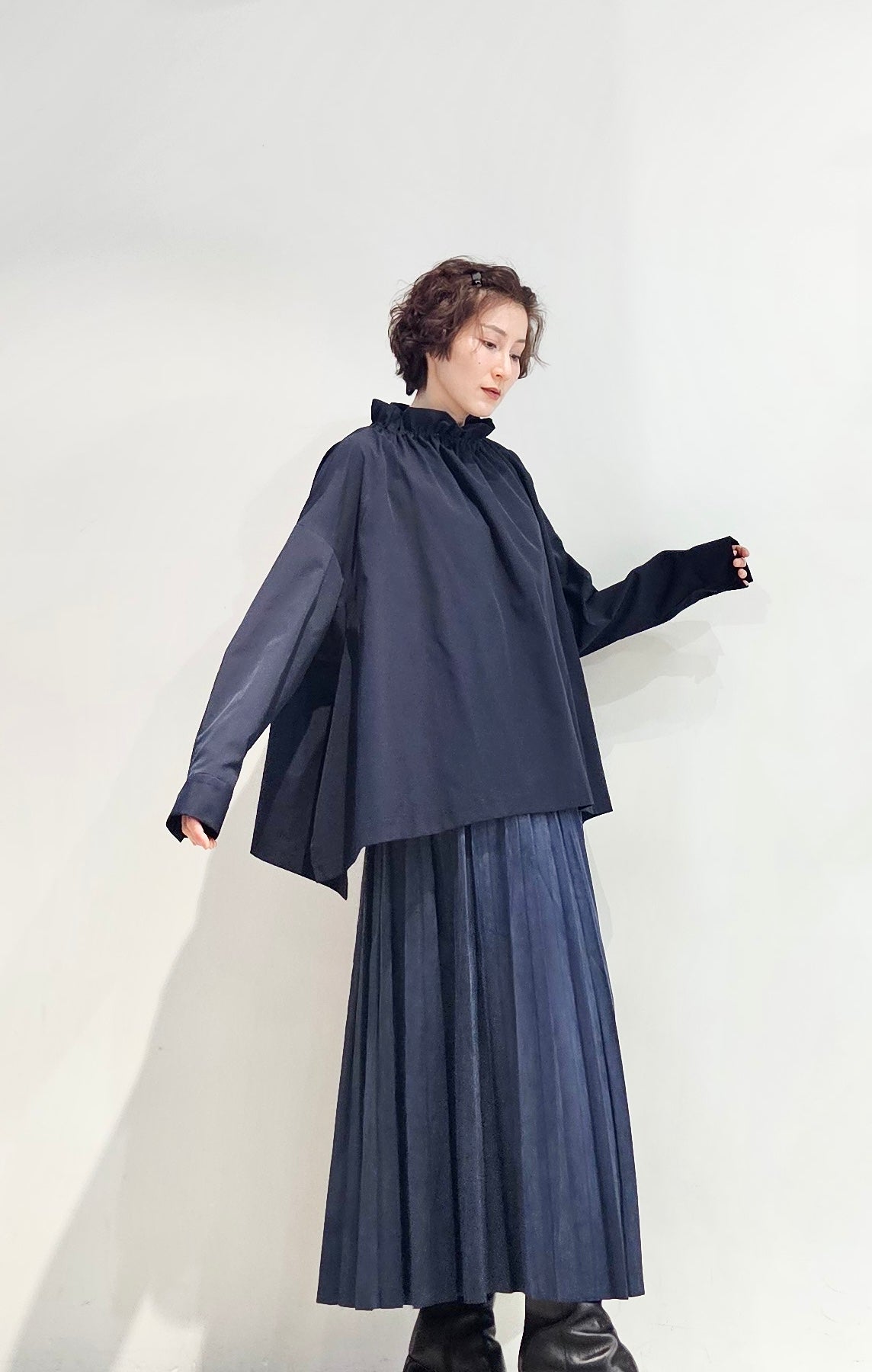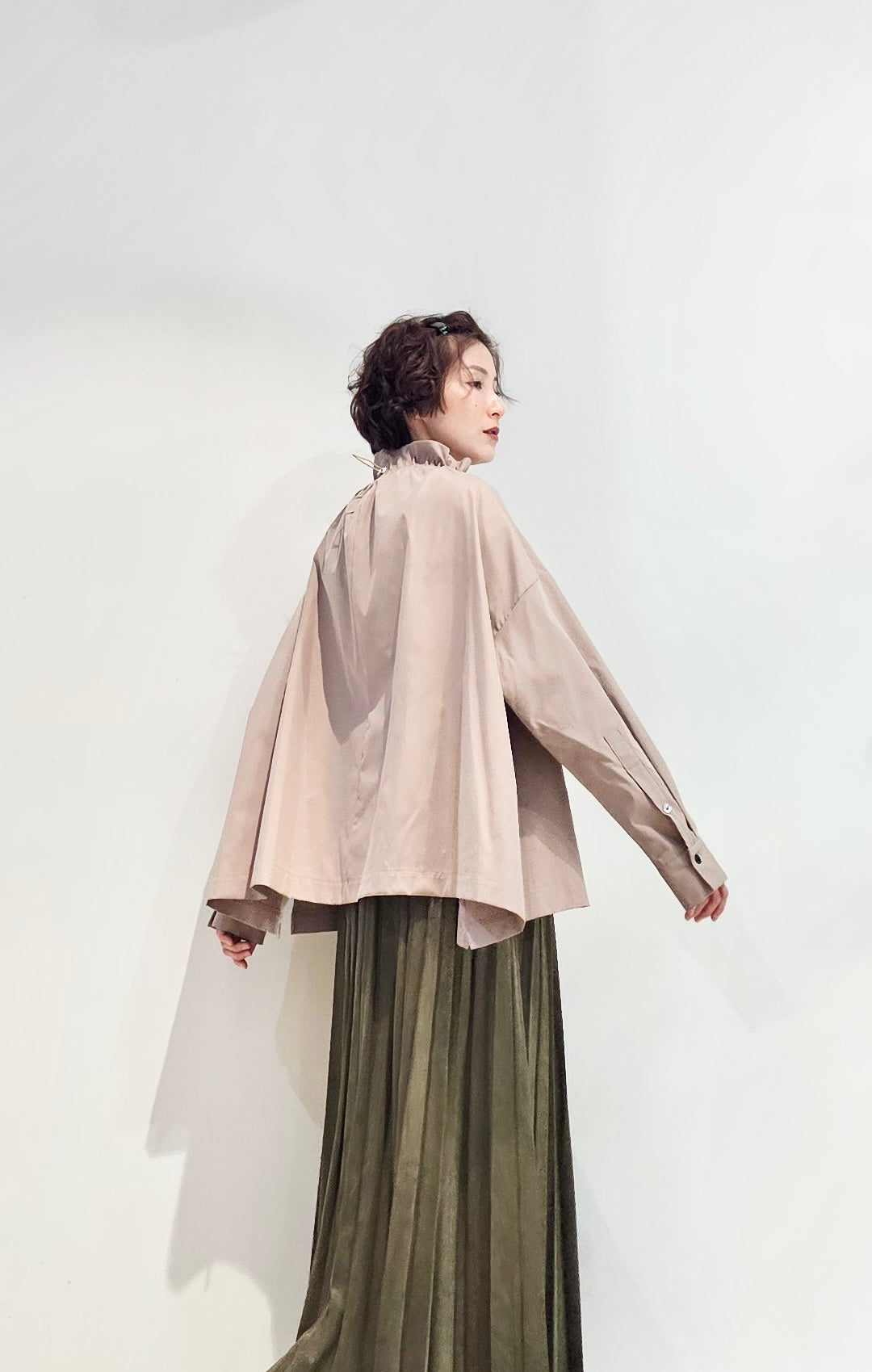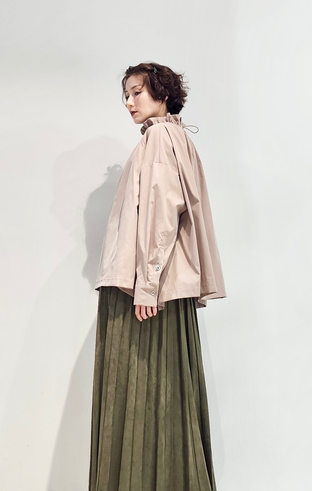 Stand collar drawstrings blouse - 2 colours (pre-order)