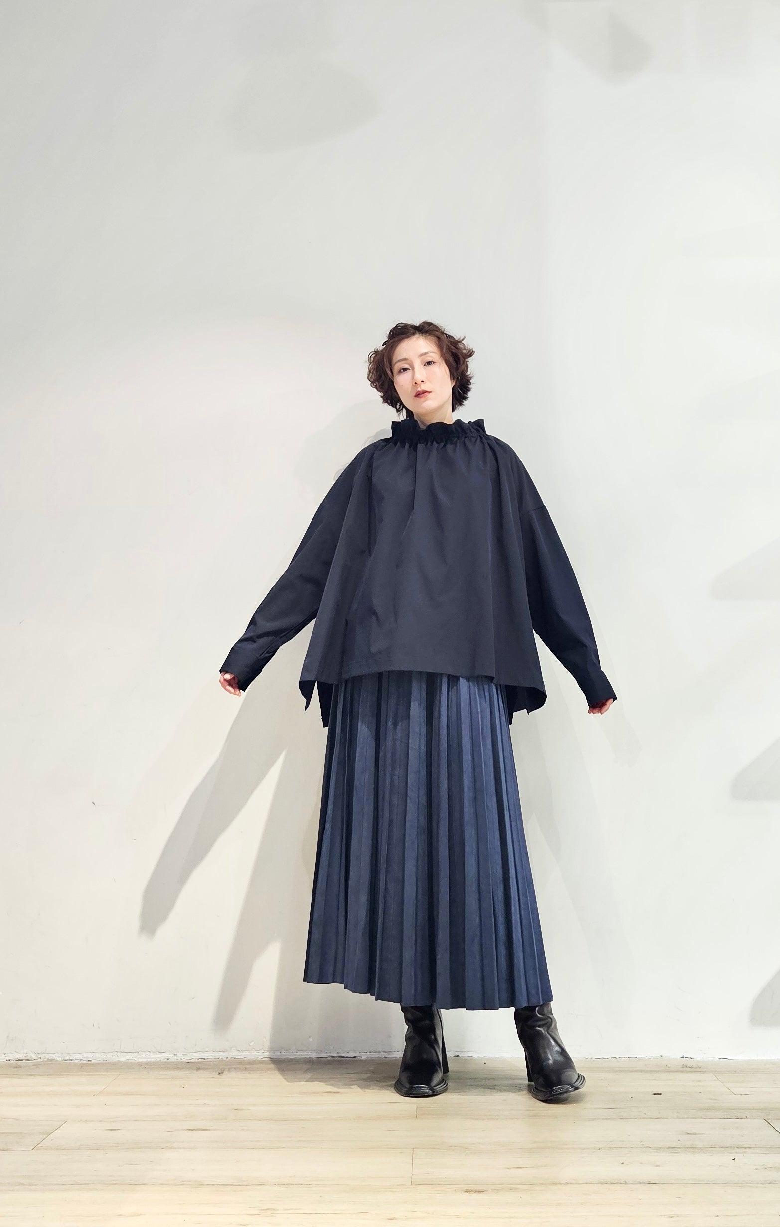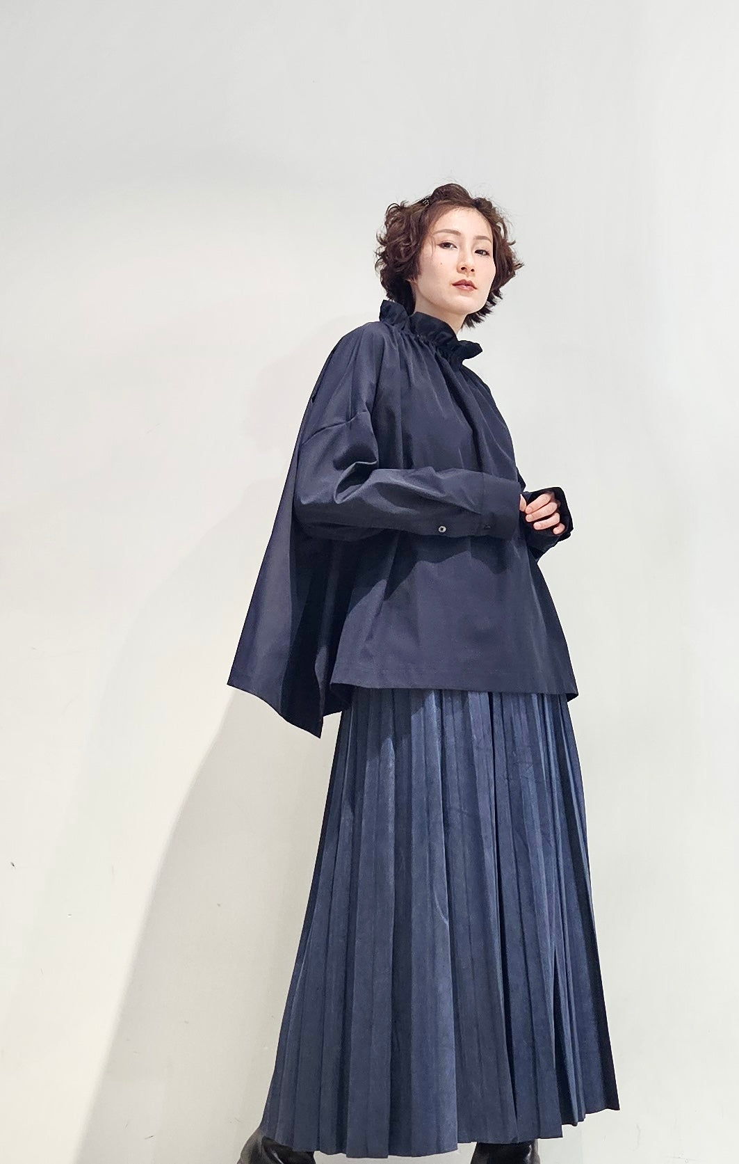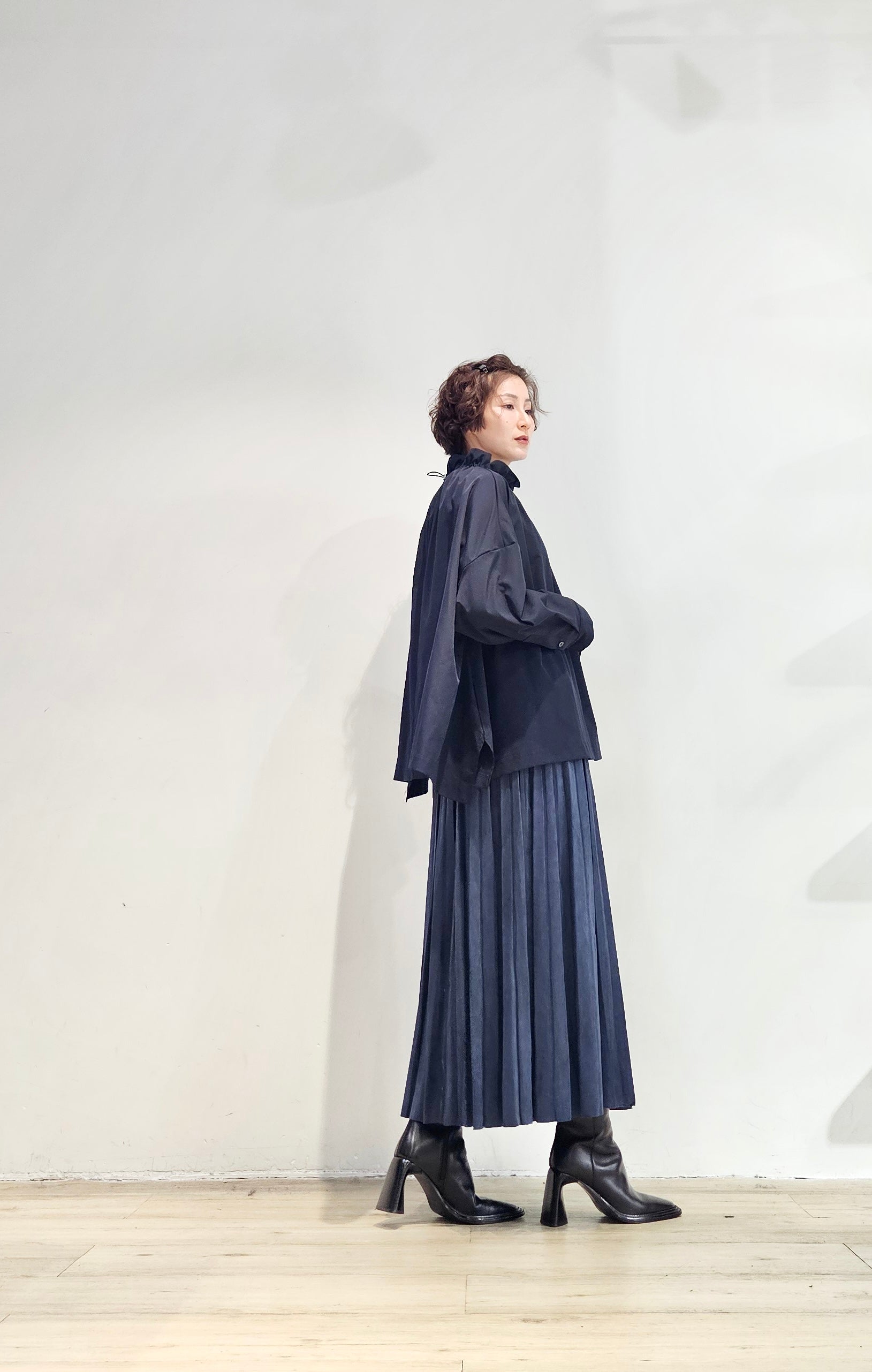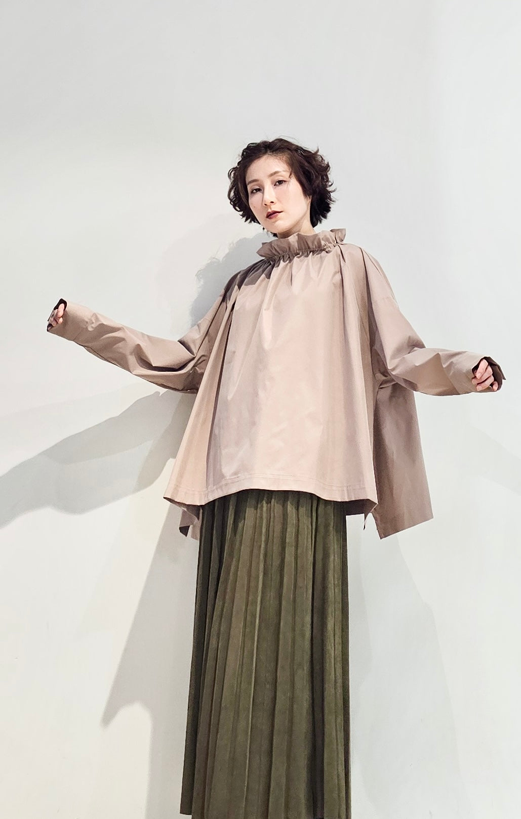 Stand collar drawstrings blouse - 2 colours (pre-order)