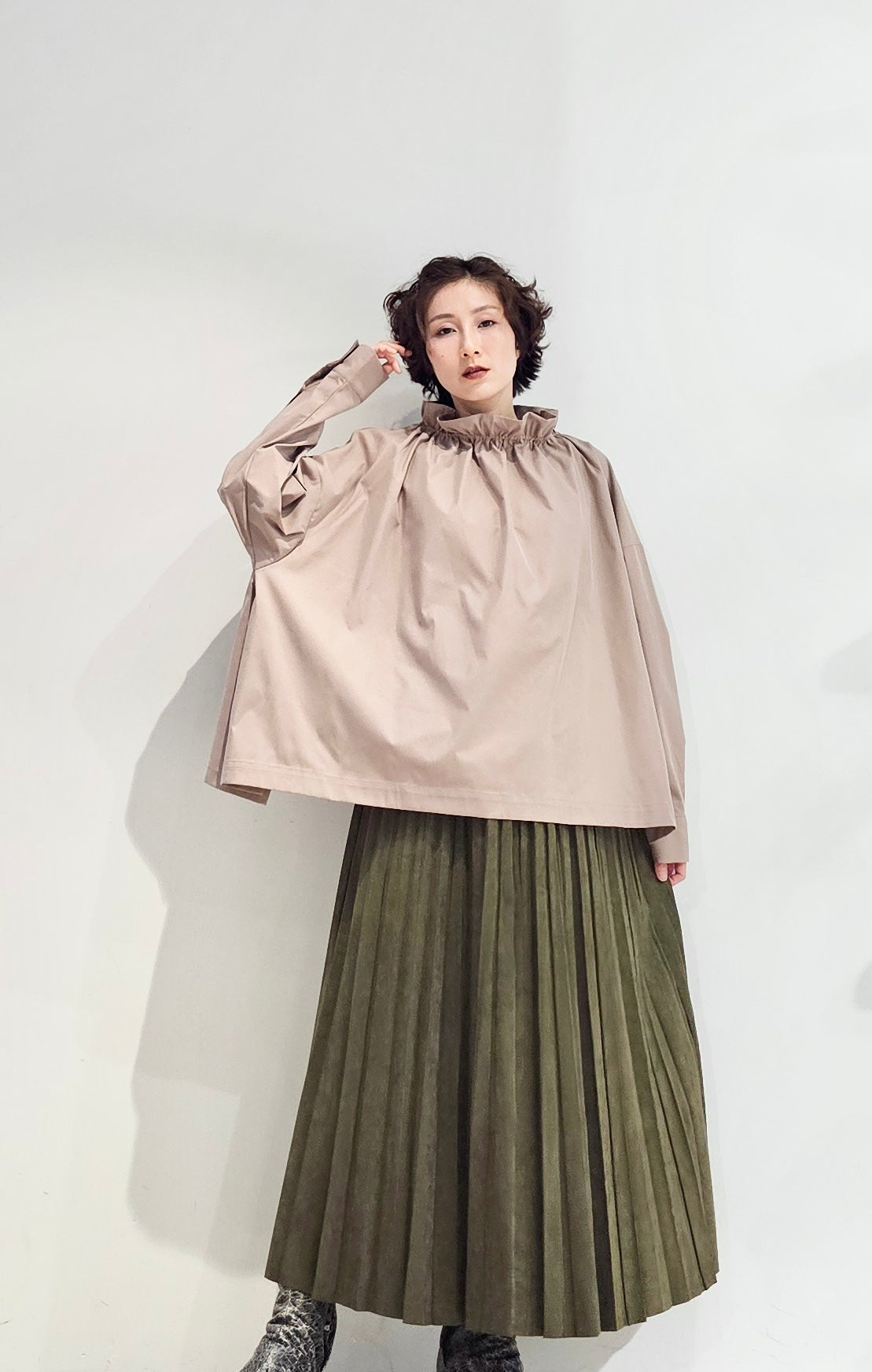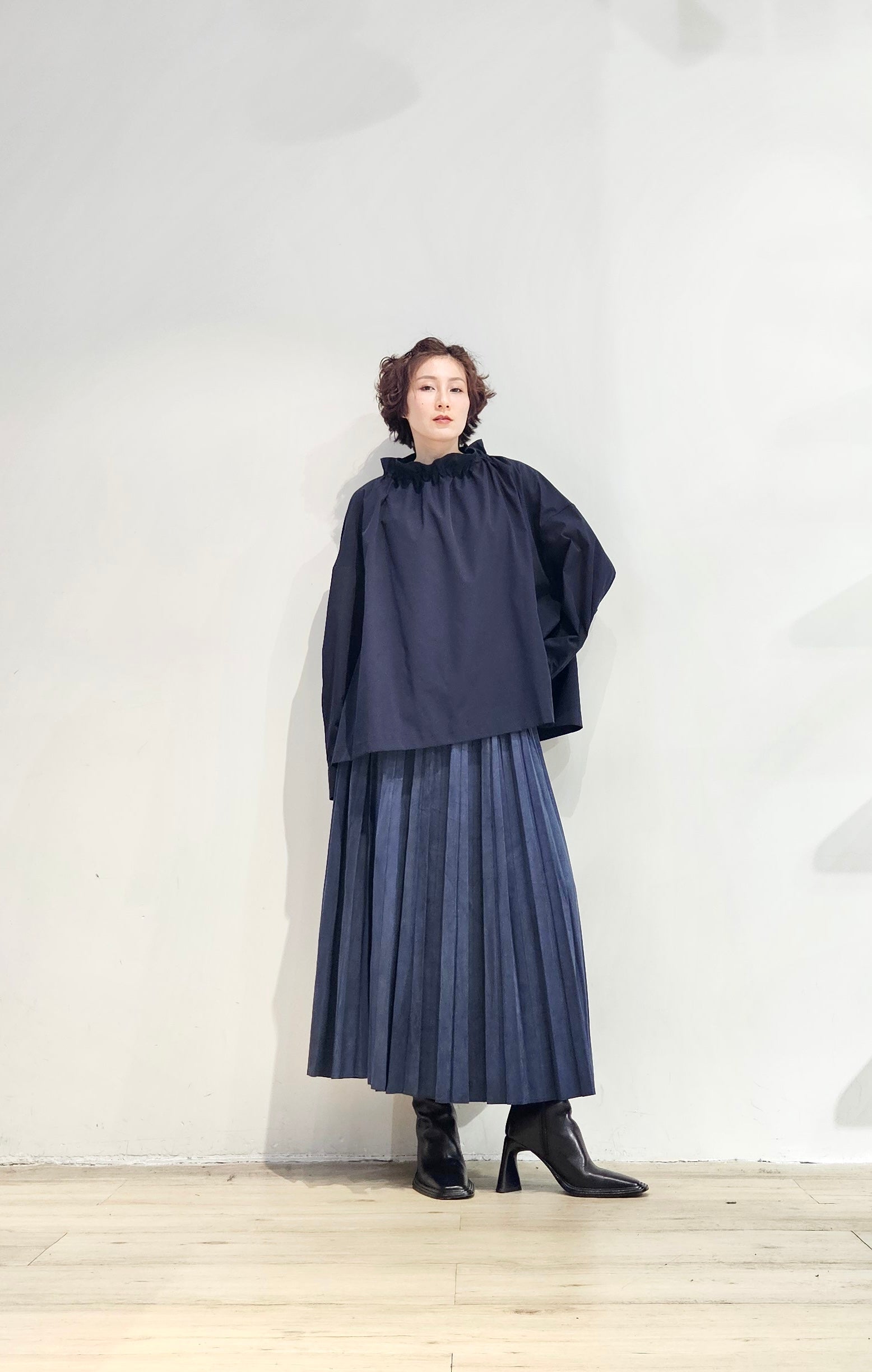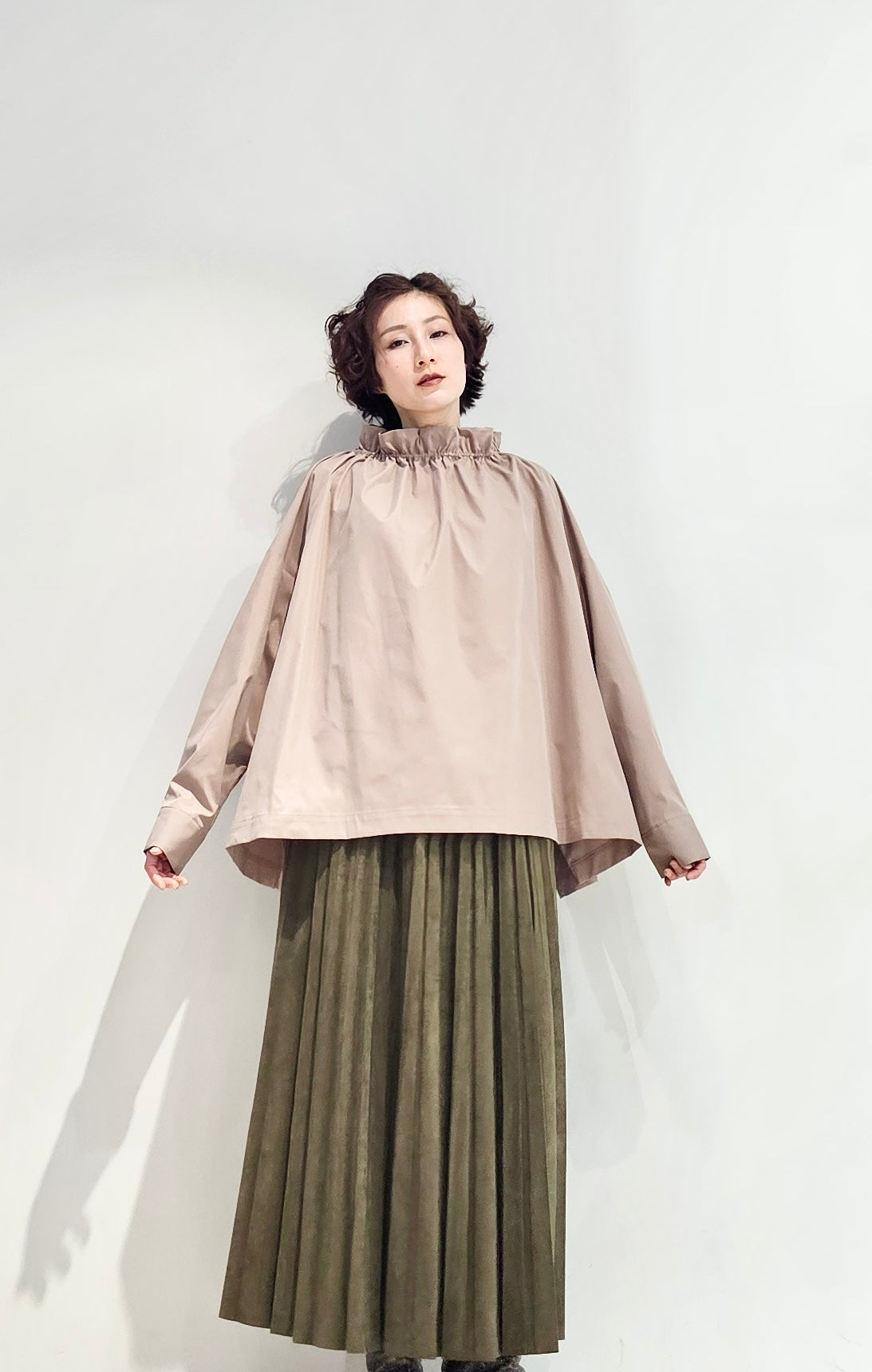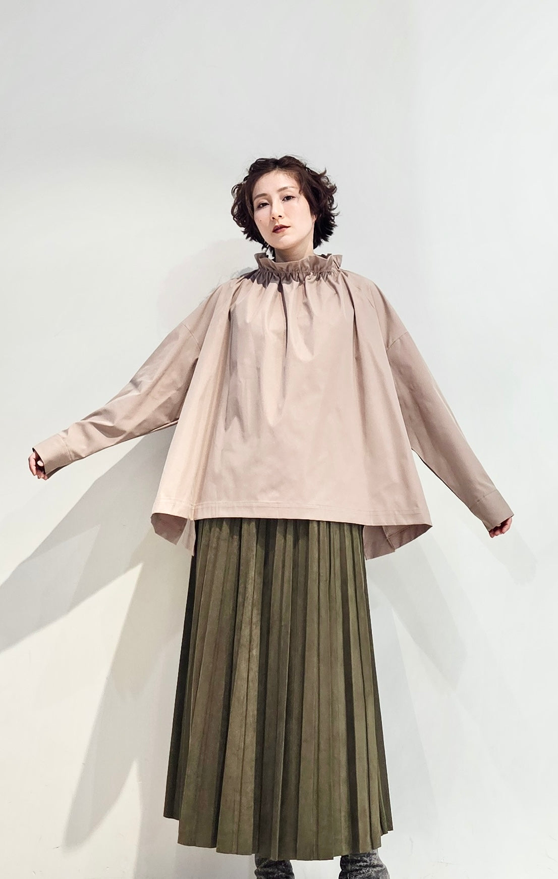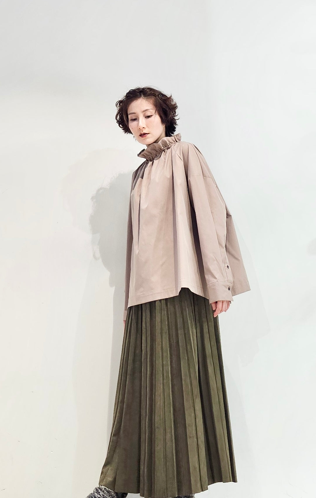 Stand collar drawstrings blouse - 2 colours (pre-order)