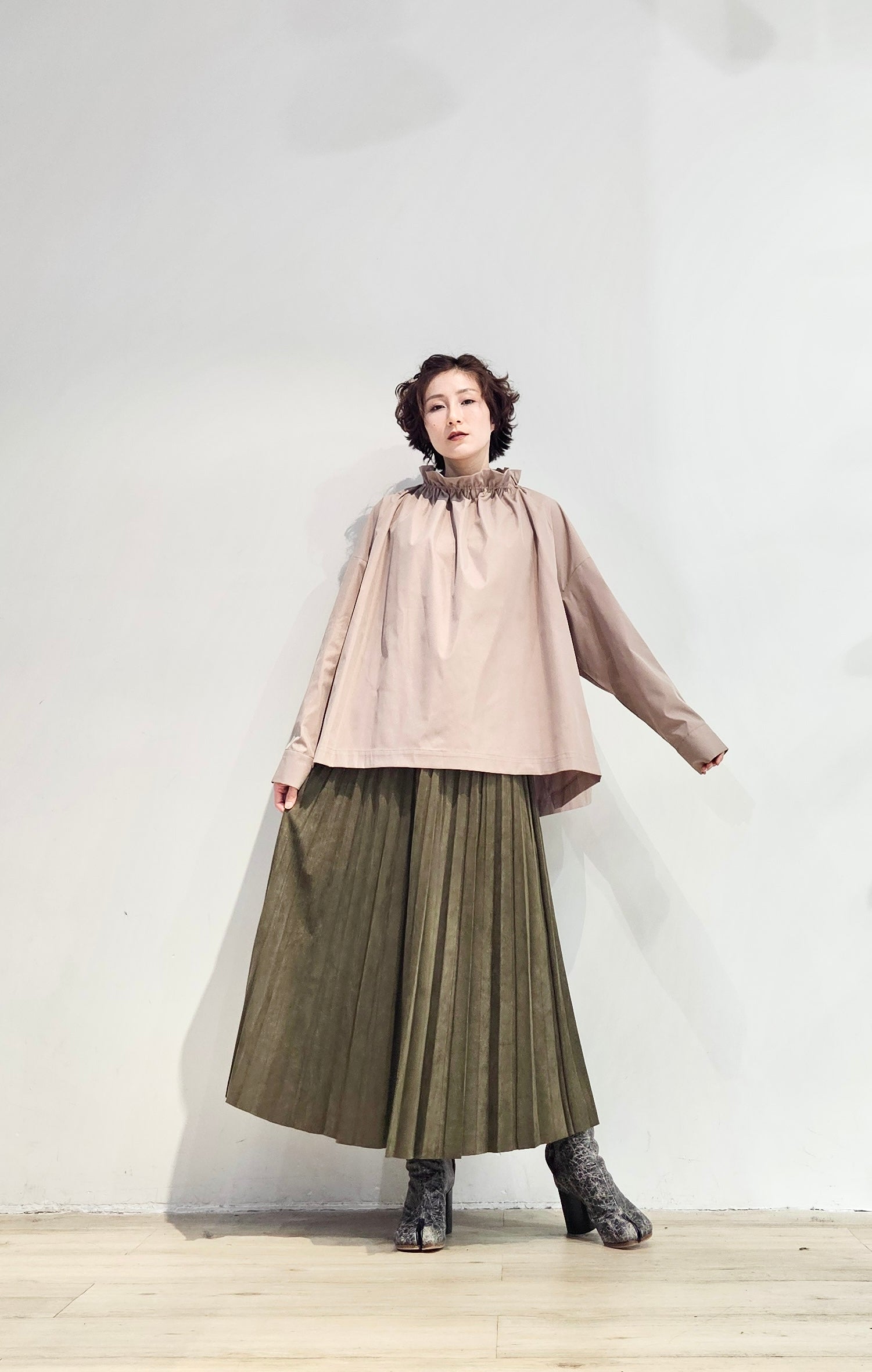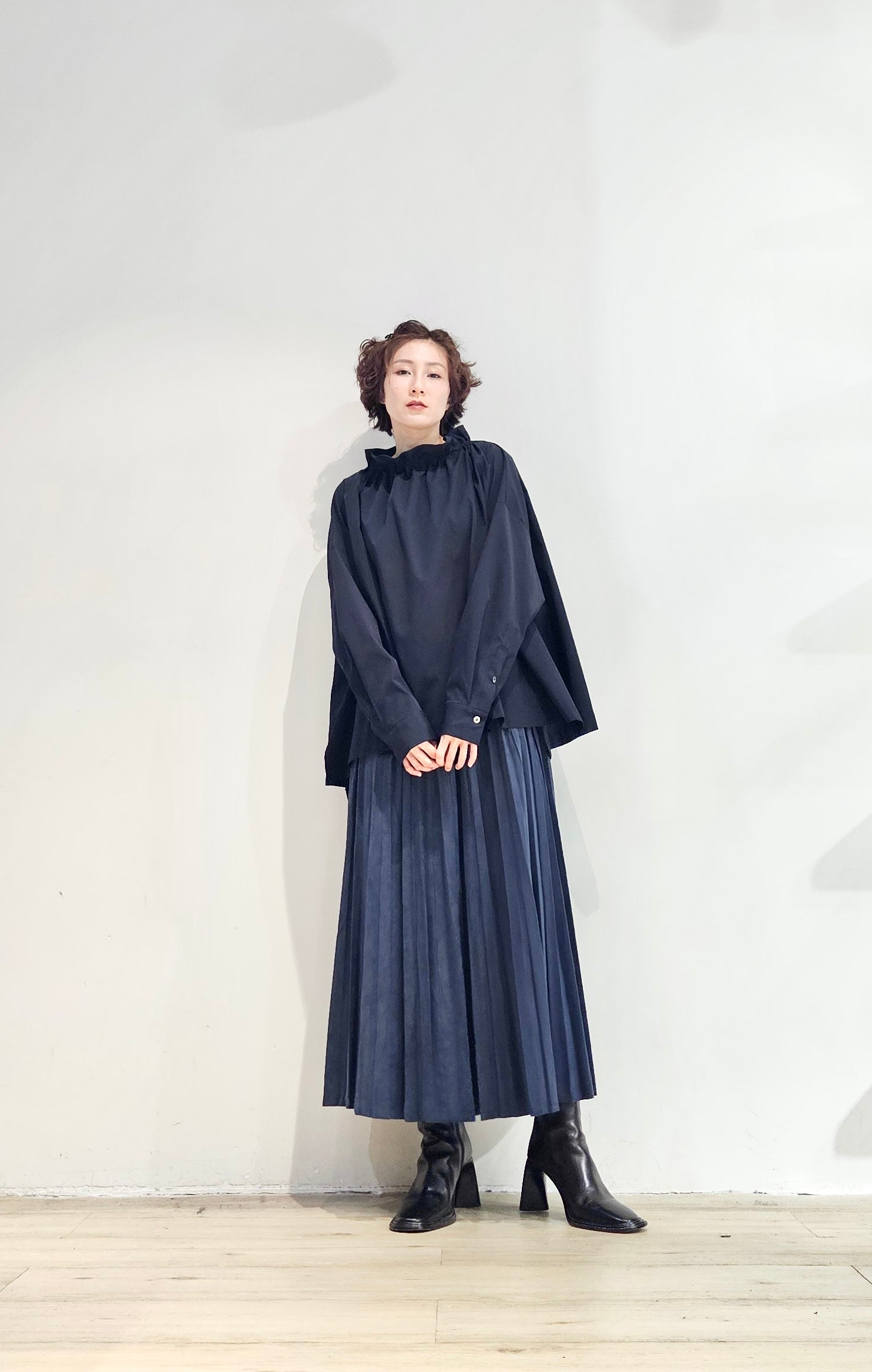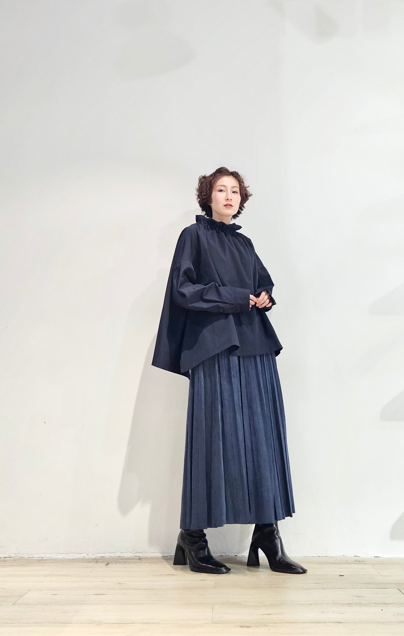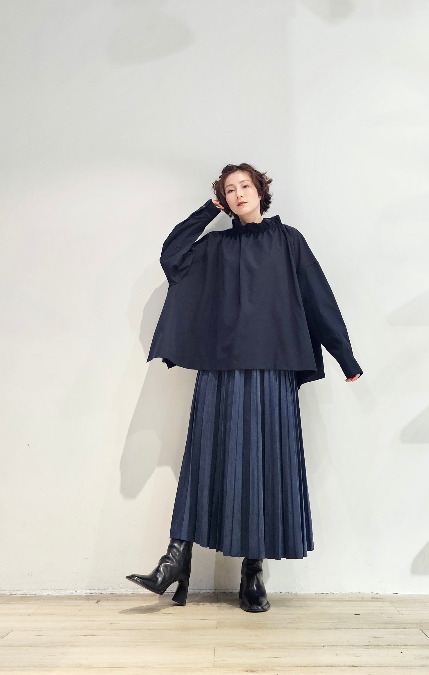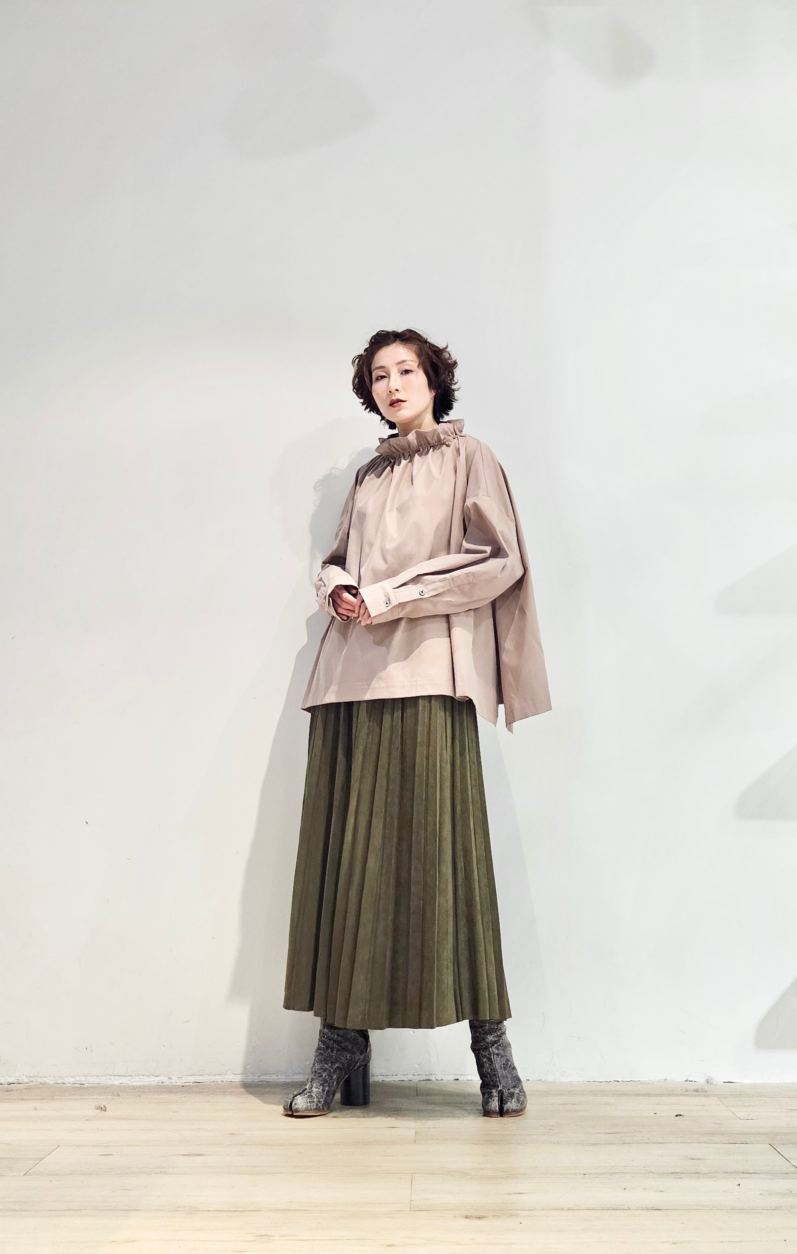 Stand collar drawstrings blouse - 2 colours (pre-order)
