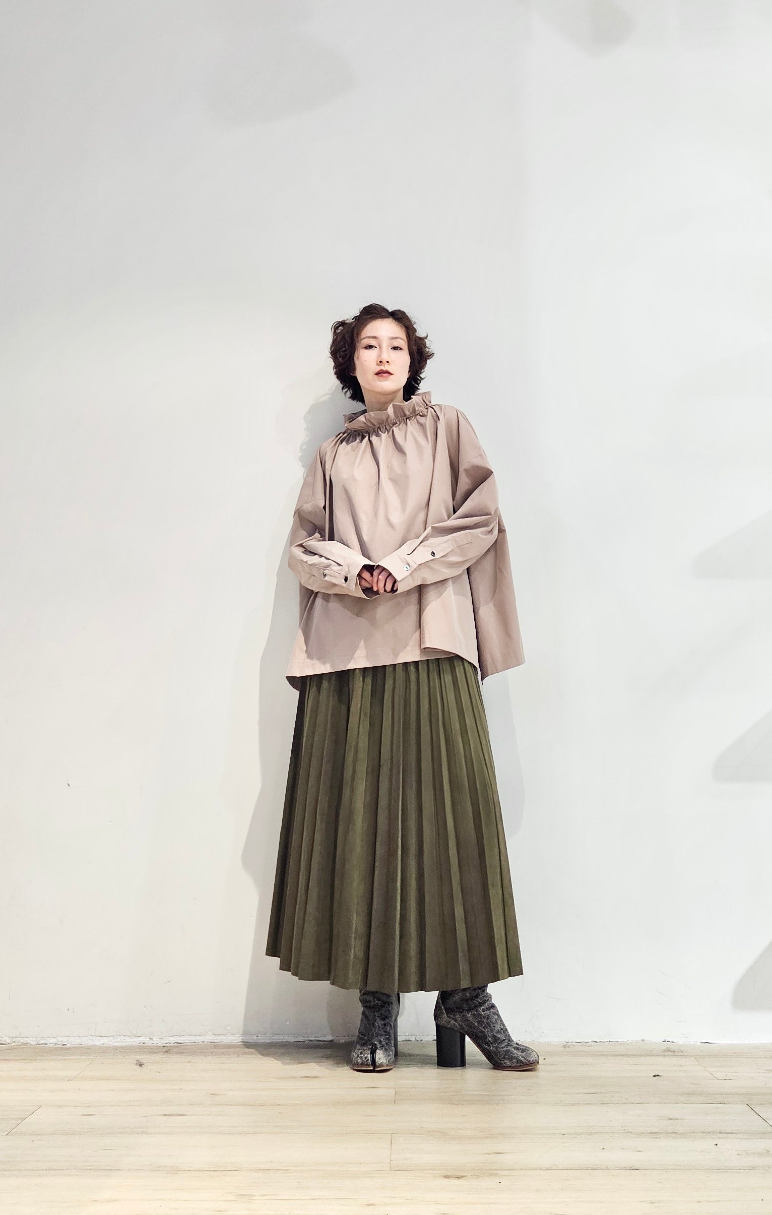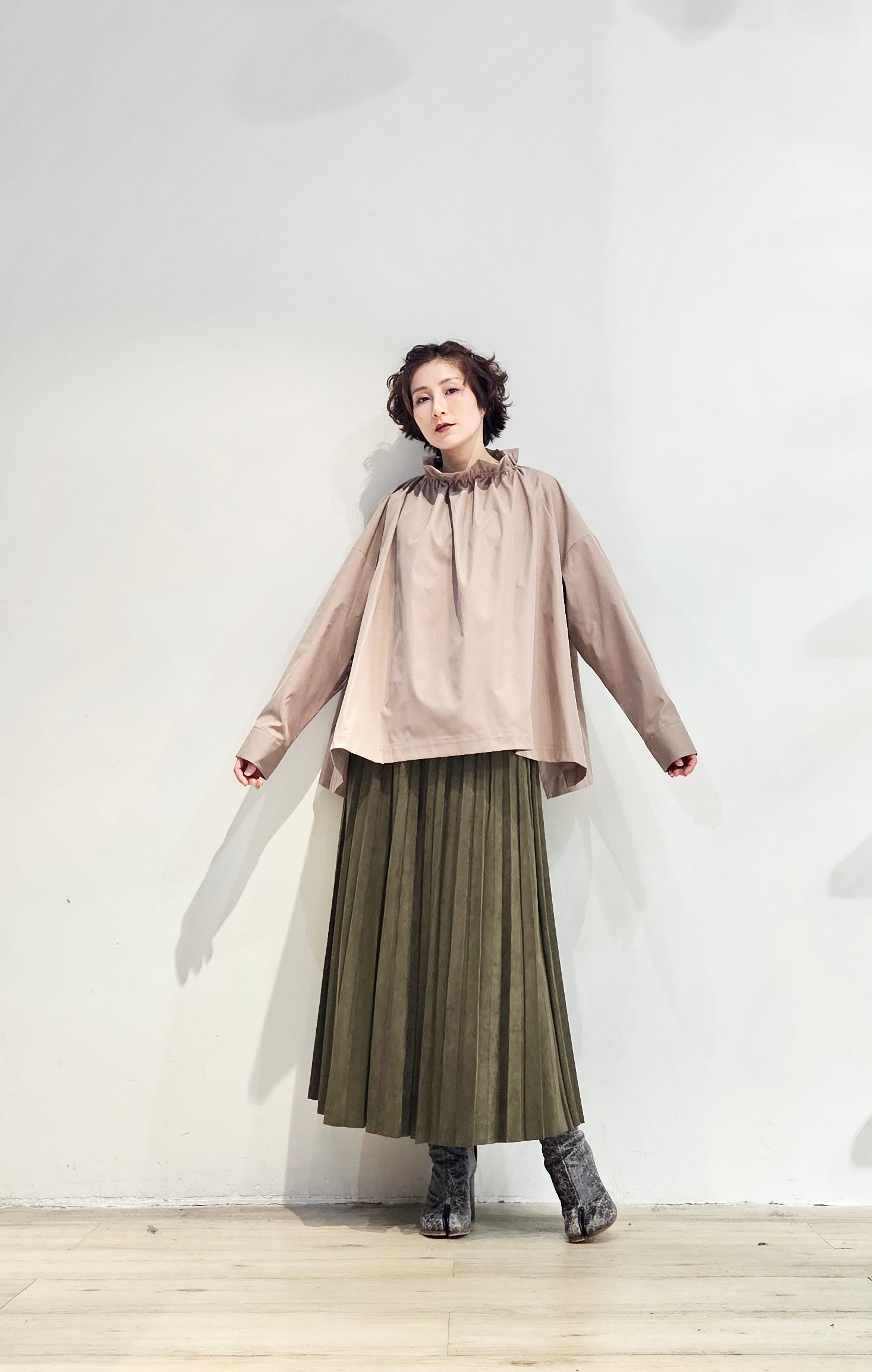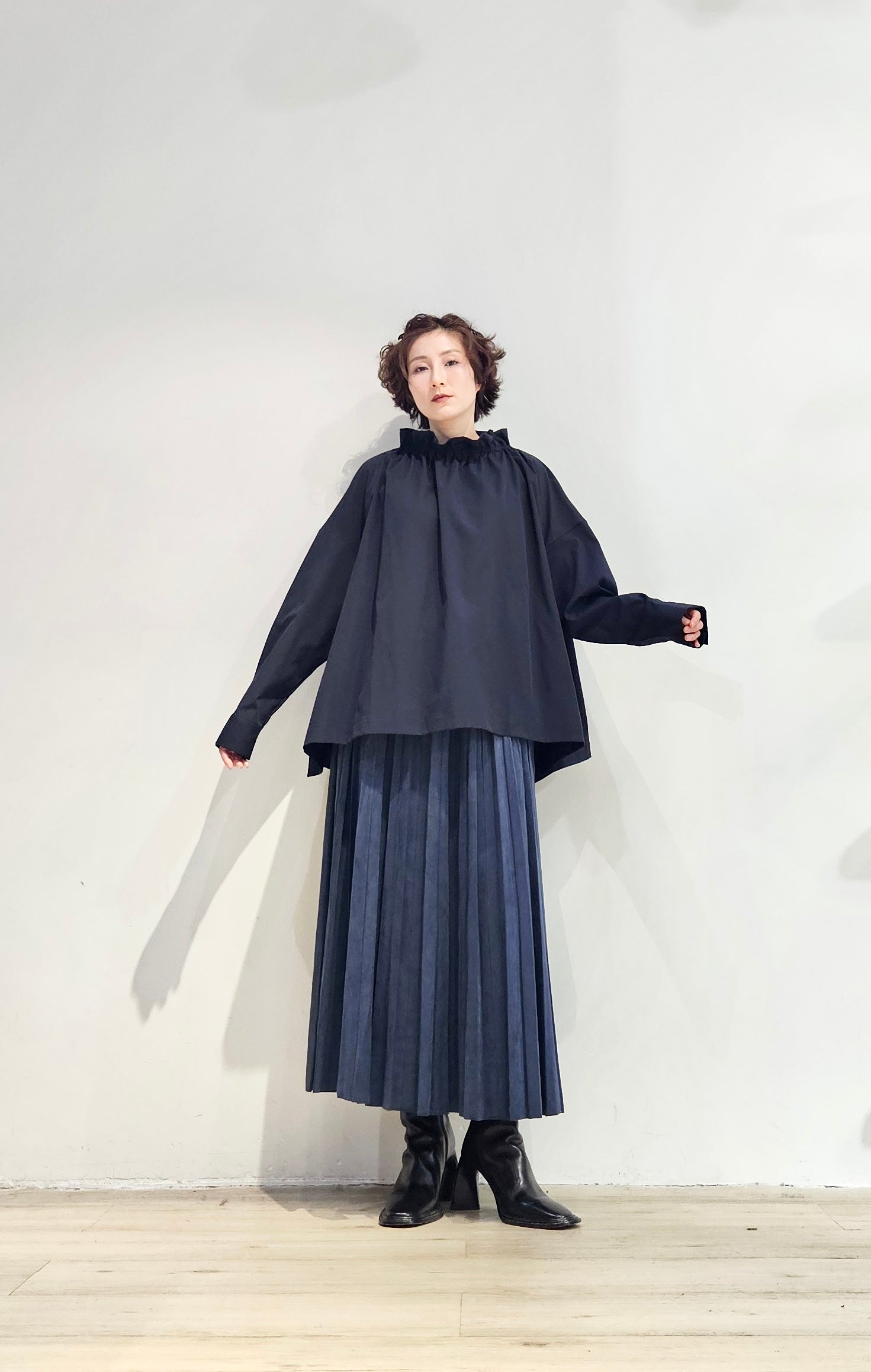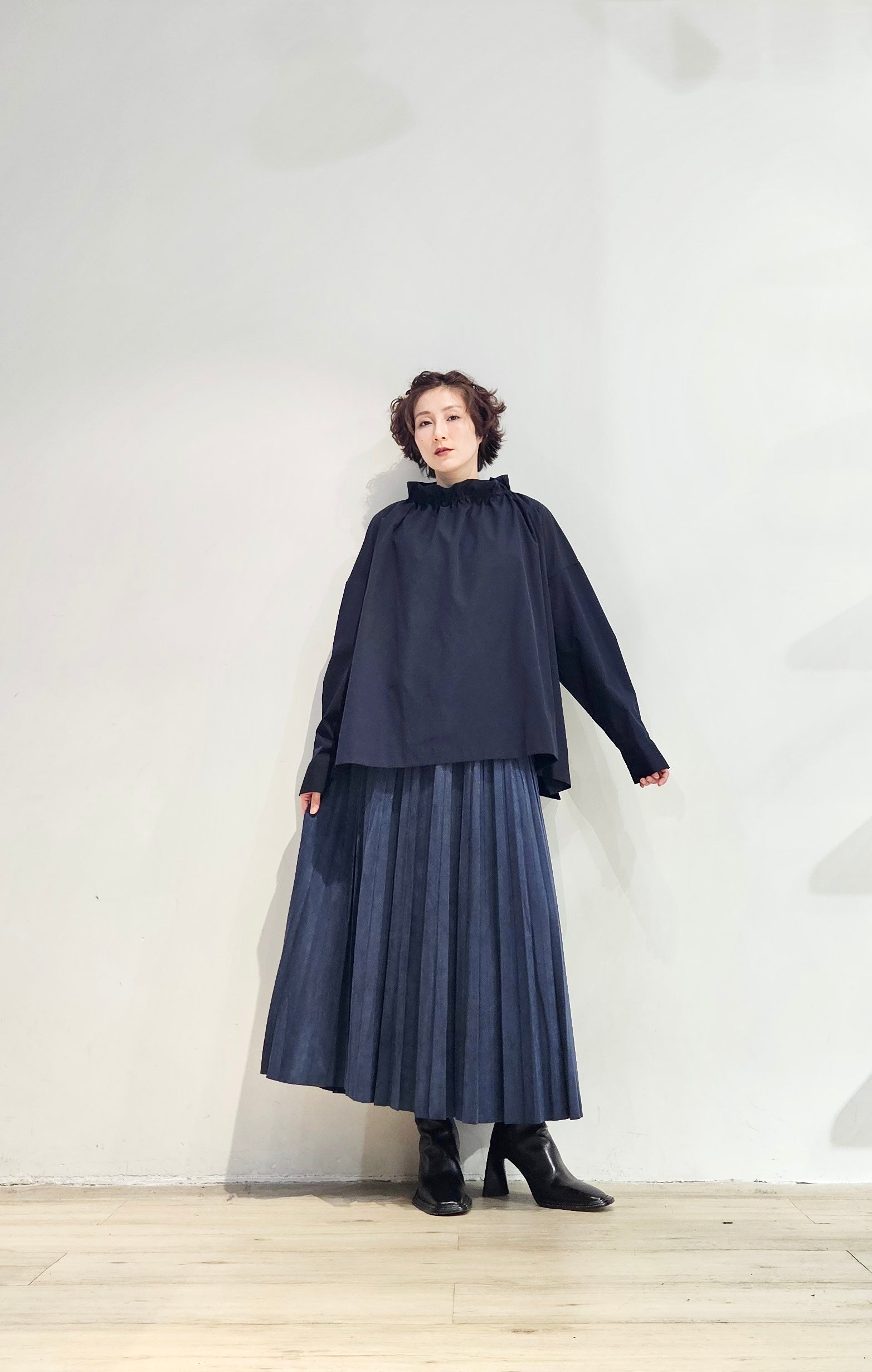 Stand collar drawstrings blouse - 2 colours (pre-order)