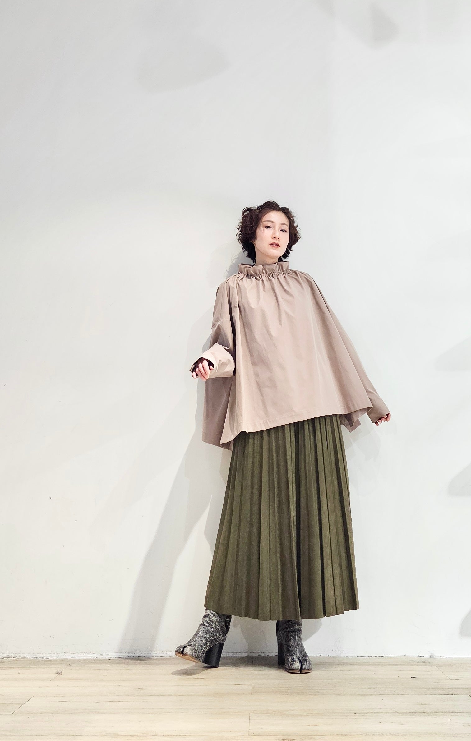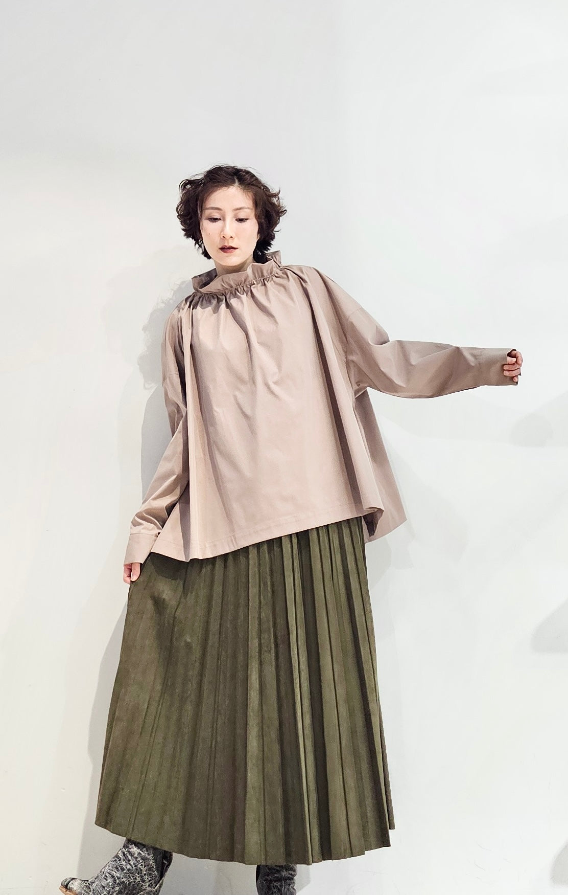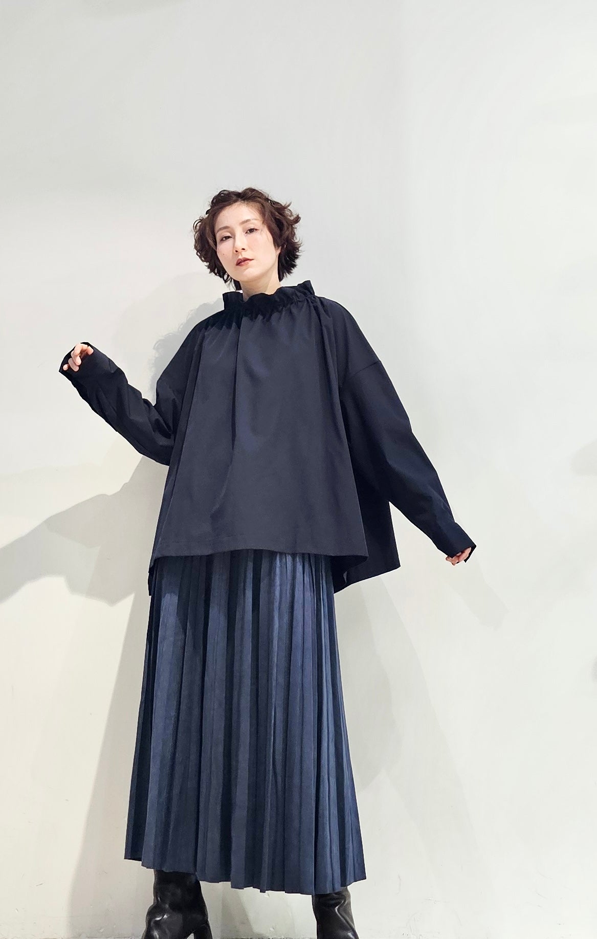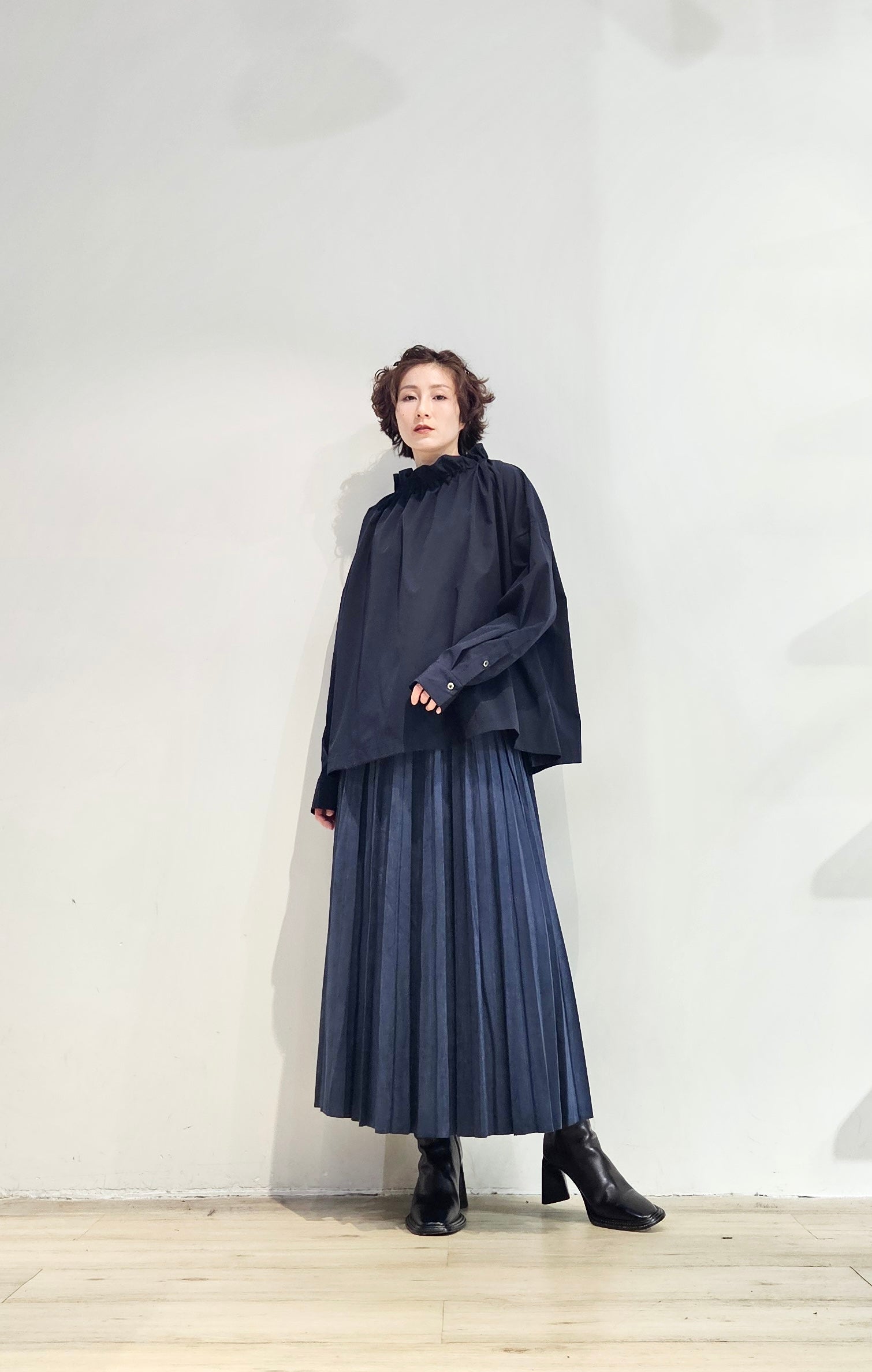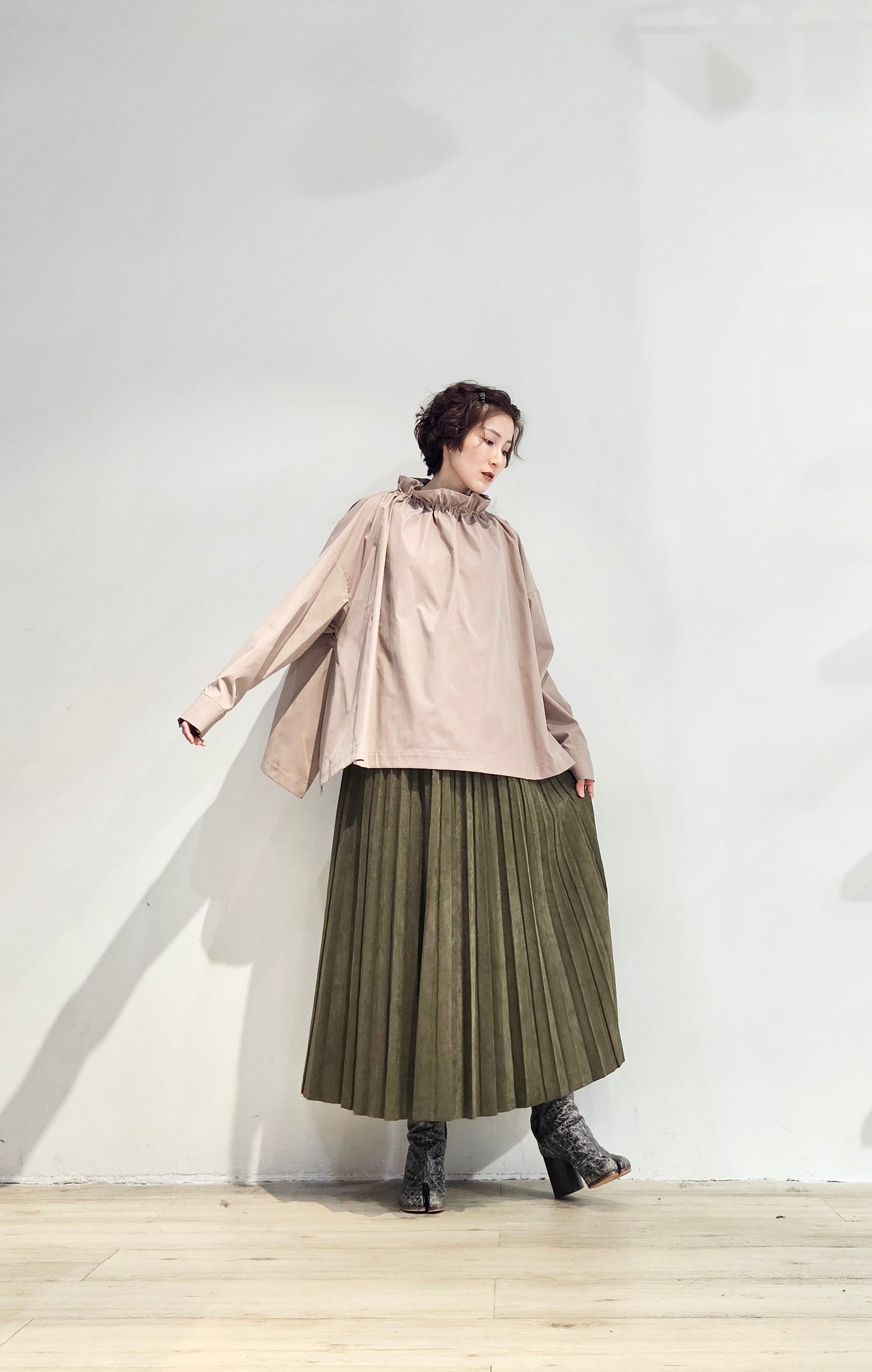 Stand collar drawstrings blouse - 2 colours (pre-order)