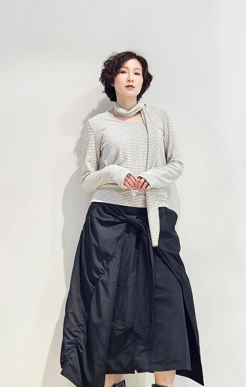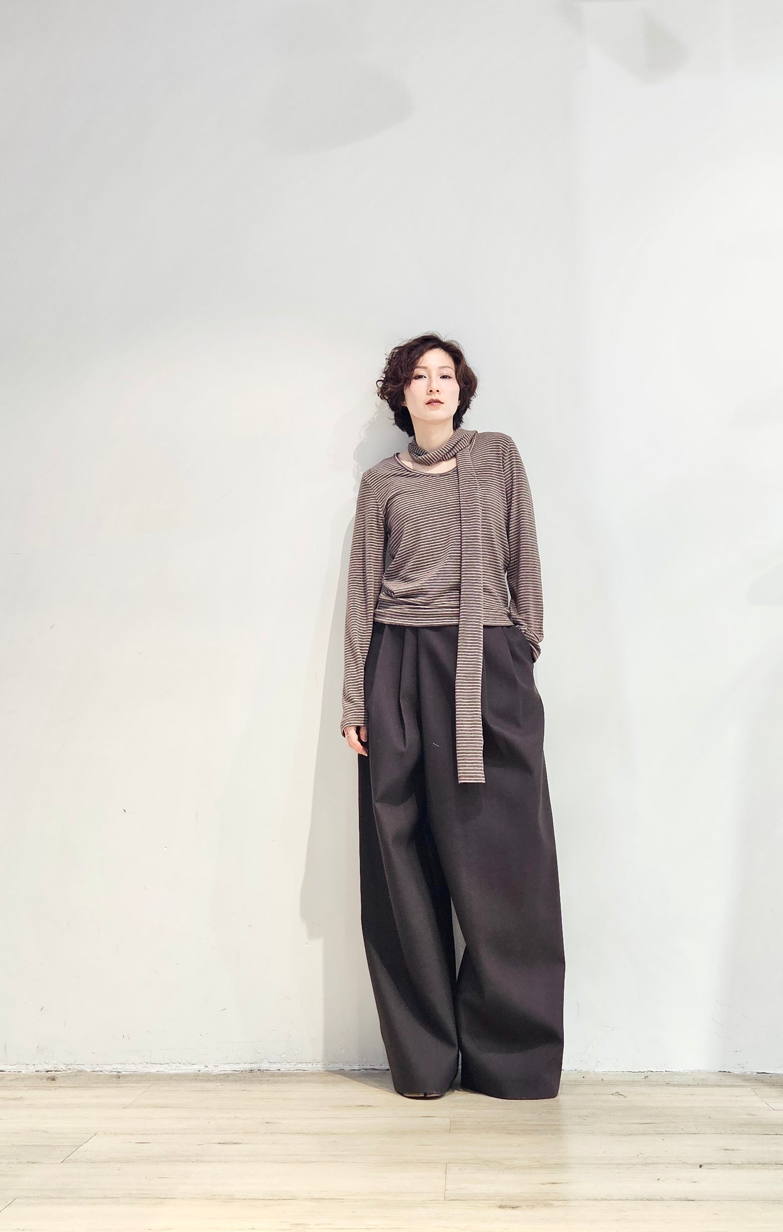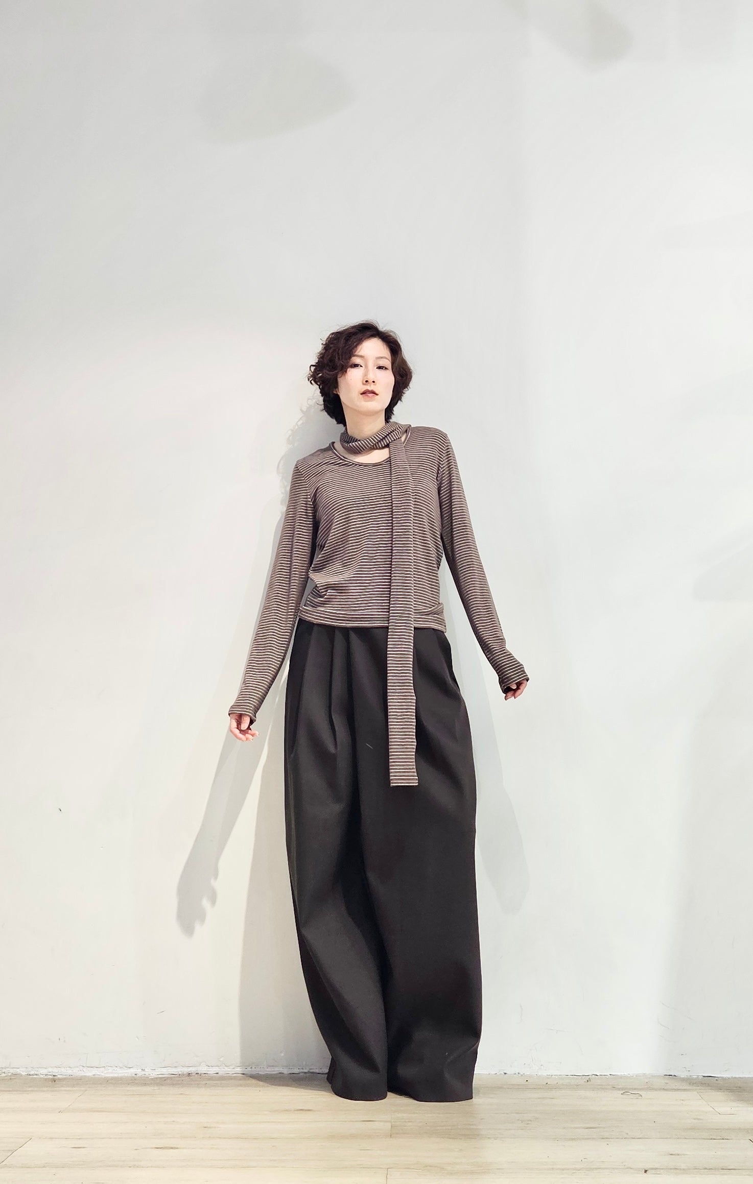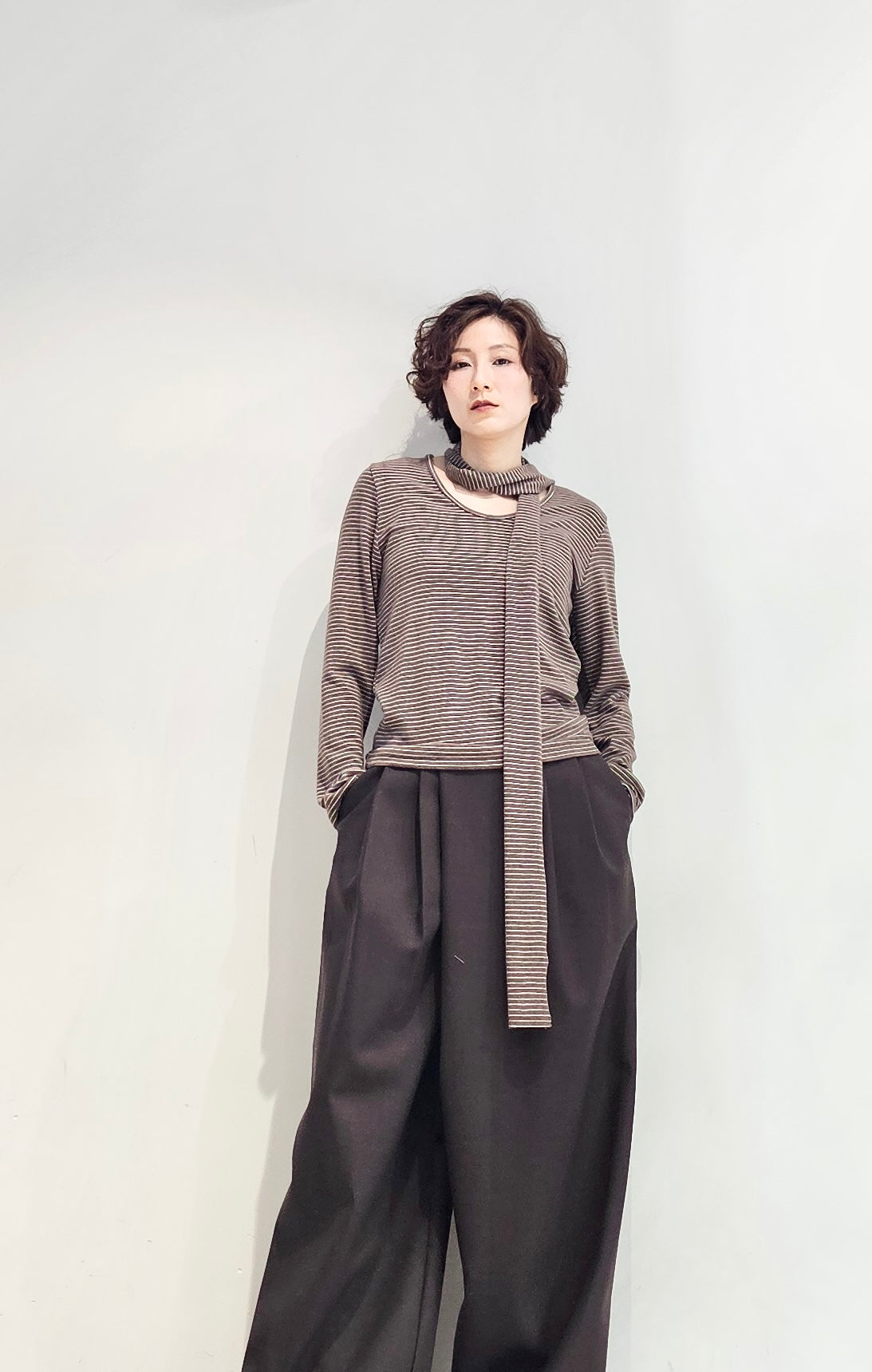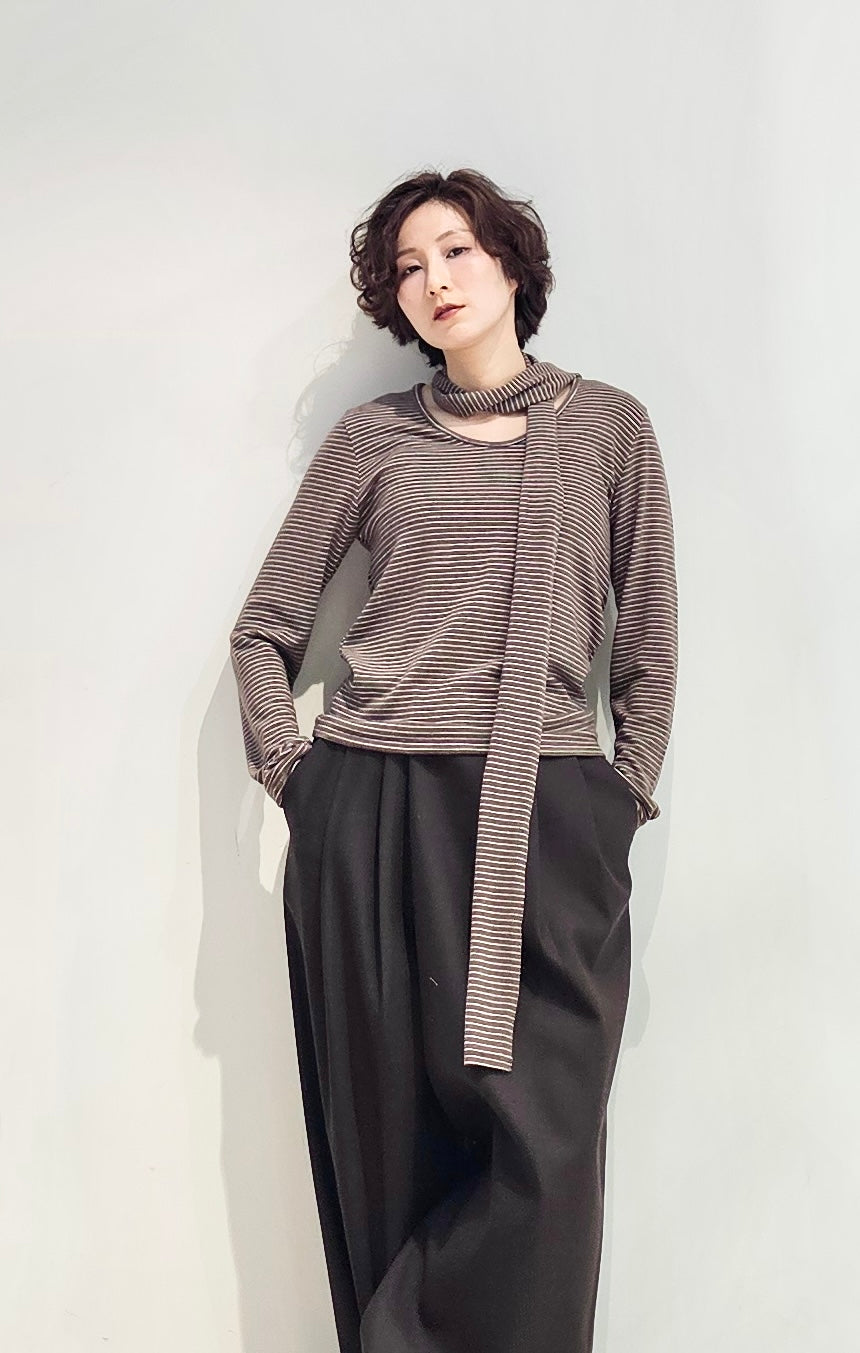 Regular fit stripe scoop tee with scarf - 3 colours (pre-order)