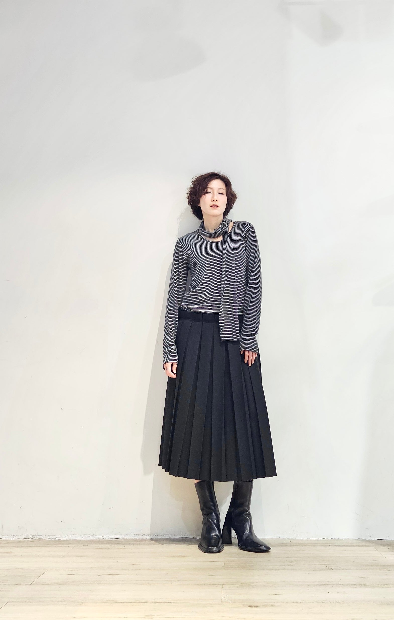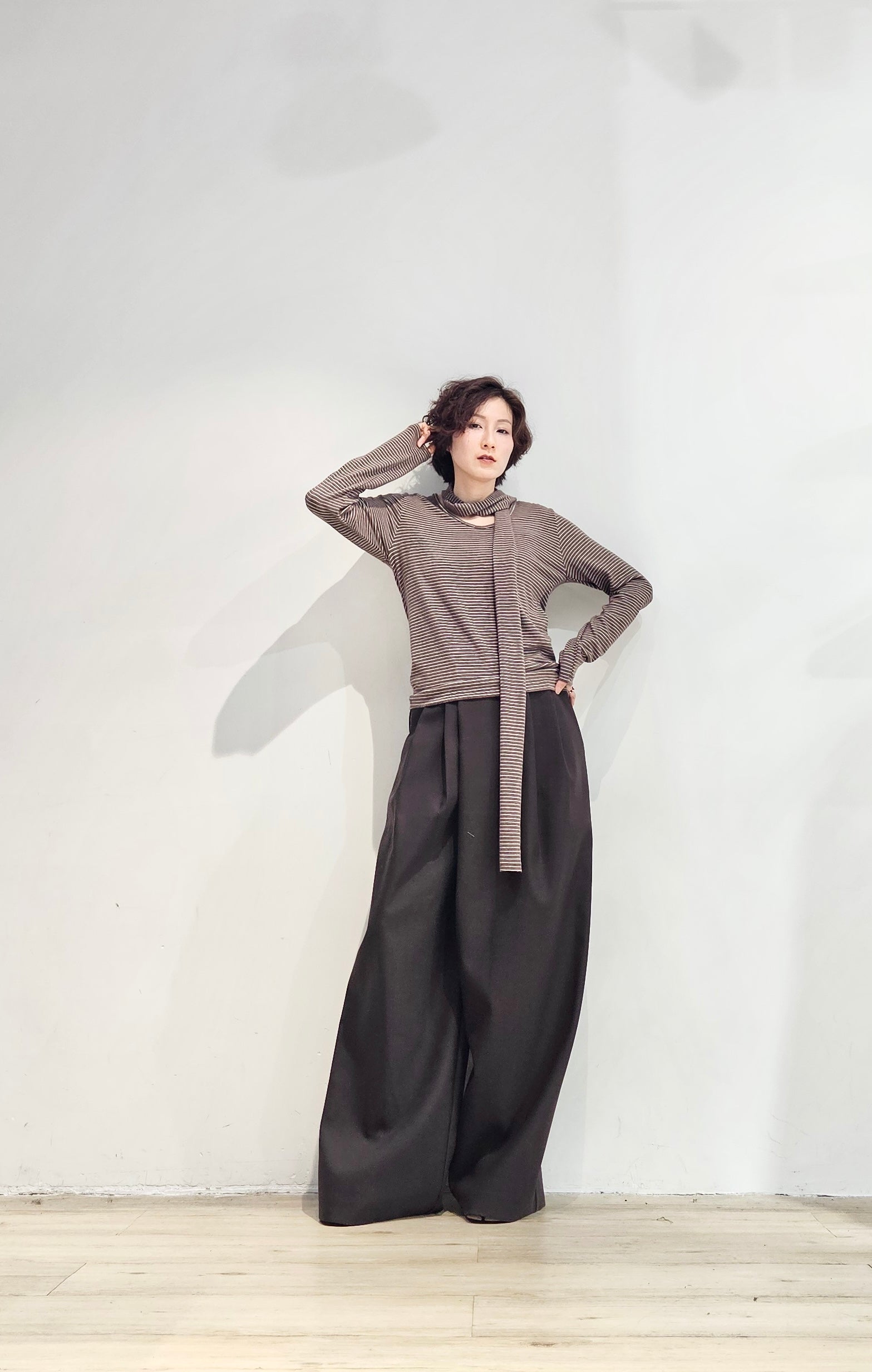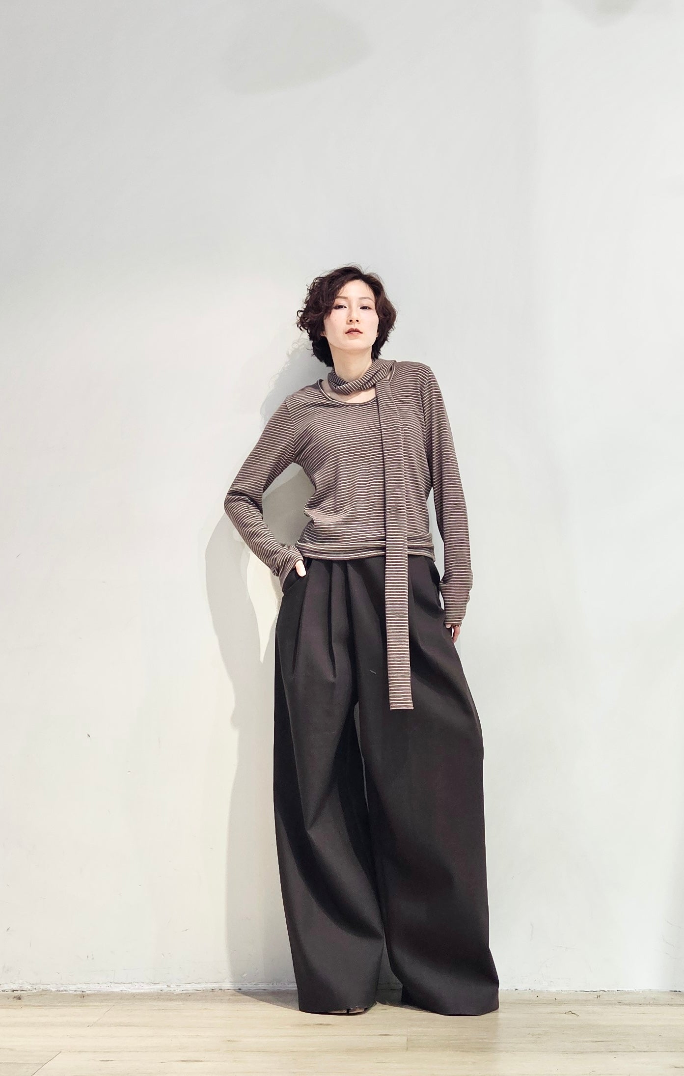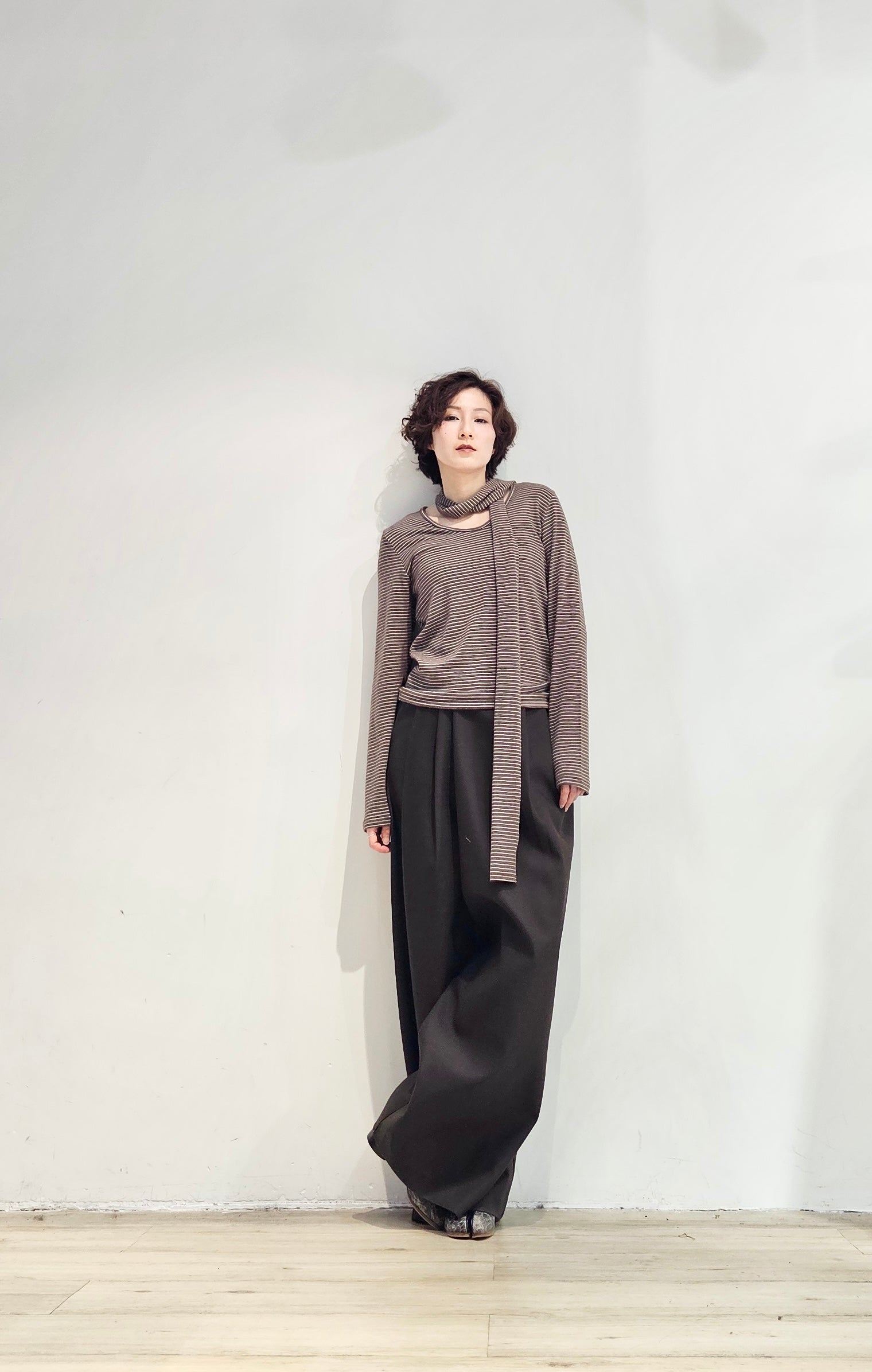 Regular fit stripe scoop tee with scarf - 3 colours (pre-order)