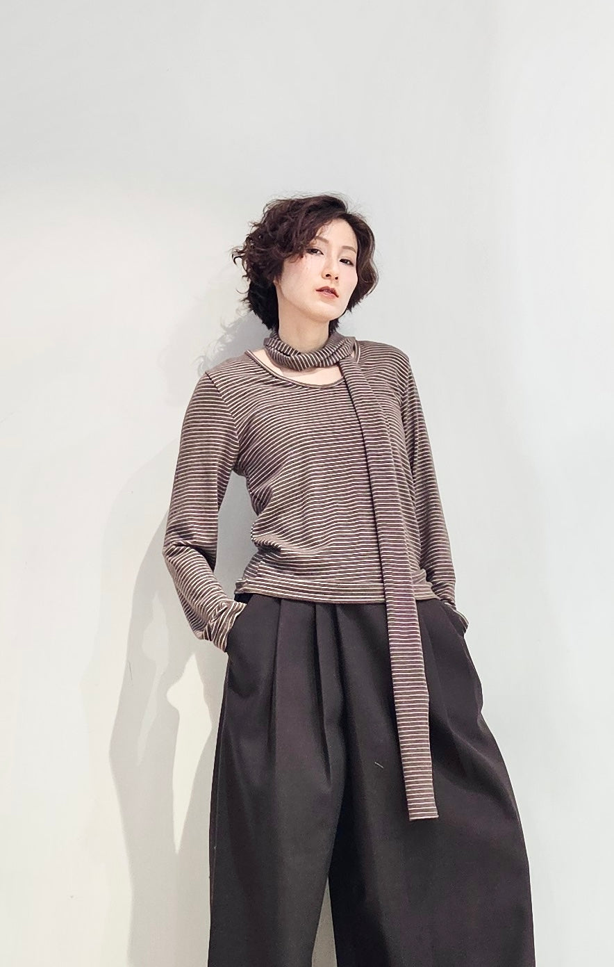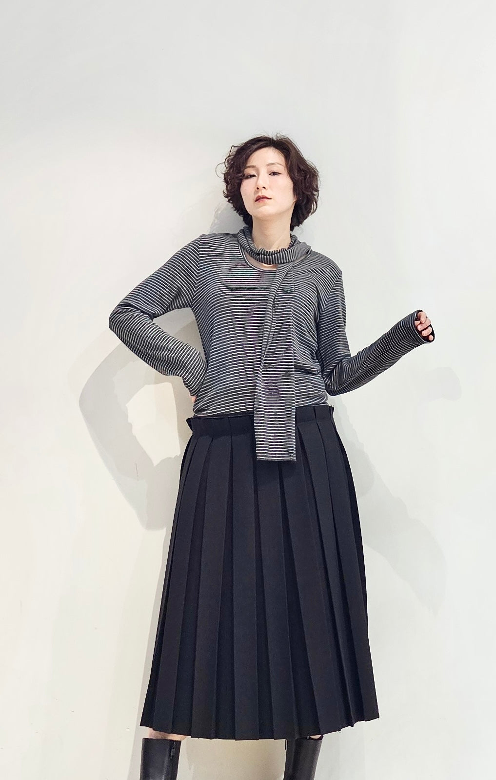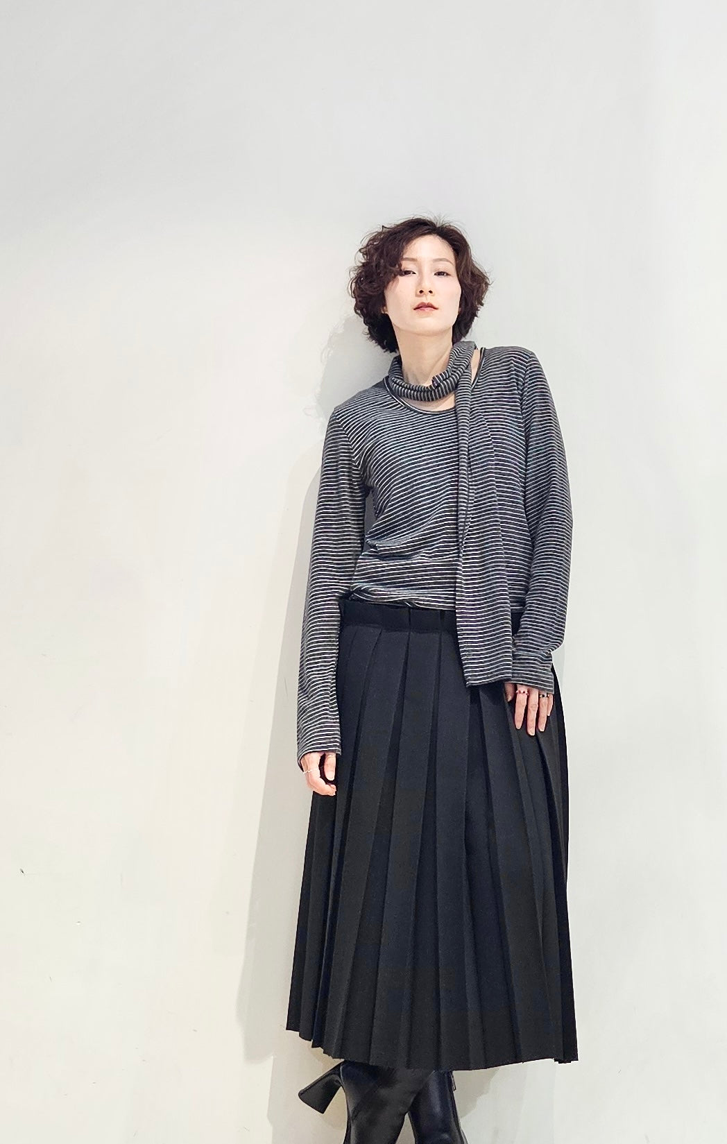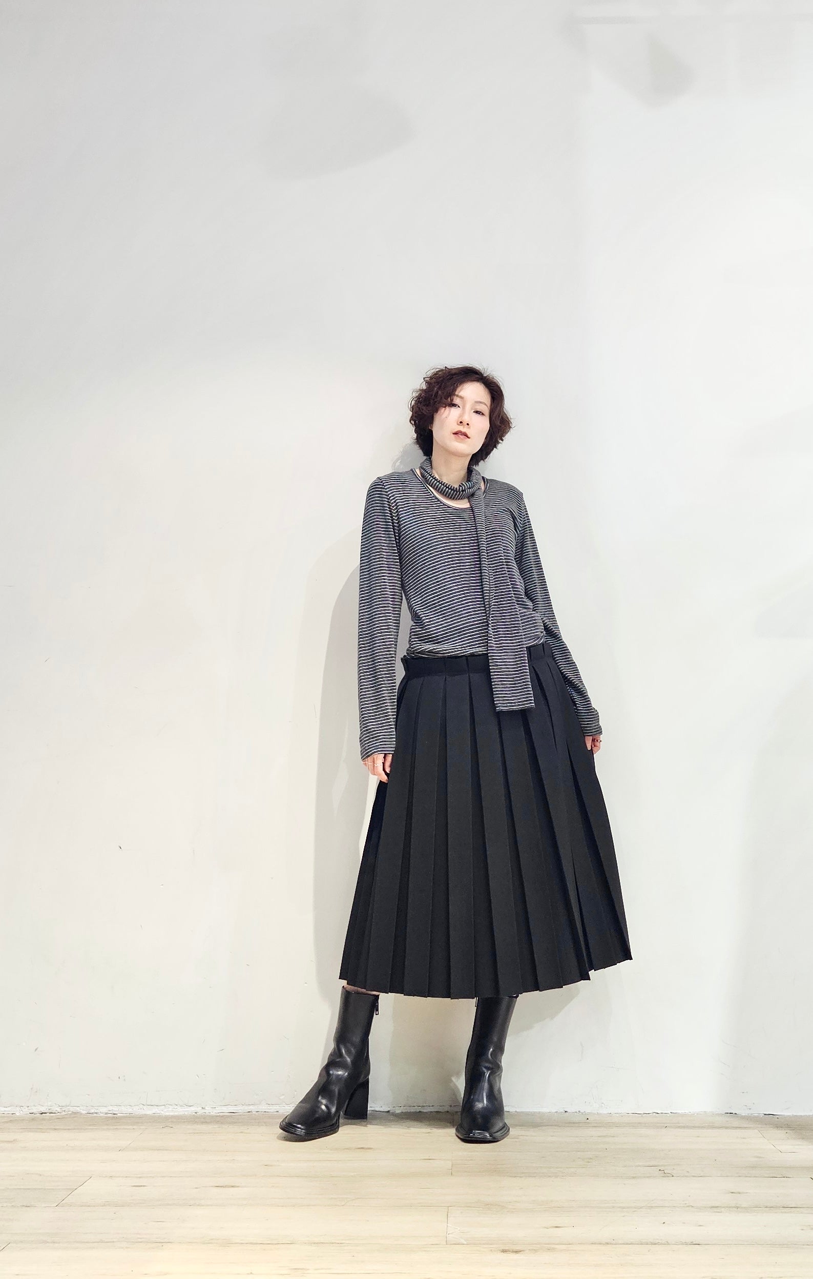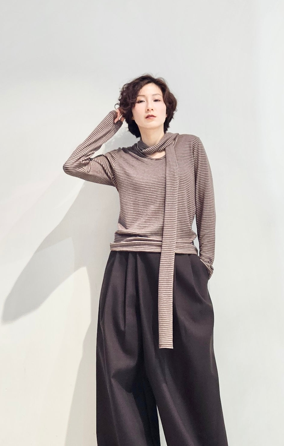 Regular fit stripe scoop tee with scarf - 3 colours (pre-order)