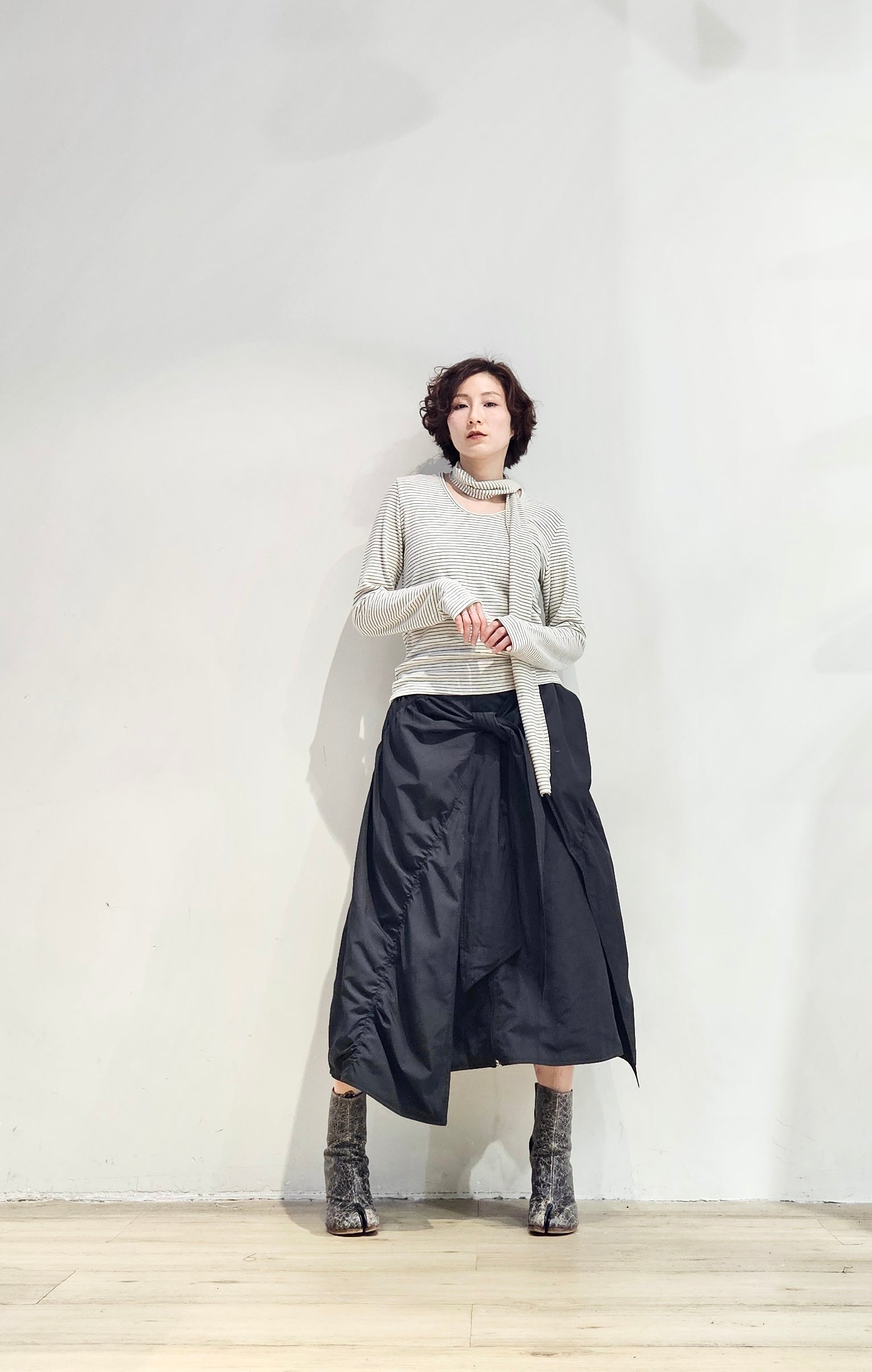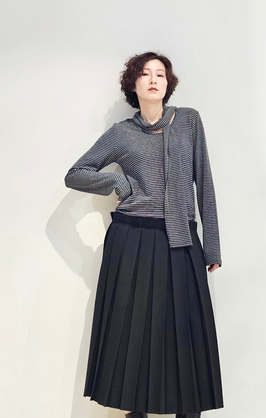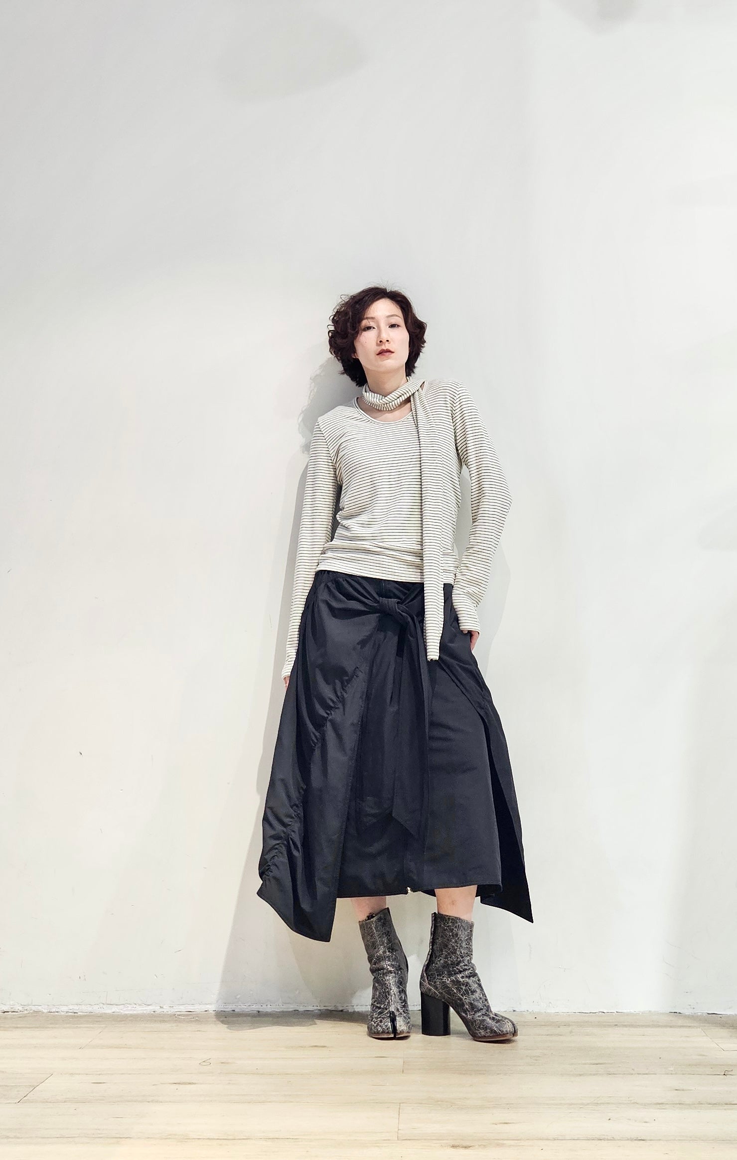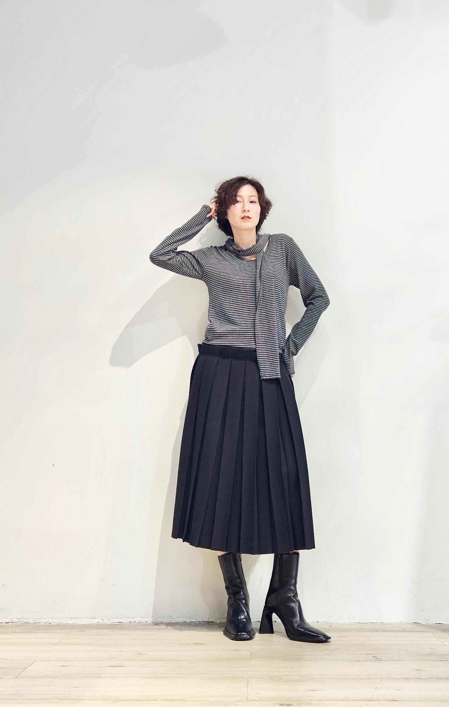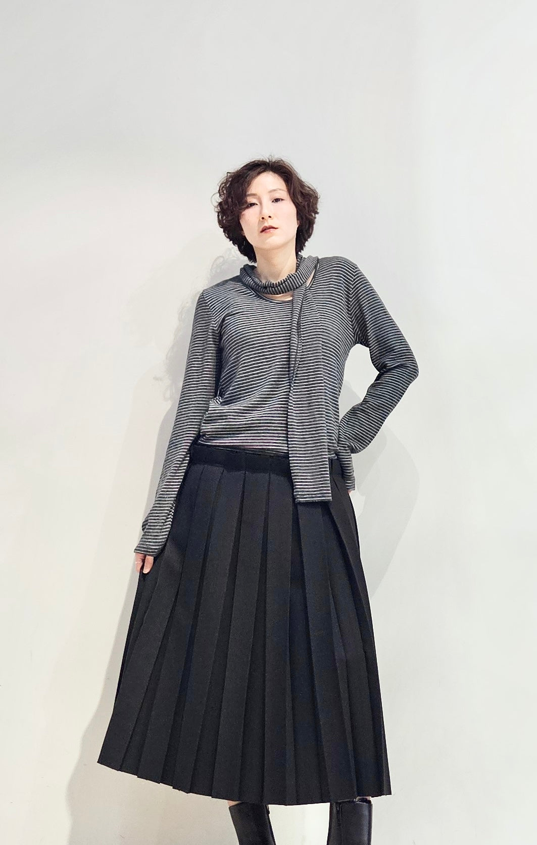 Regular fit stripe scoop tee with scarf - 3 colours (pre-order)