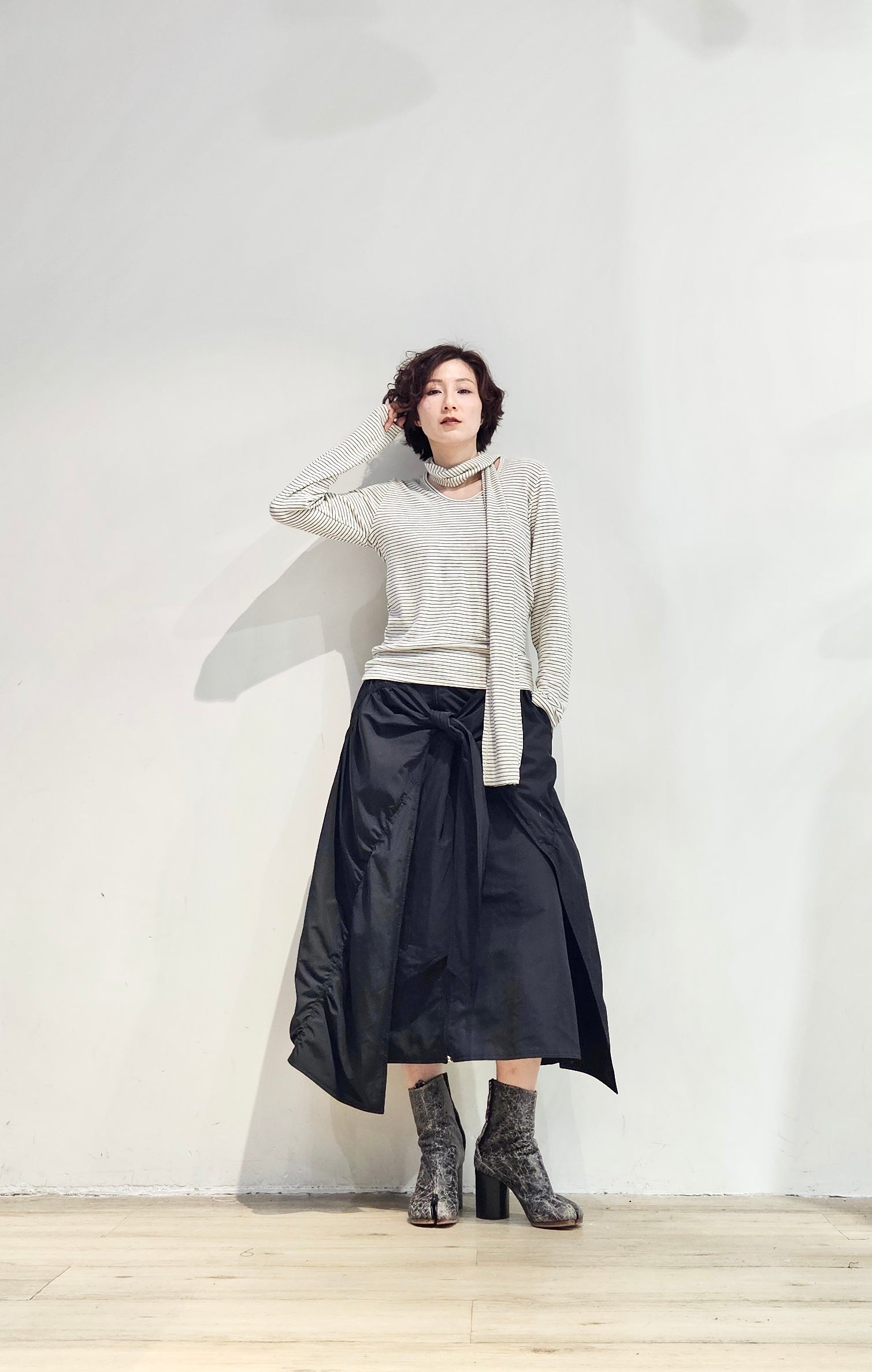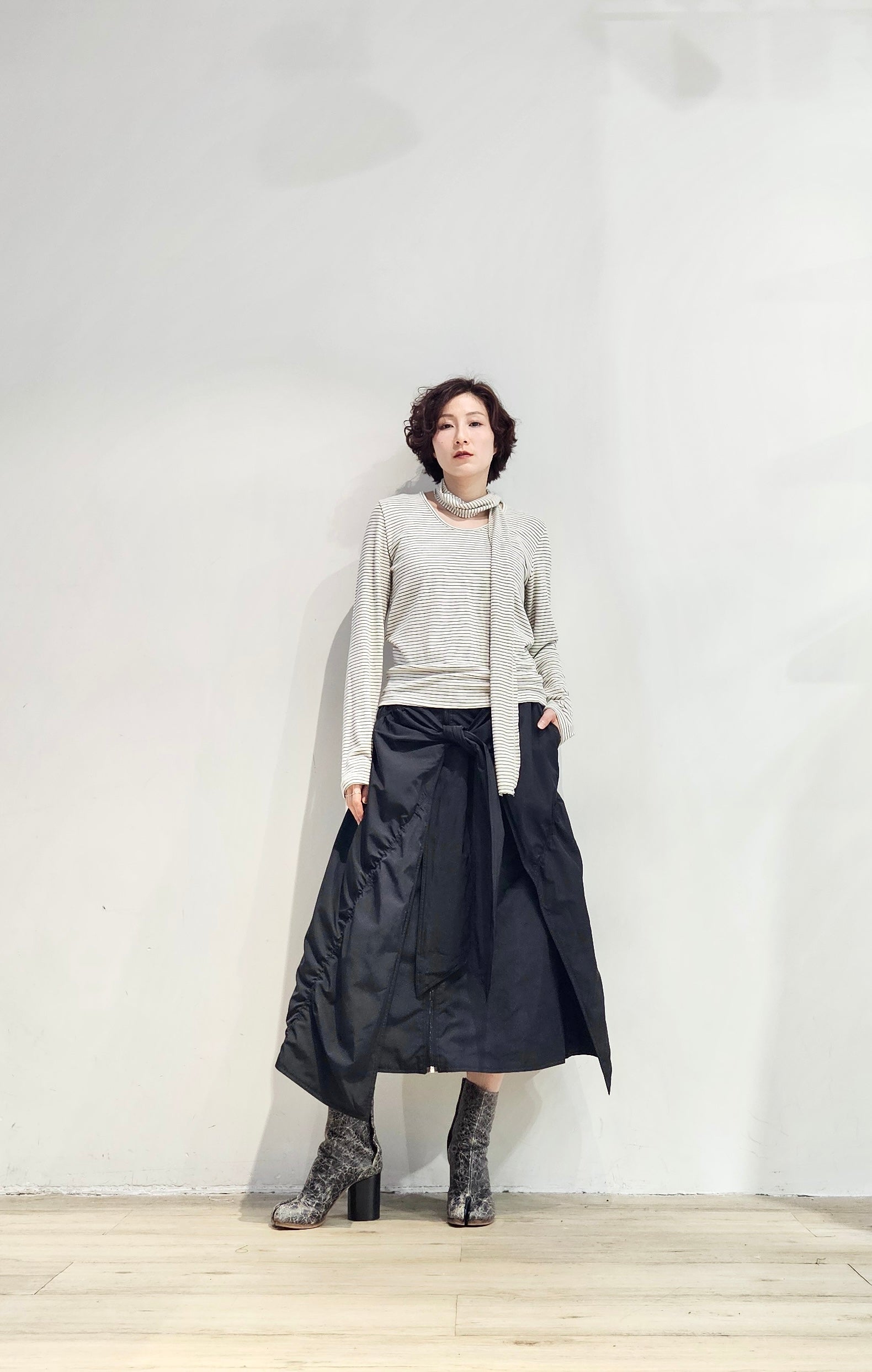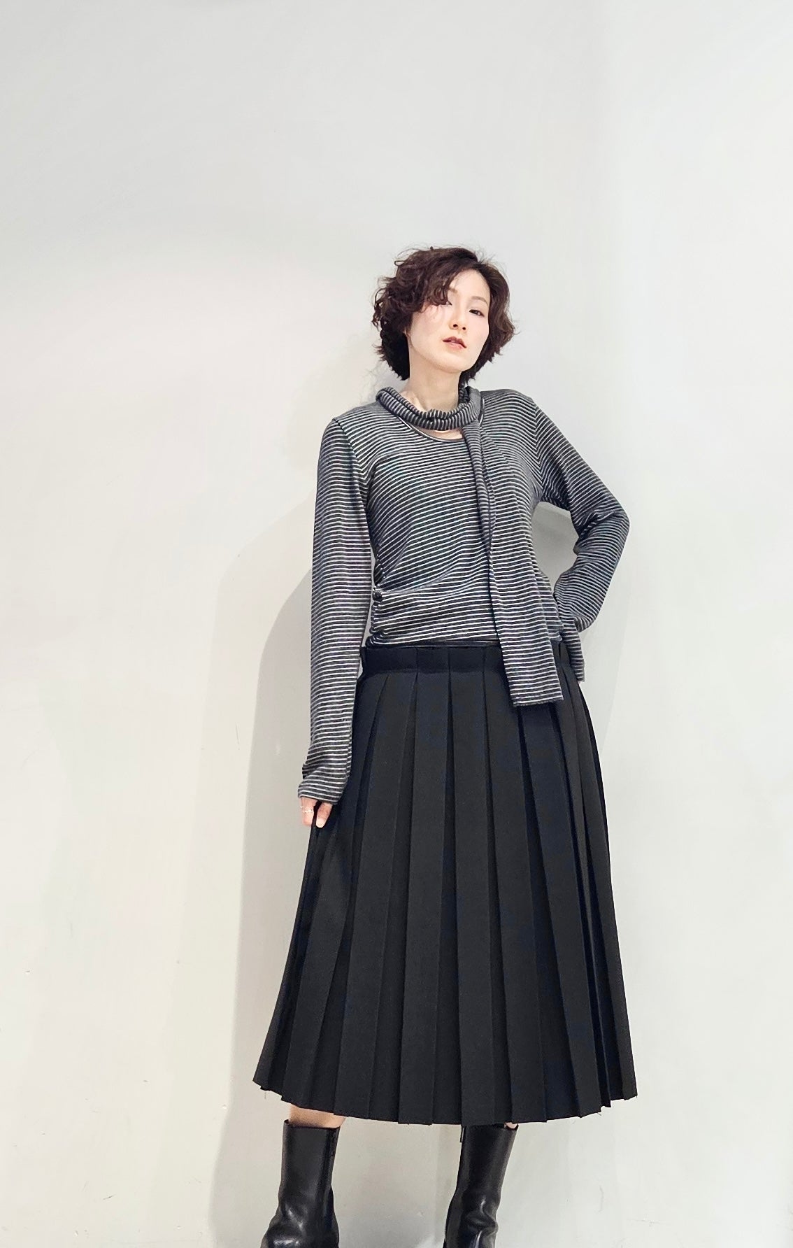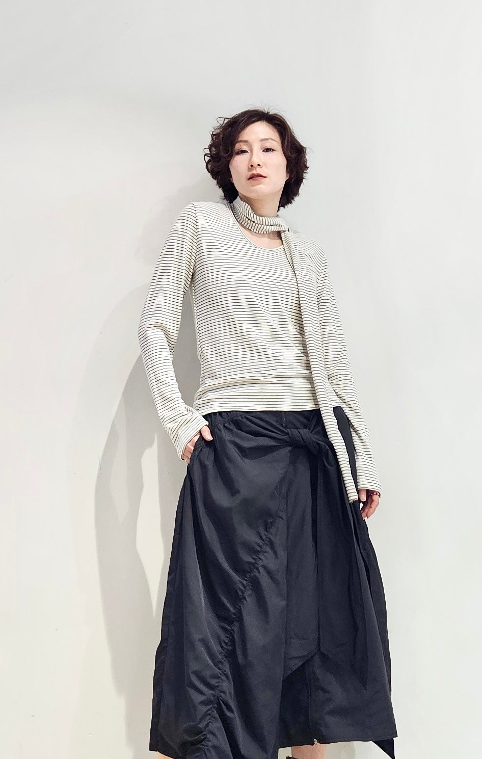 Regular fit stripe scoop tee with scarf - 3 colours (pre-order)