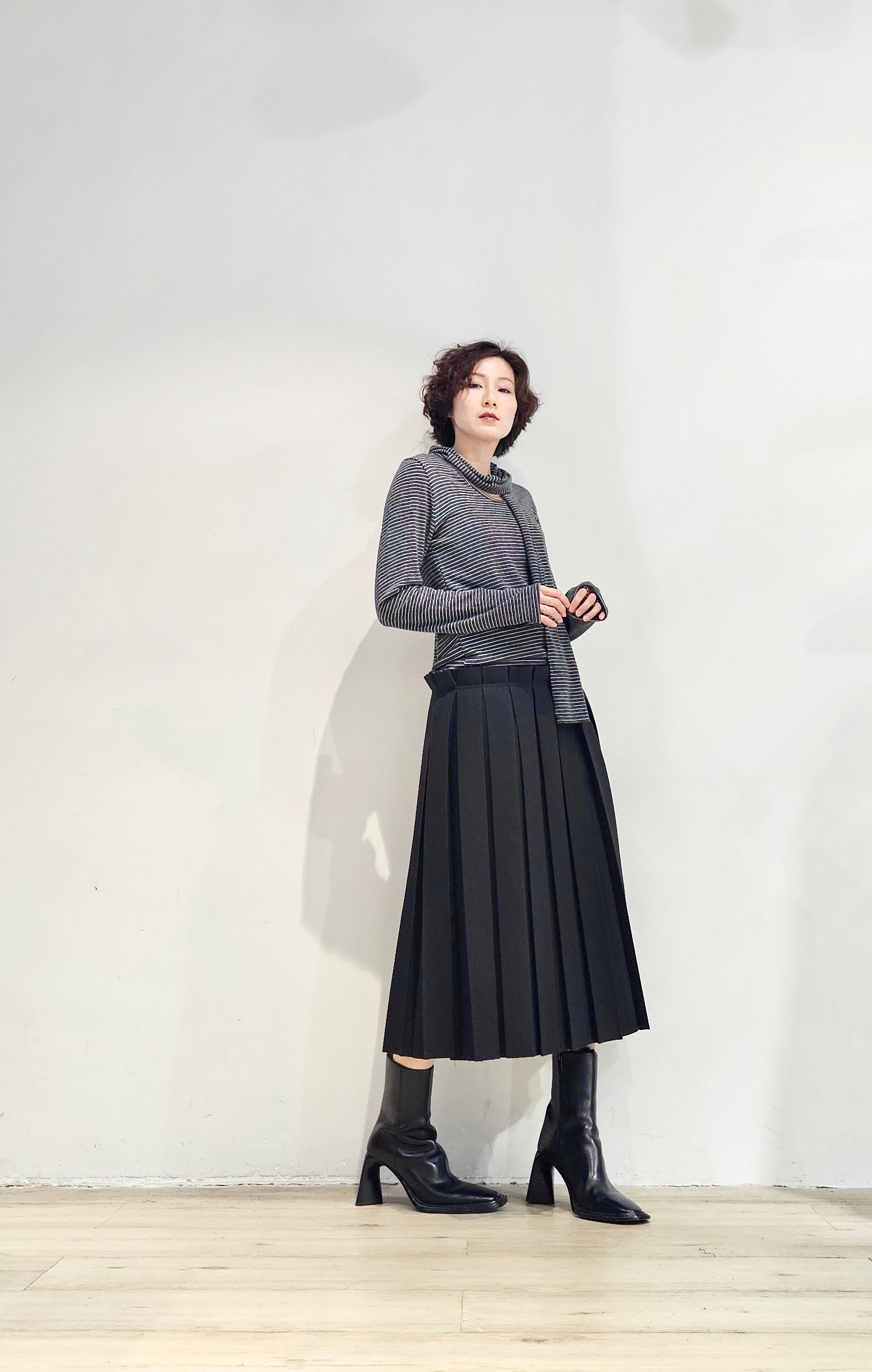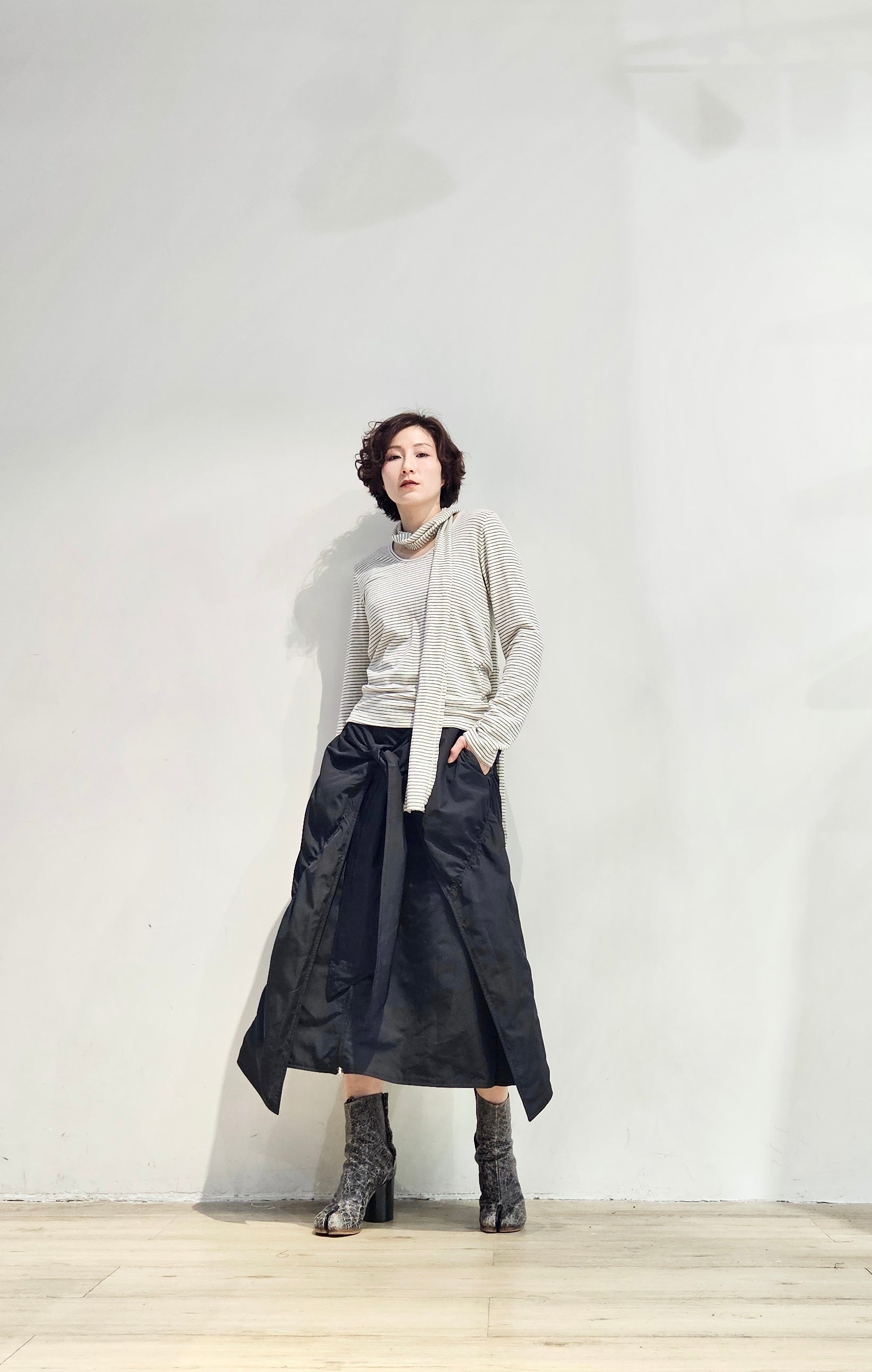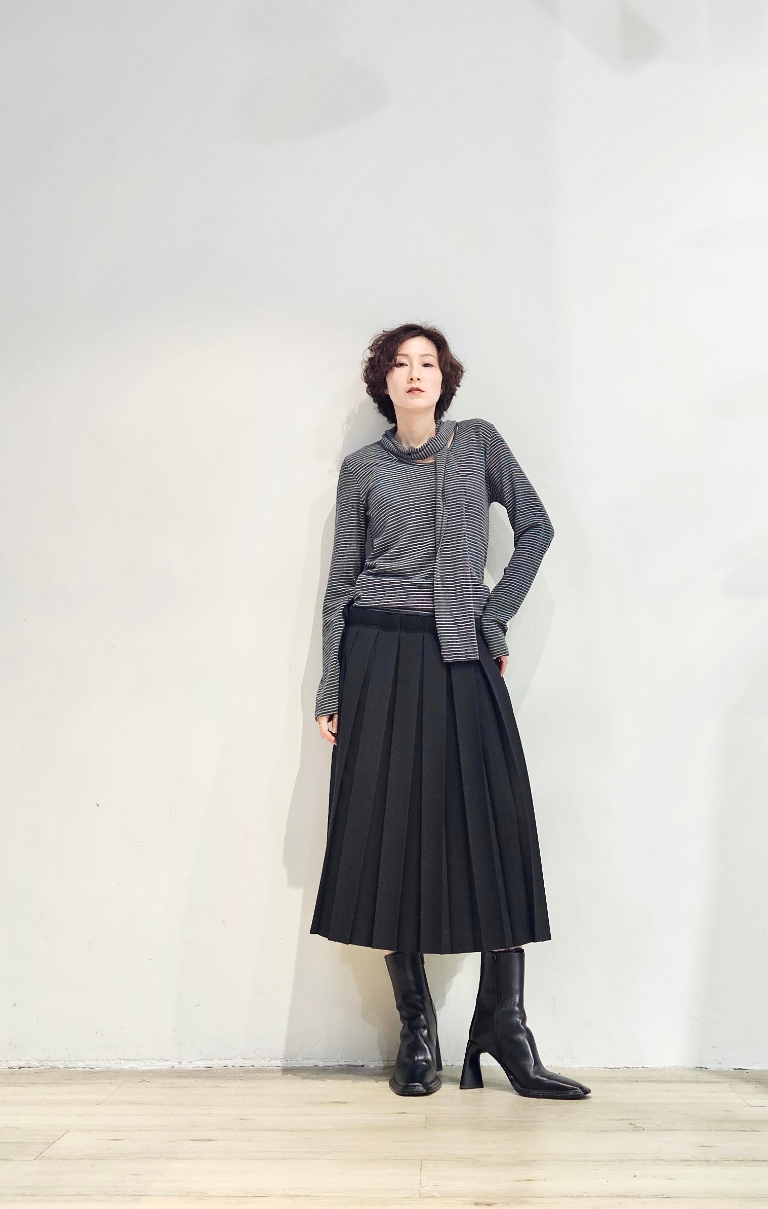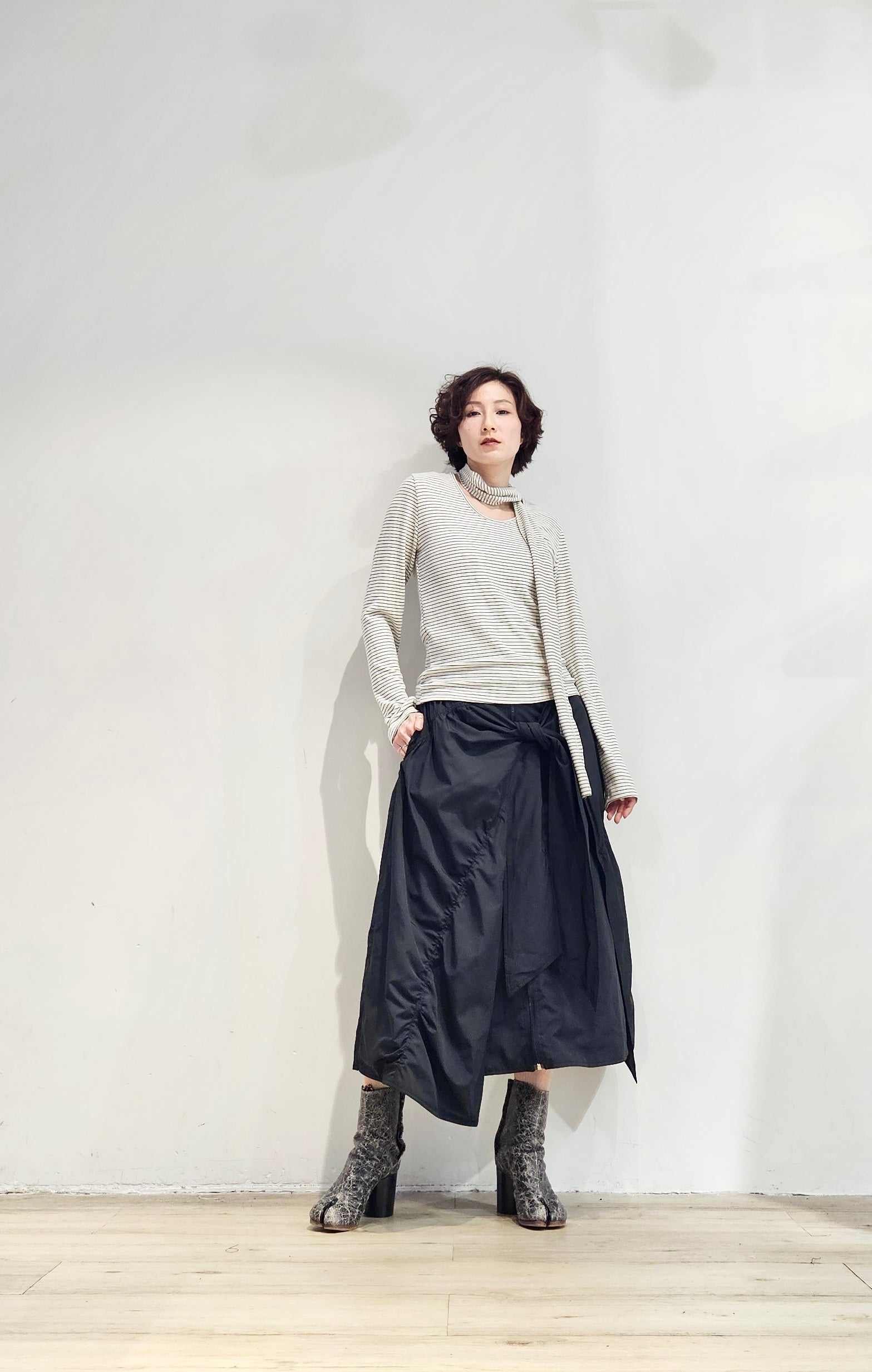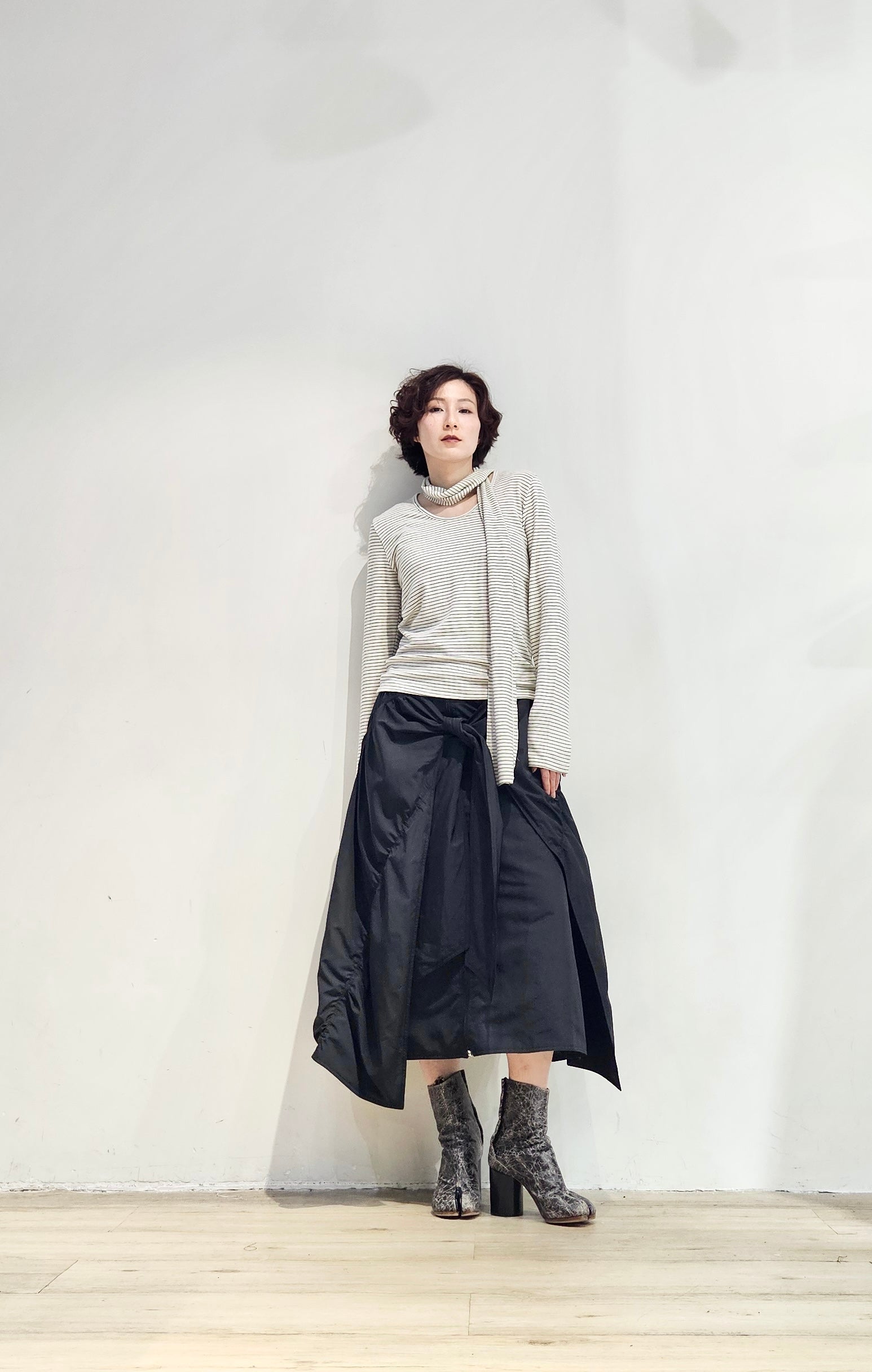 Regular fit stripe scoop tee with scarf - 3 colours (pre-order)