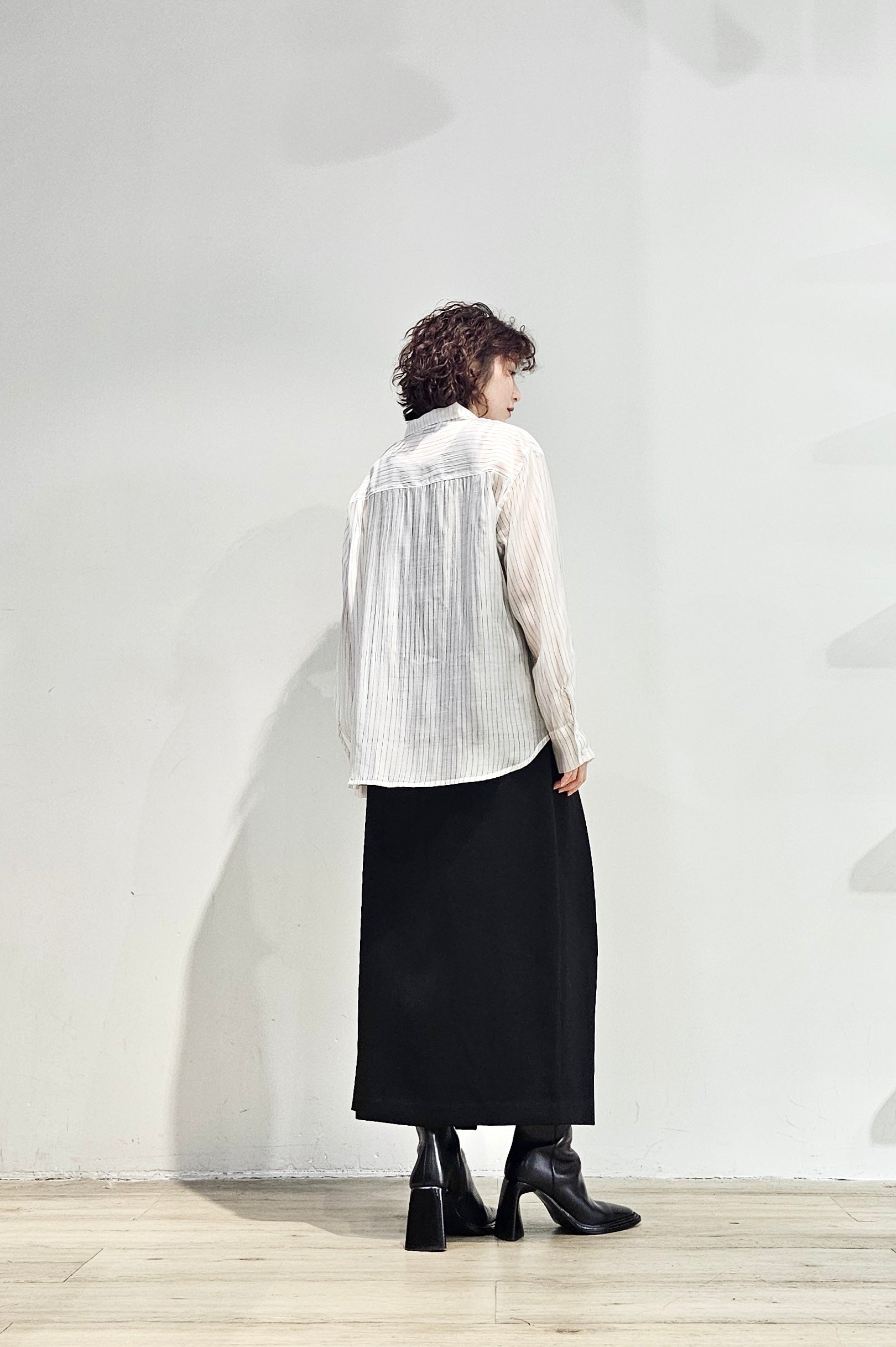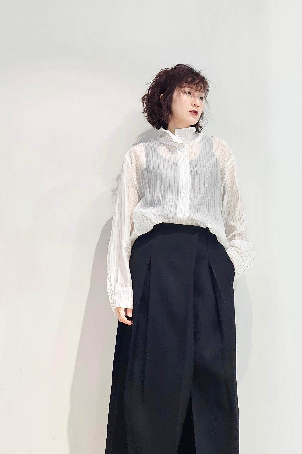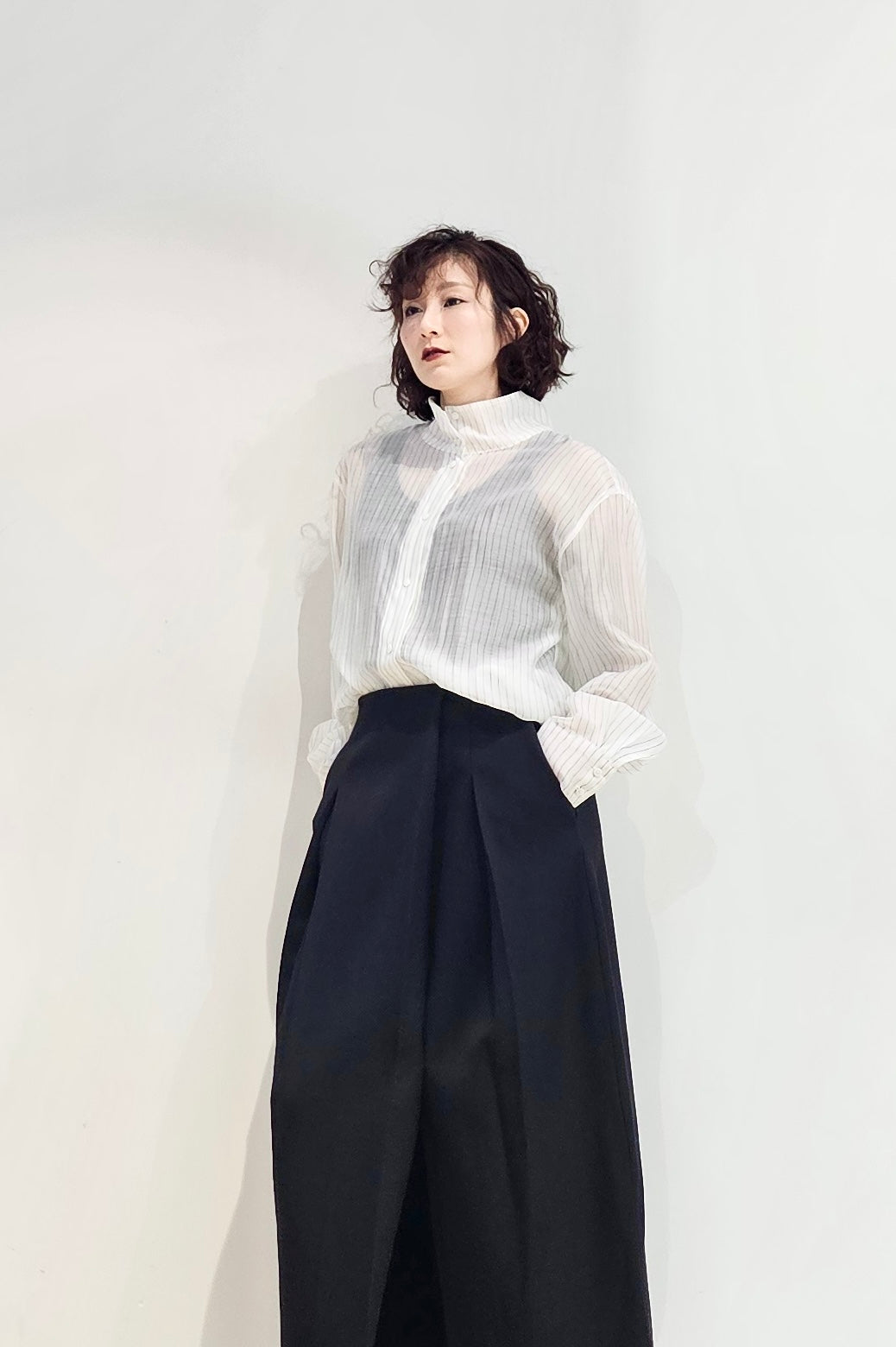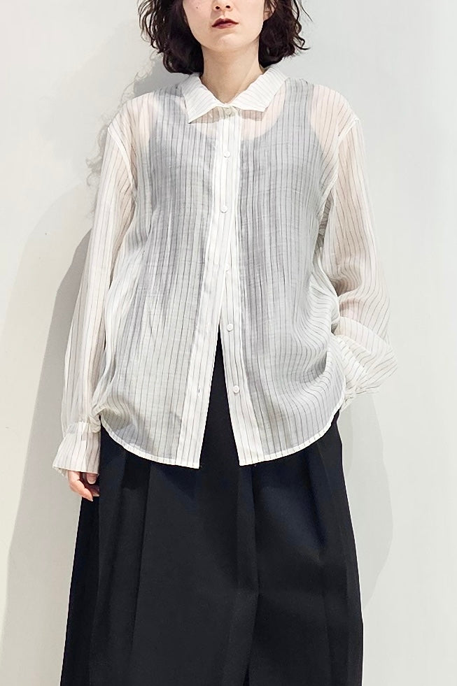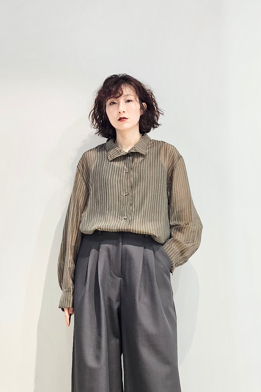 Stand collar stripe sheer blouse - 3 colours (pre-order)