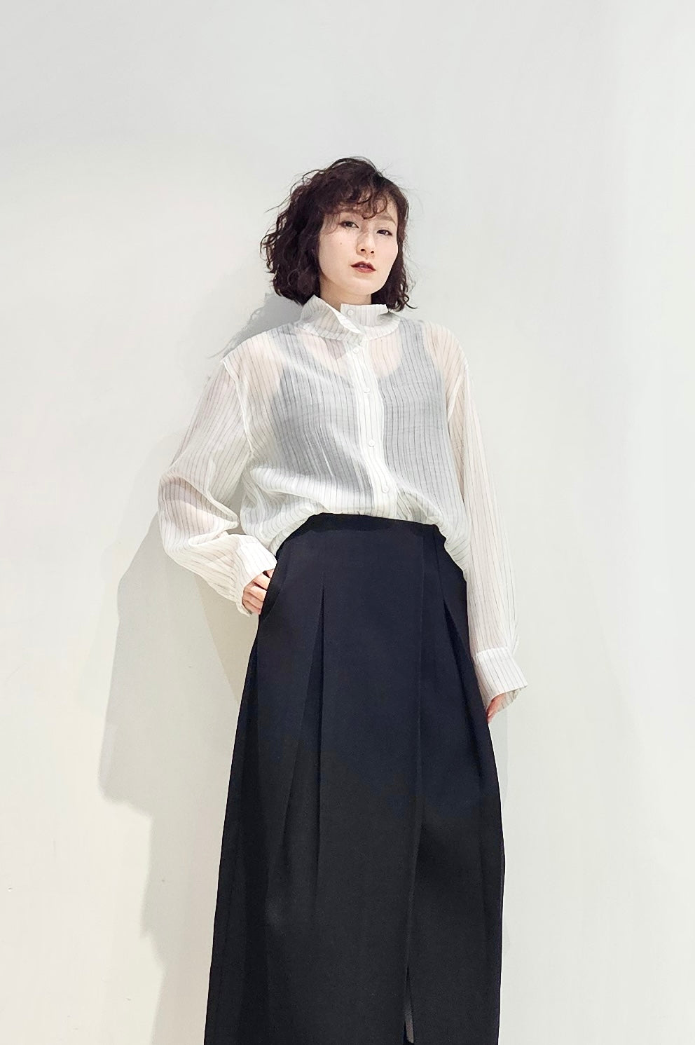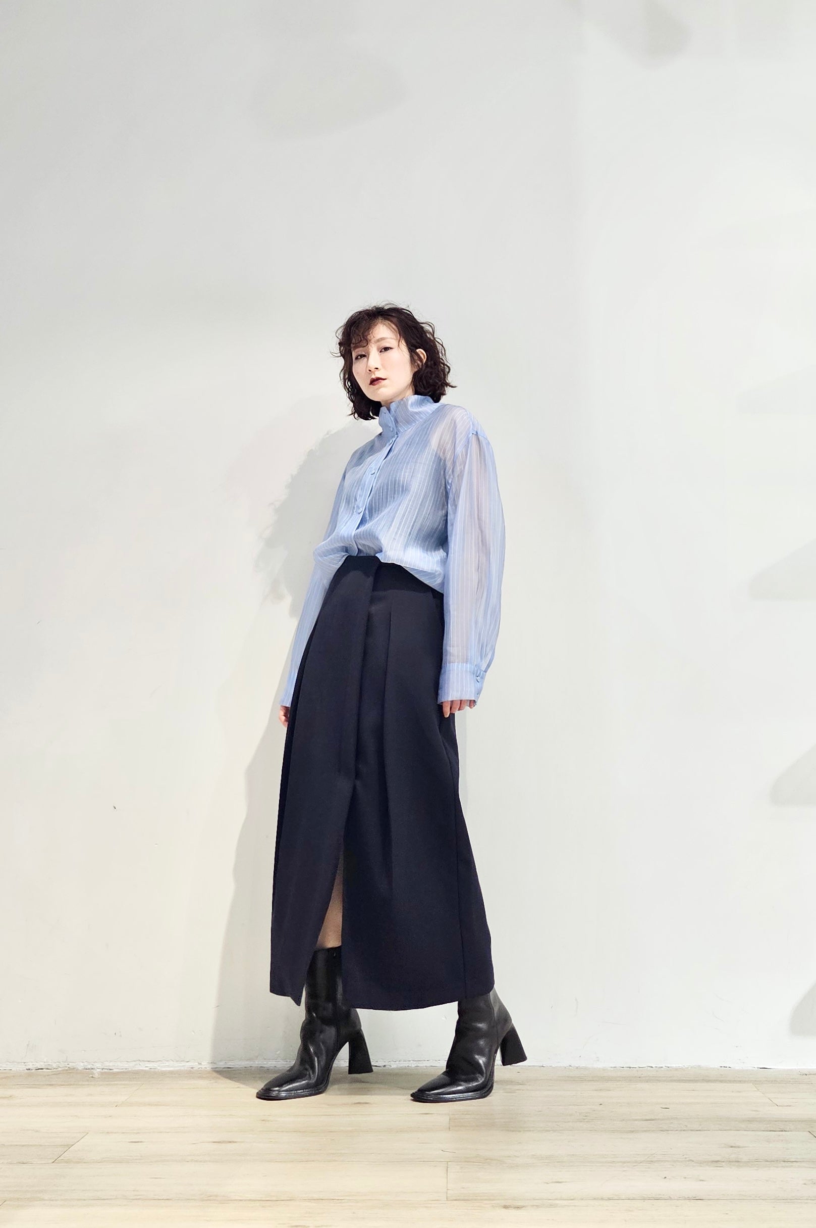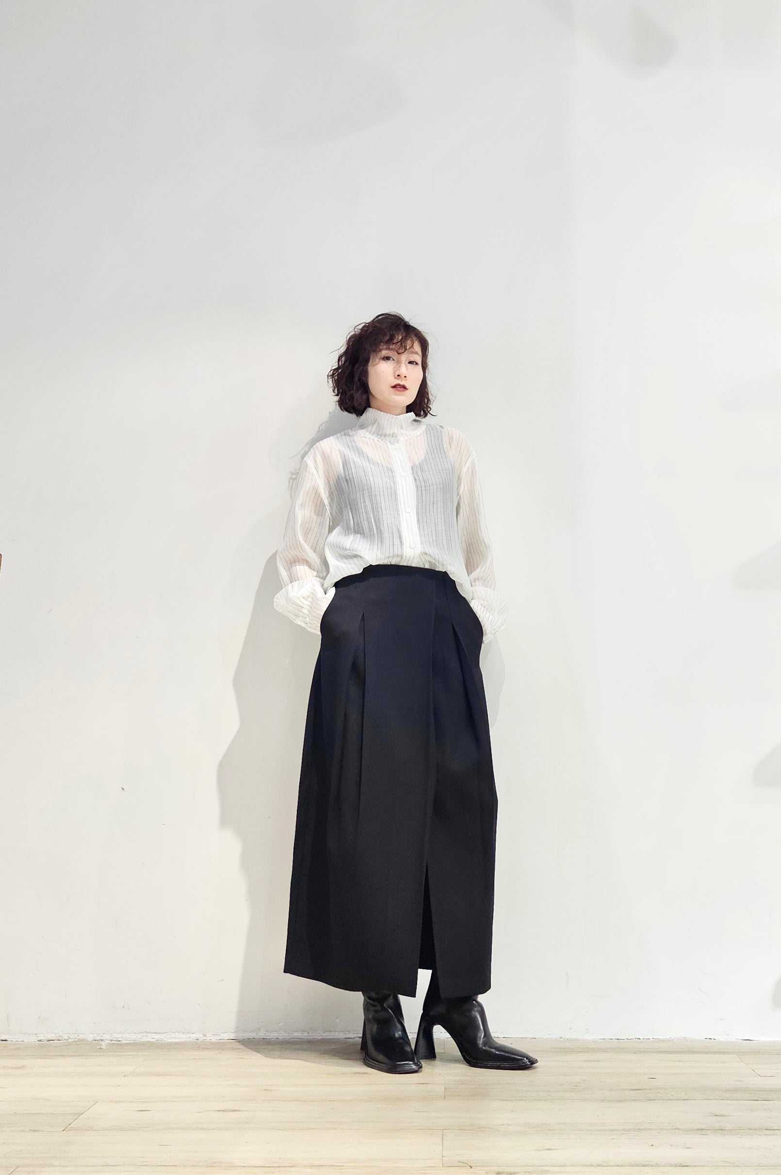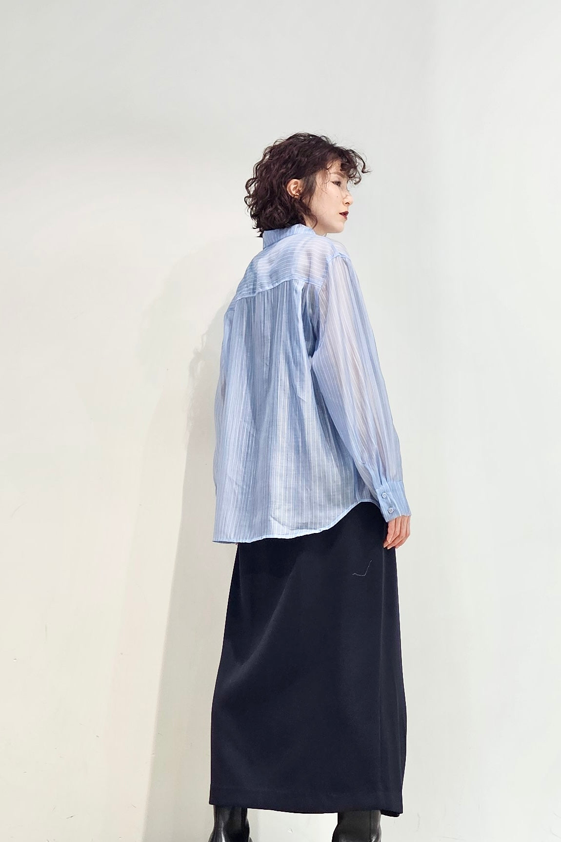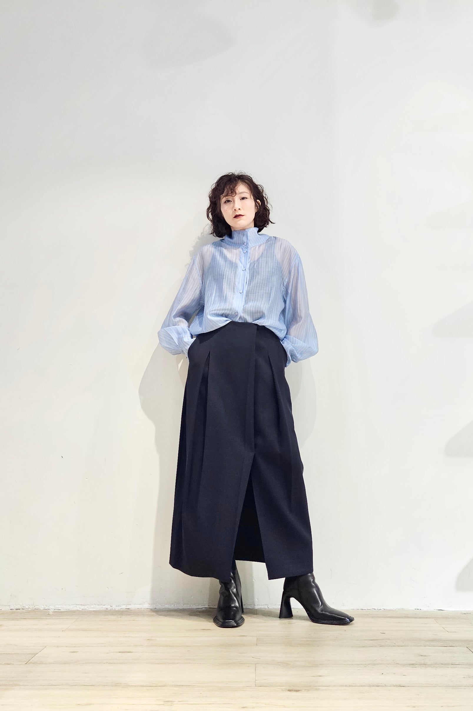 Stand collar stripe sheer blouse - 3 colours (pre-order)