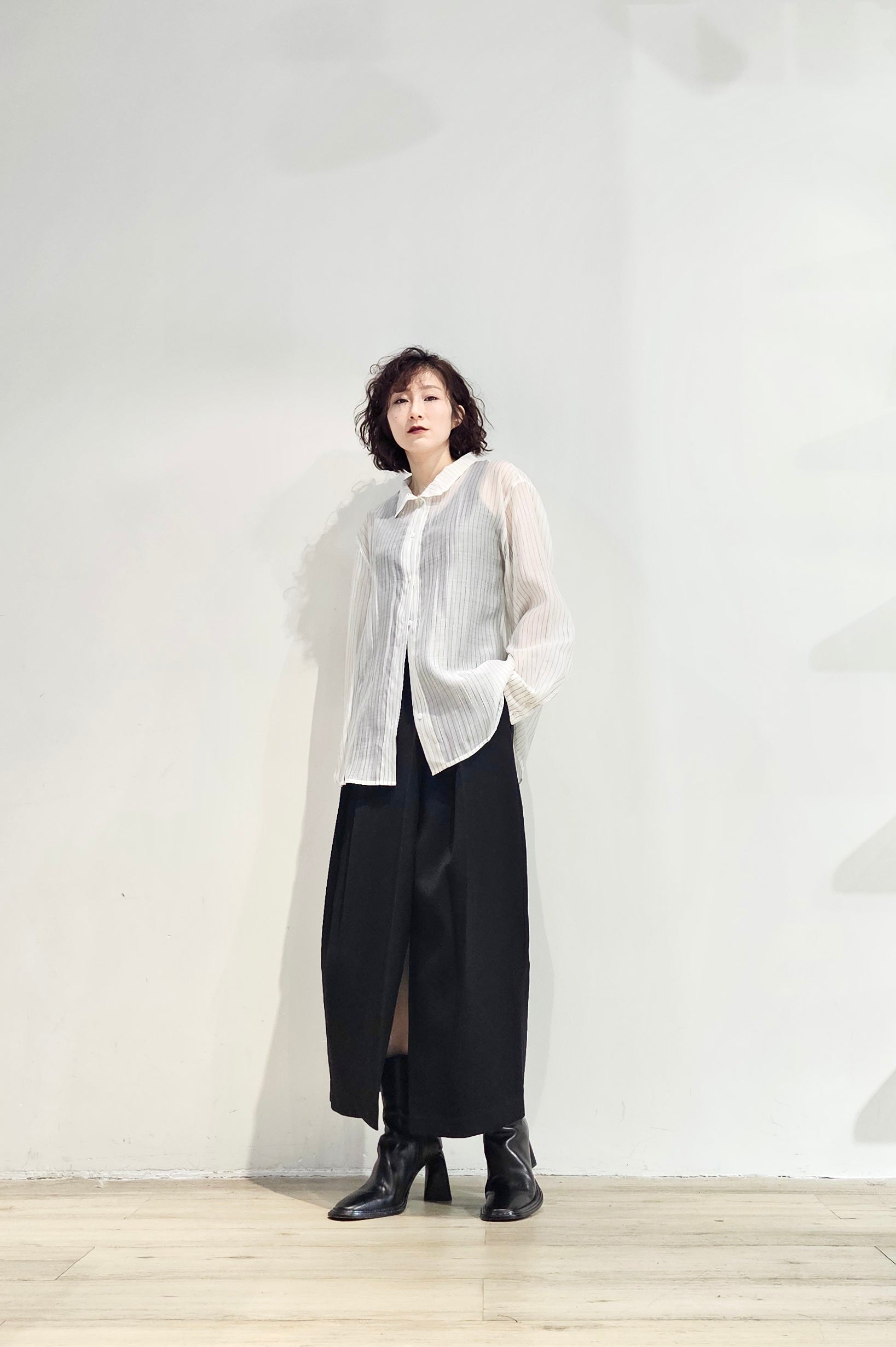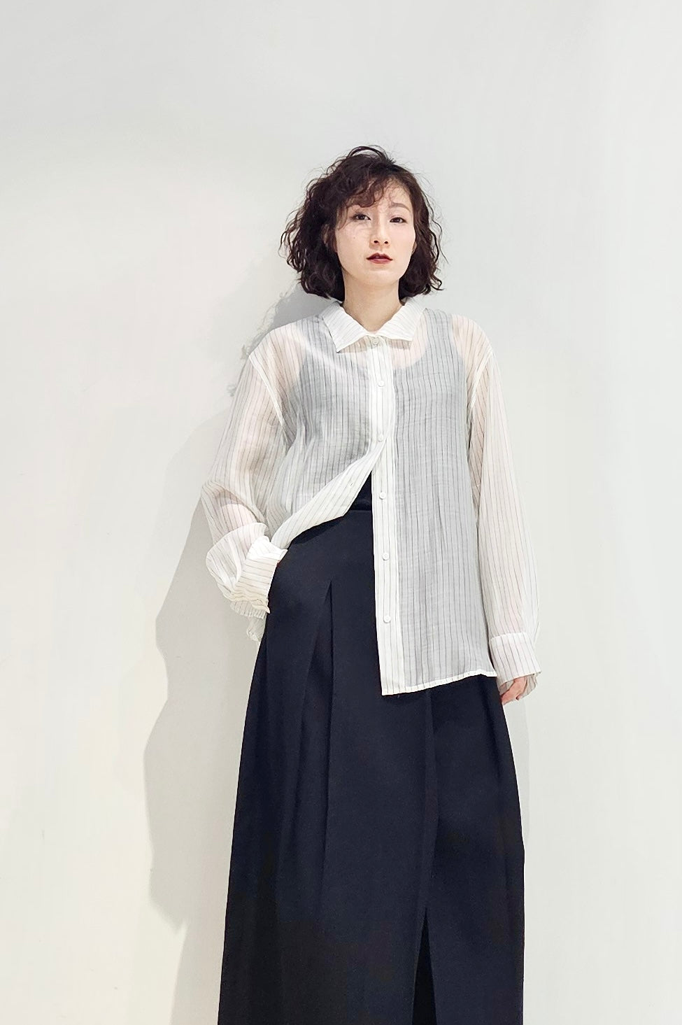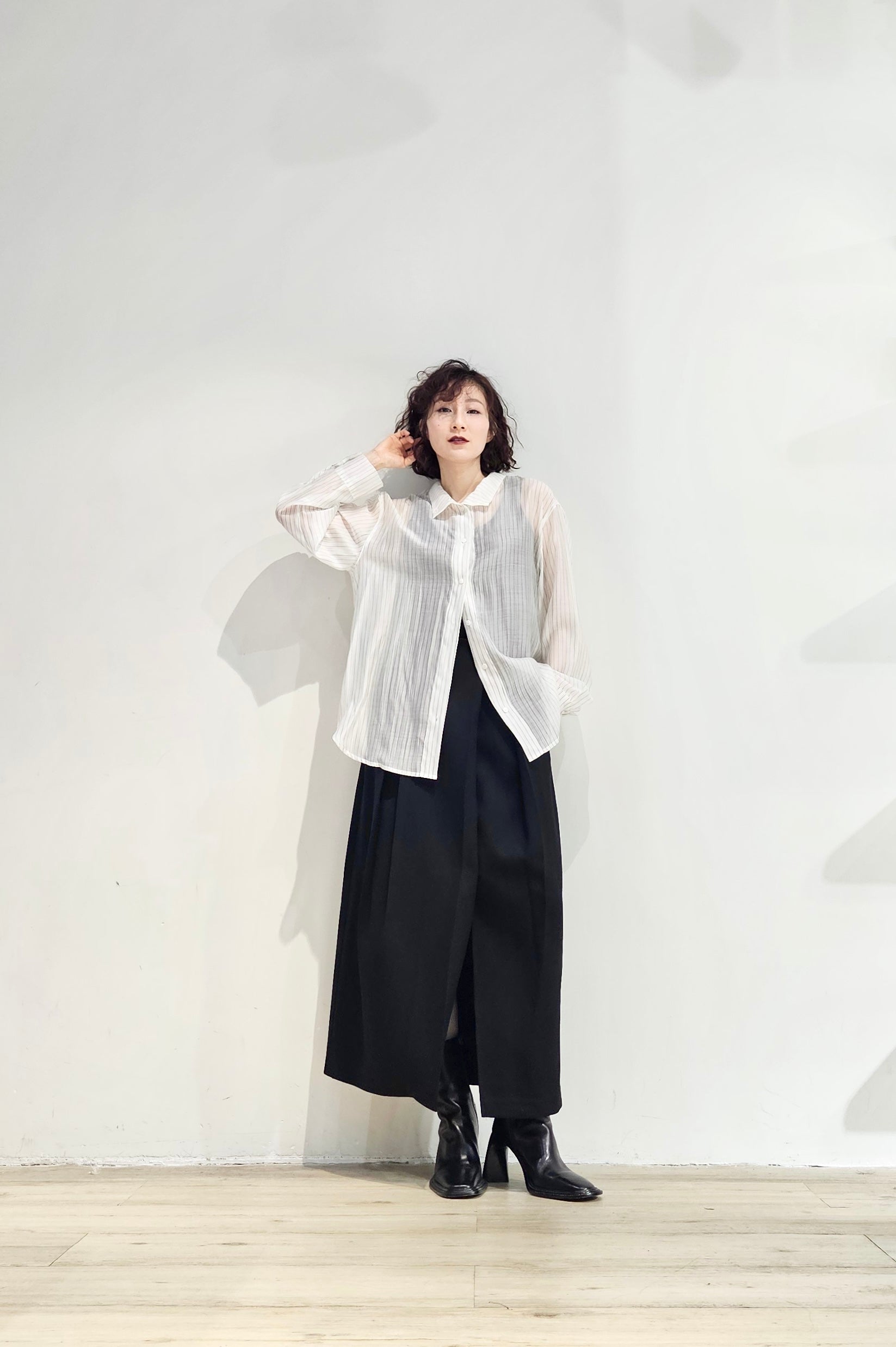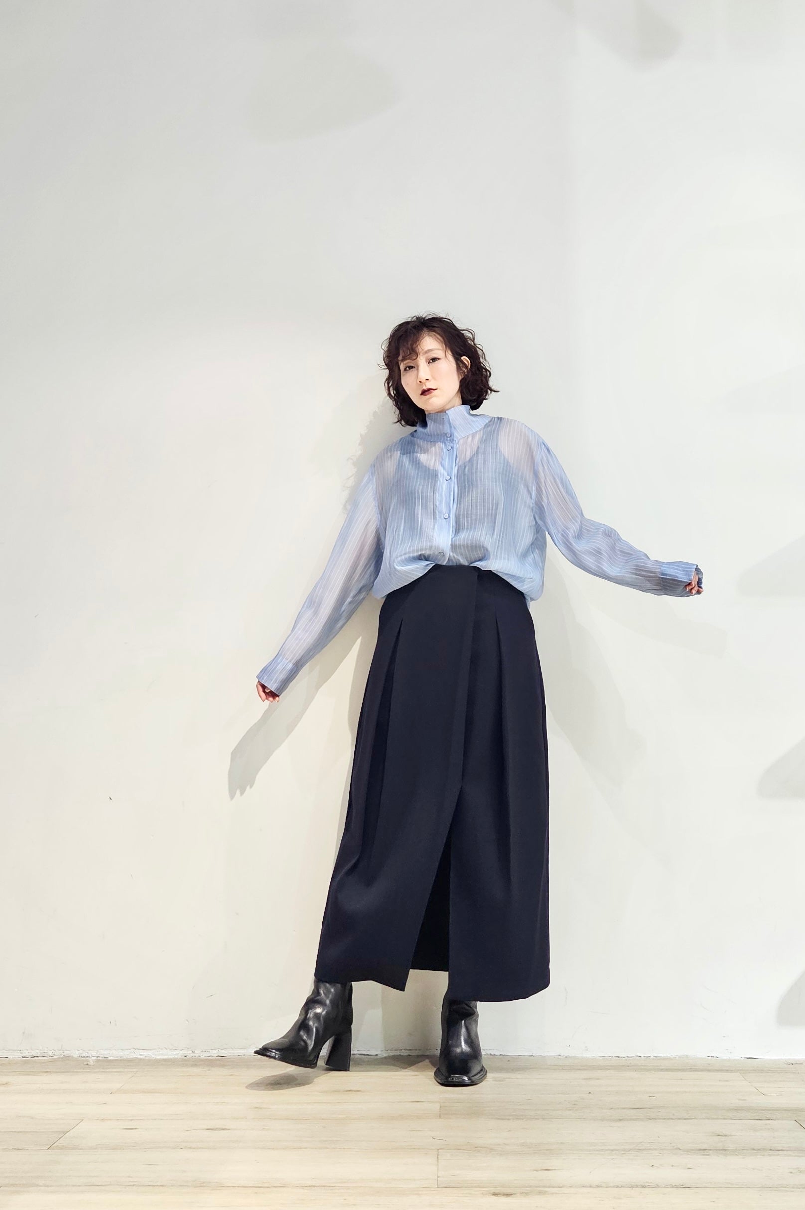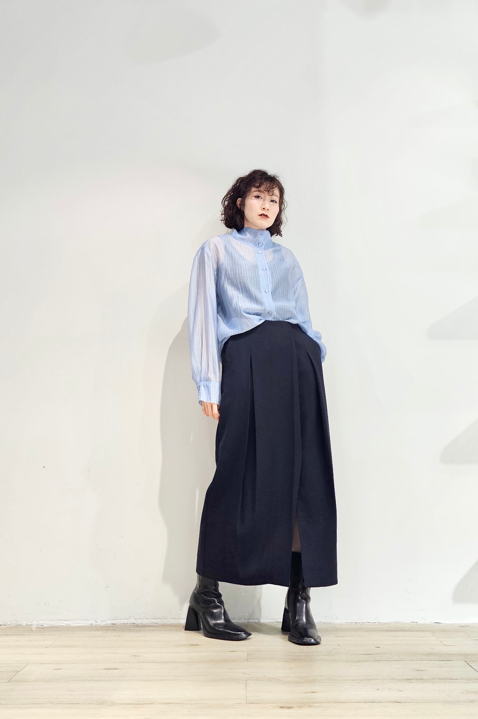 Stand collar stripe sheer blouse - 3 colours (pre-order)