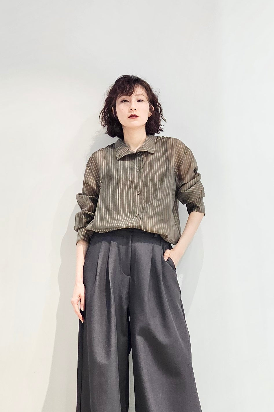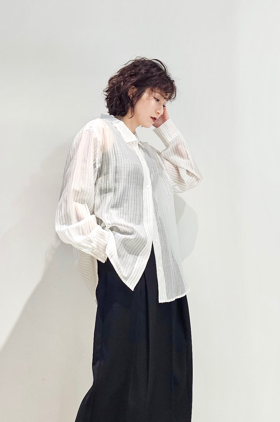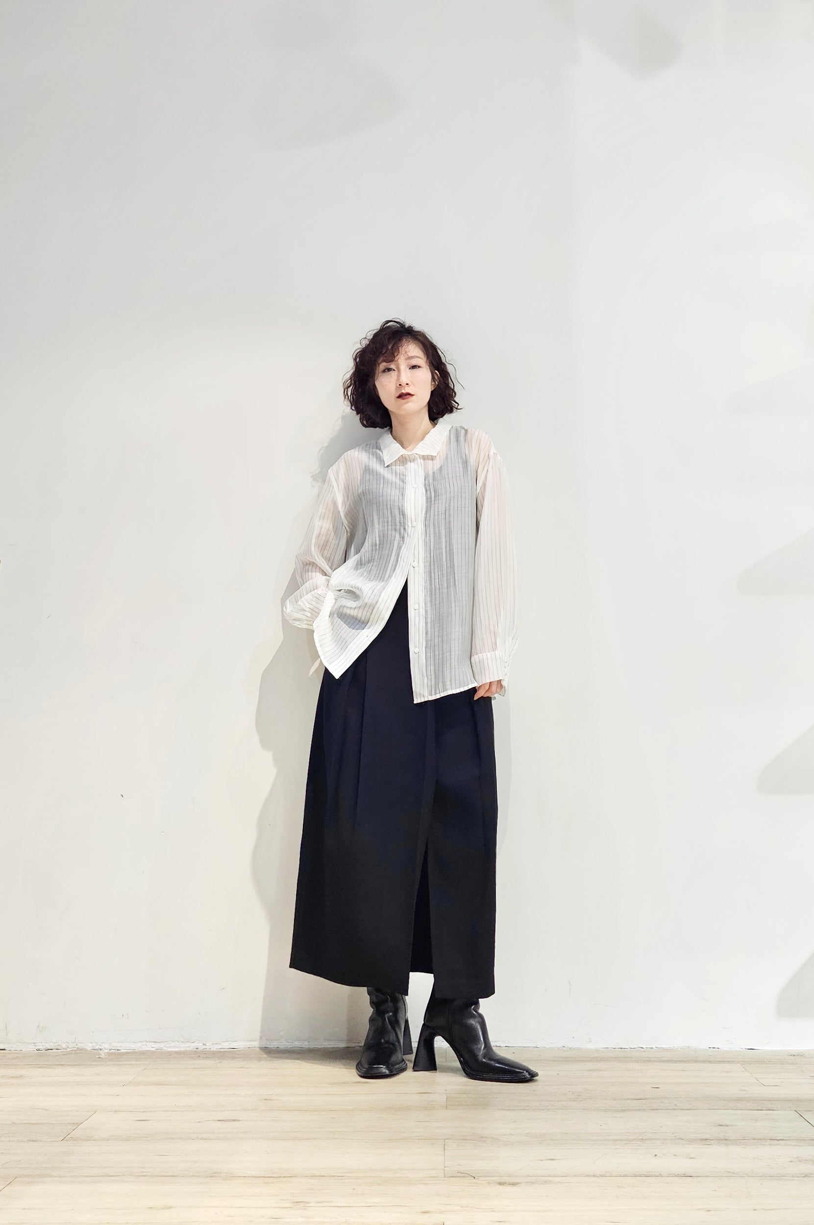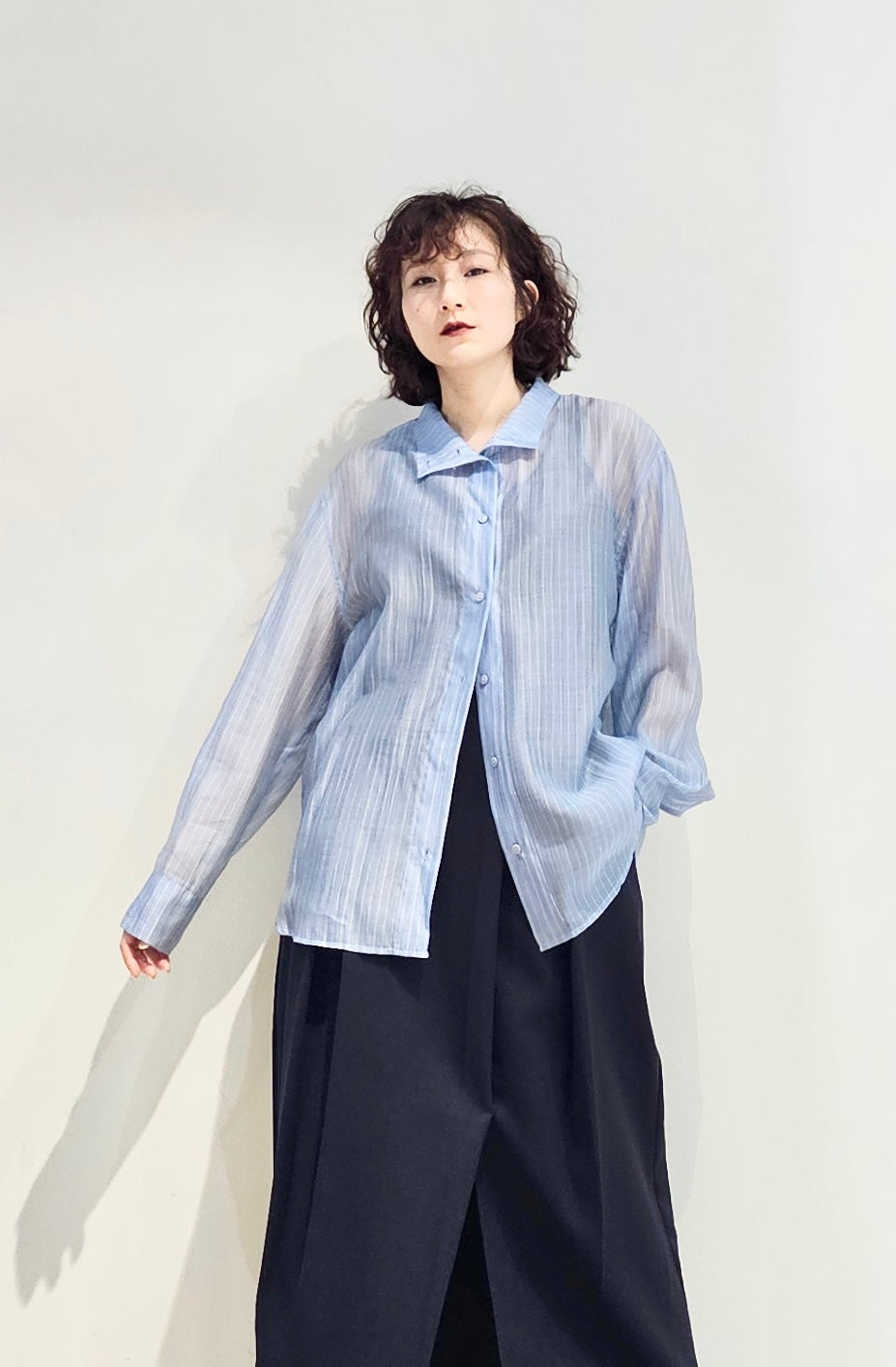 Stand collar stripe sheer blouse - 3 colours (pre-order)