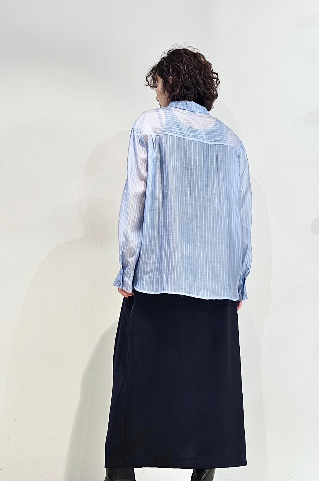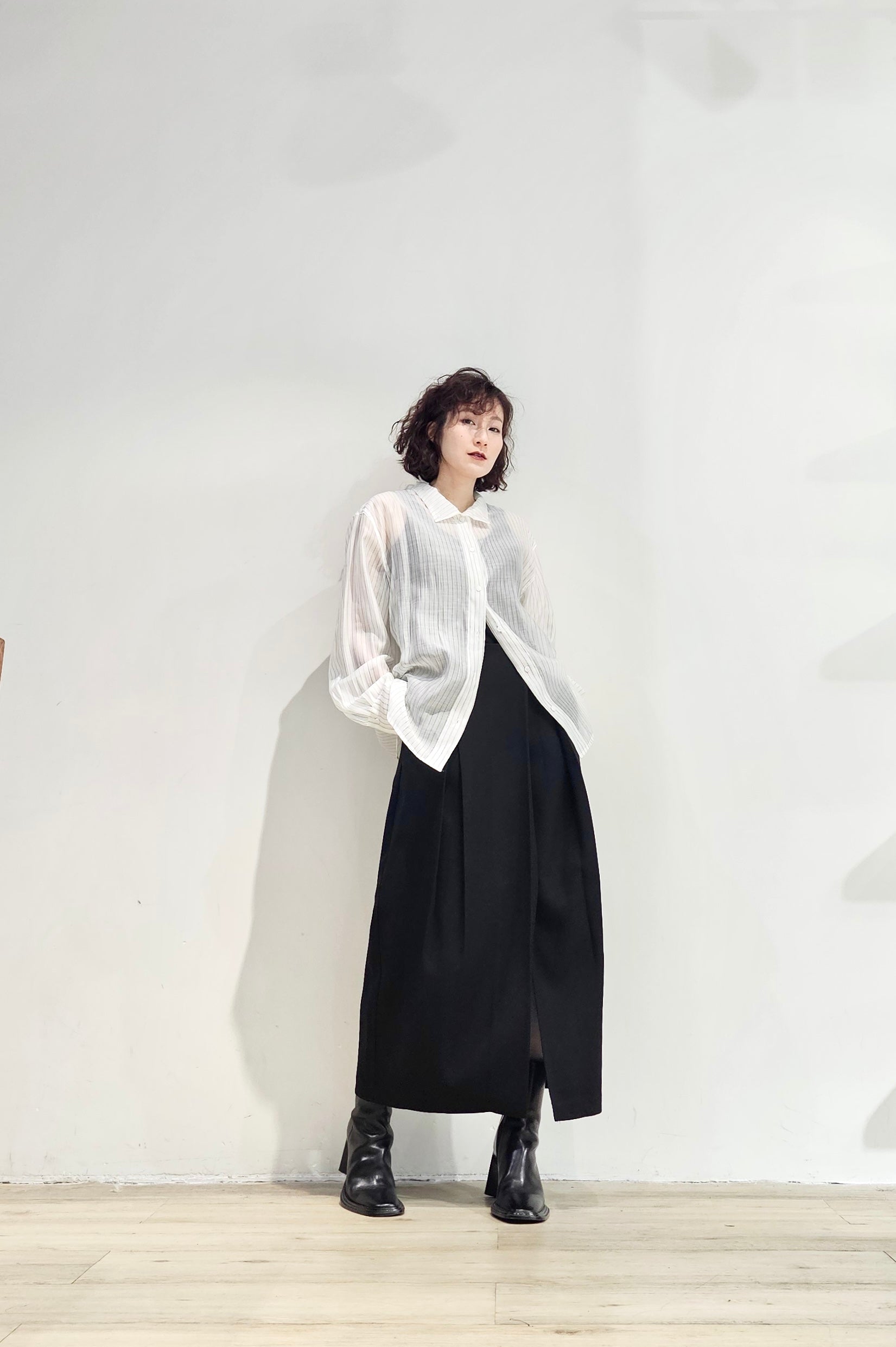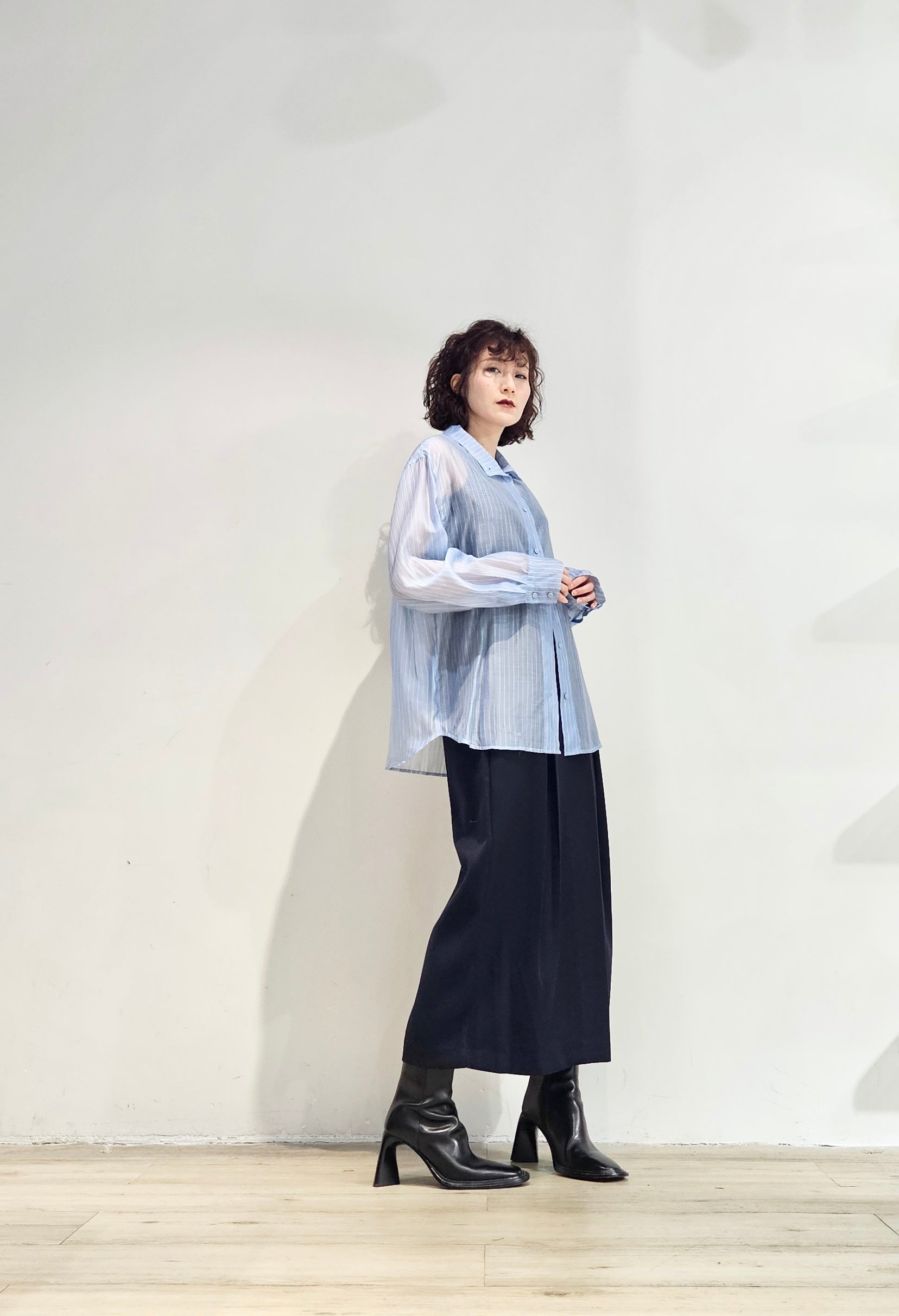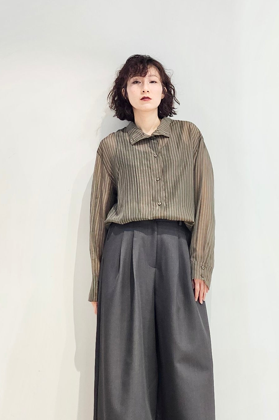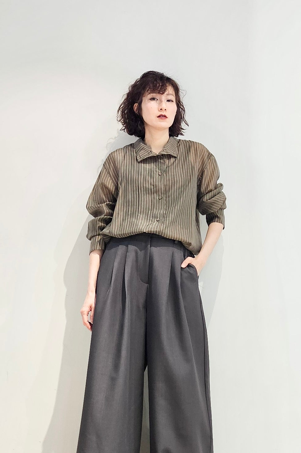 Stand collar stripe sheer blouse - 3 colours (pre-order)