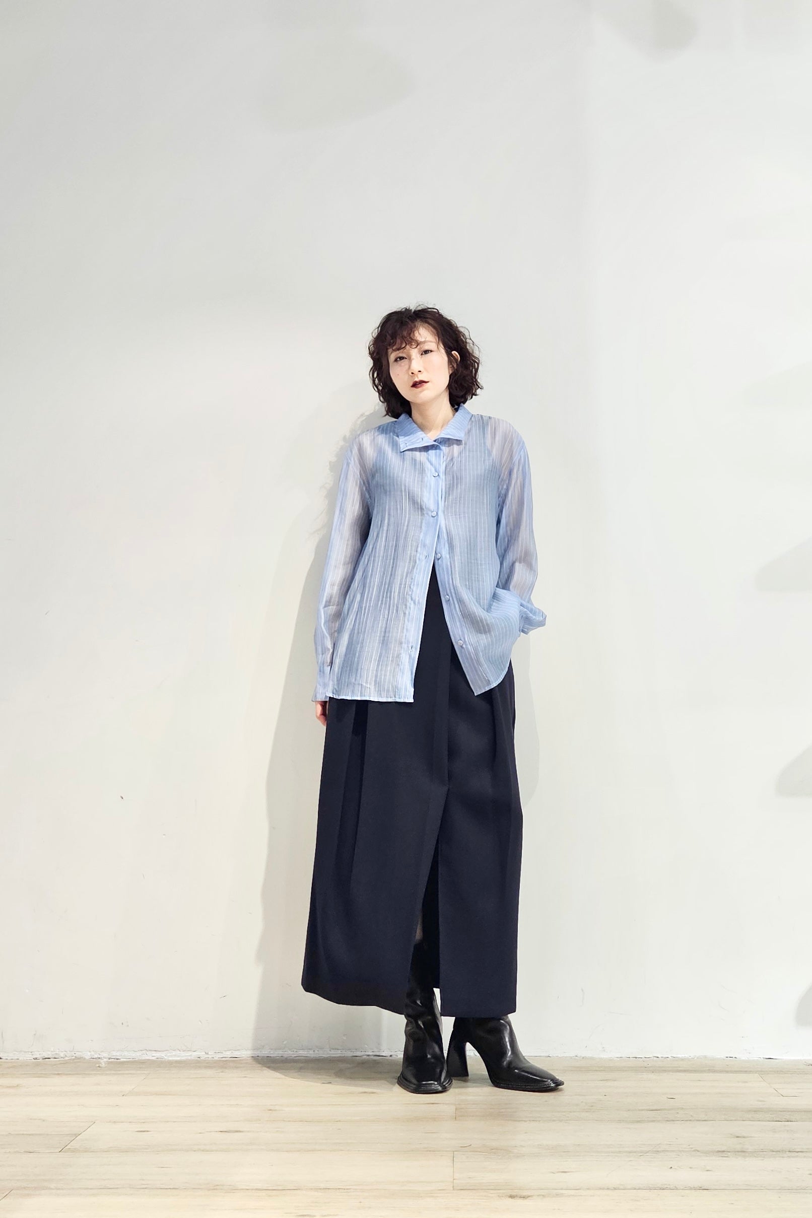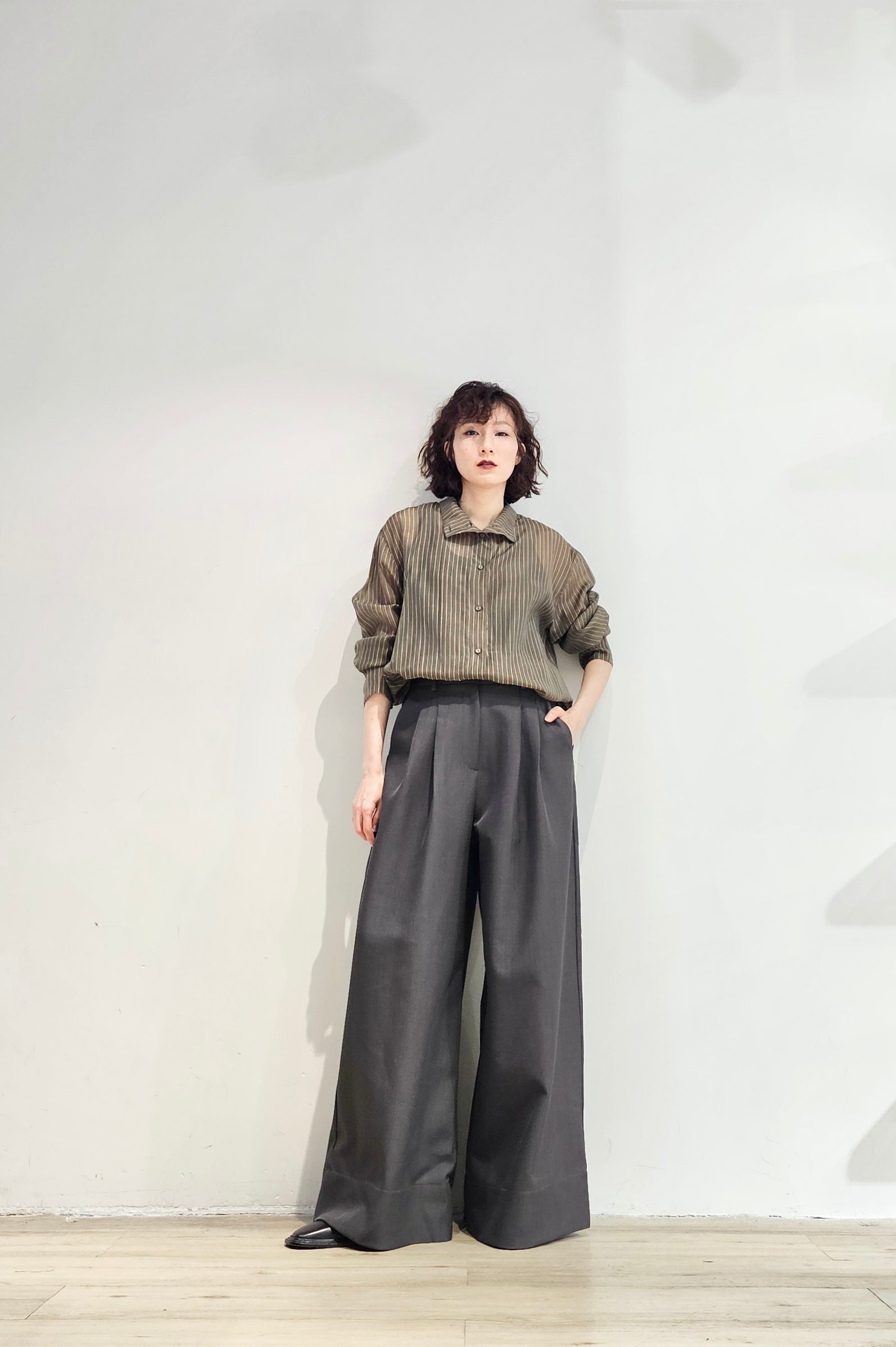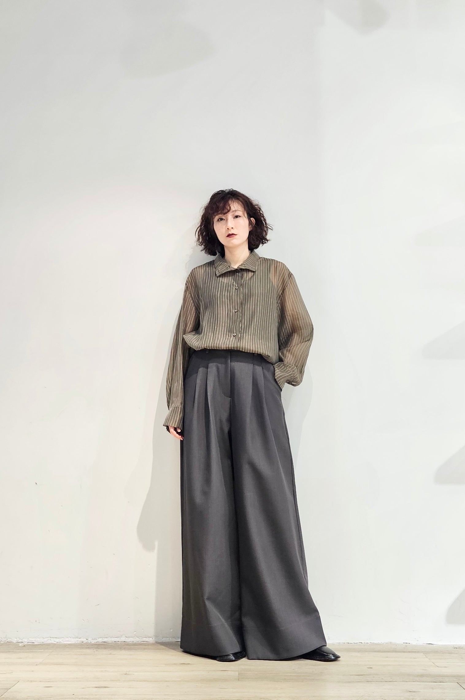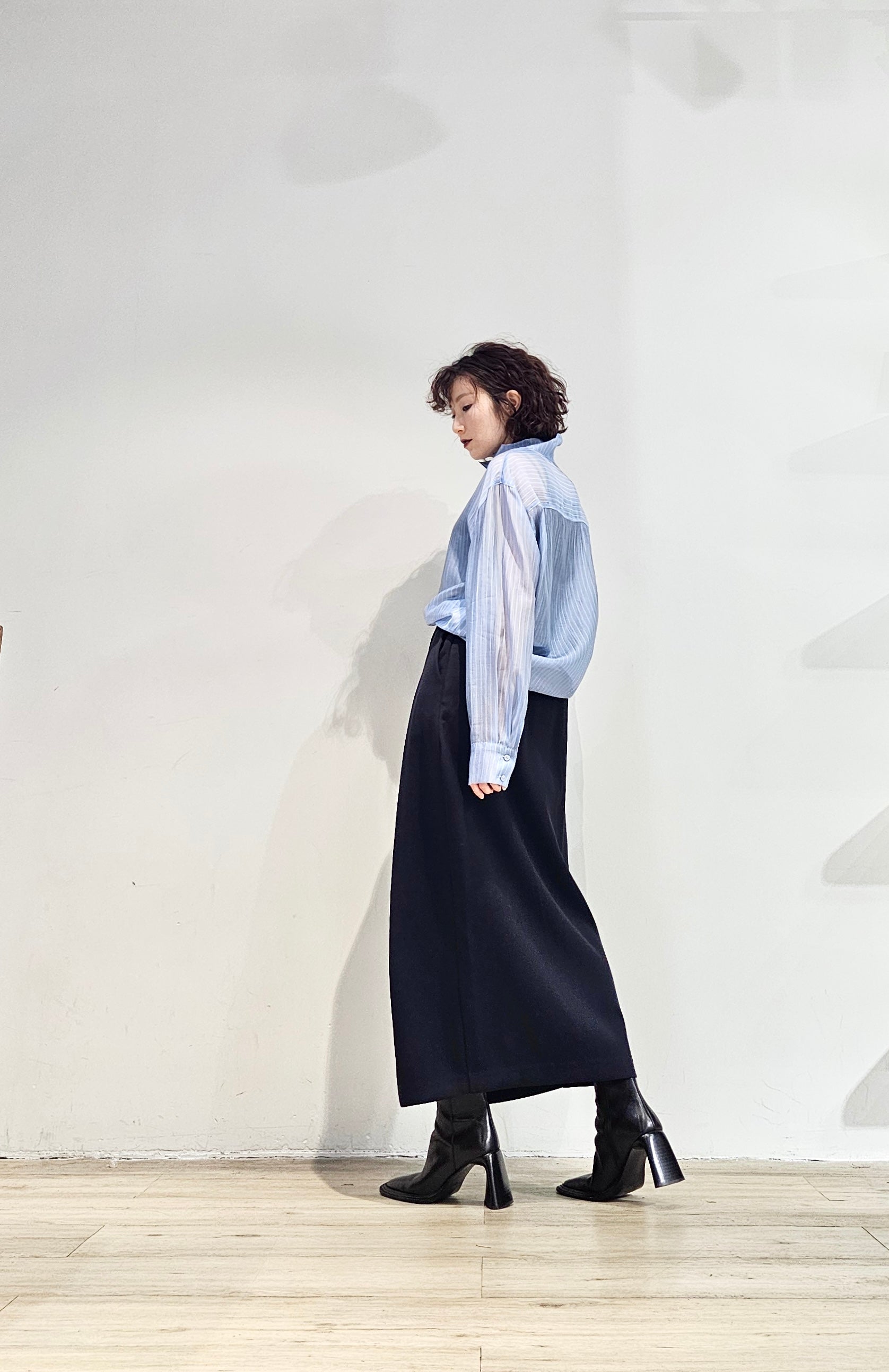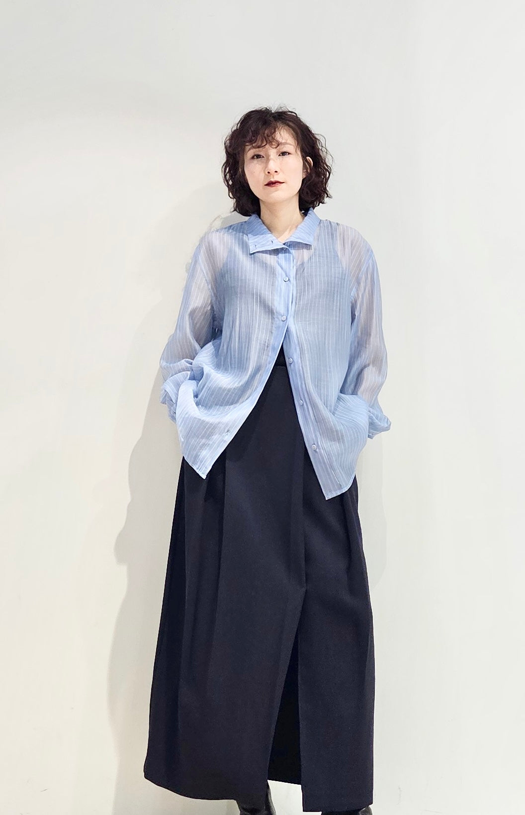 Stand collar stripe sheer blouse - 3 colours (pre-order)