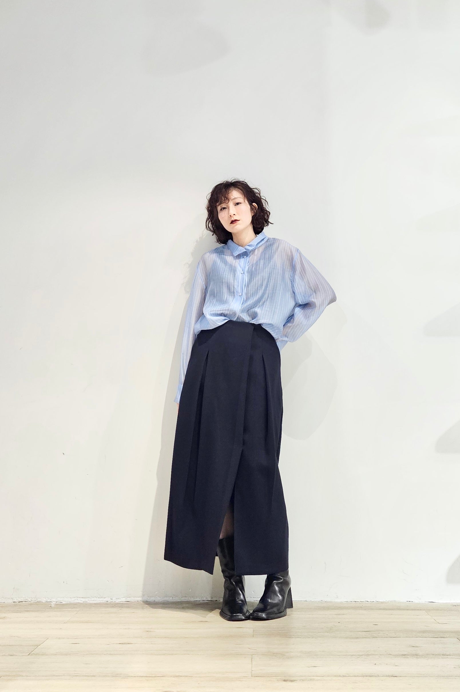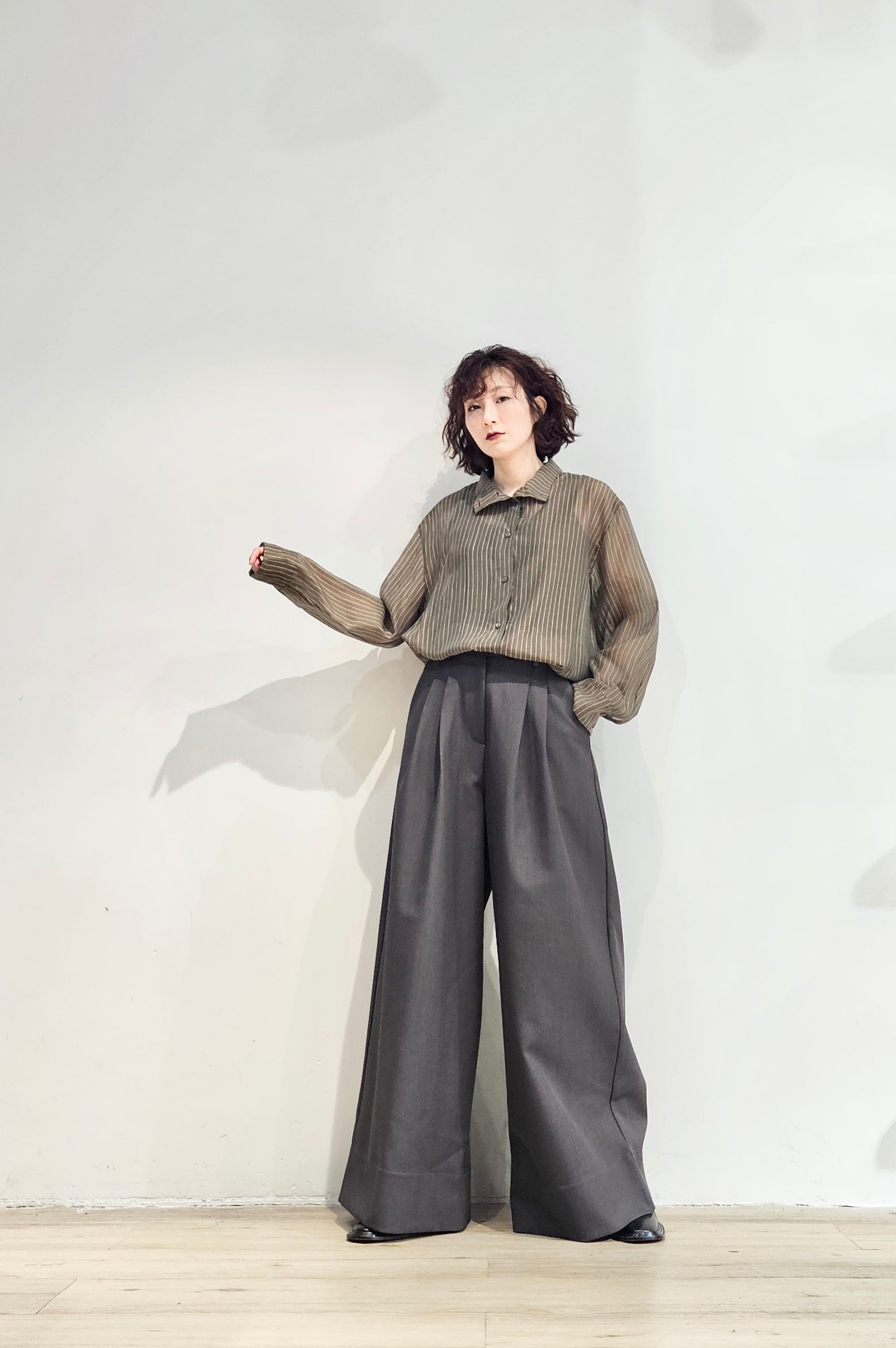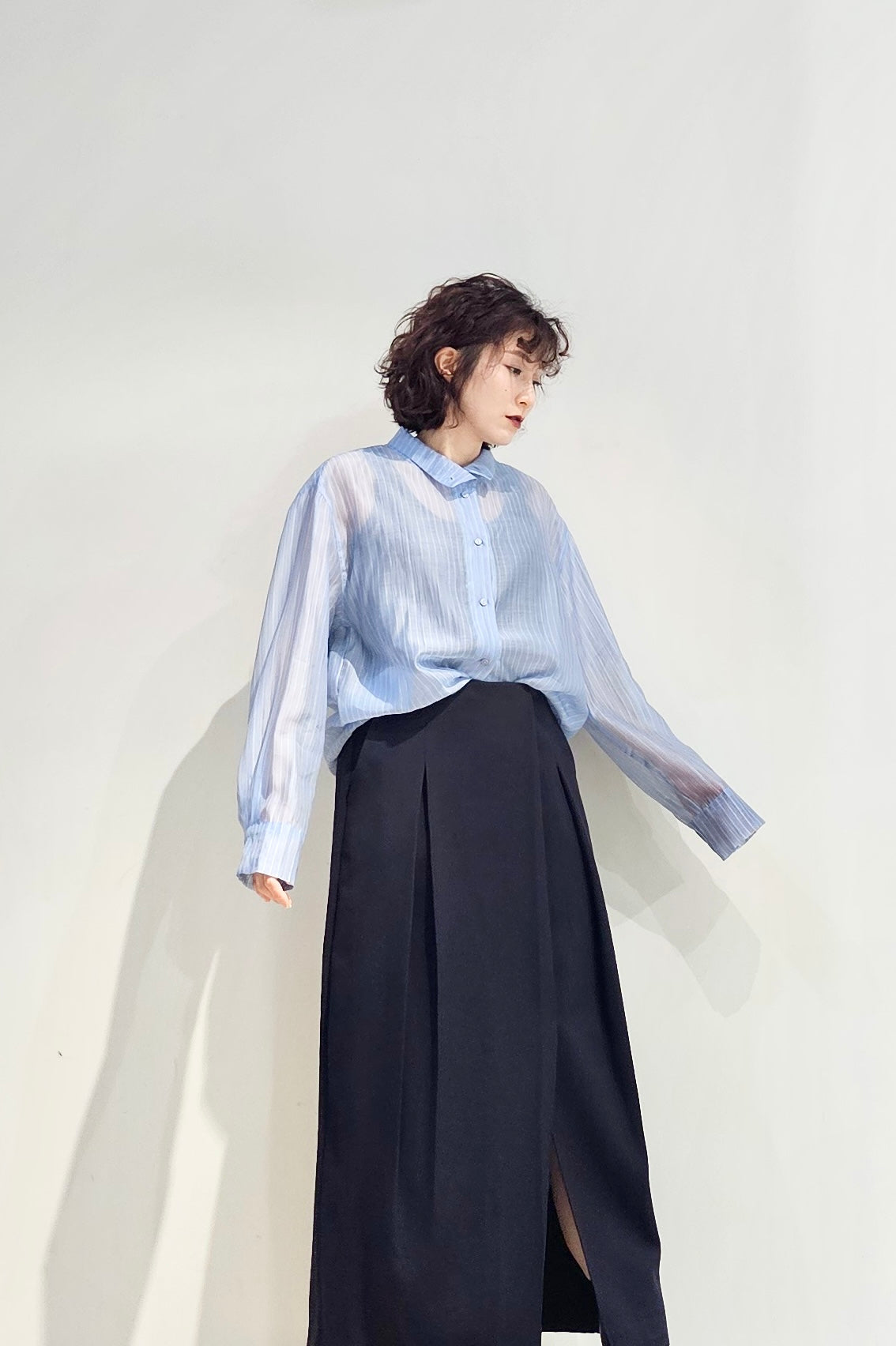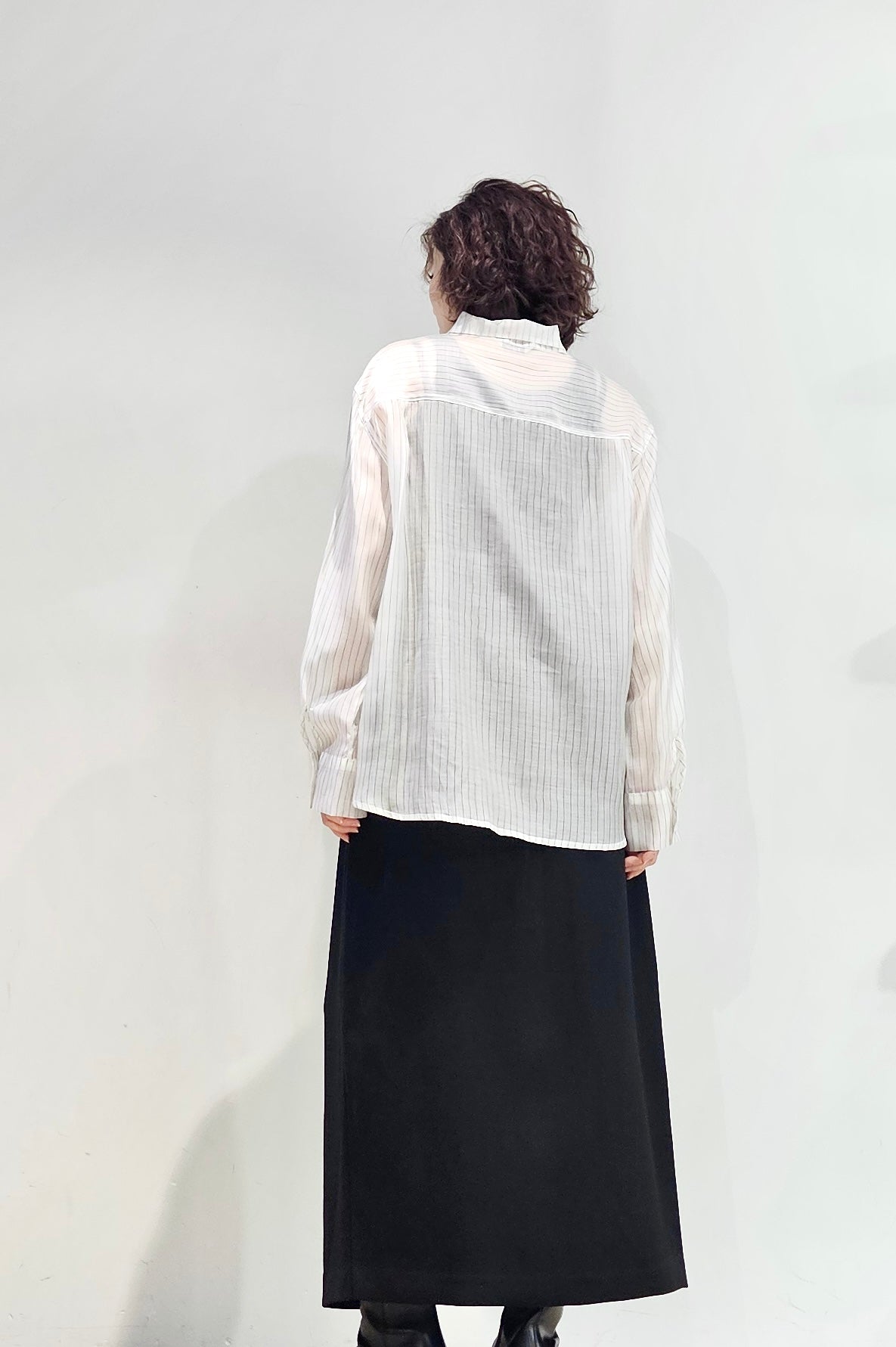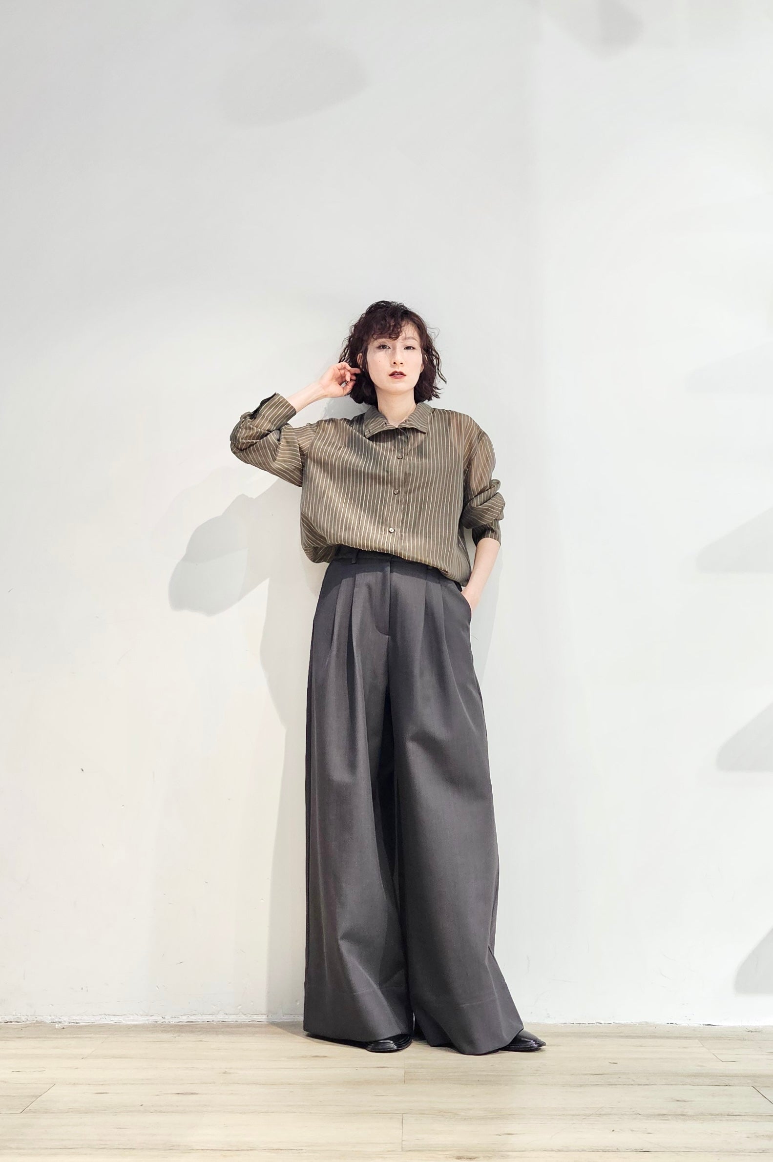 Stand collar stripe sheer blouse - 3 colours (pre-order)