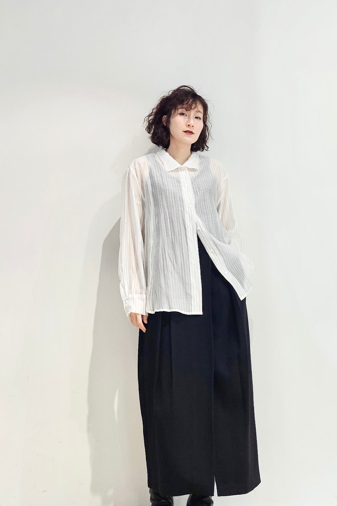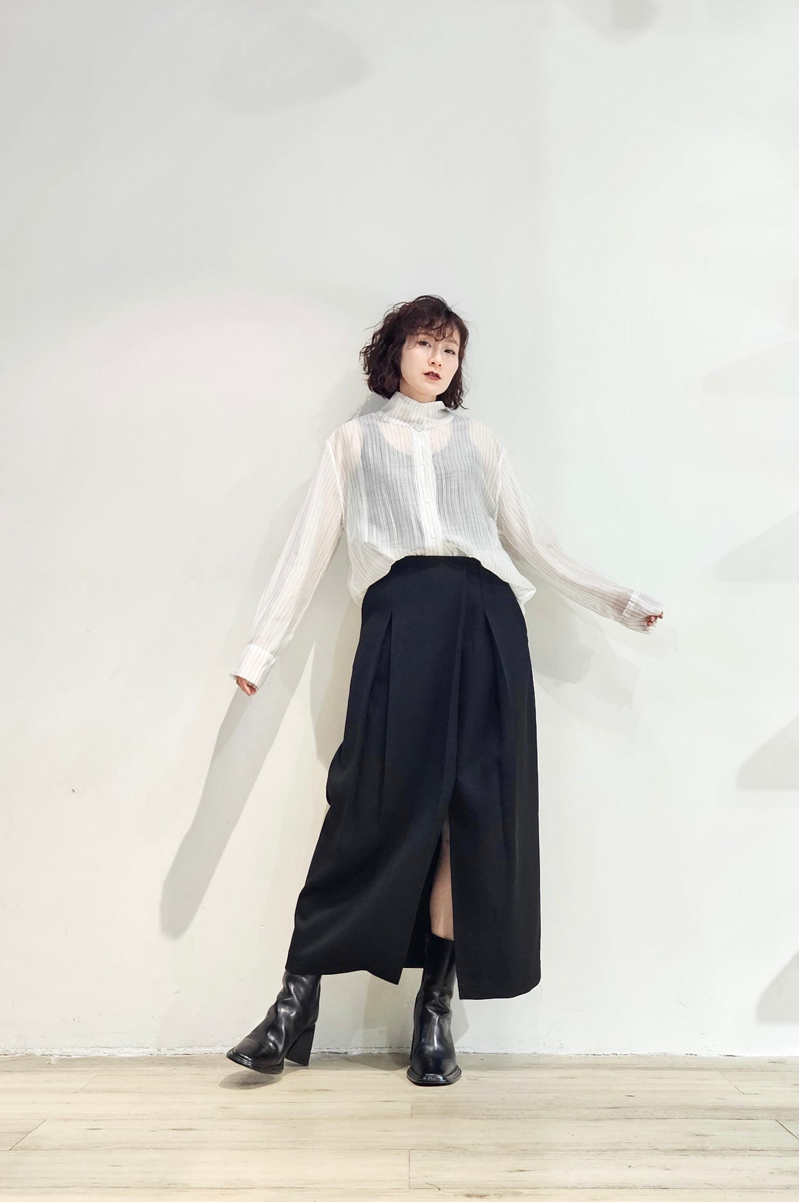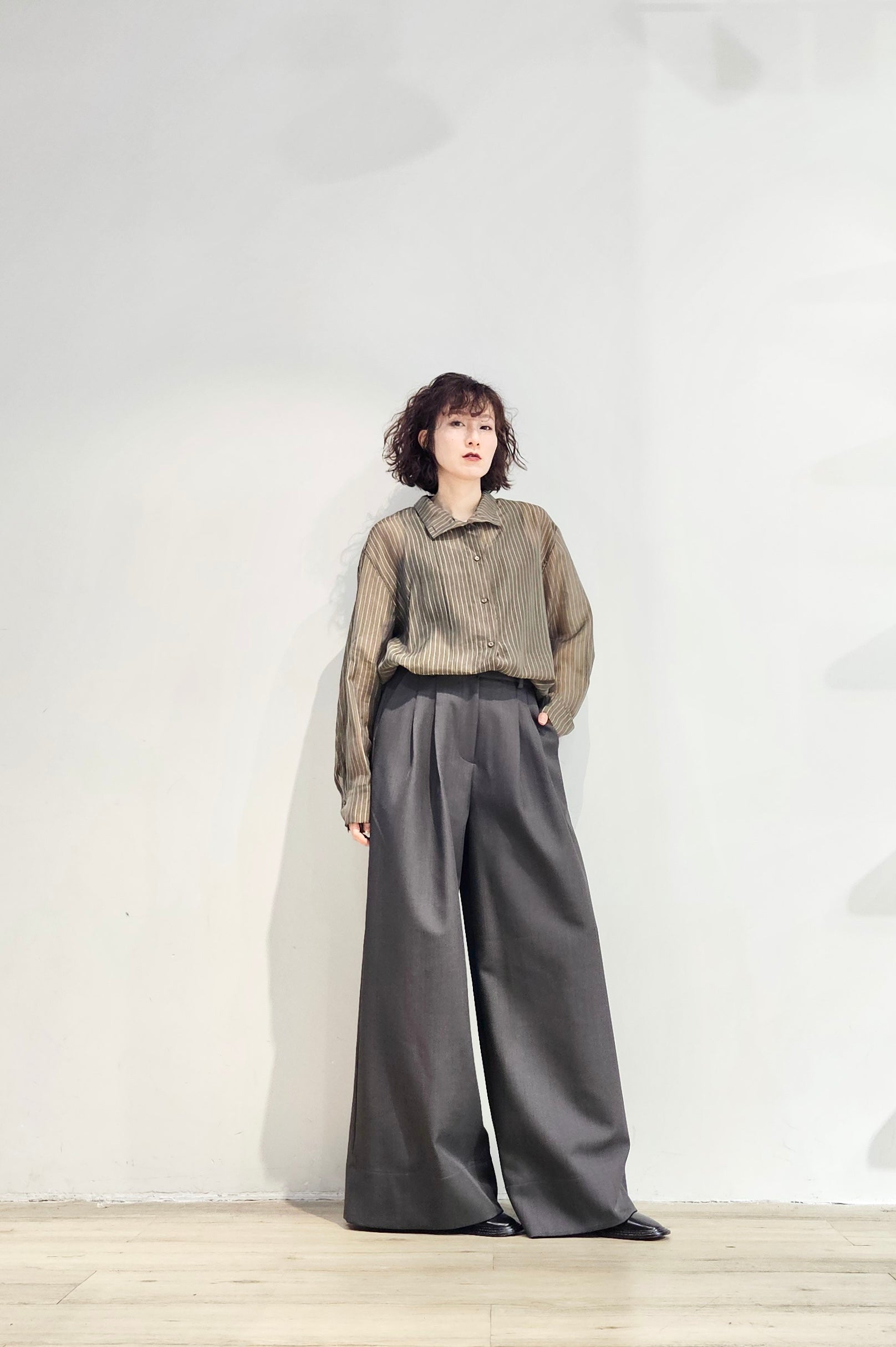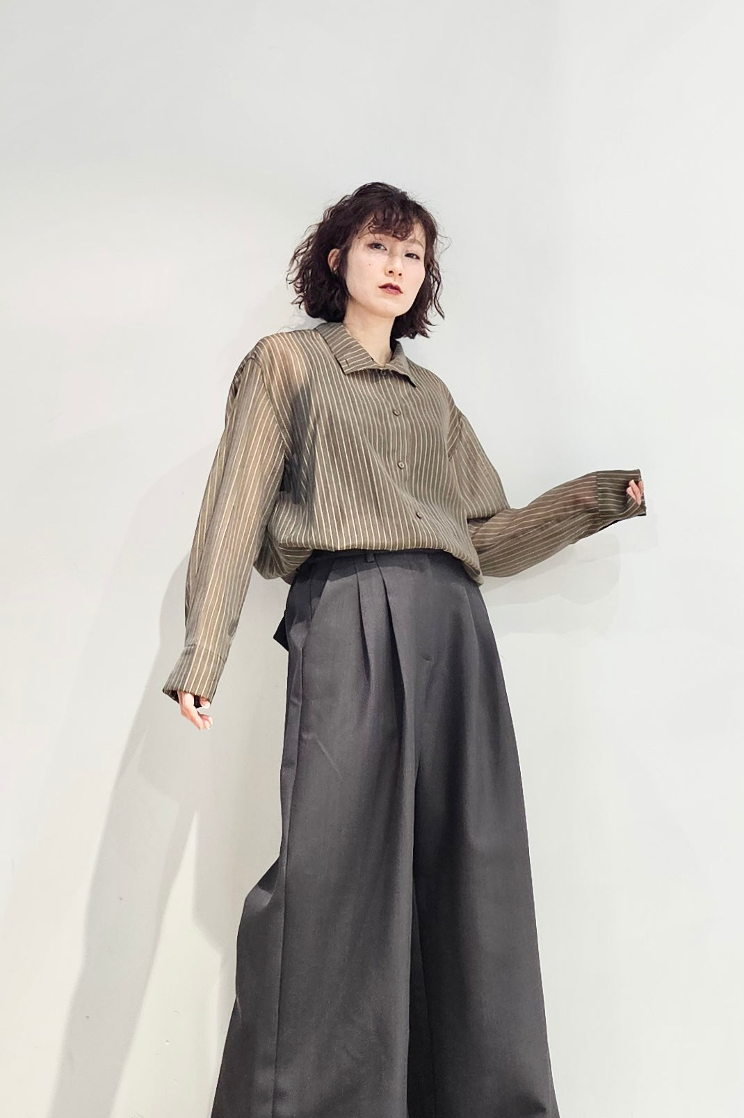 Stand collar stripe sheer blouse - 3 colours (pre-order)