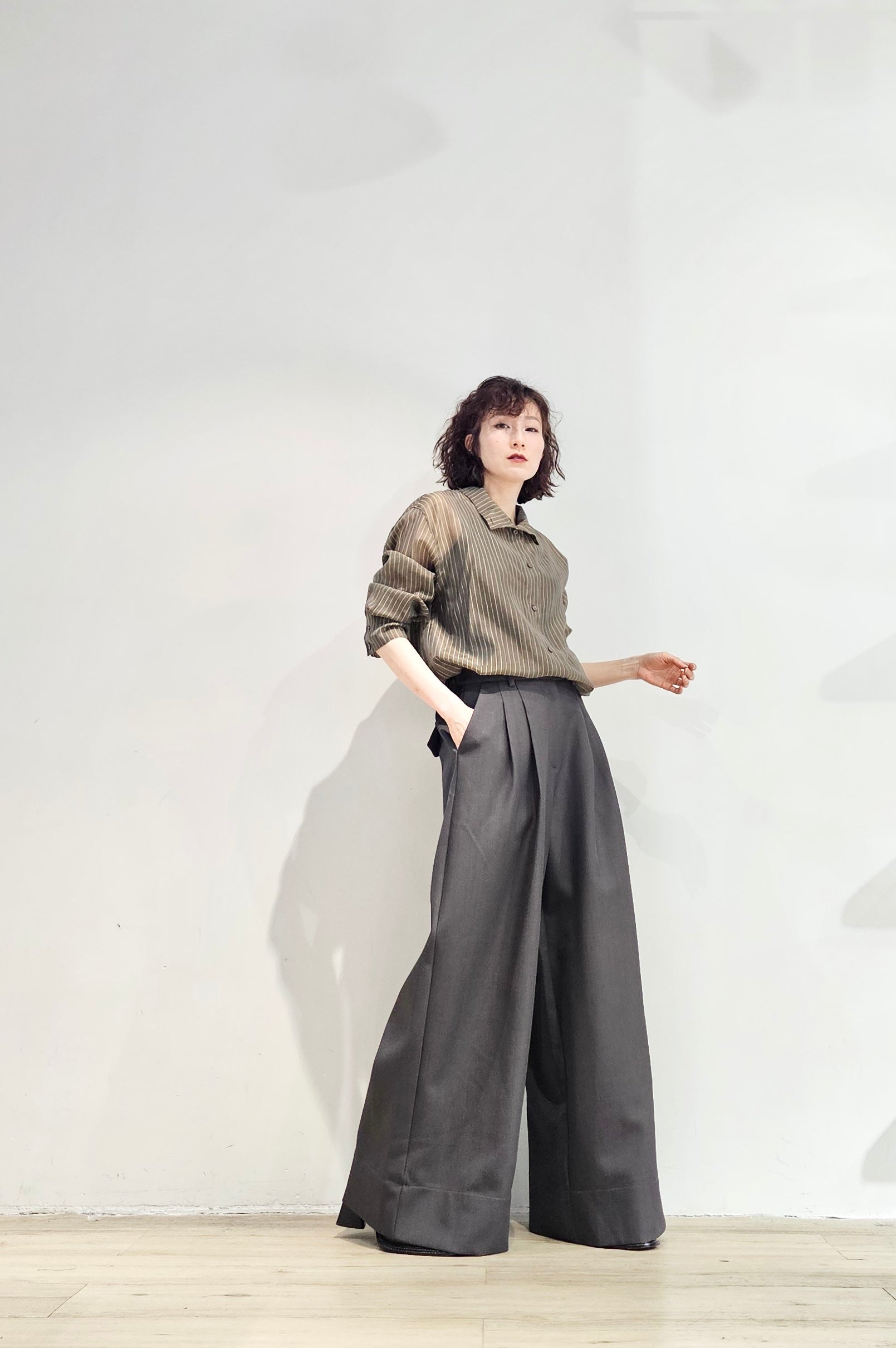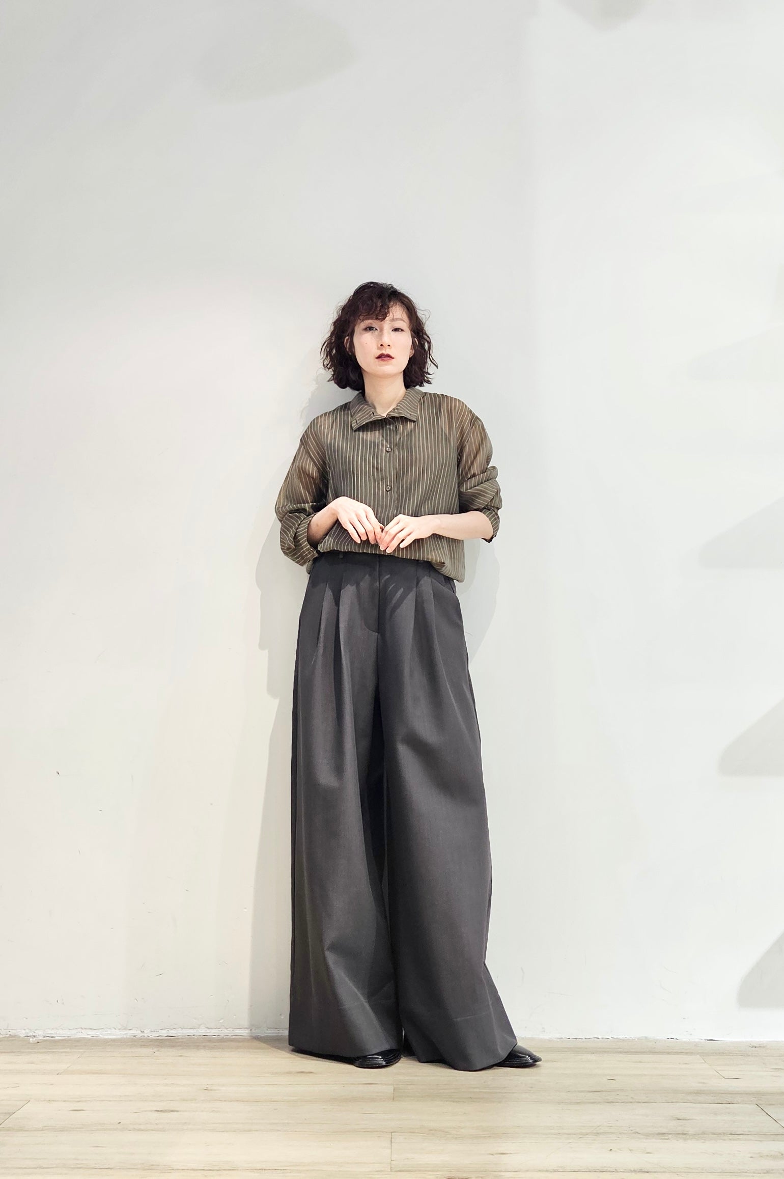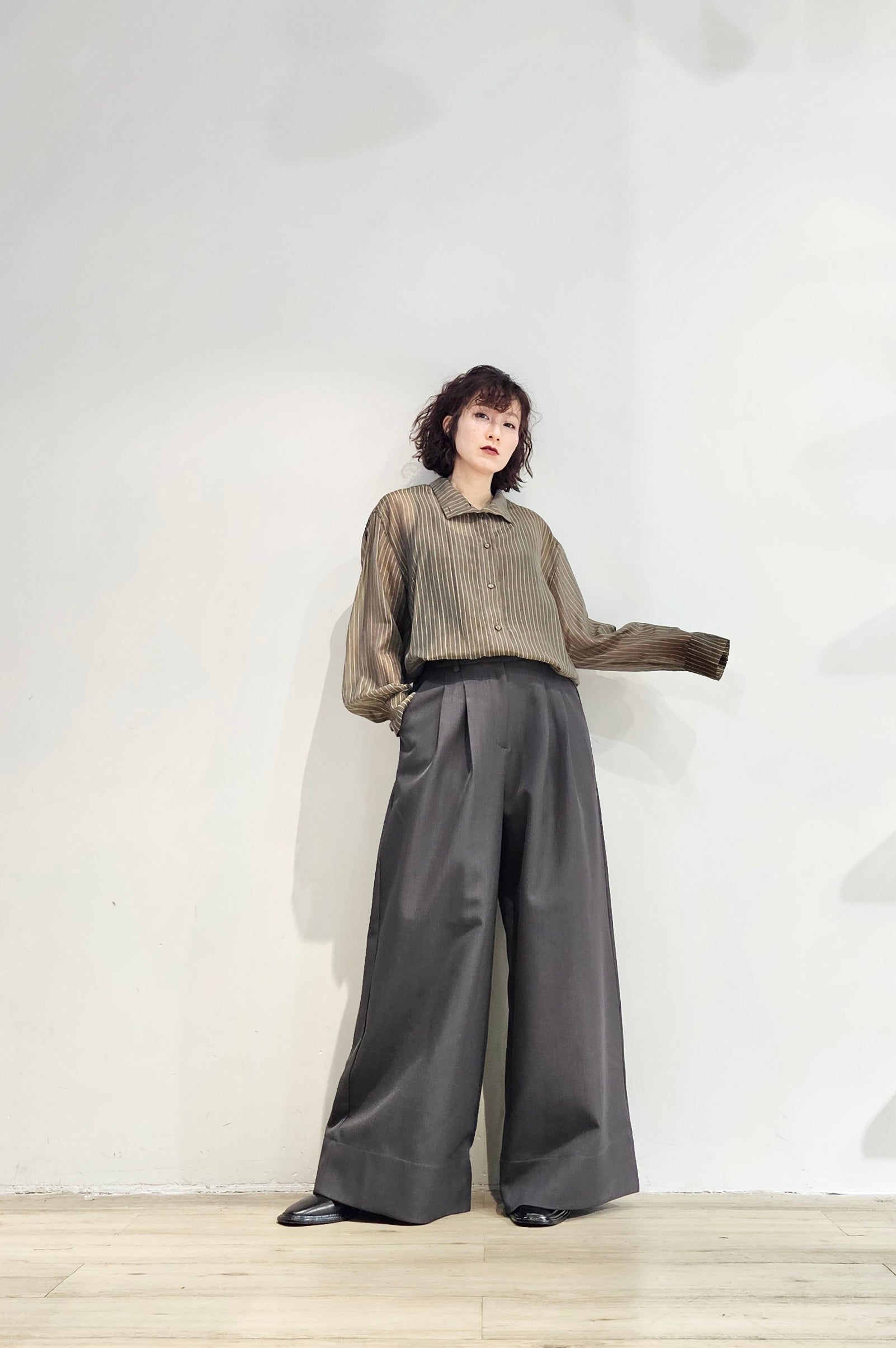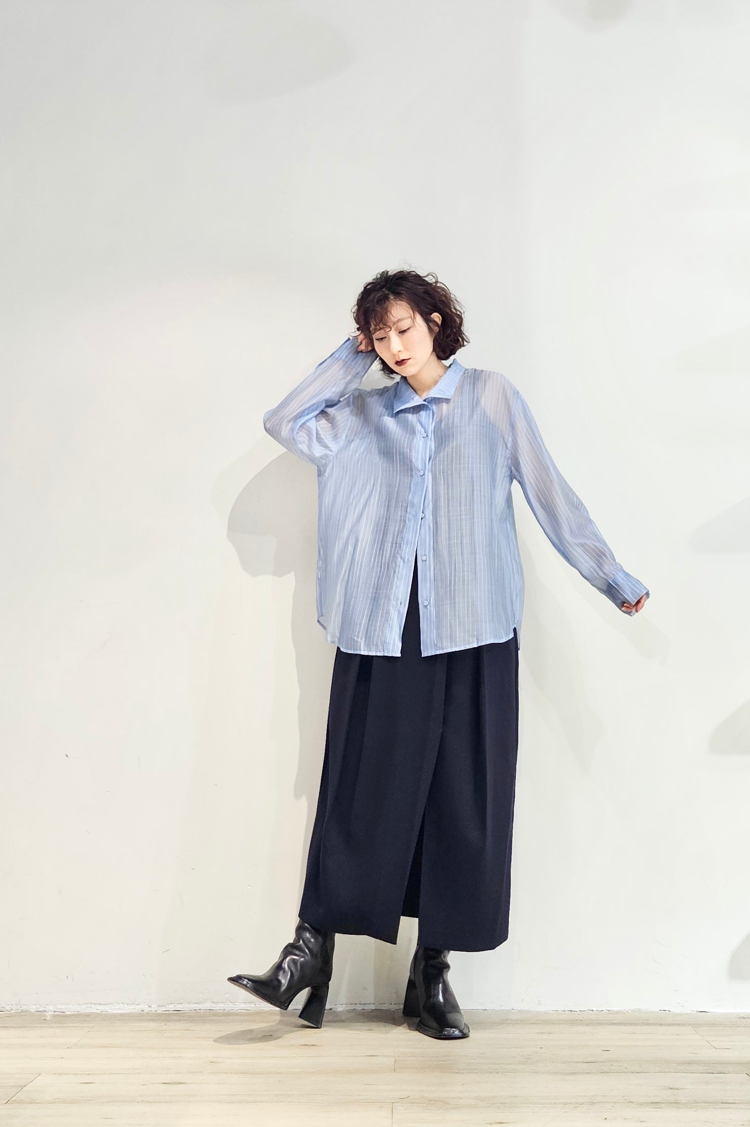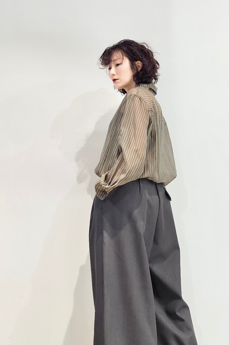 Stand collar stripe sheer blouse - 3 colours (pre-order)