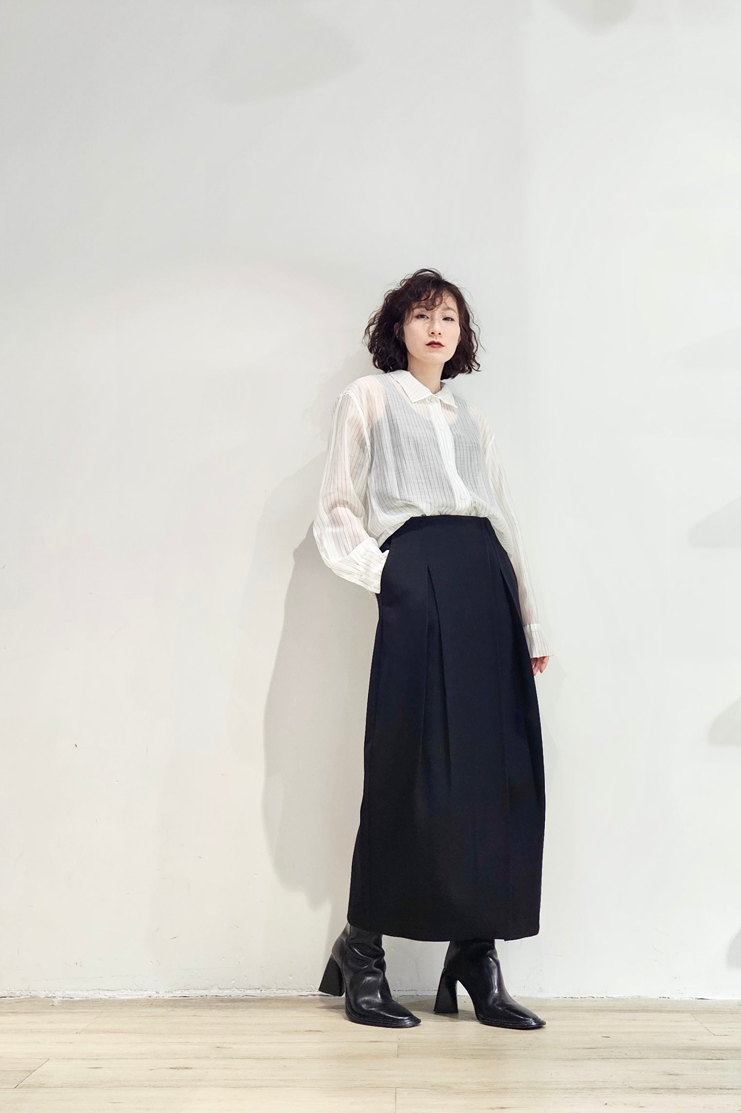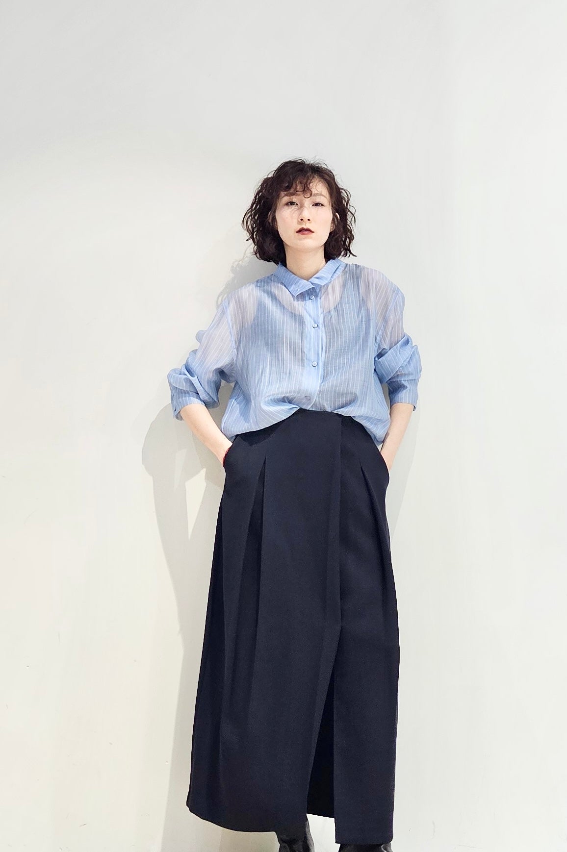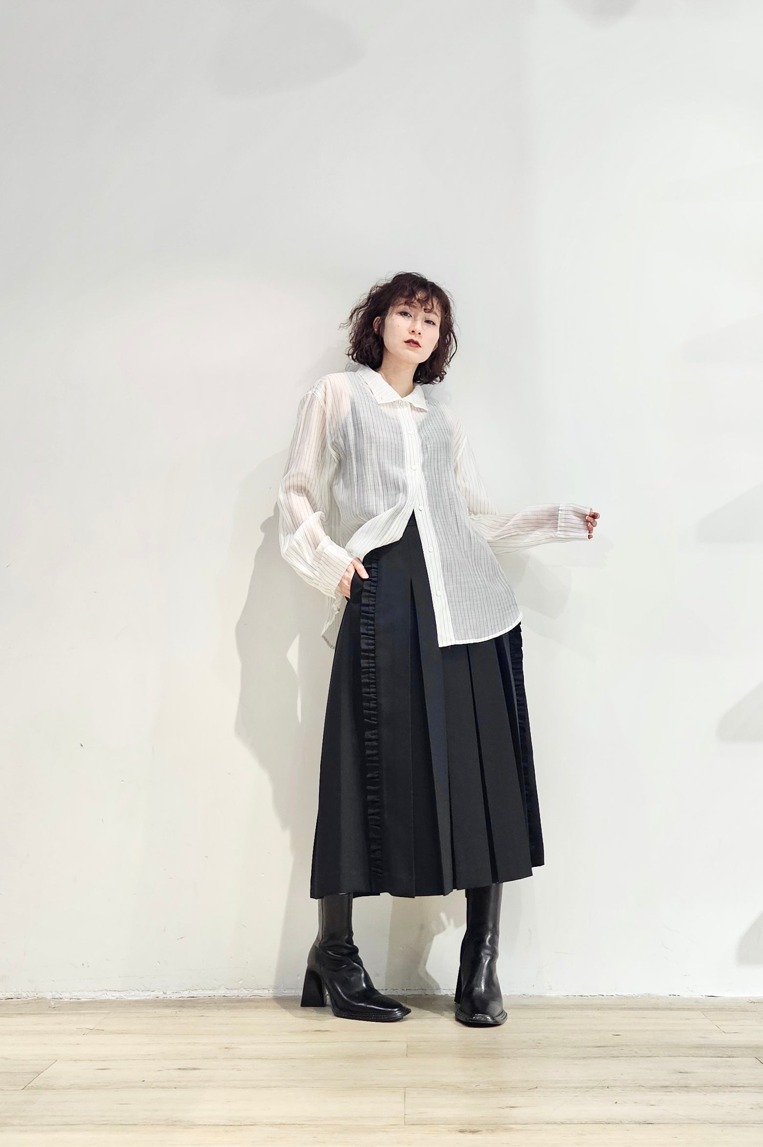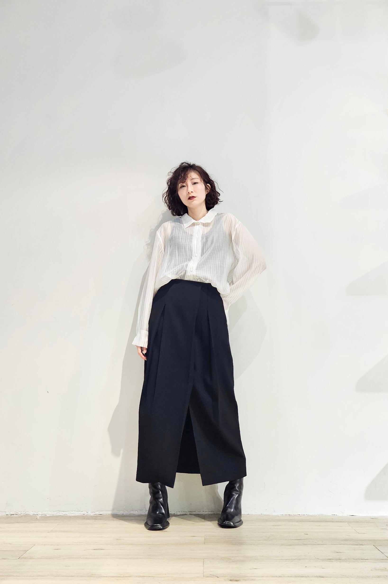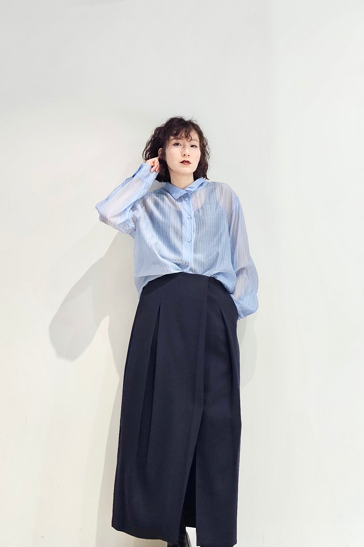 Stand collar stripe sheer blouse - 3 colours (pre-order)