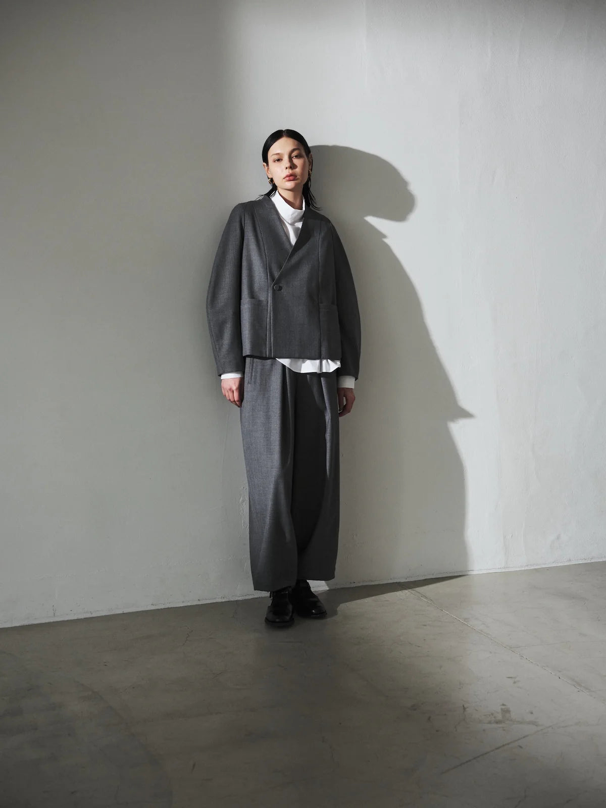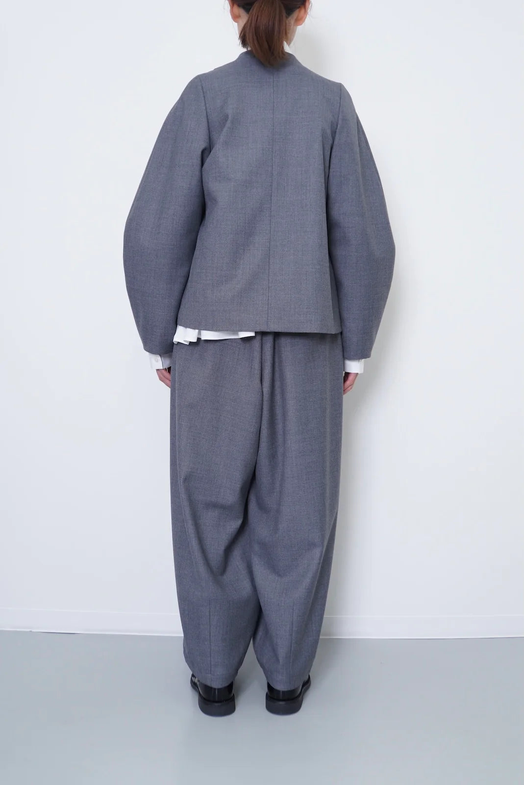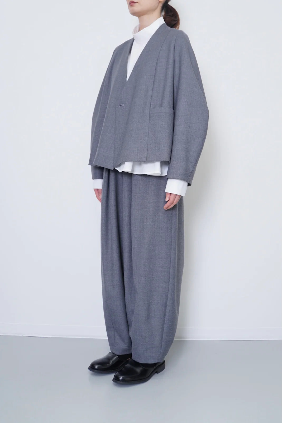 OTOÄA NAVY LANDSCAPE's designs begin with pants. The silhouette, which focuses on the space between the garment and the body, reflects the brand's design philosophy. The high rise and relaxed hips subtly contour the body.