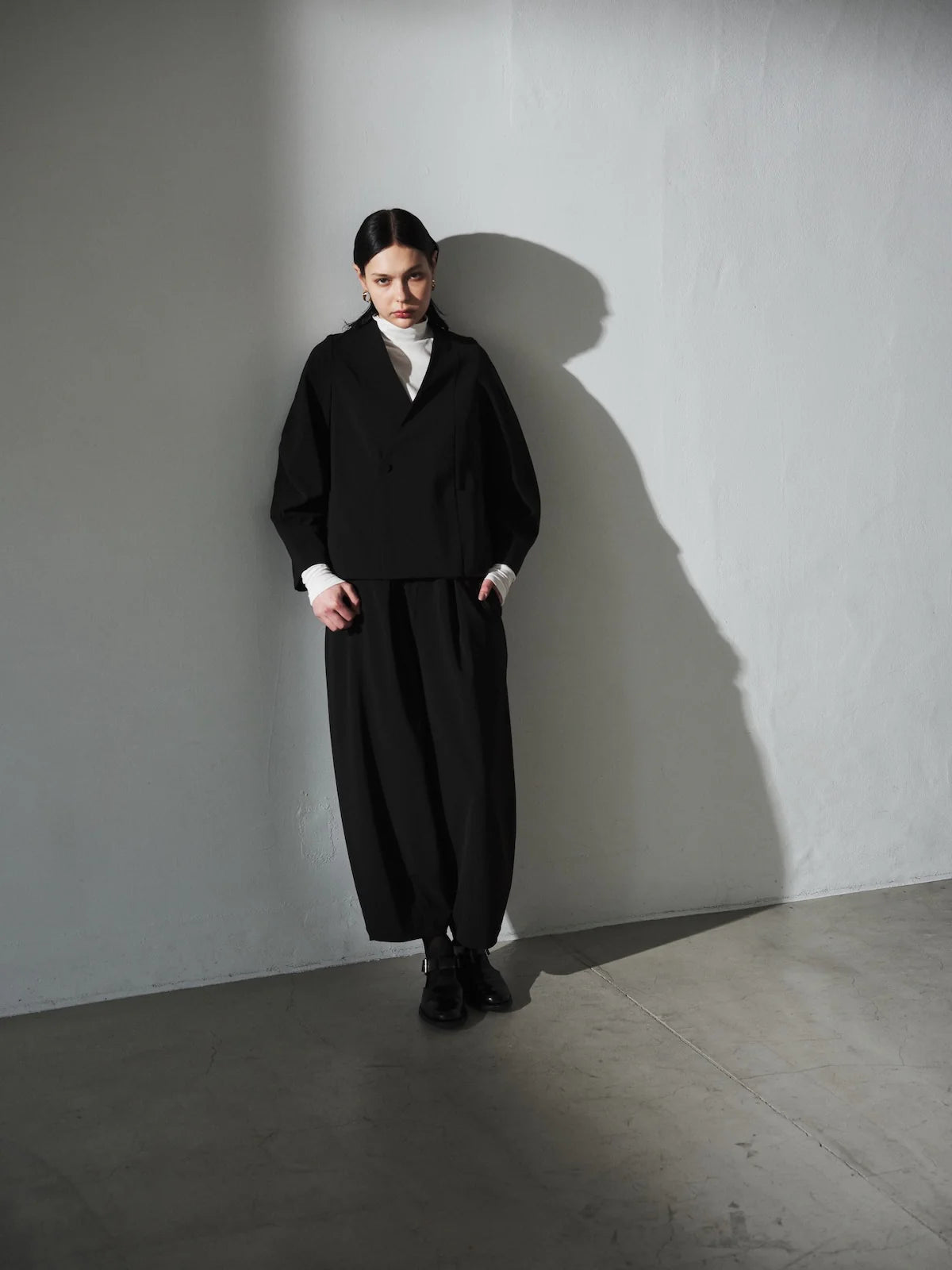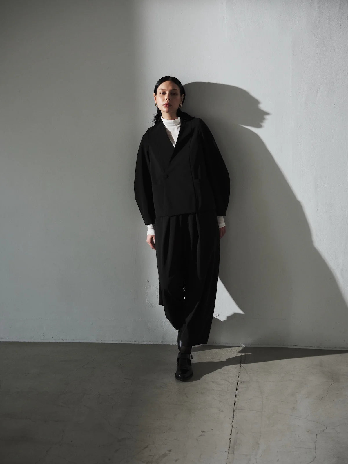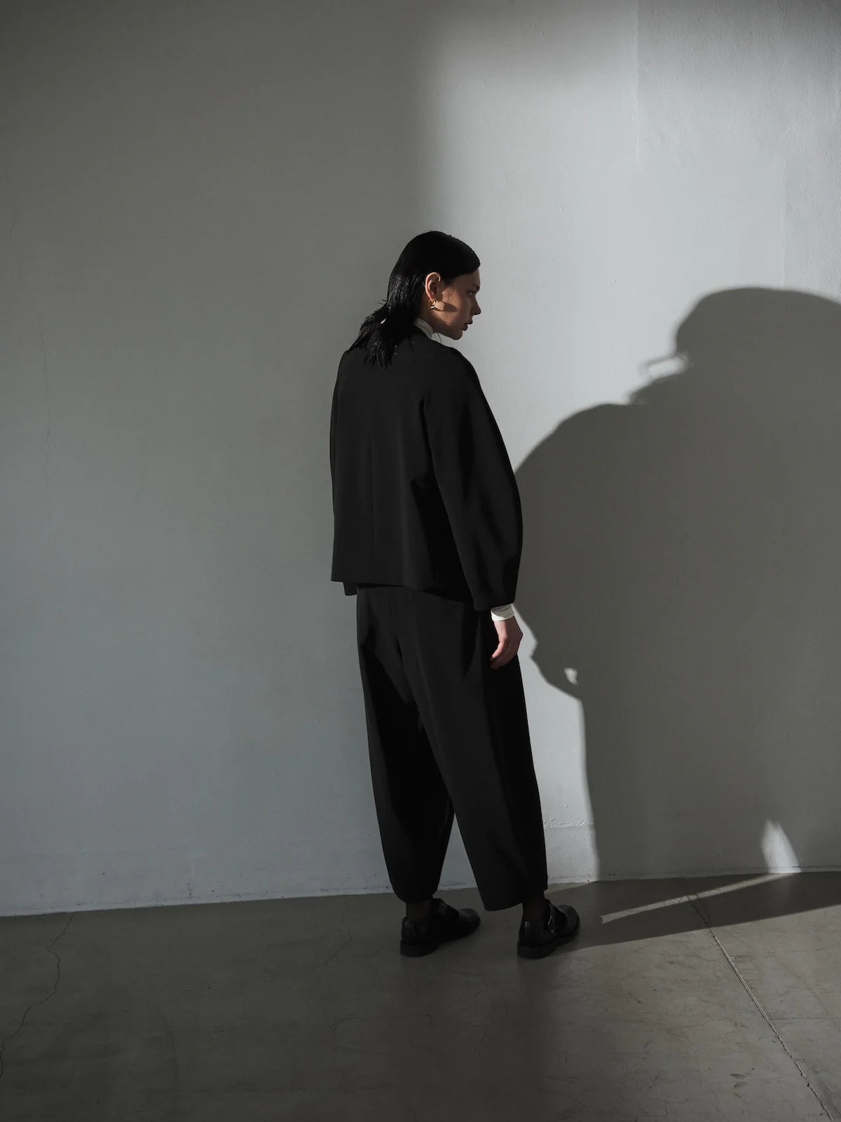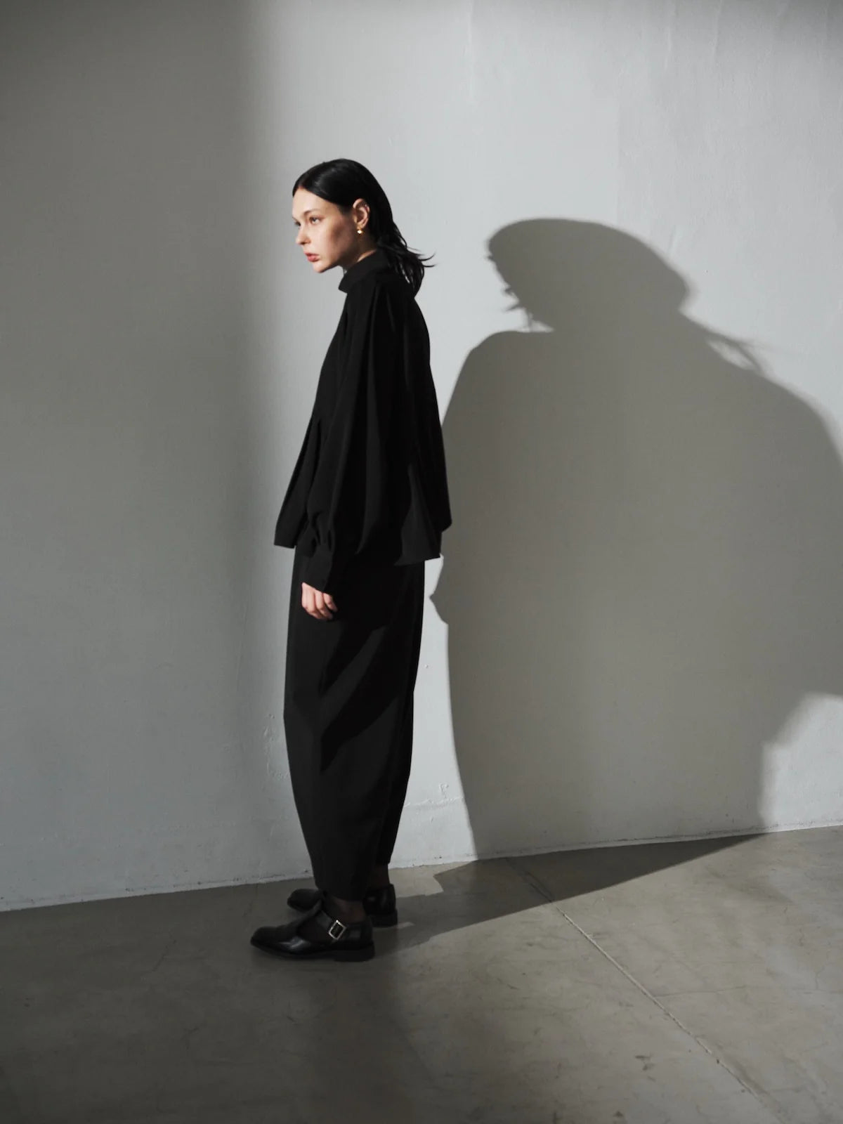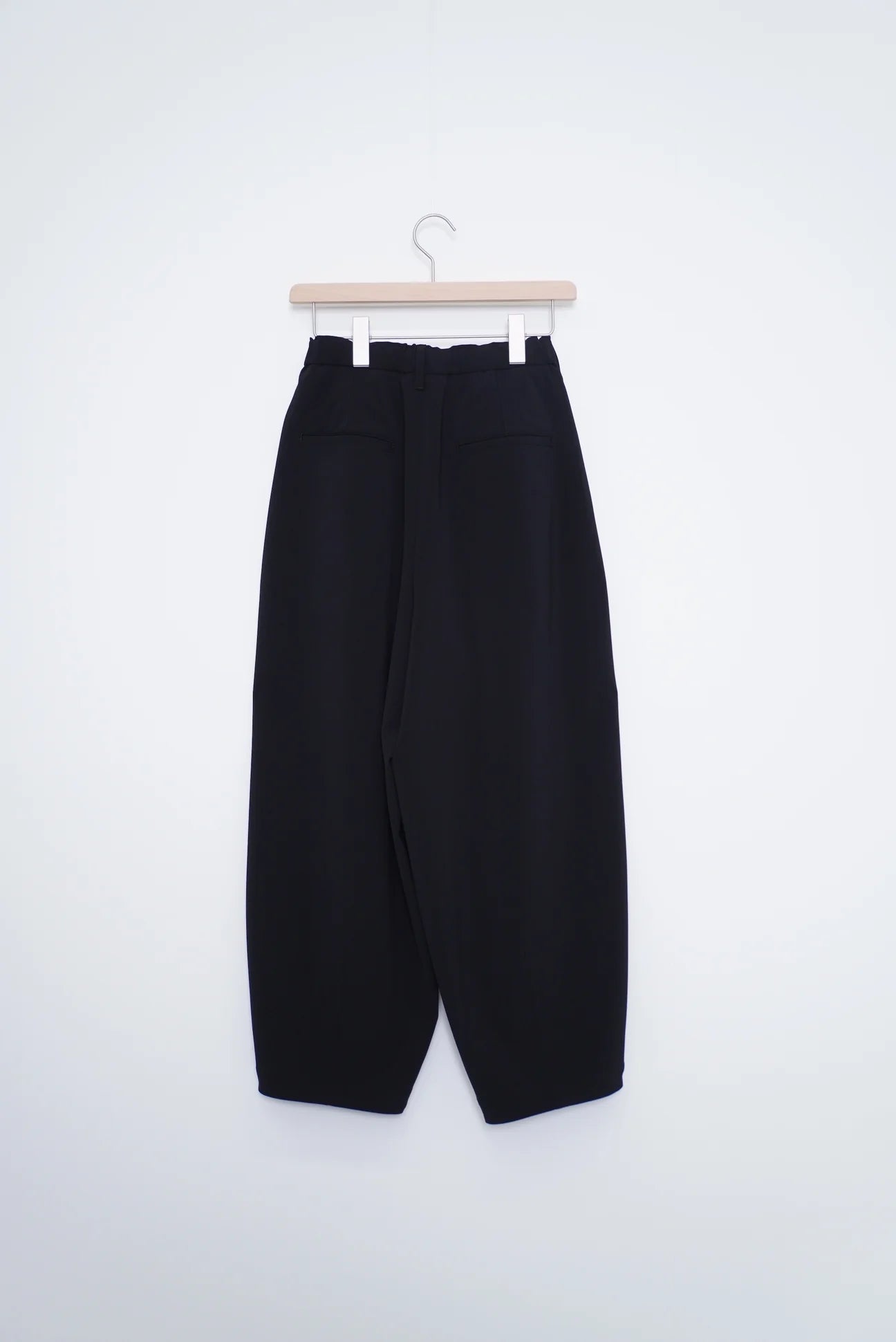 OTOÄA NAVY LANDSCAPE's designs begin with pants. The silhouette, which emphasizes the space between the garment and the body, reflects the brand's design philosophy. The high rise and generous hips subtly contour the figure.