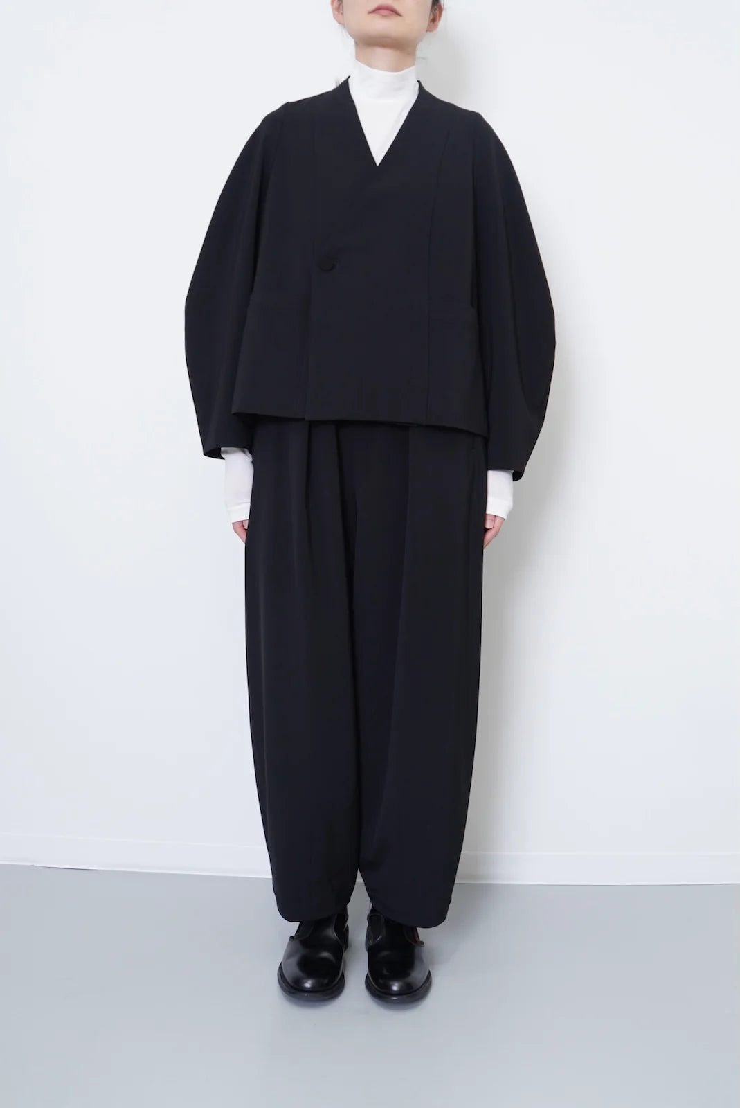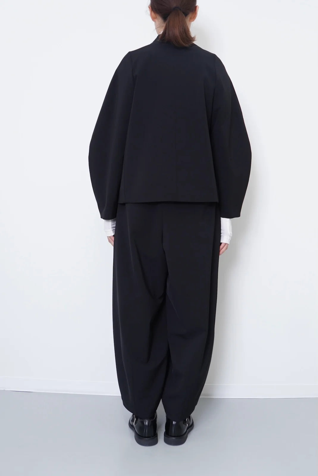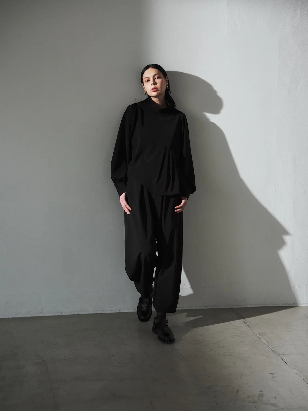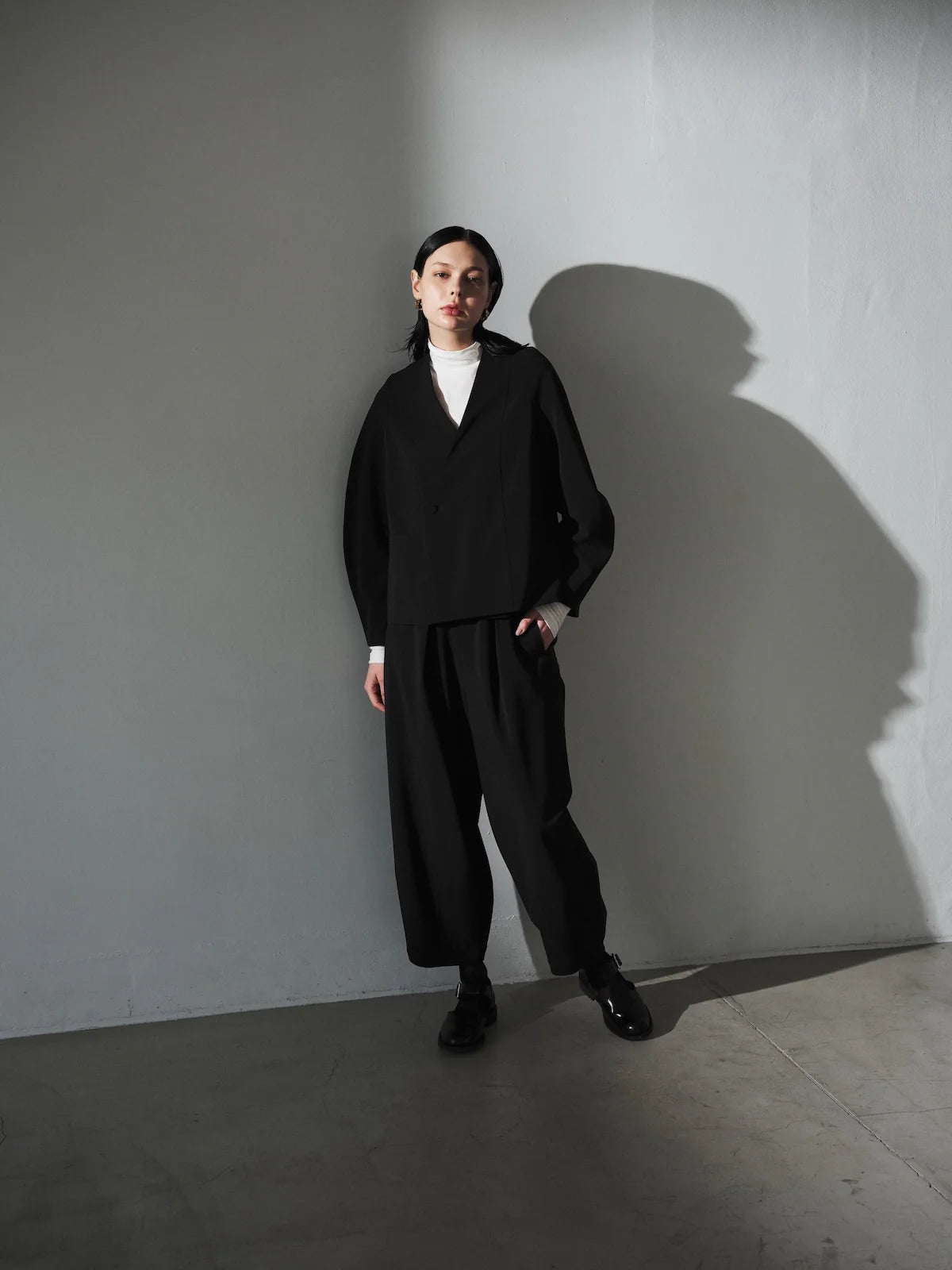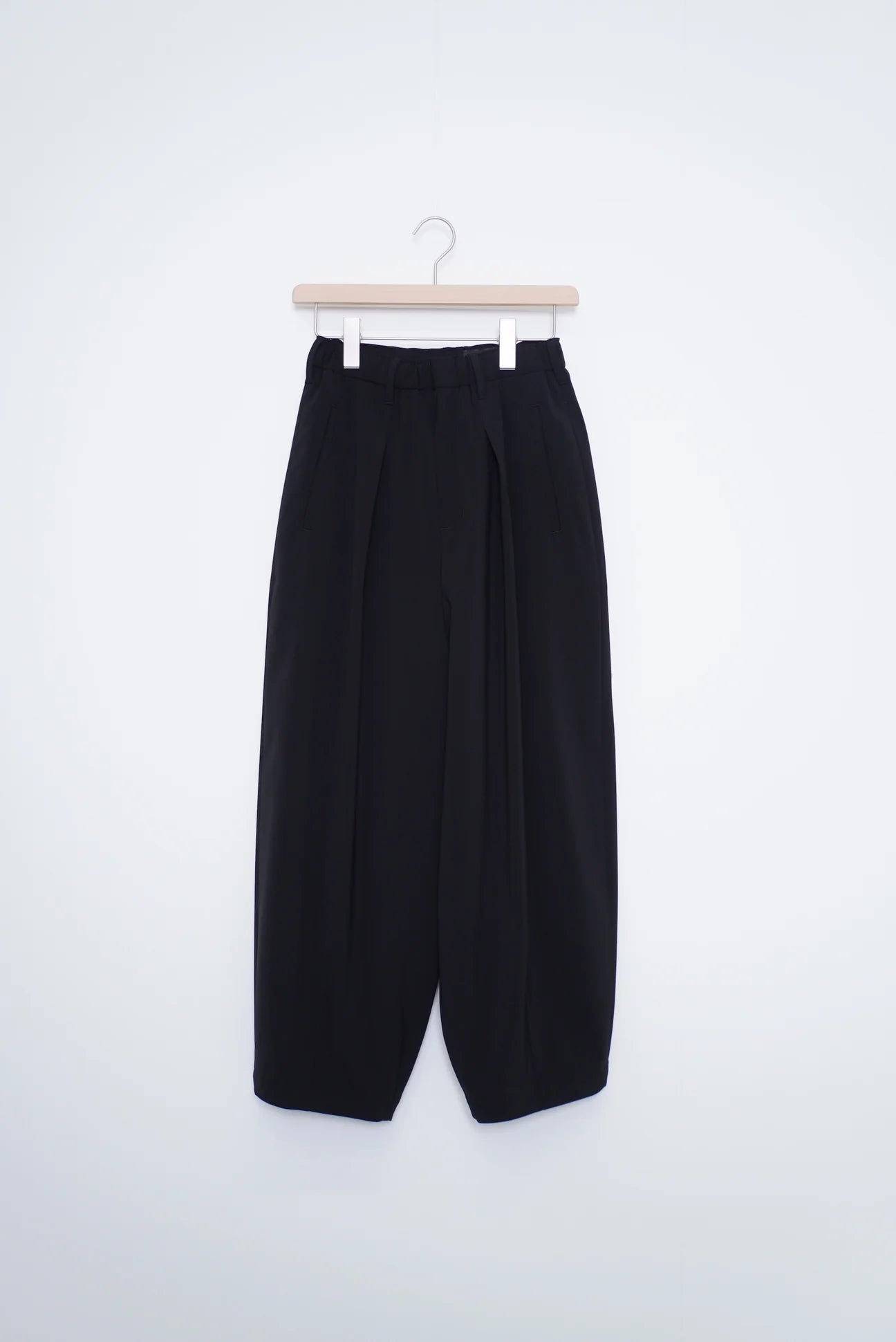 OTOÄA NAVY LANDSCAPE's designs begin with pants. The silhouette, which emphasizes the space between the garment and the body, reflects the brand's design philosophy. The high rise and generous hips subtly contour the figure.