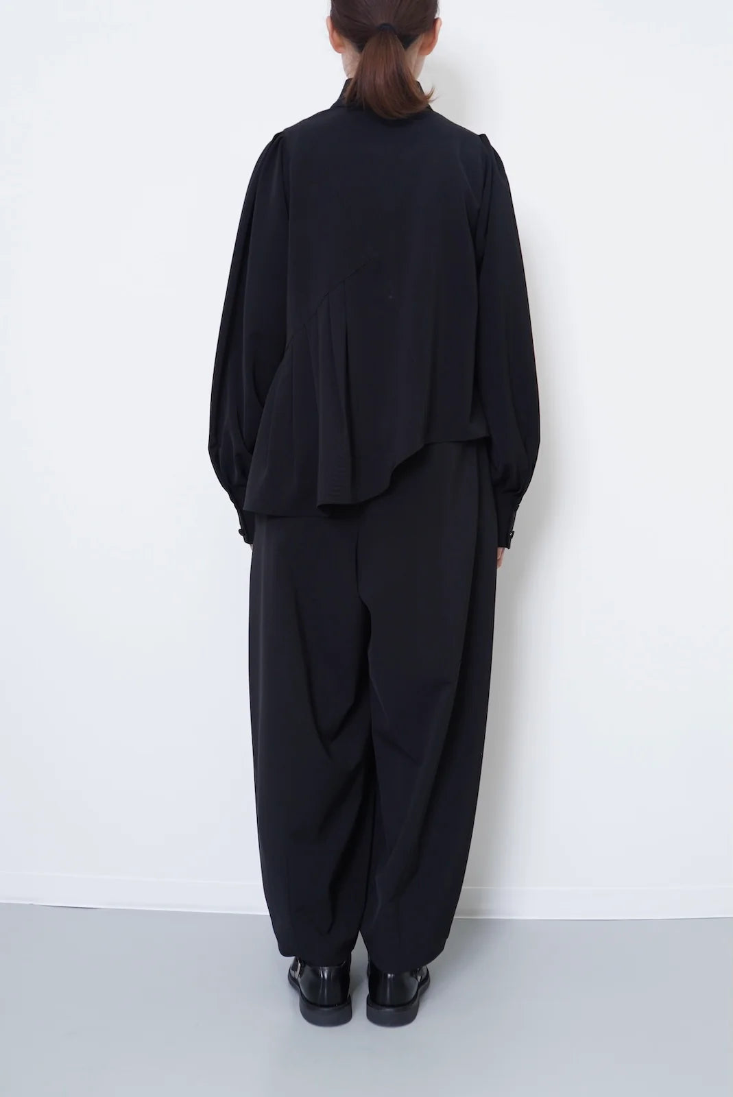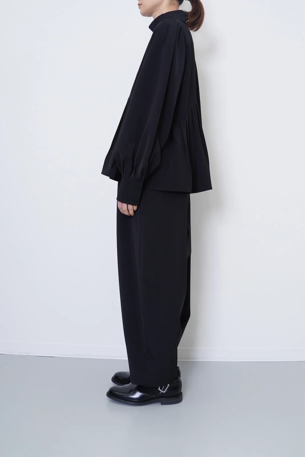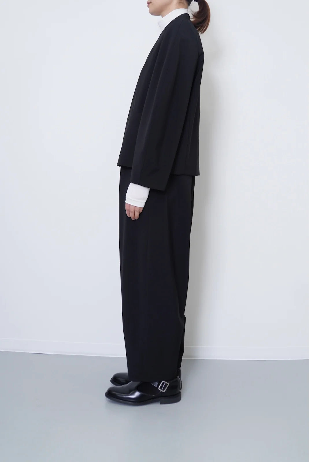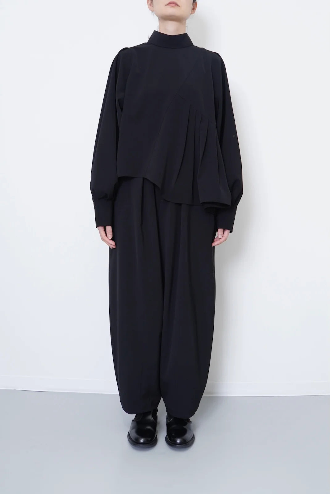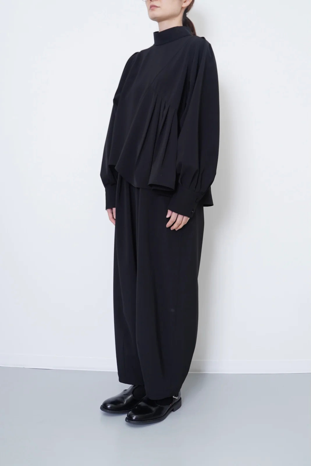 OTOÄA NAVY LANDSCAPE's designs begin with pants. The silhouette, which emphasizes the space between the garment and the body, reflects the brand's design philosophy. The high rise and generous hips subtly contour the figure.