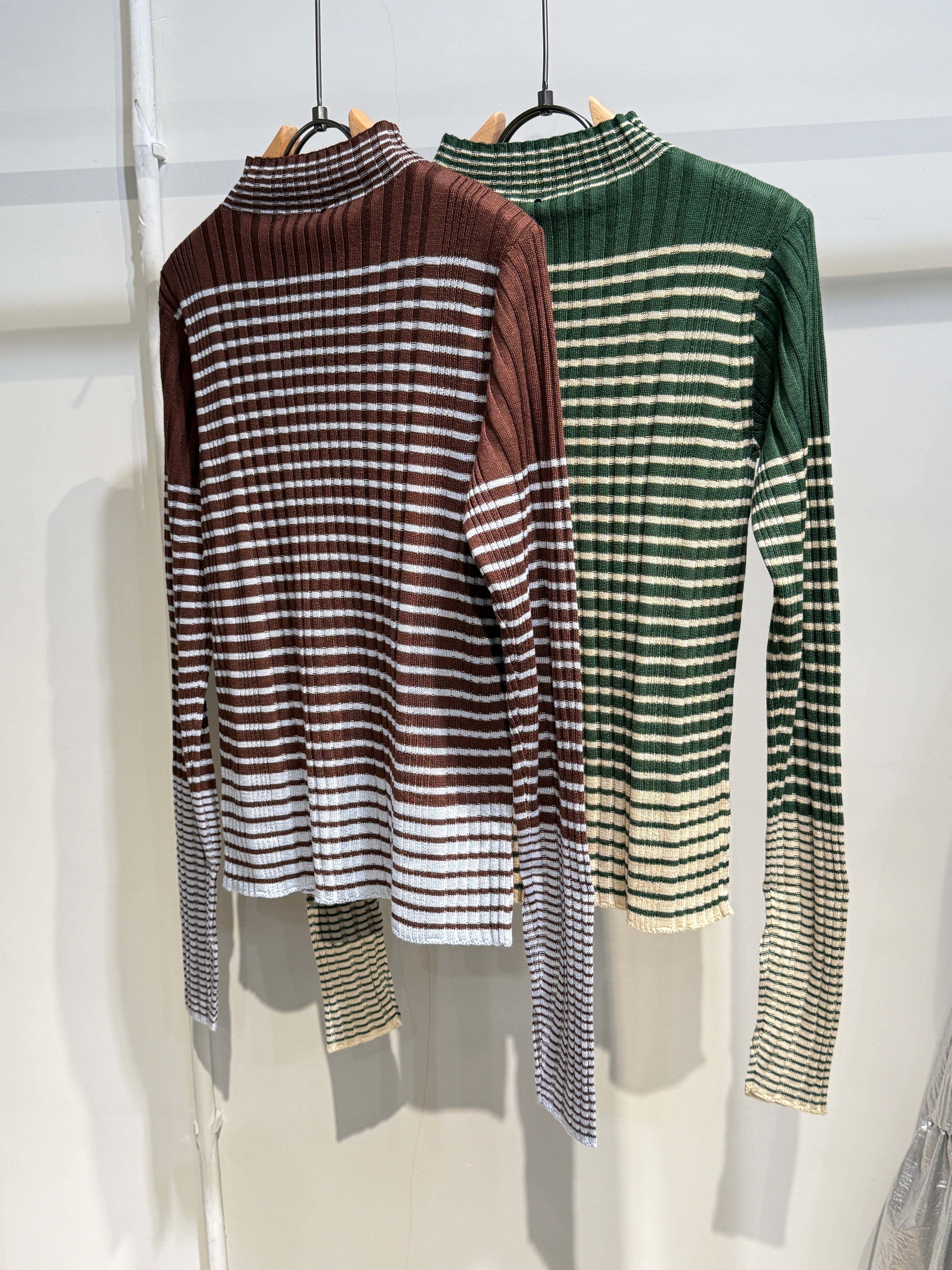 Horizontal Stripe Knit Turtle-neck top (2 colours)
