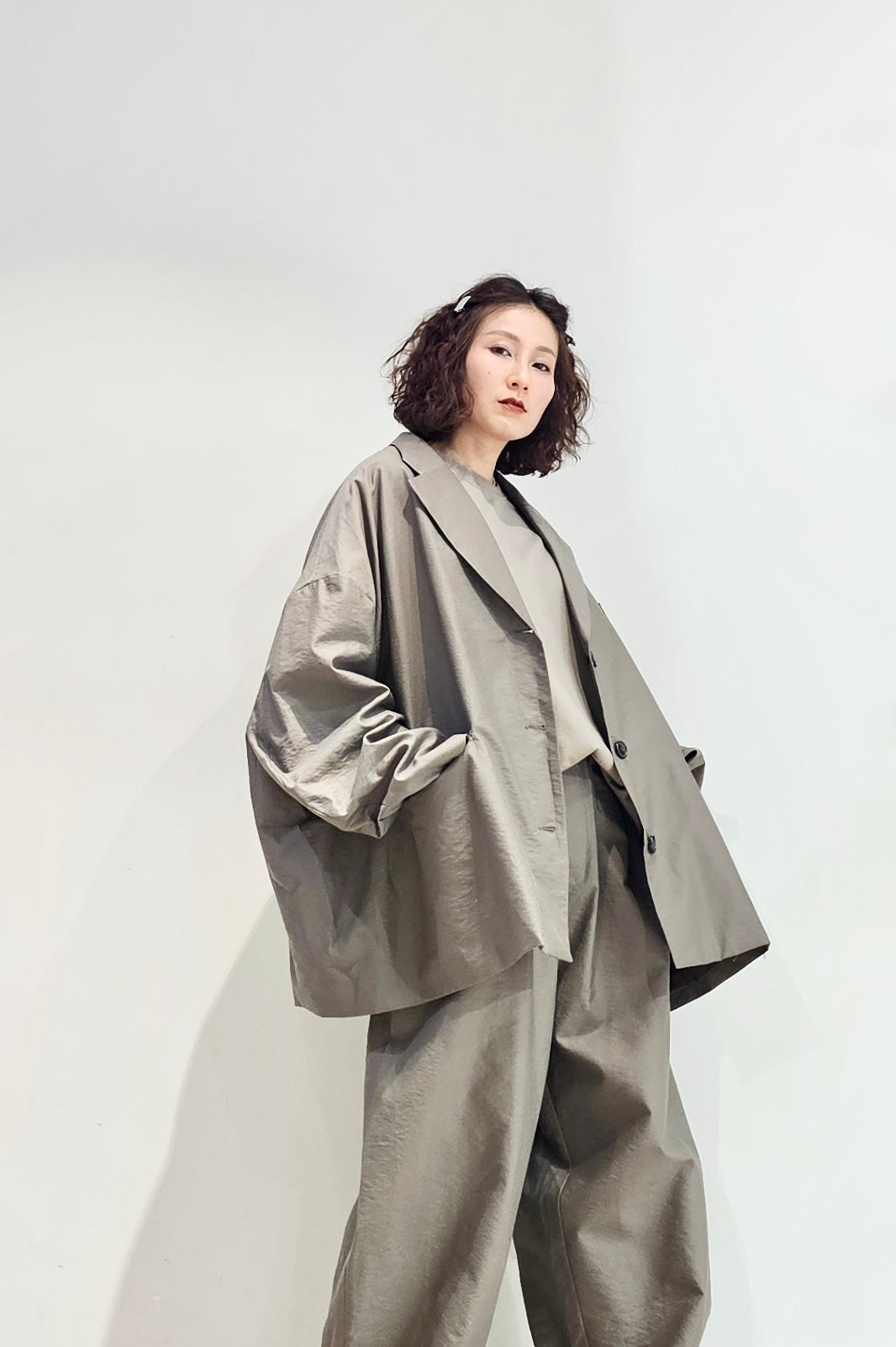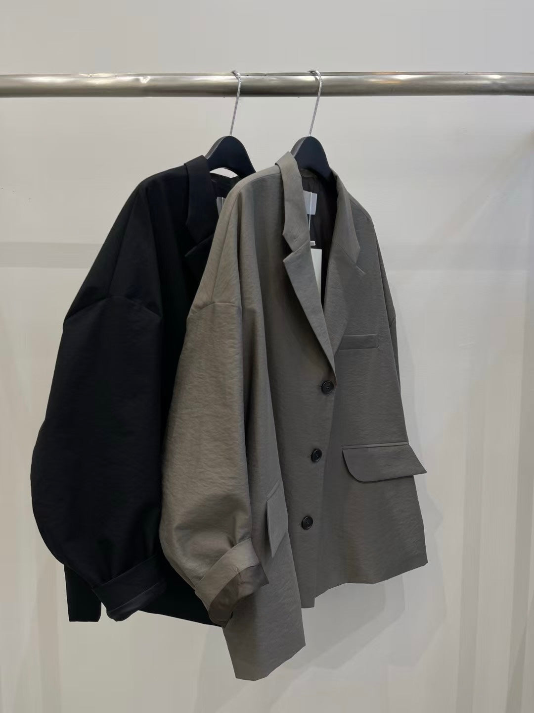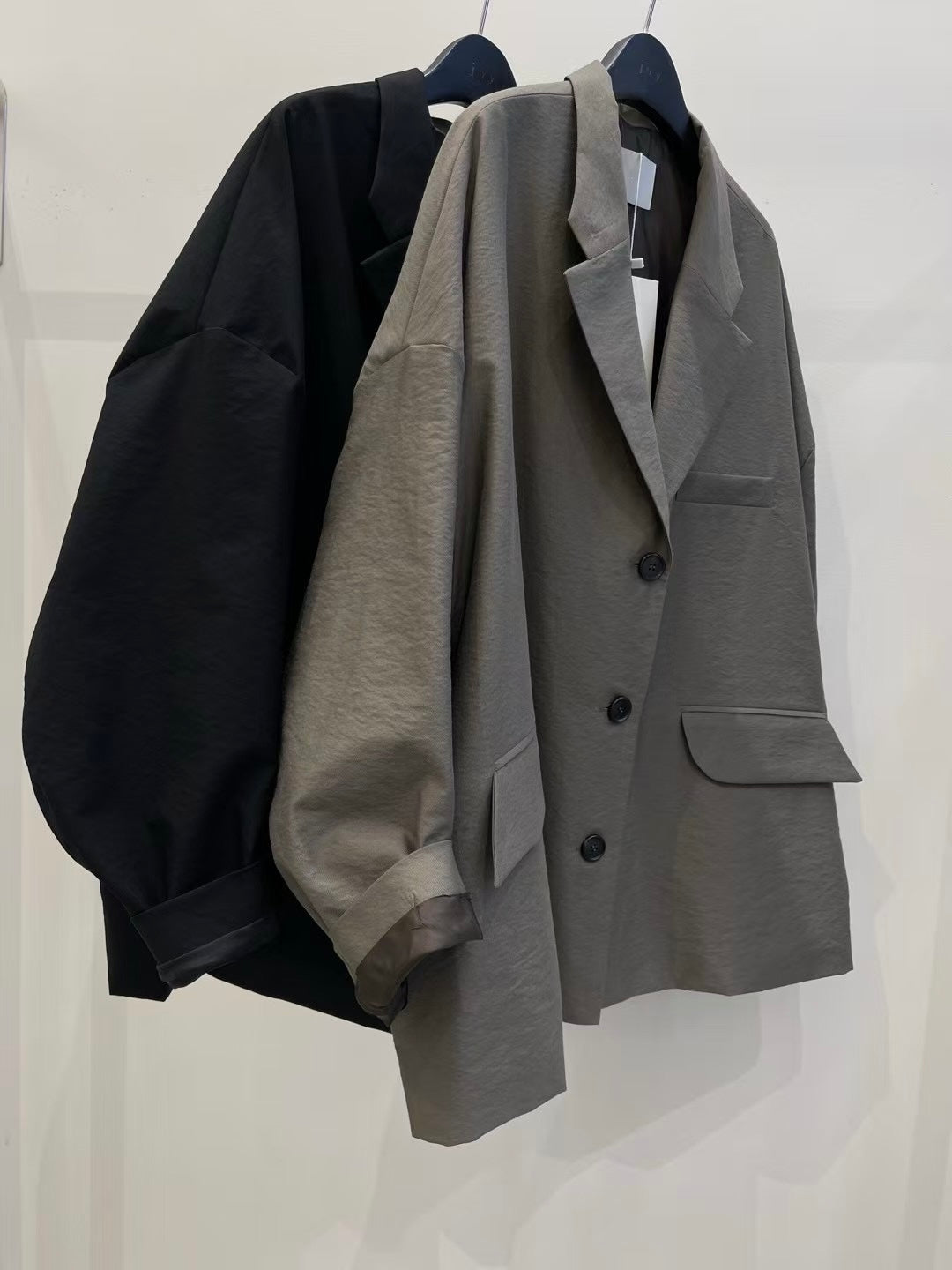 Oversized collarless nylon set blazer- 2 colours (pre-order)