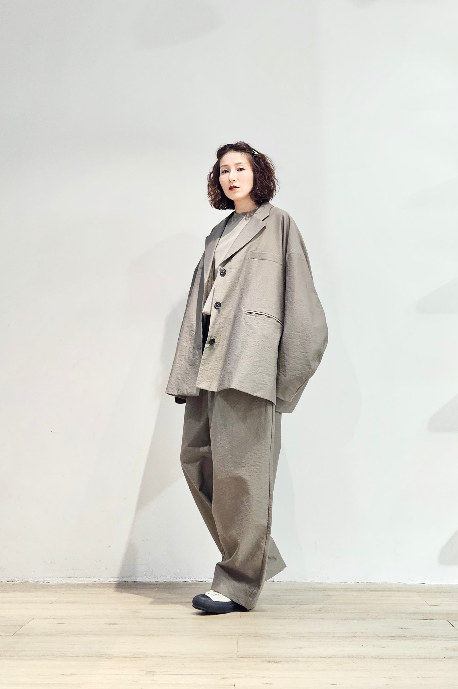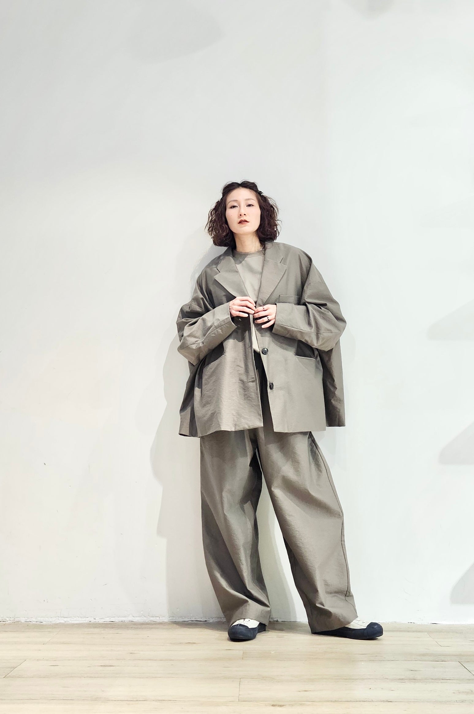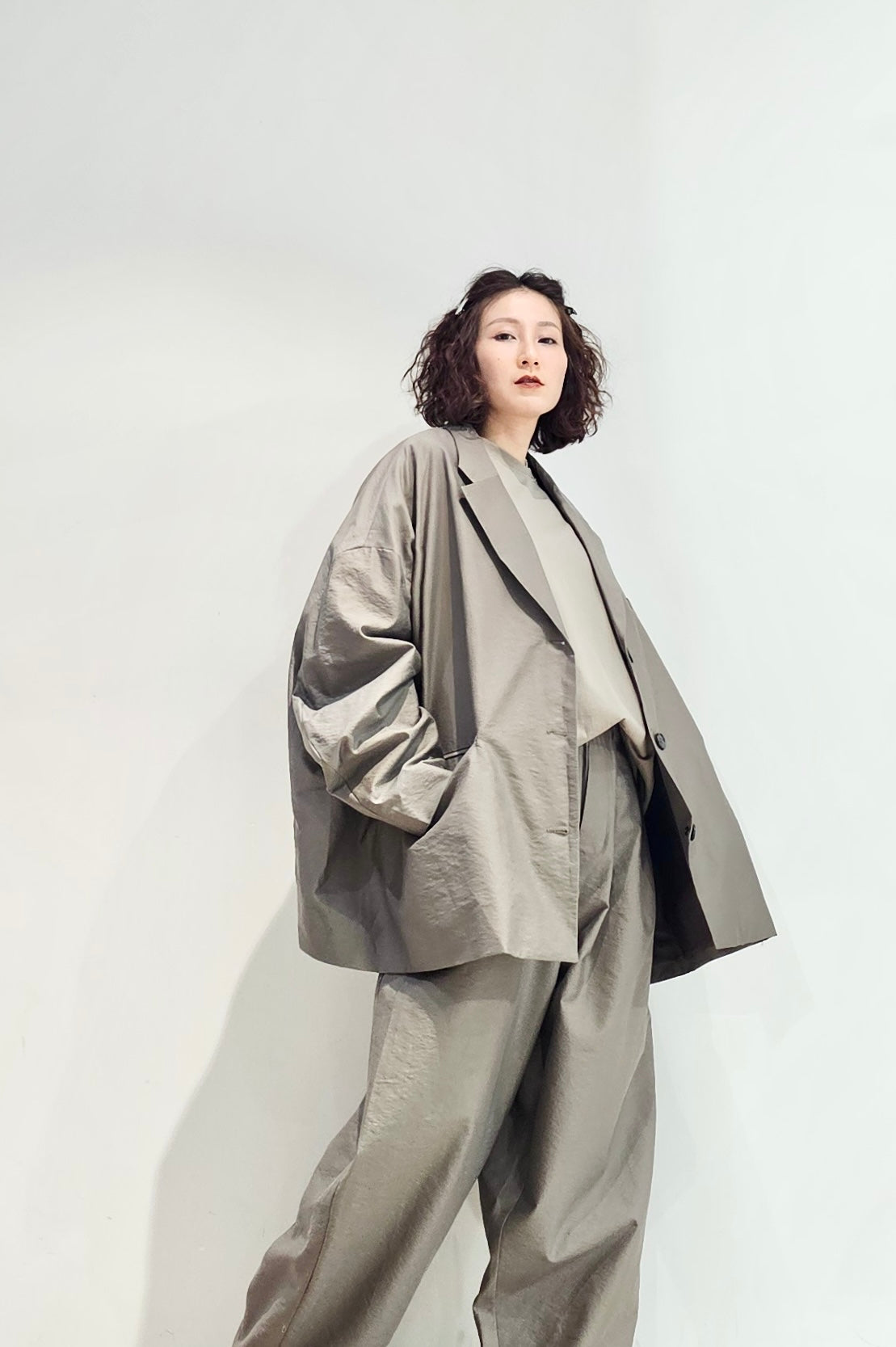 Oversized collarless nylon set blazer- 2 colours (pre-order)