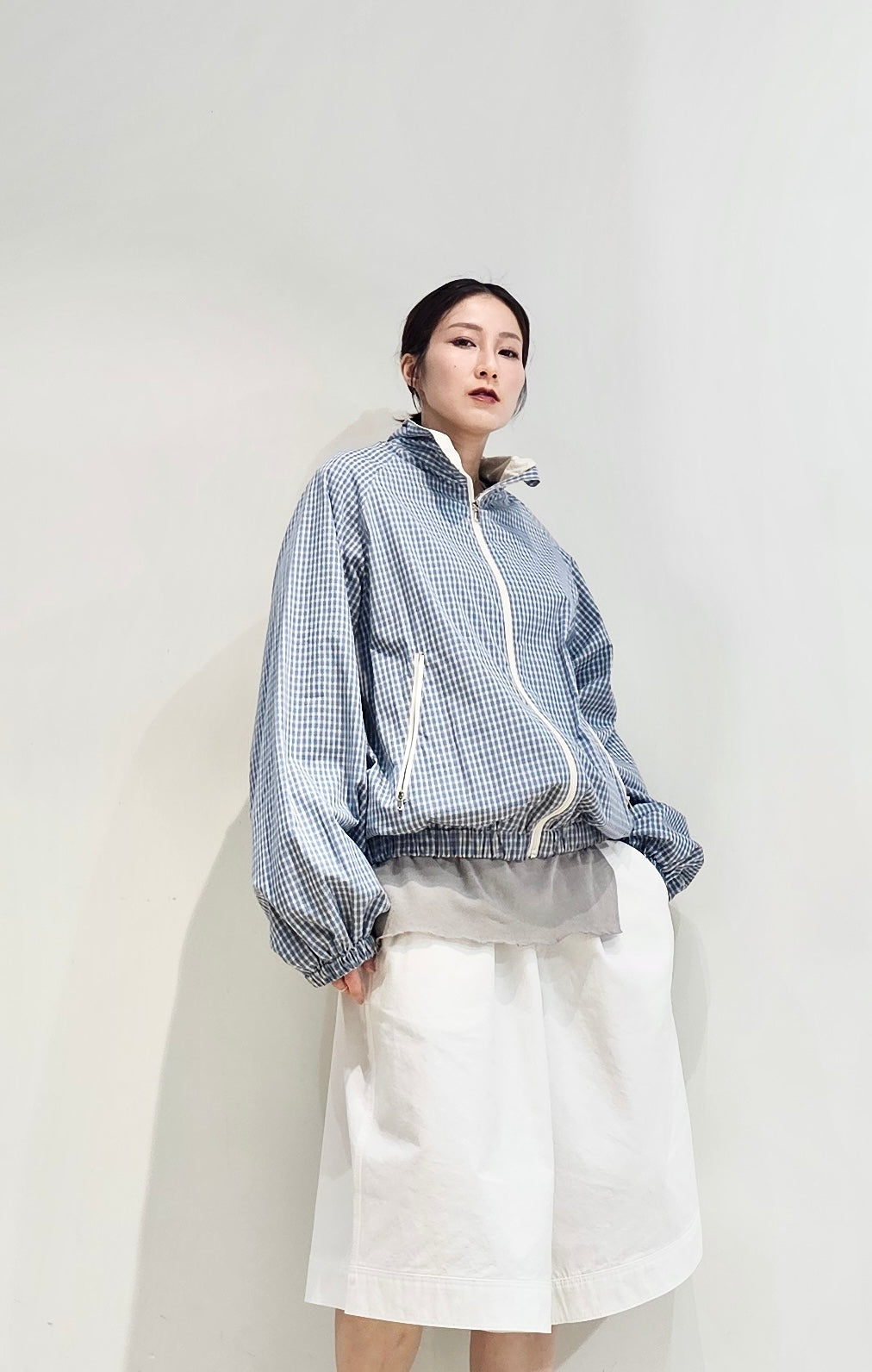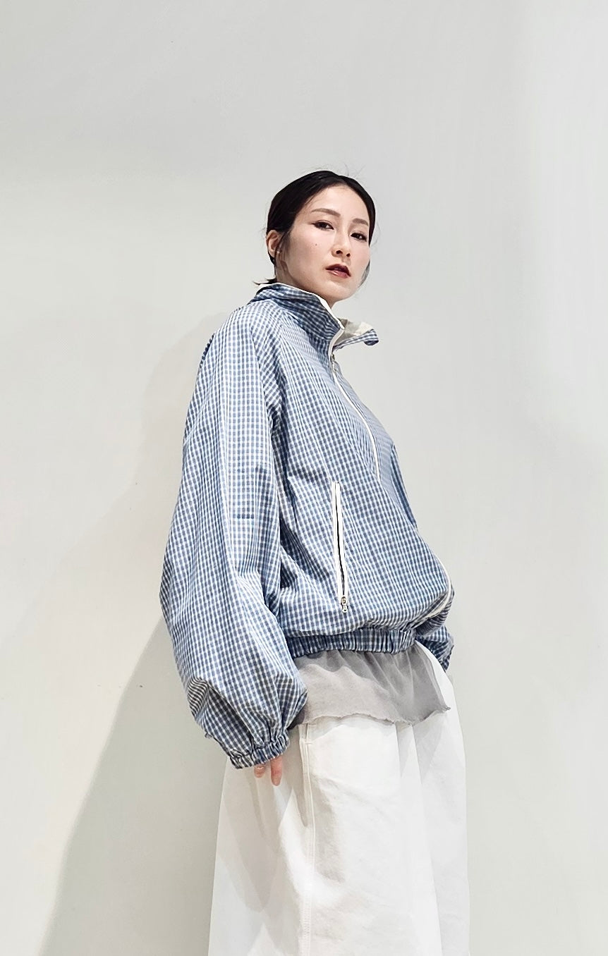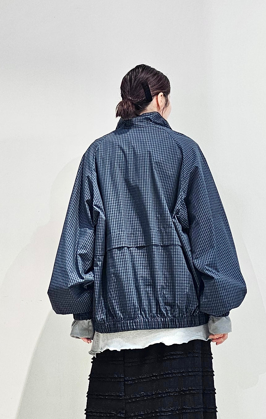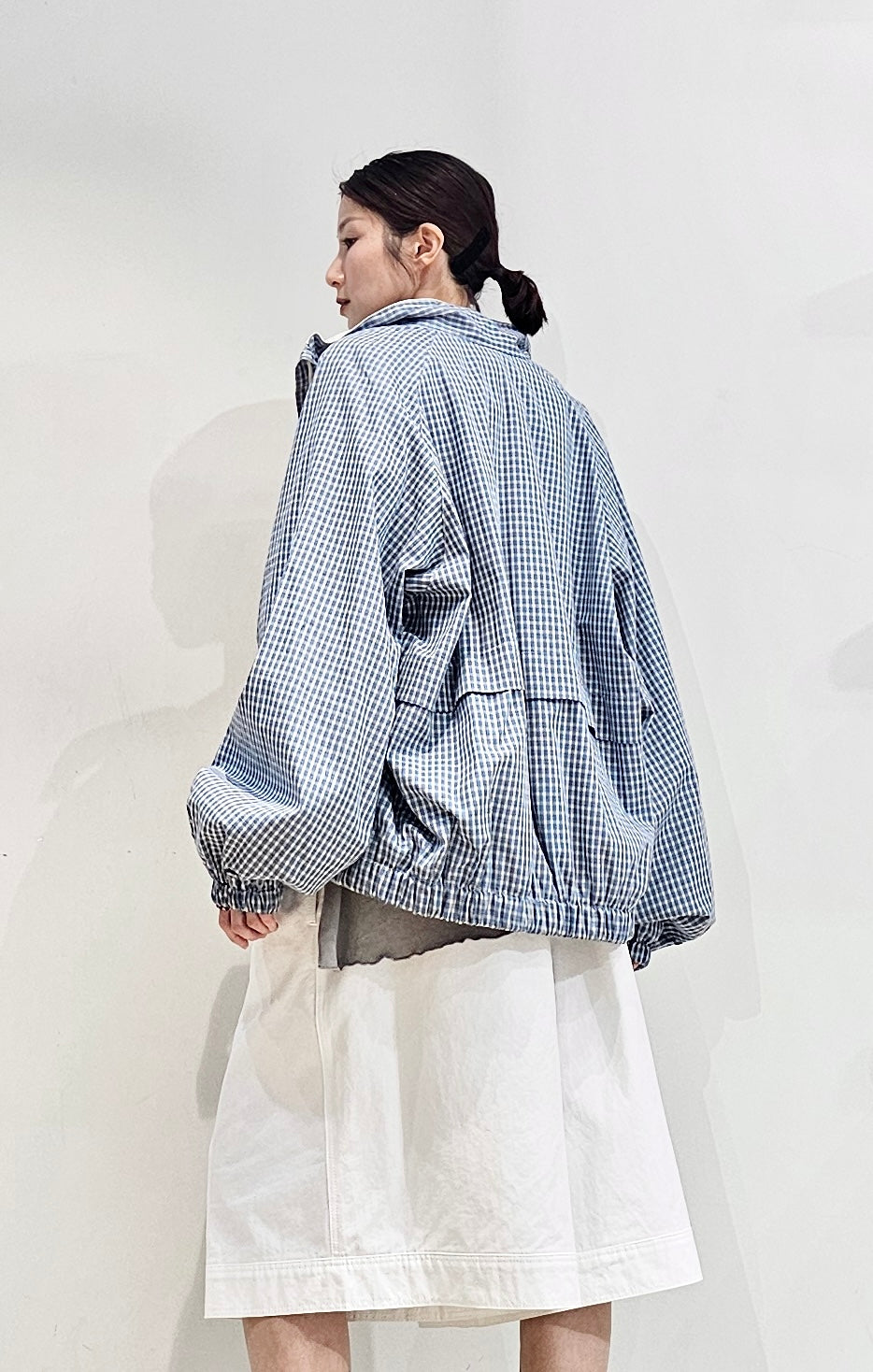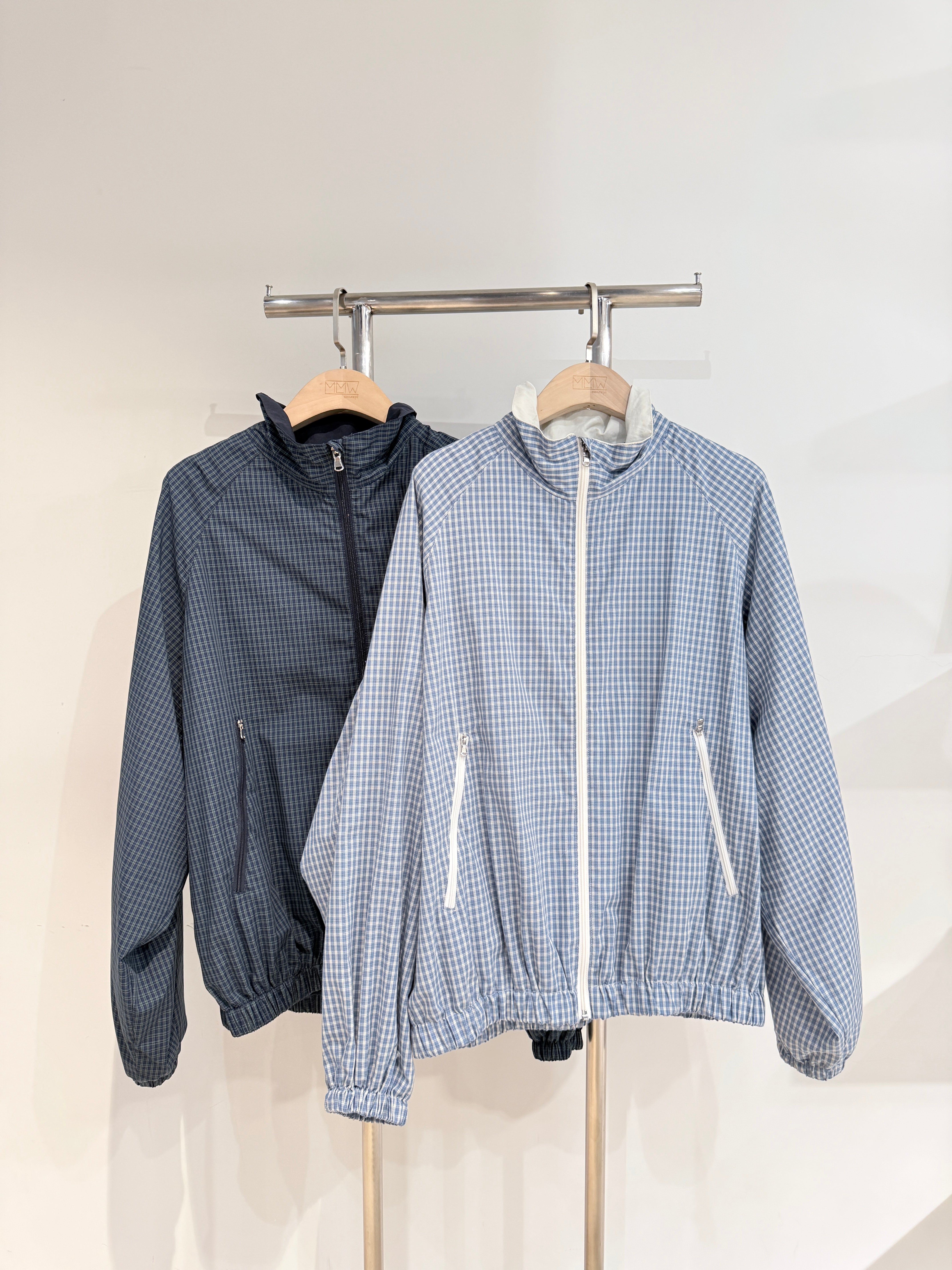 Stand collar check long windbreaker - 2 colours (pre-order)