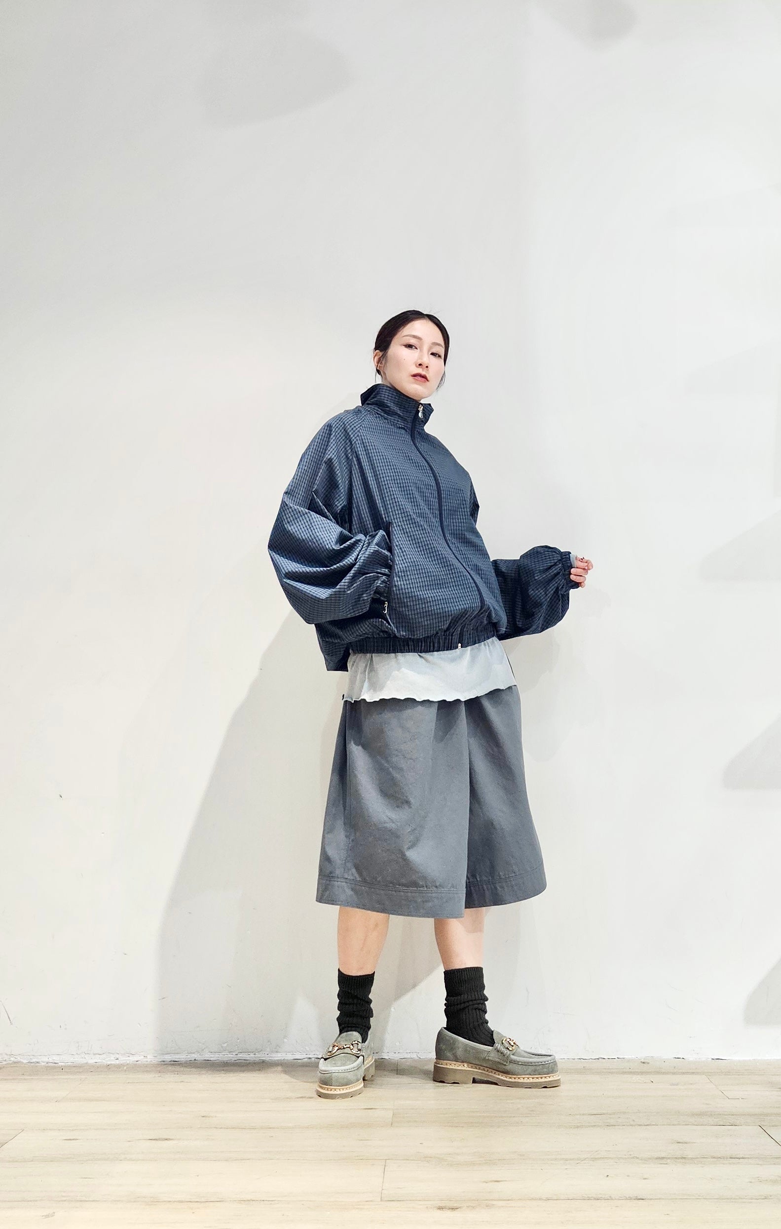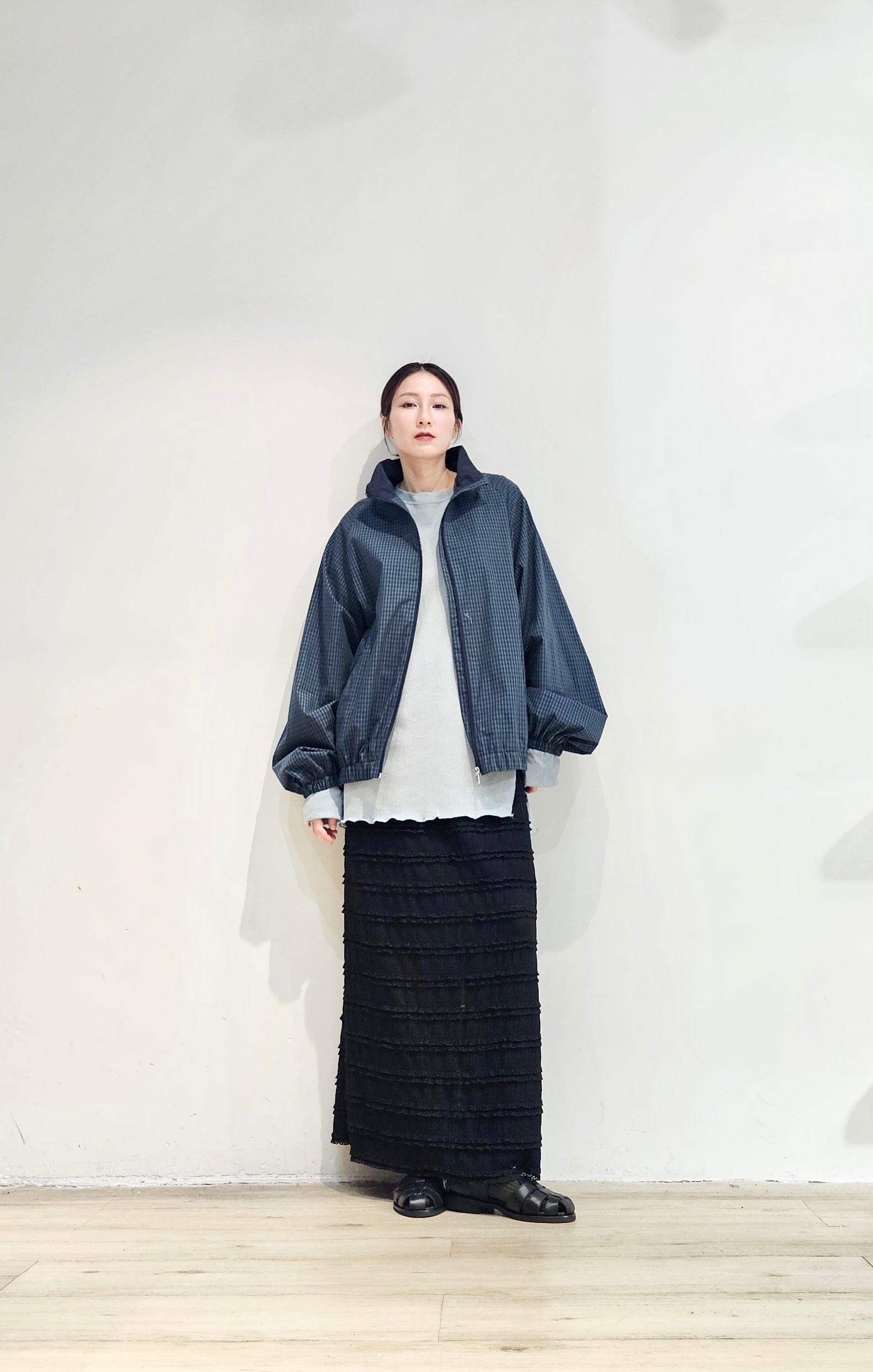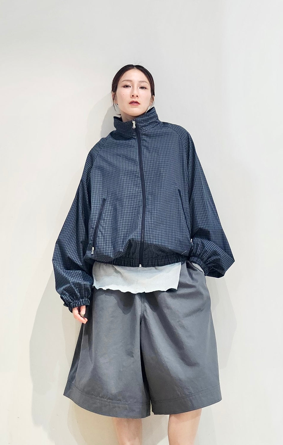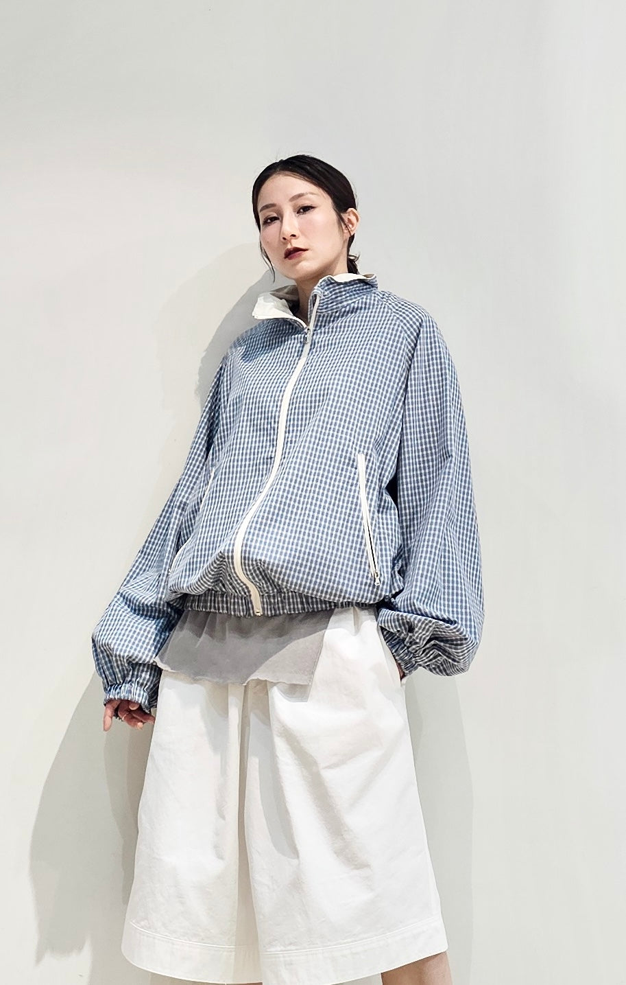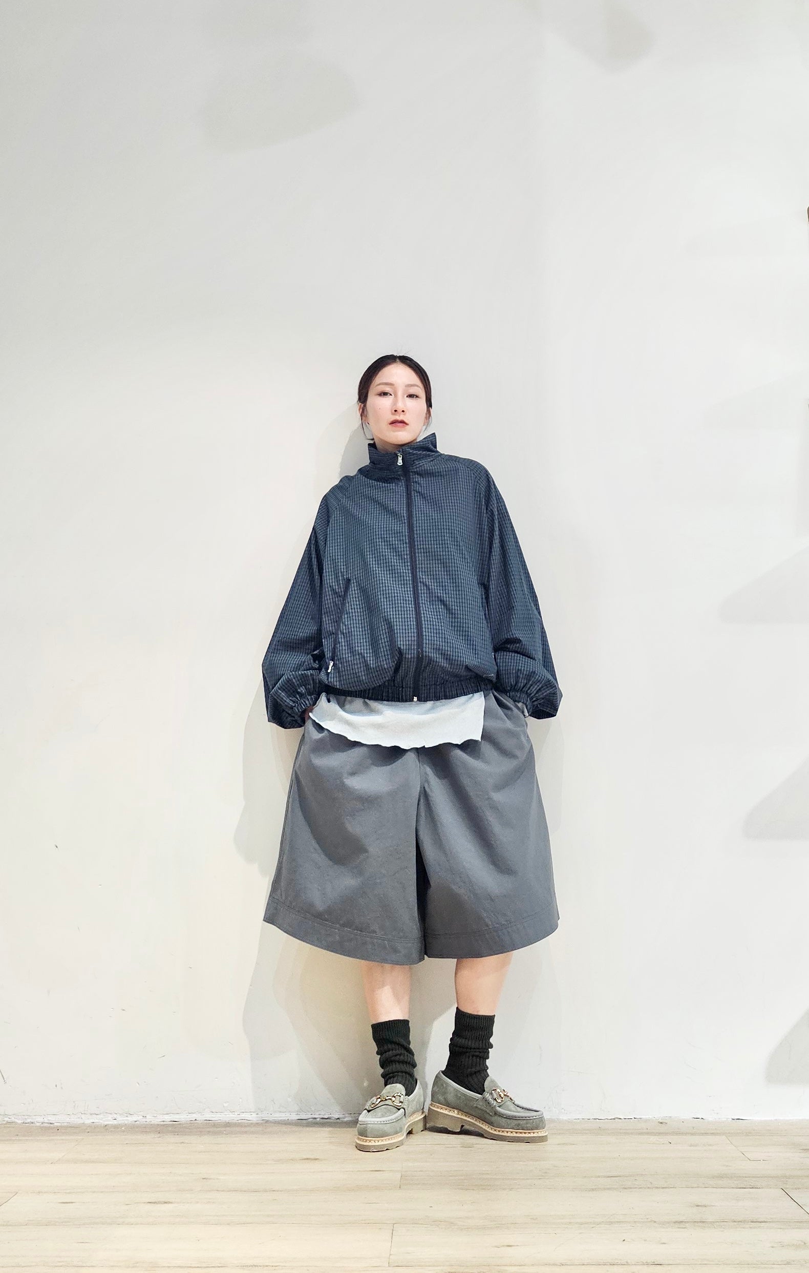 Stand collar check long windbreaker - 2 colours (pre-order)