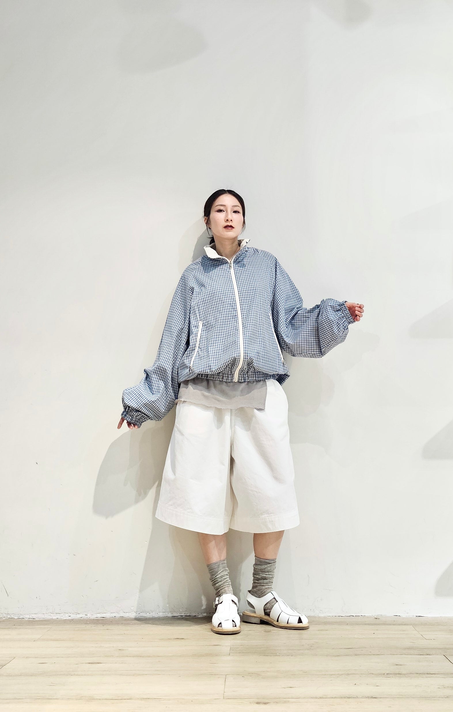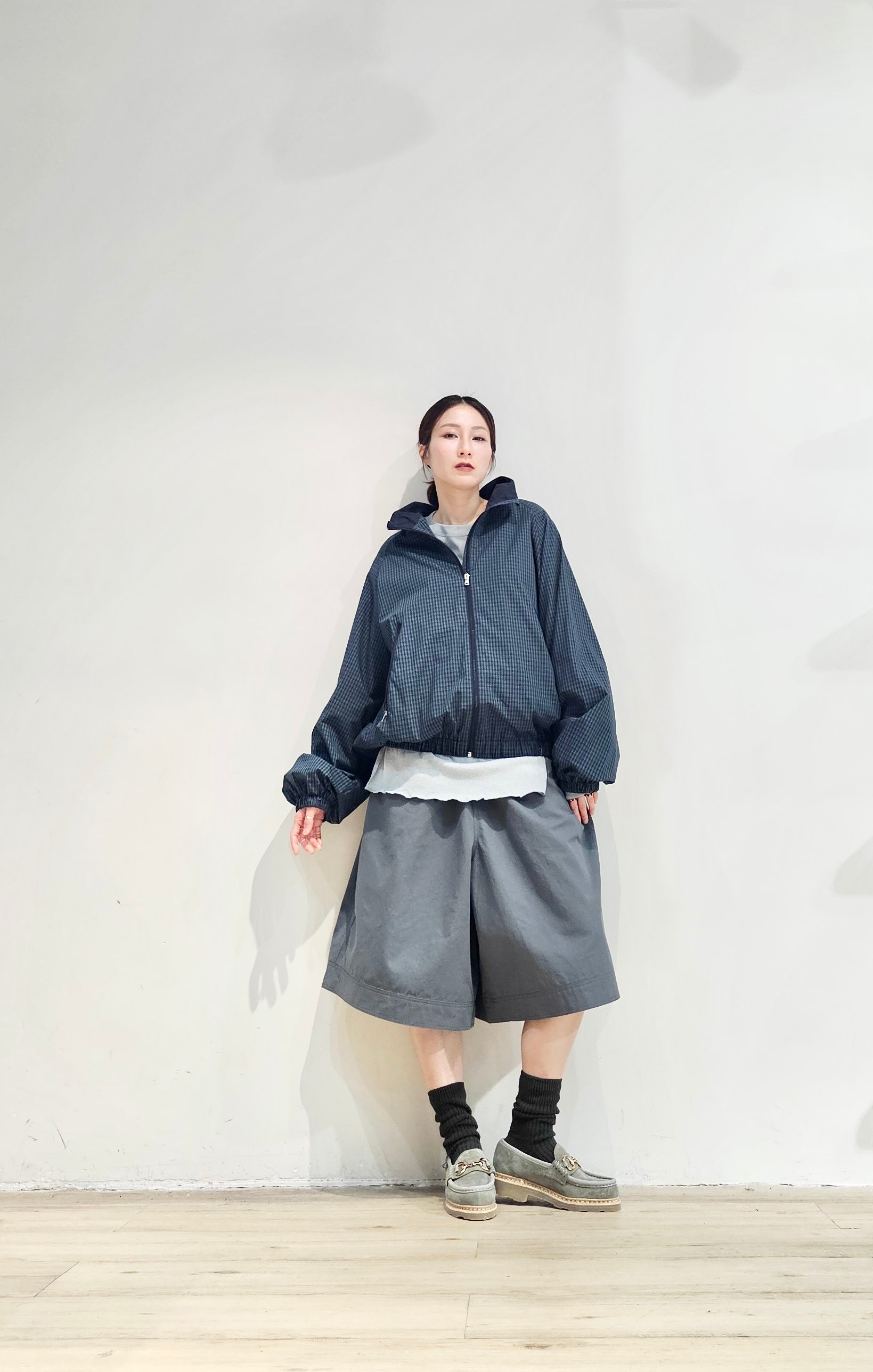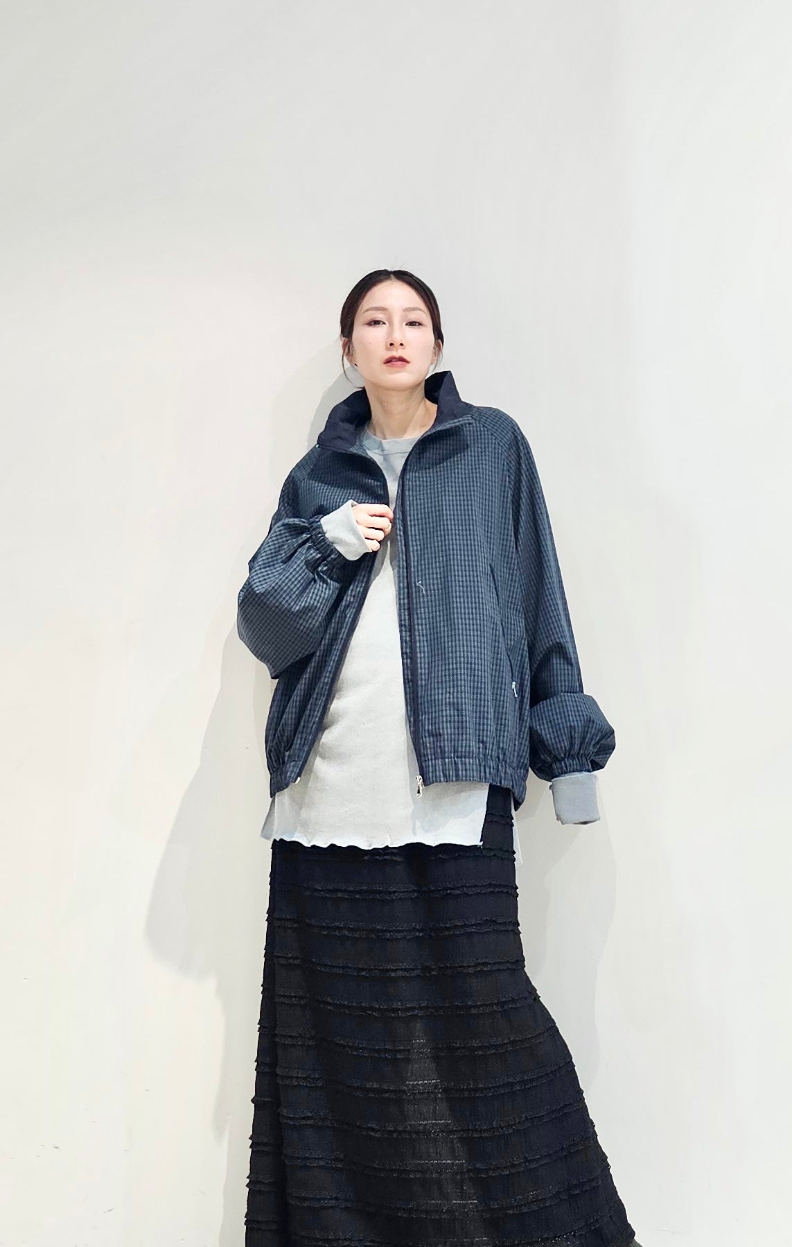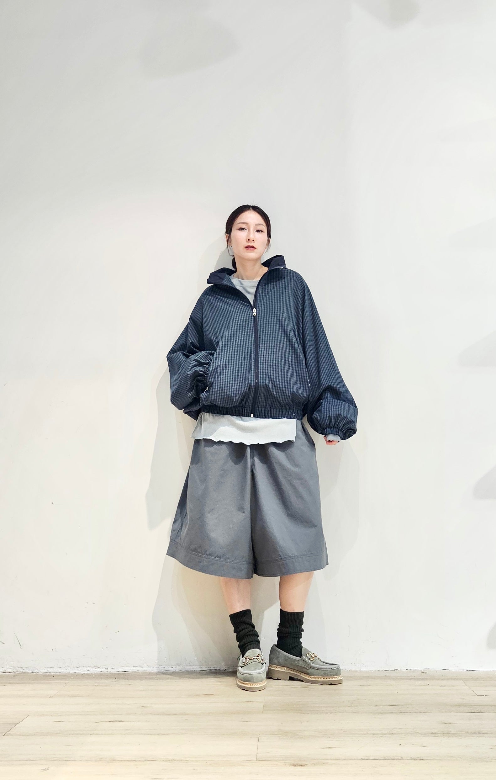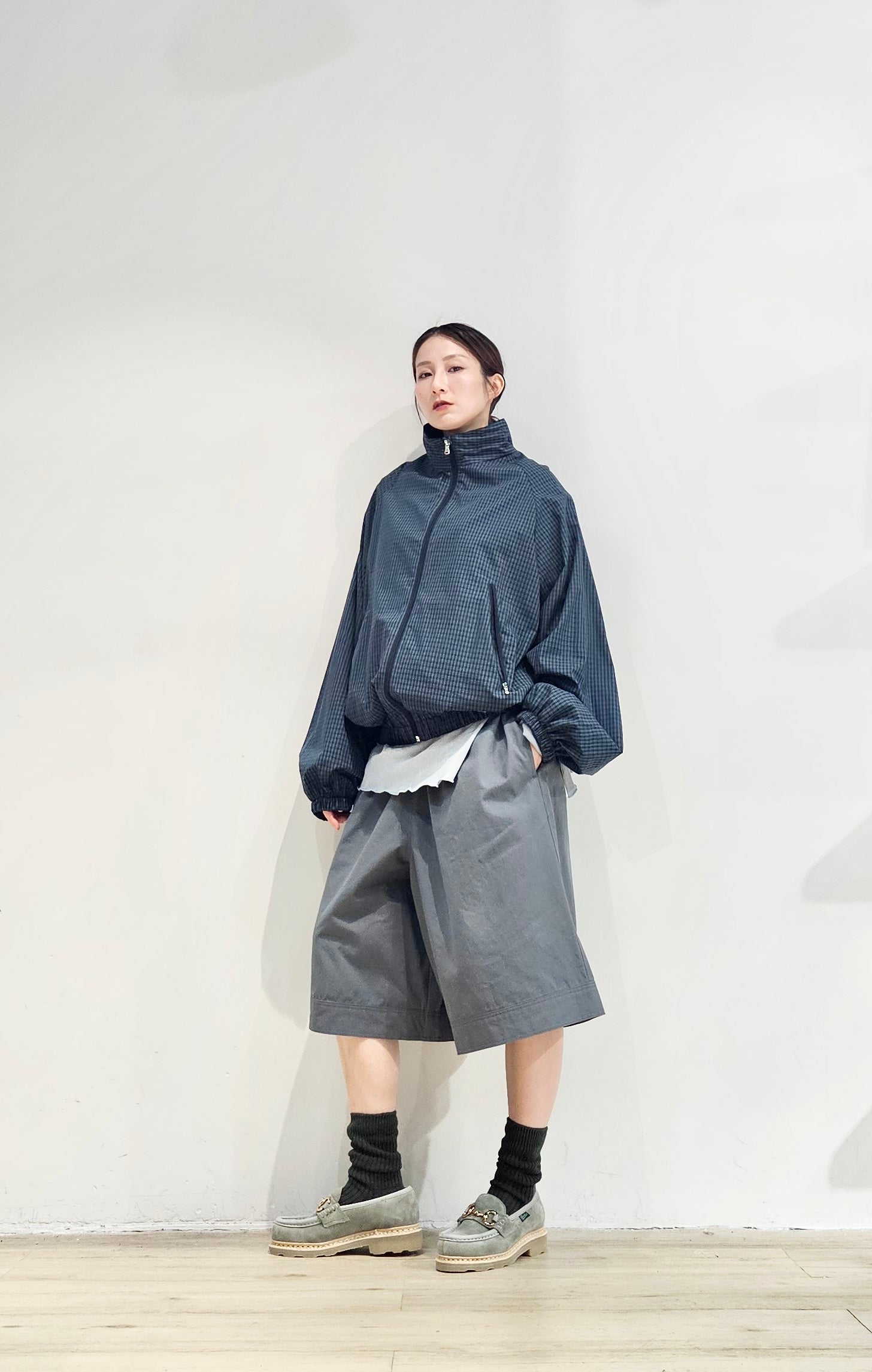 Stand collar check long windbreaker - 2 colours (pre-order)