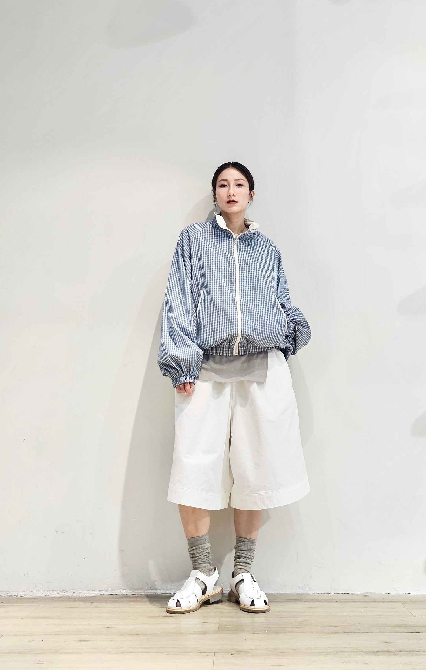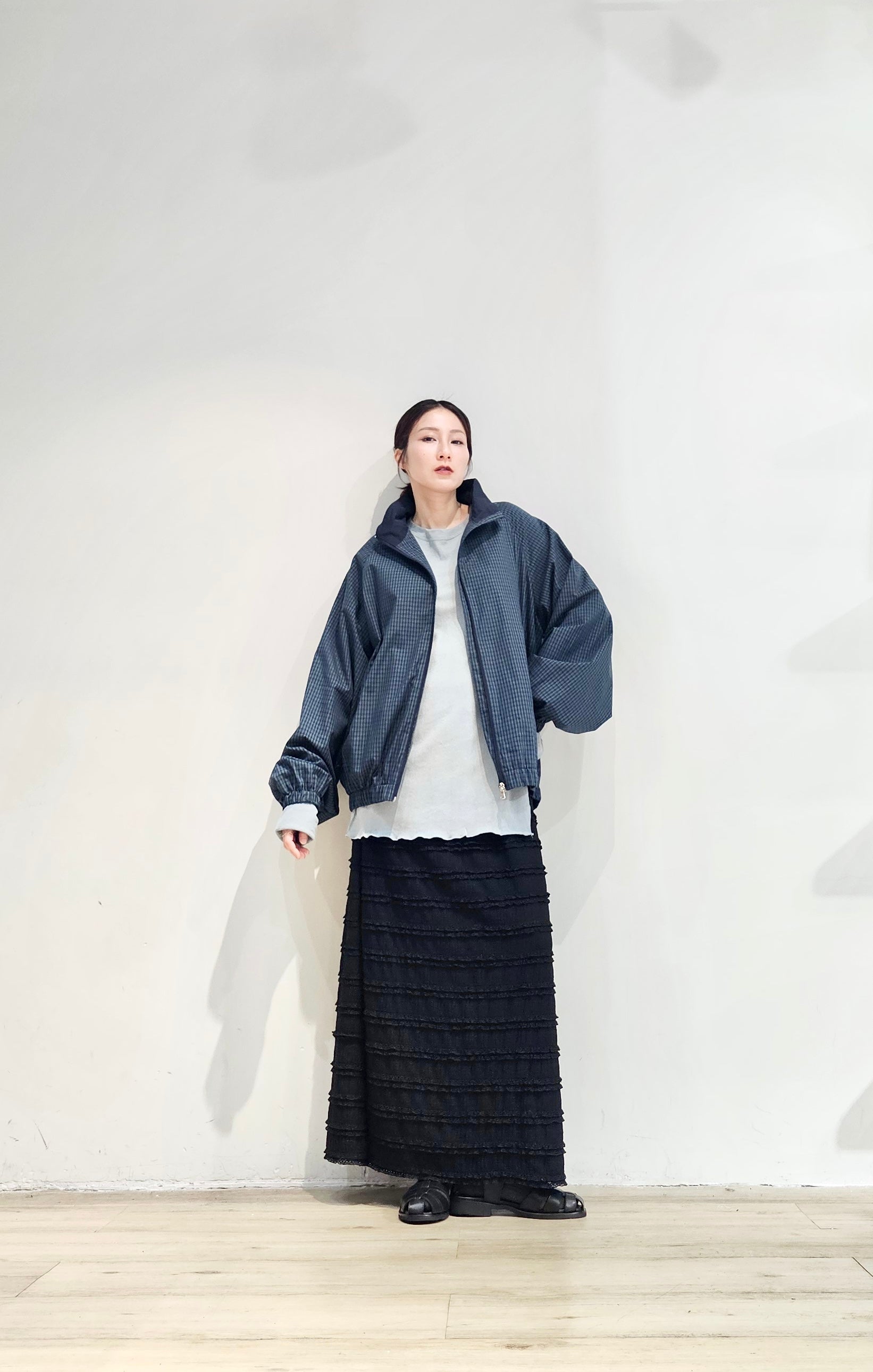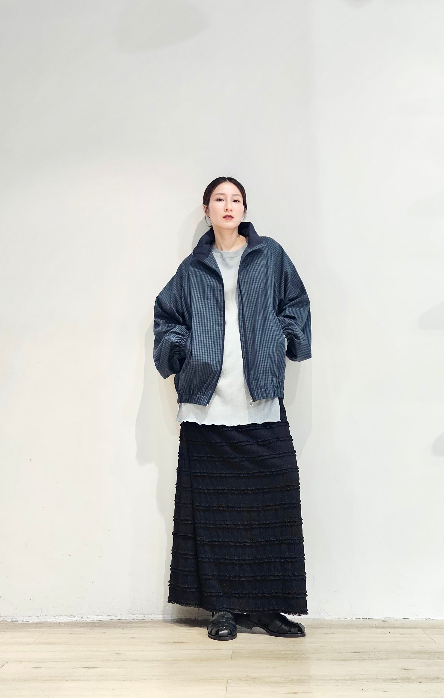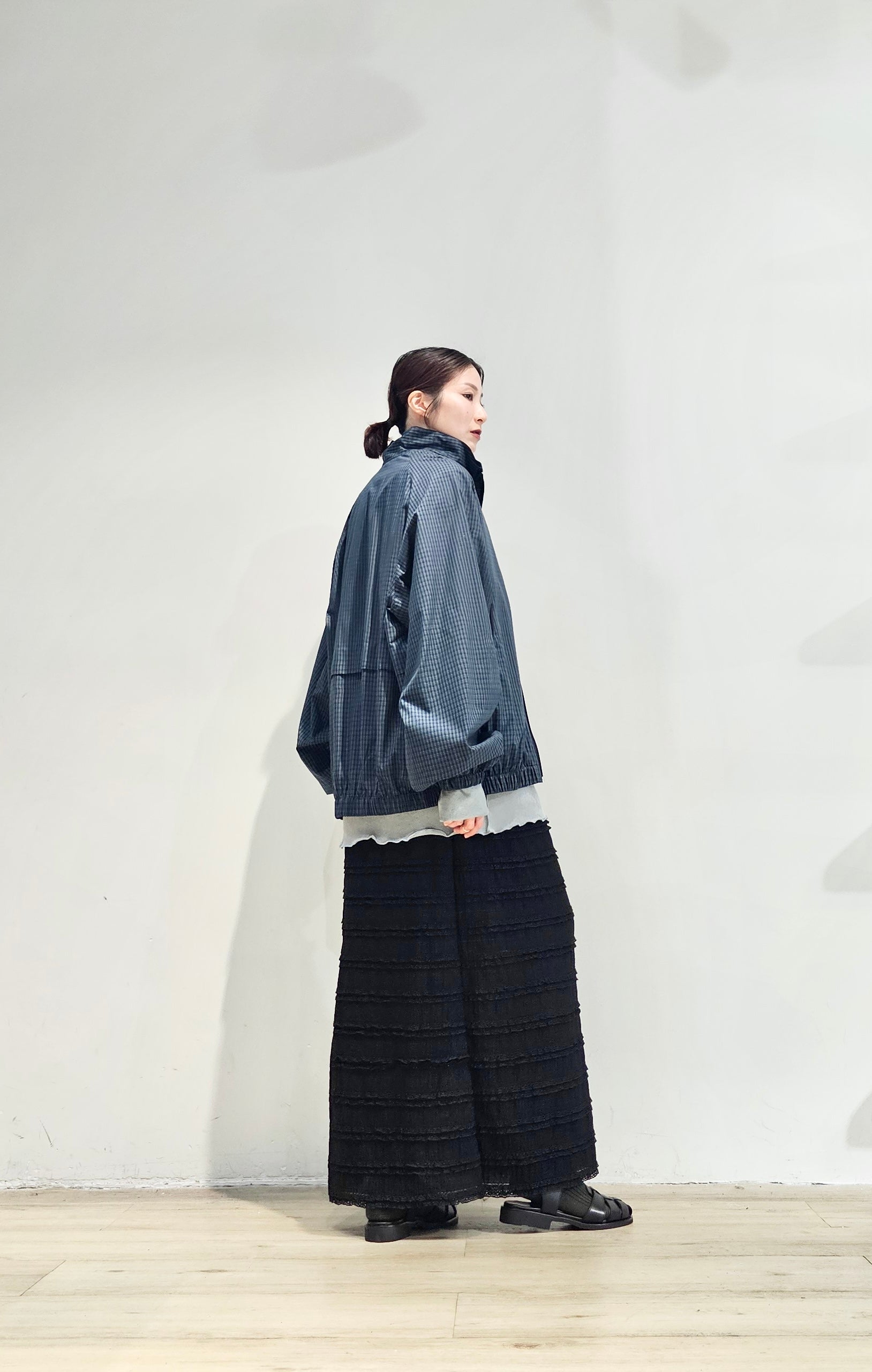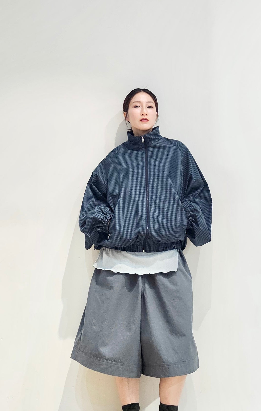 Stand collar check long windbreaker - 2 colours (pre-order)