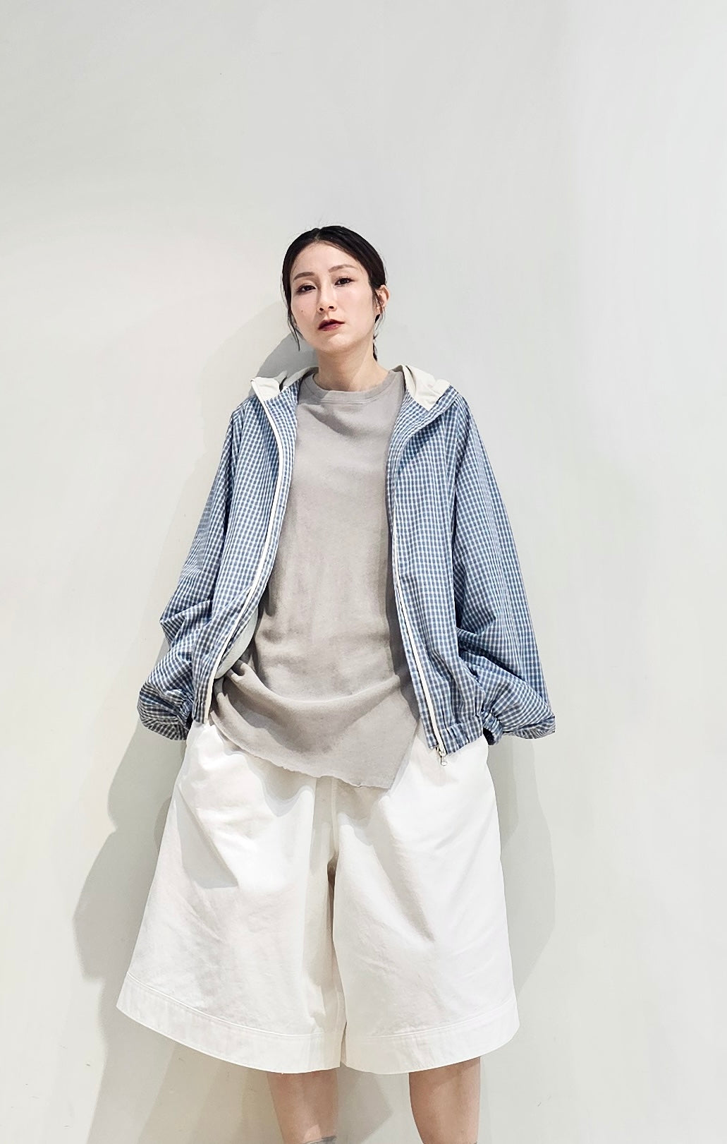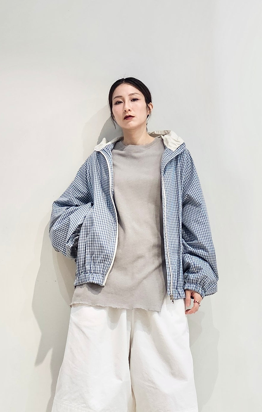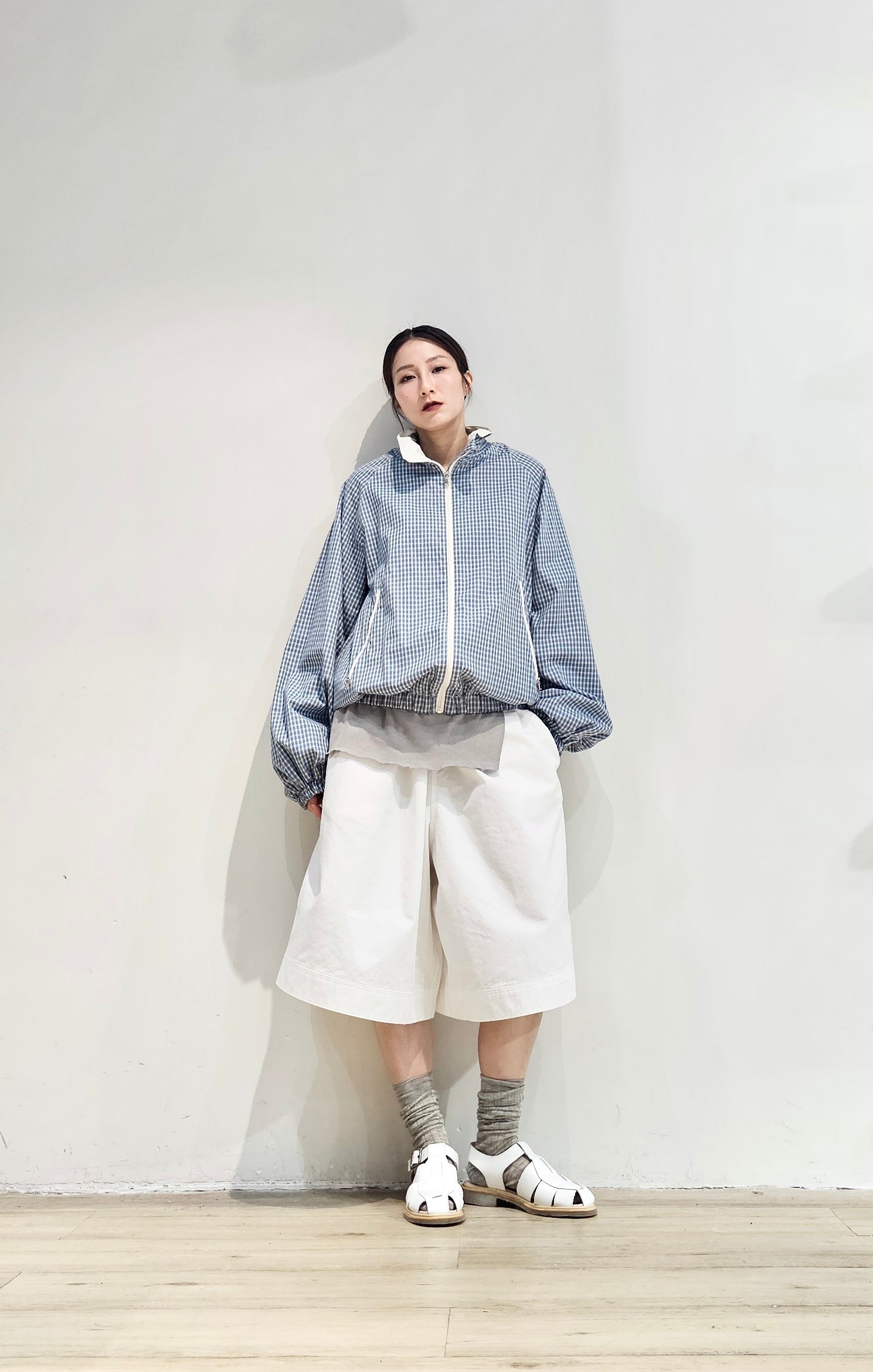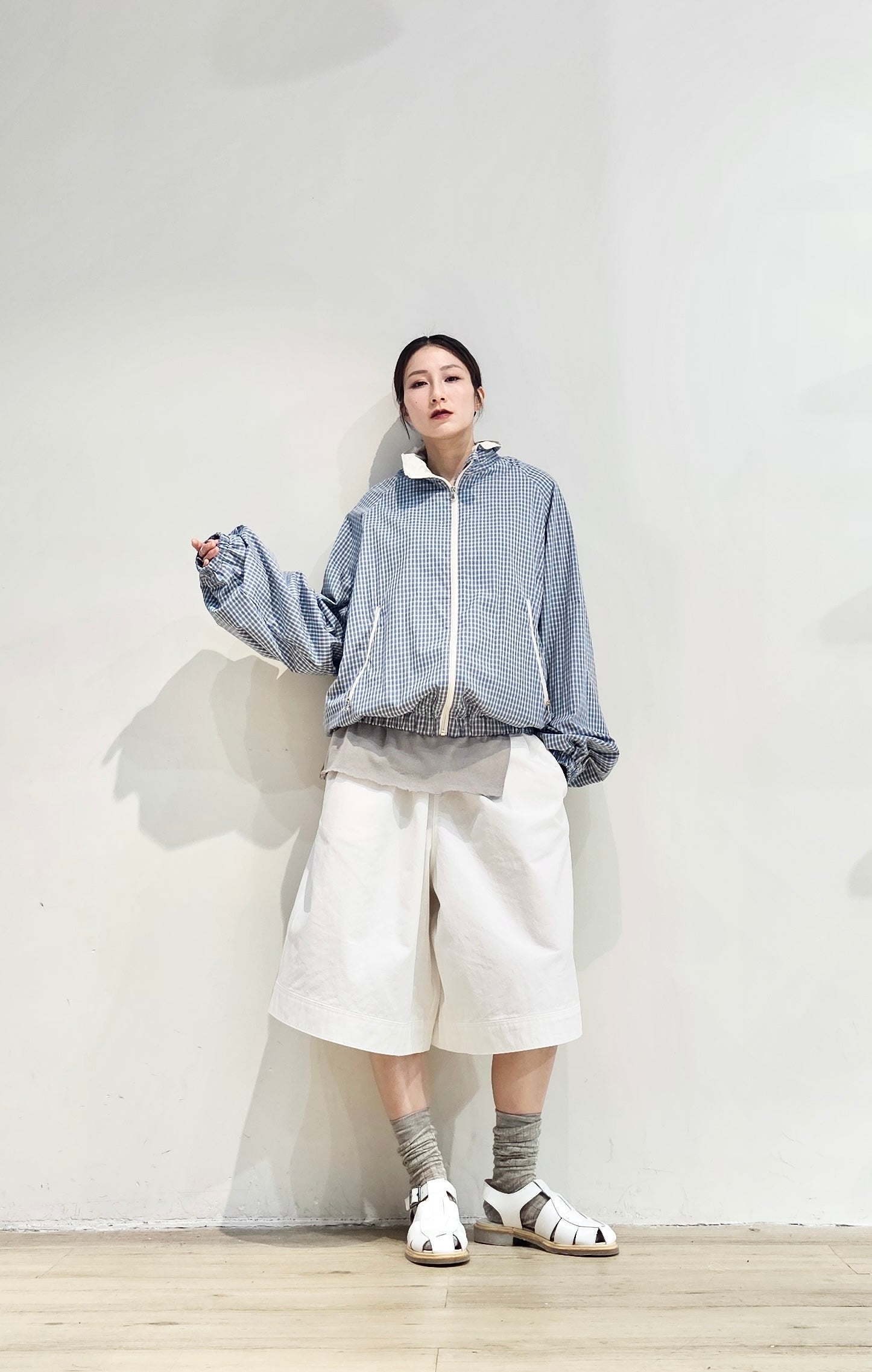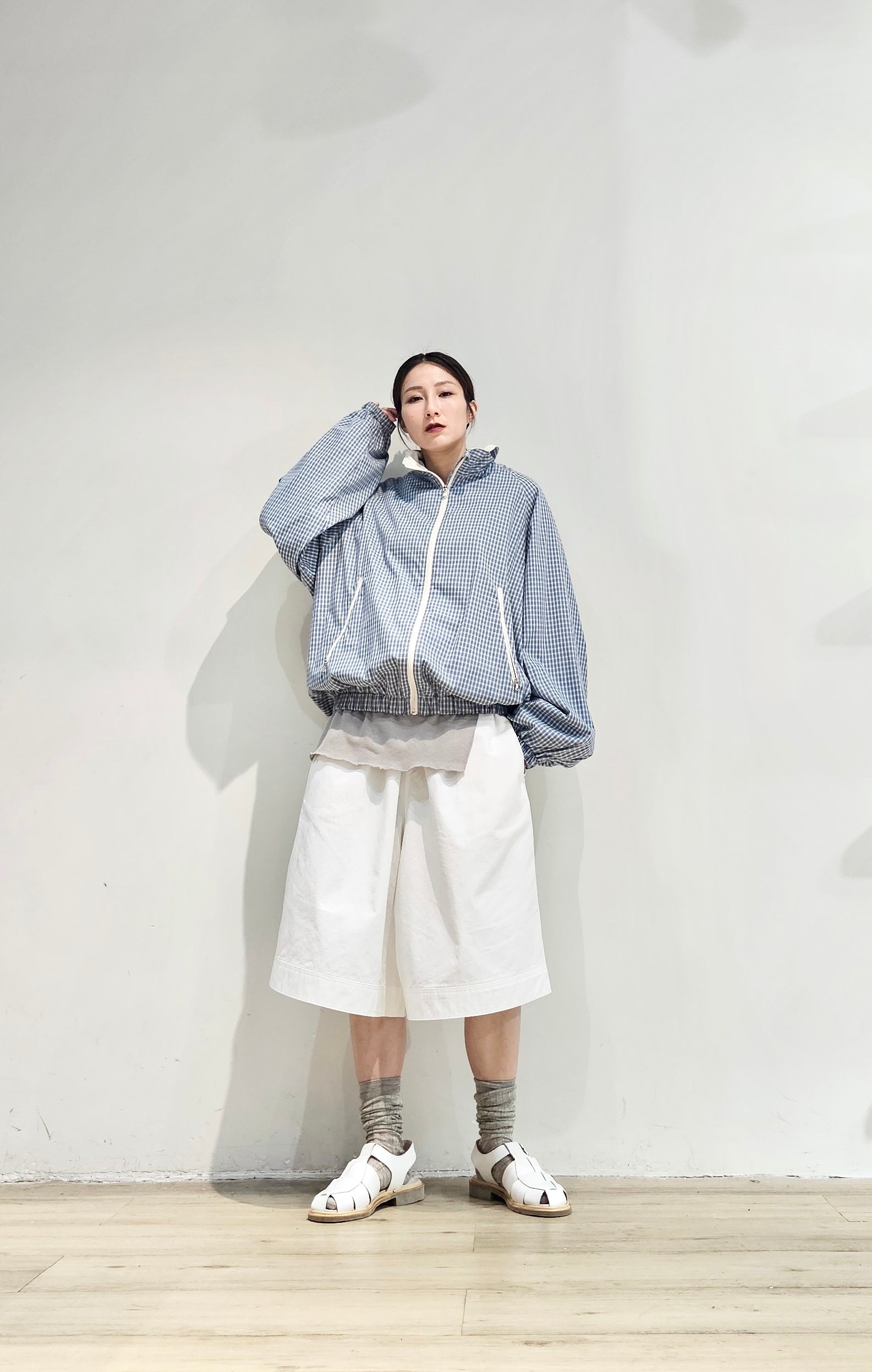 Stand collar check long windbreaker - 2 colours (pre-order)