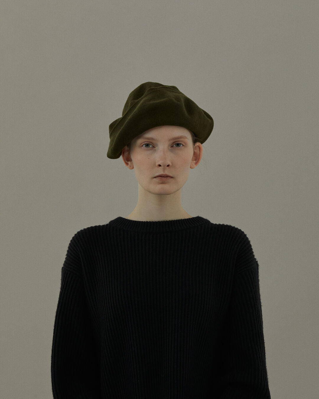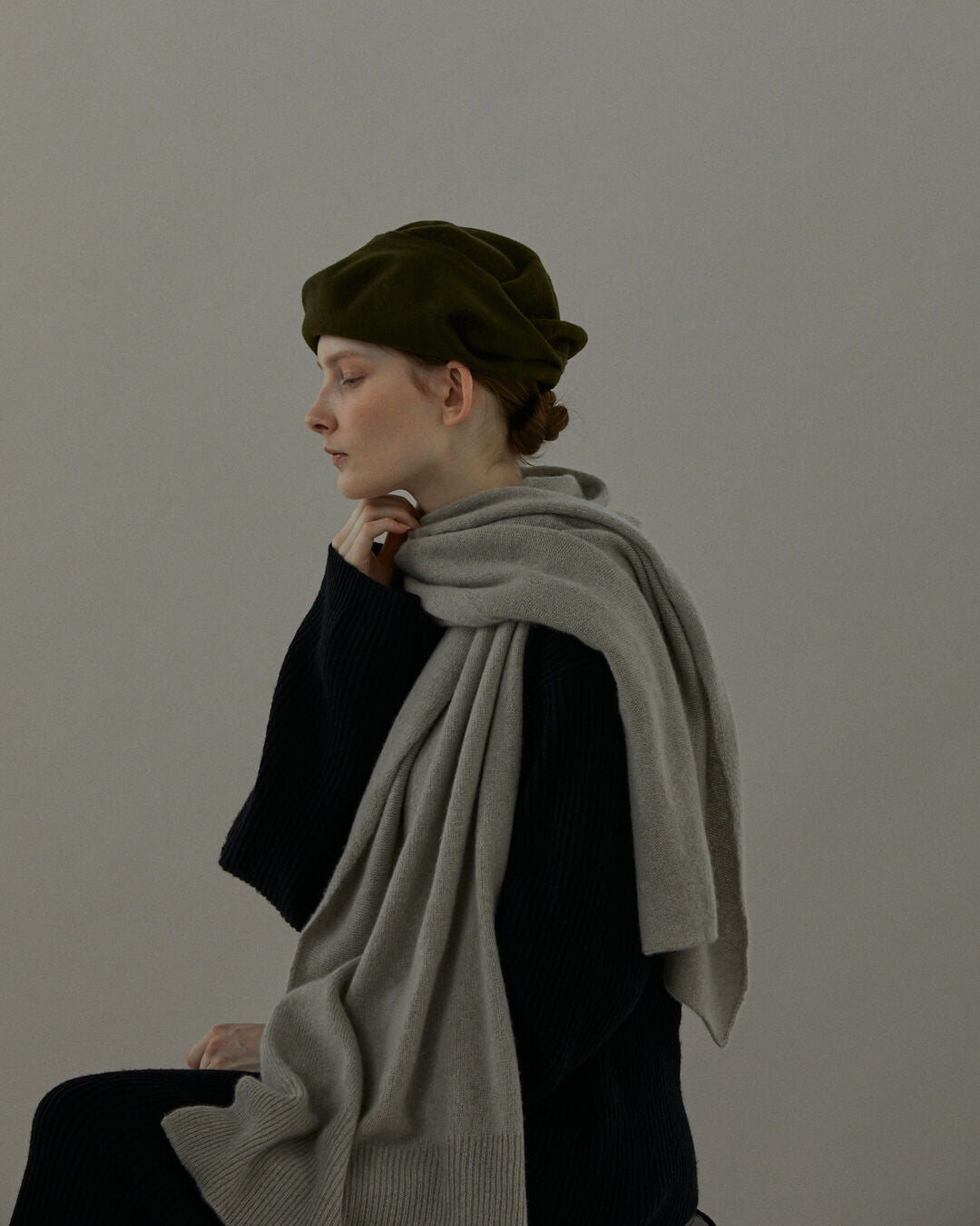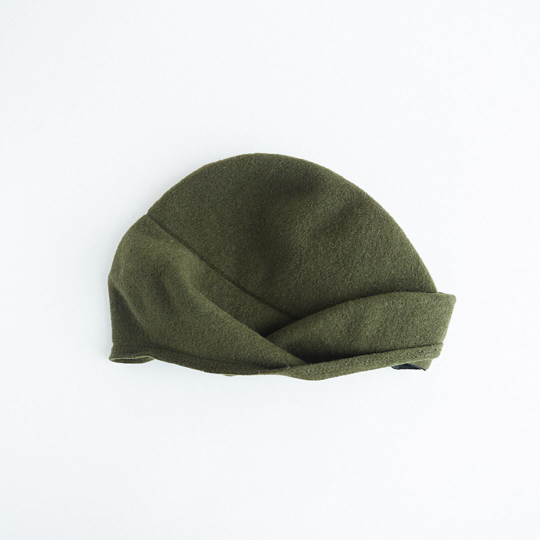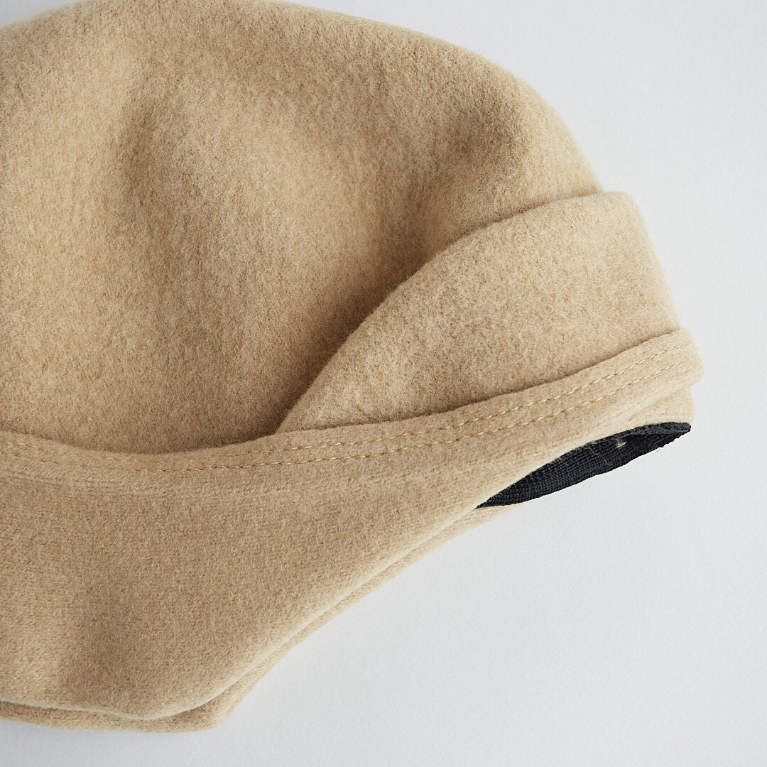 Being one of chisaki’s staple pieces, Tieka is a very popular hat. In this season, we have upgraded it by making it slimmer, so as to be easier to shape and to leave a neat impression. By folding and using the brim differently, this hat shows numerous possibilities in its appearance with no effort at all. You can also vary which part of the hat you wear in front, to go best with your look. With its soft, bouncy nature, the cashmere mixed material is easy to maneuver into shape and sits with it nicely. A neat, beautiful appearance is created from the tonal stitching of the main colour on the brim. *Size adjustable with the inner tape. *The charm is made by the metal artist, Seiko Obara.