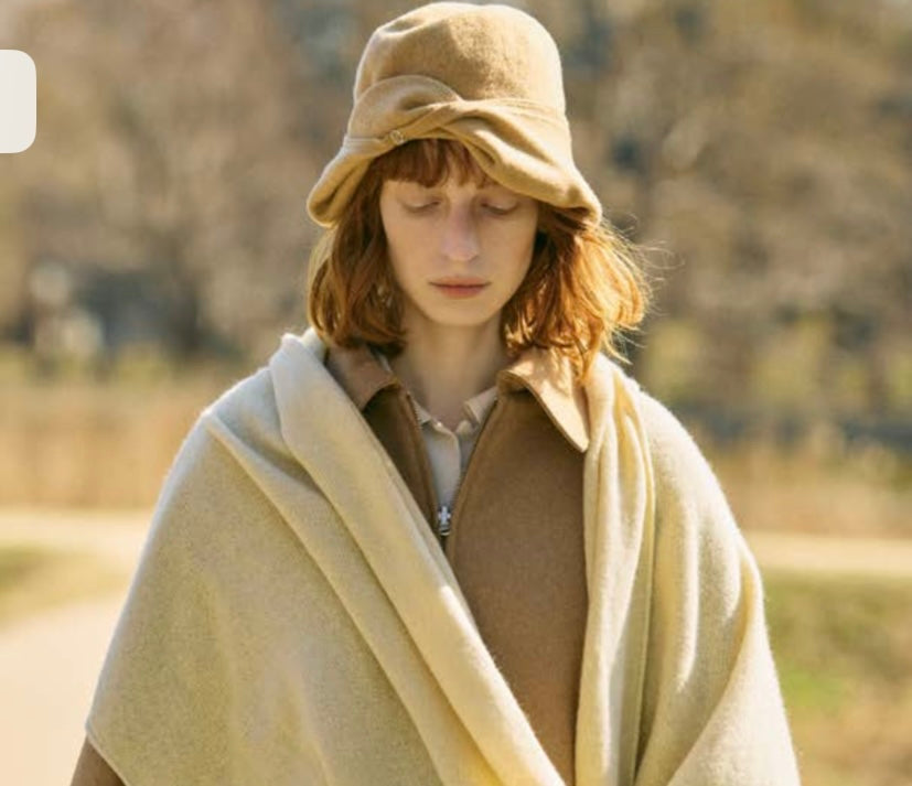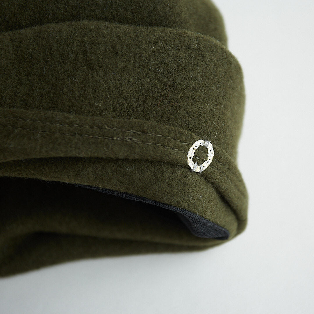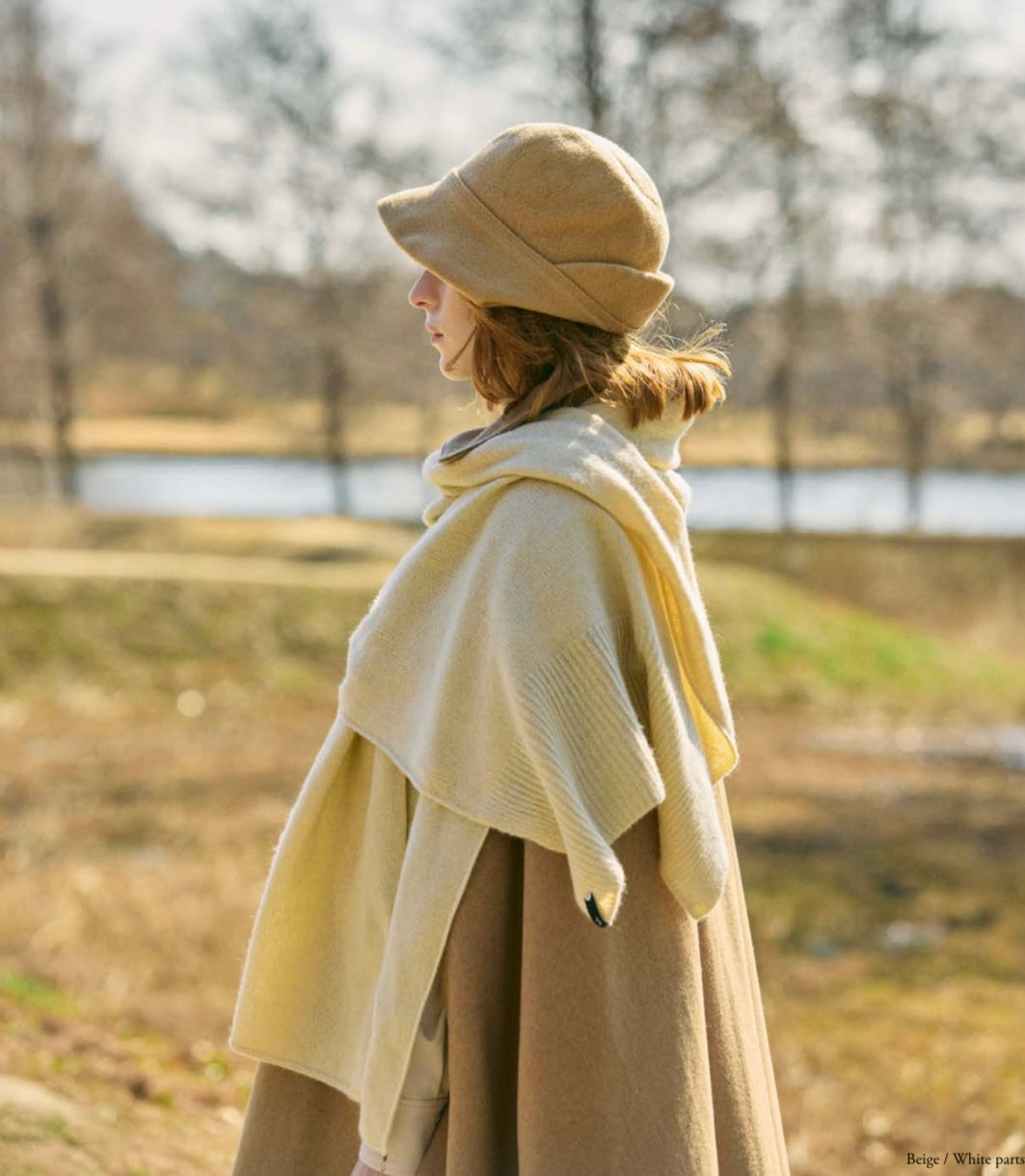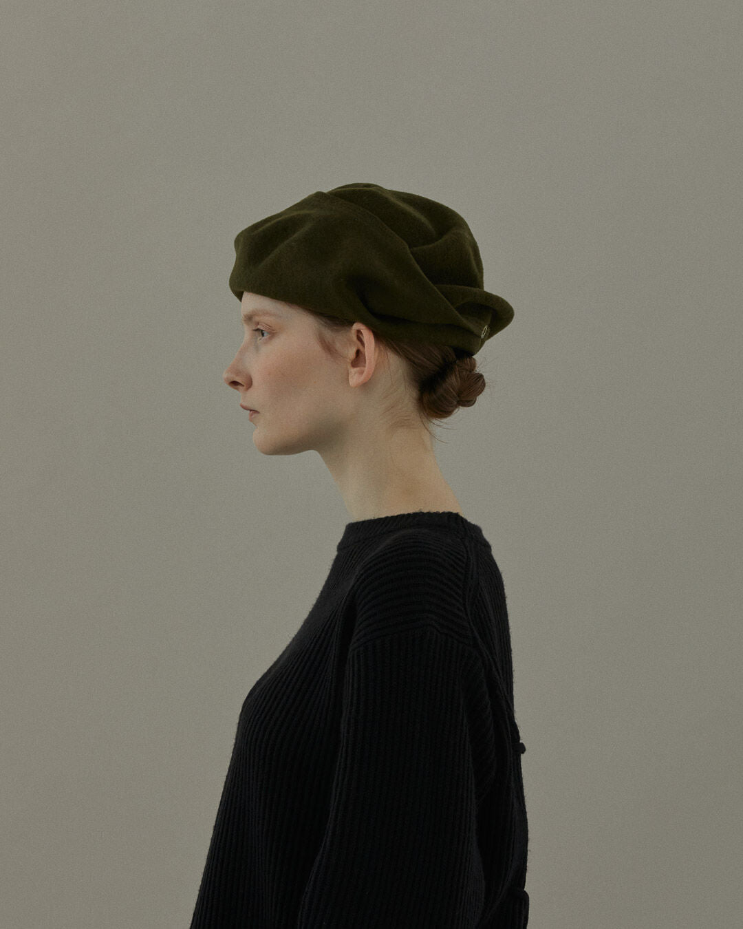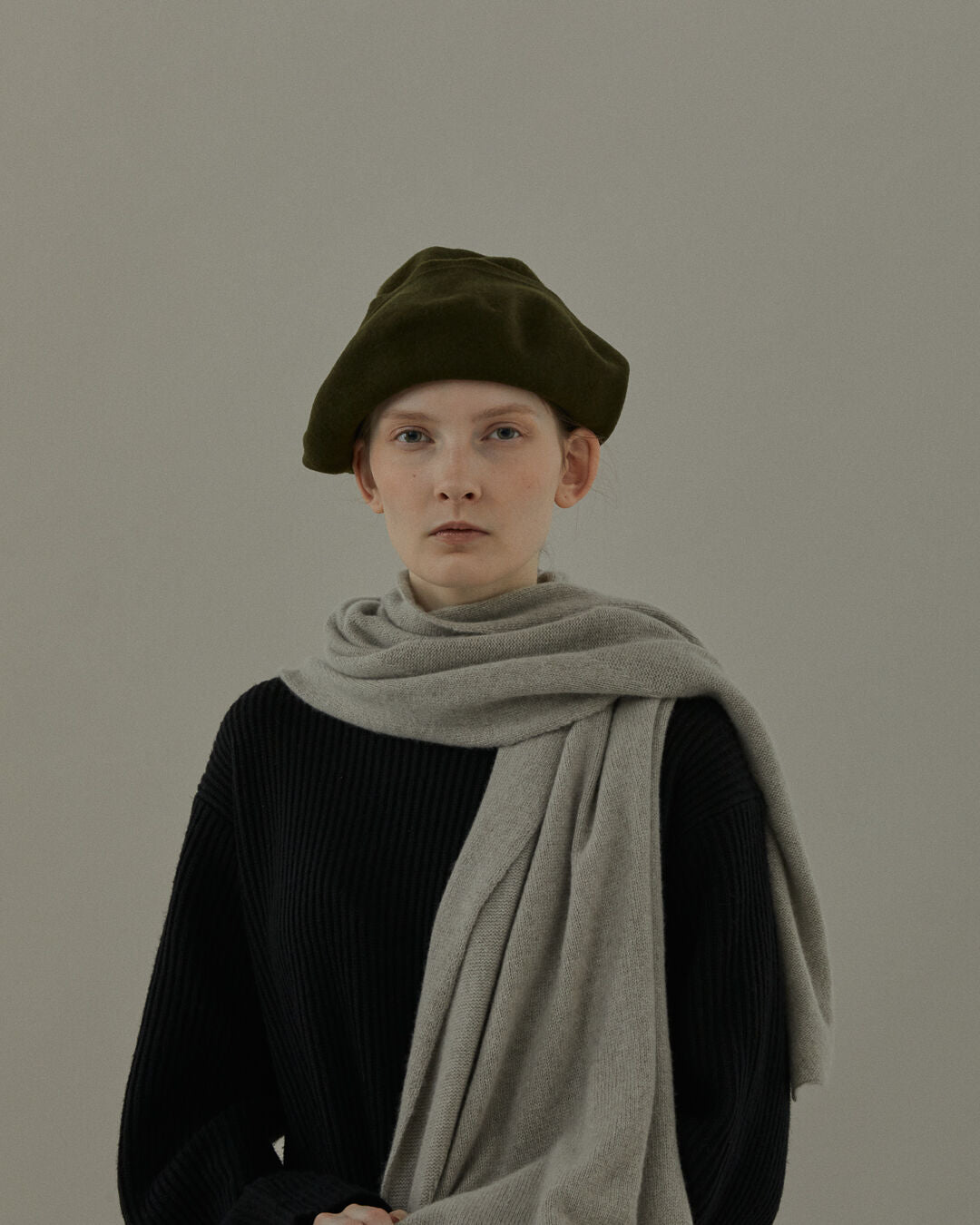 Being one of chisaki’s staple pieces, Tieka is a very popular hat. In this season, we have upgraded it by making it slimmer, so as to be easier to shape and to leave a neat impression. By folding and using the brim differently, this hat shows numerous possibilities in its appearance with no effort at all. You can also vary which part of the hat you wear in front, to go best with your look. With its soft, bouncy nature, the cashmere mixed material is easy to maneuver into shape and sits with it nicely. A neat, beautiful appearance is created from the tonal stitching of the main colour on the brim. *Size adjustable with the inner tape. *The charm is made by the metal artist, Seiko Obara.